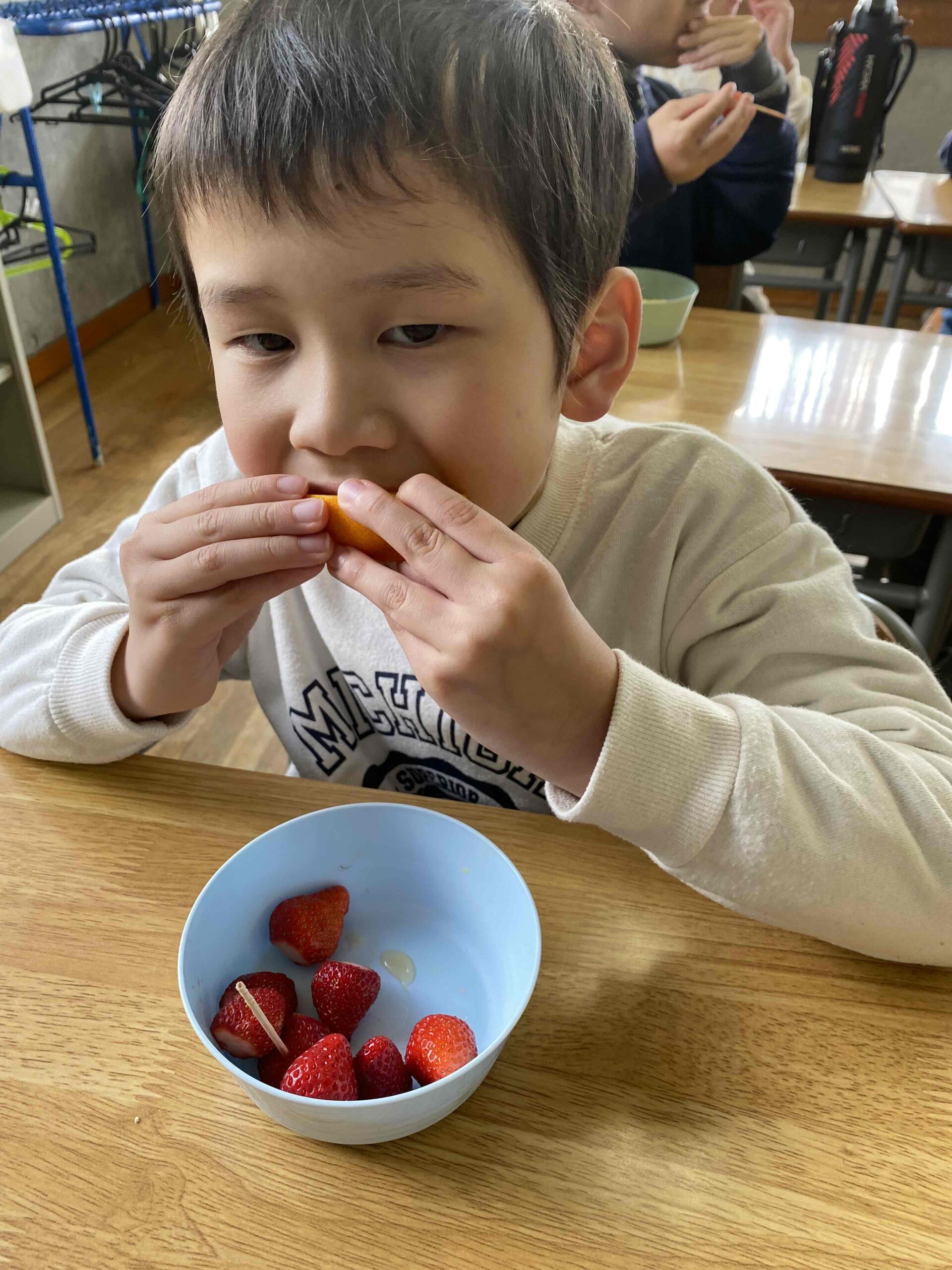 2026年02月04日 おやつ~いちご&ネーブル~ <文責:A> 今日のおやつは「いちご&ネーブル」でした😊 島原産のいちごと島原産のネーブルです⭐ ネーブル❓聞きなれない果物に食べたがらない児童もいましたが、おいしかったようです✌ 季節に合わせたおいしいおやつを提供しています🎵 来年度の1年生もブログを見てくださっているみたいで嬉しいです😊 << 前の記事へ 一覧へ