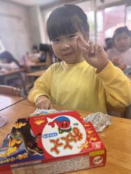 2026年04月10日 おやつ~キョロちゃんお楽しみ袋~ <文責:A> 1年生初めての登校 ちょうど雨が止んで良かったです☔ 本日のおやつは キョロちゃんの福袋でした😊 おっとっと ハイチュウ チョコボール キャラメル チョコボール ピーナッツ ラムネ が入っていました♬ 他にもいろいろお菓子を出して選びます 今日は宿題終わった順番に選んだので宿題がはかどりました♬ 銀のエンゼルがでたYちゃん おめでとう❣ << 前の記事へ 一覧へ