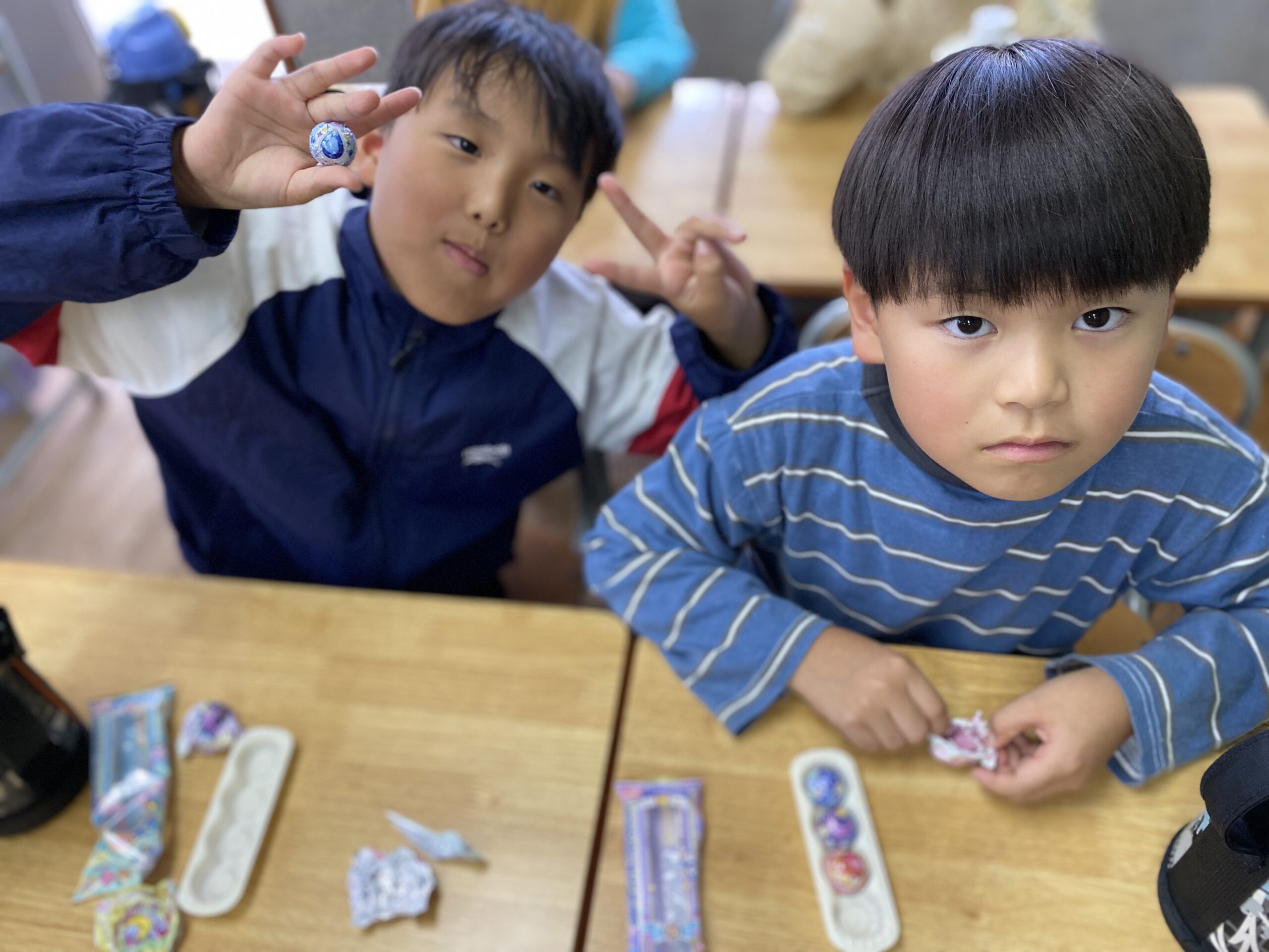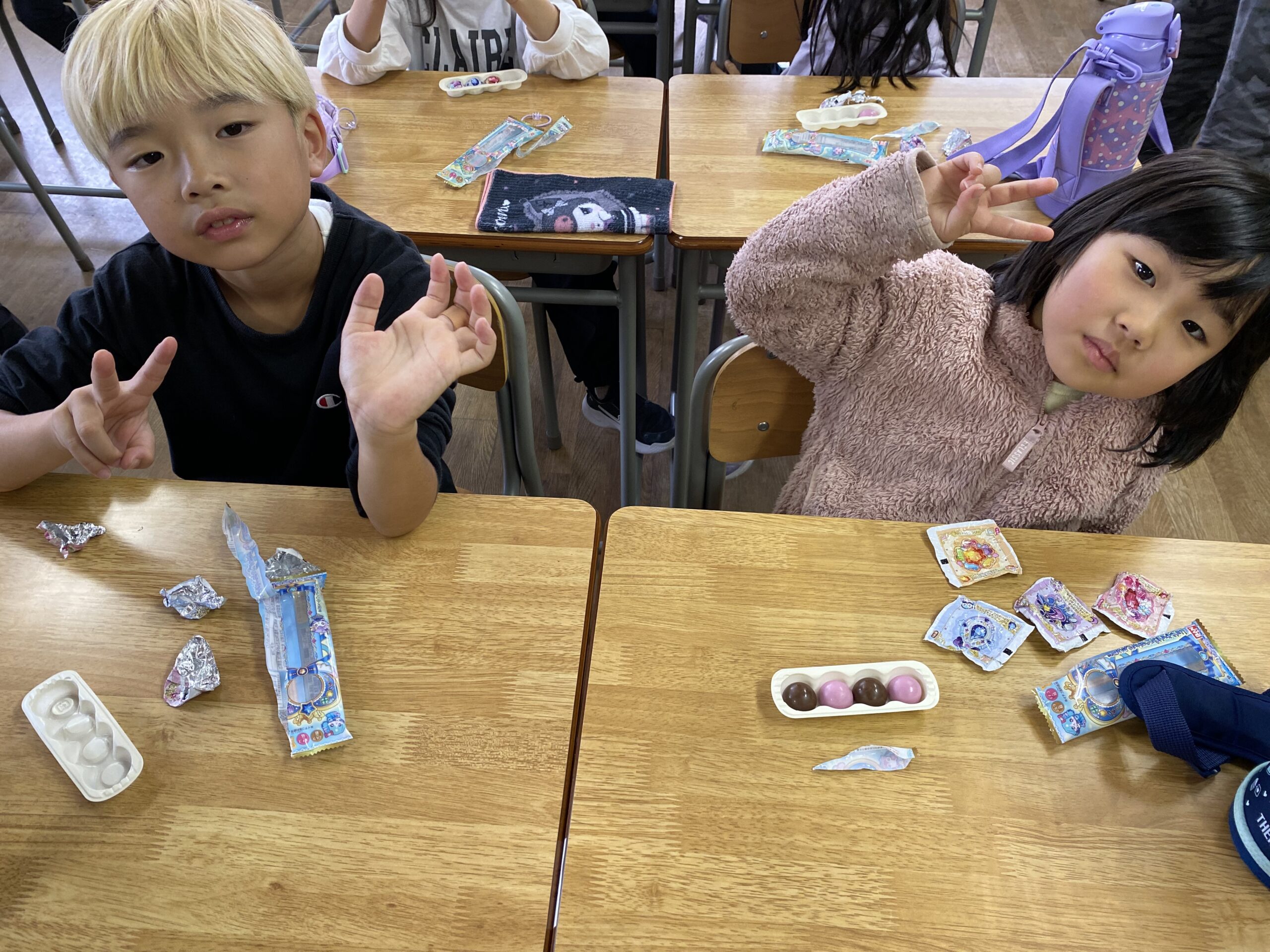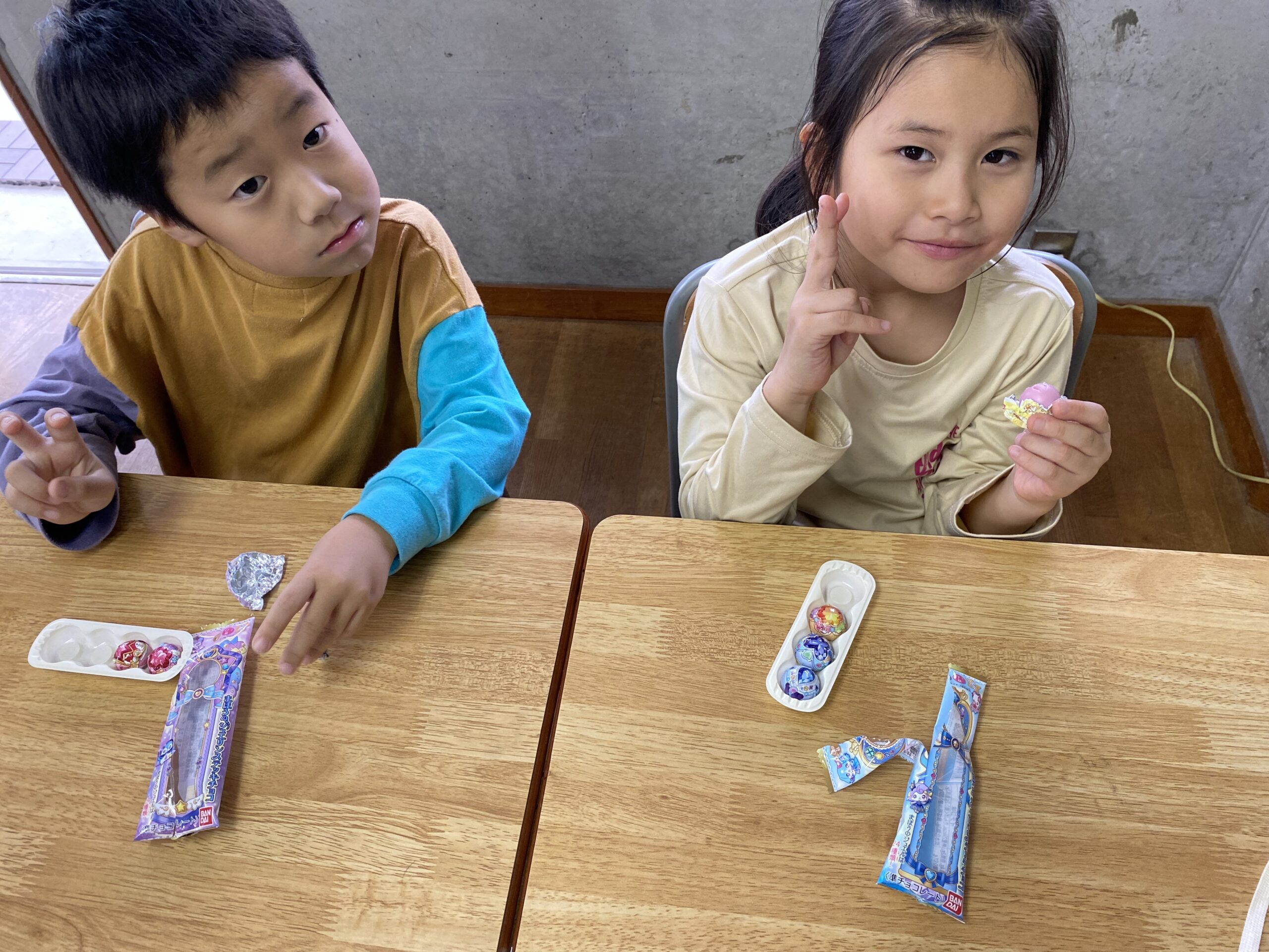 2025年11月07日 おやつ~ジュエリンステッキチョコ~ <文責:S> 今日のおやつはジュエリンスティックチョコでした 可愛い包み紙に入っていて 持って帰る子もいました😊 体調管理には気をつけて過ごしましょう😊 << 前の記事へ 一覧へ 次の記事へ >>
