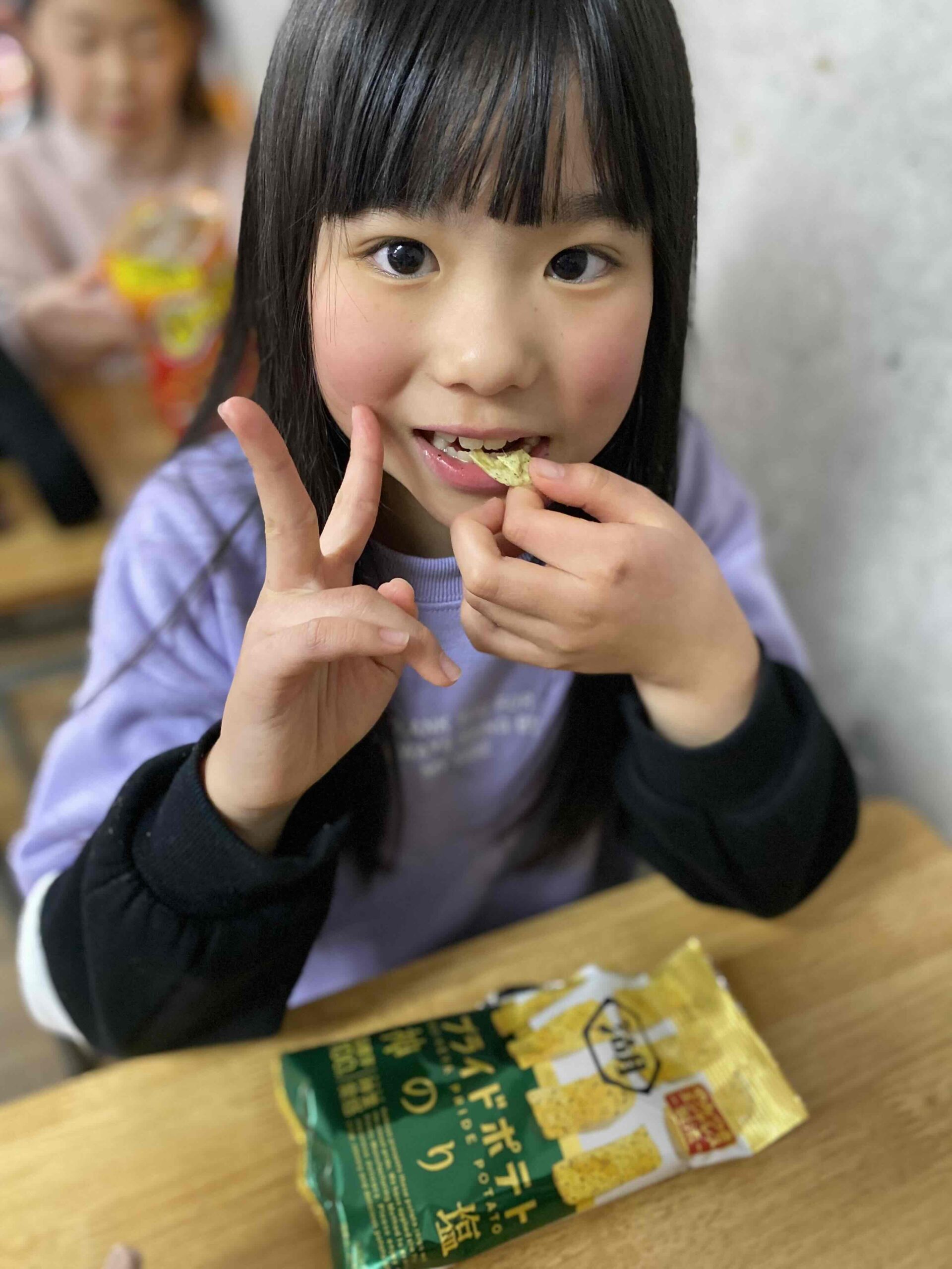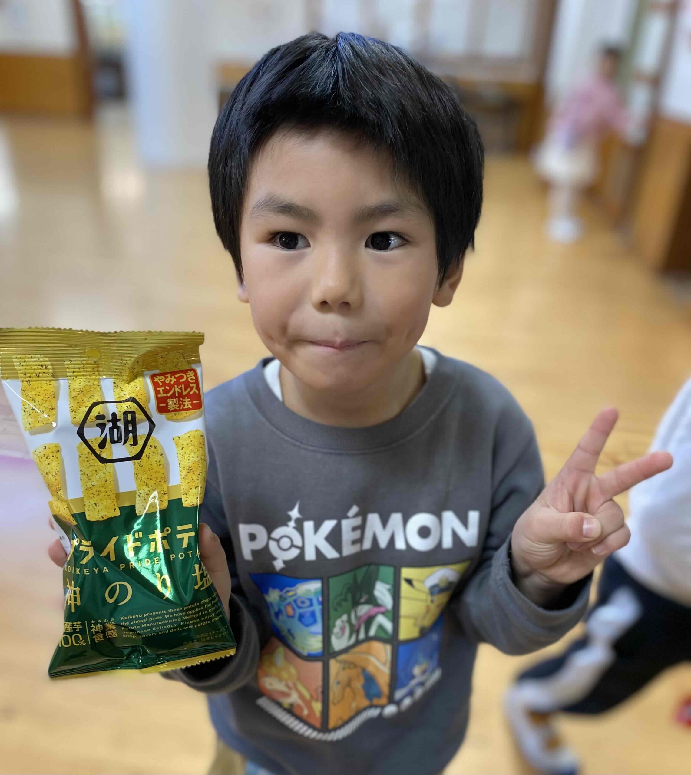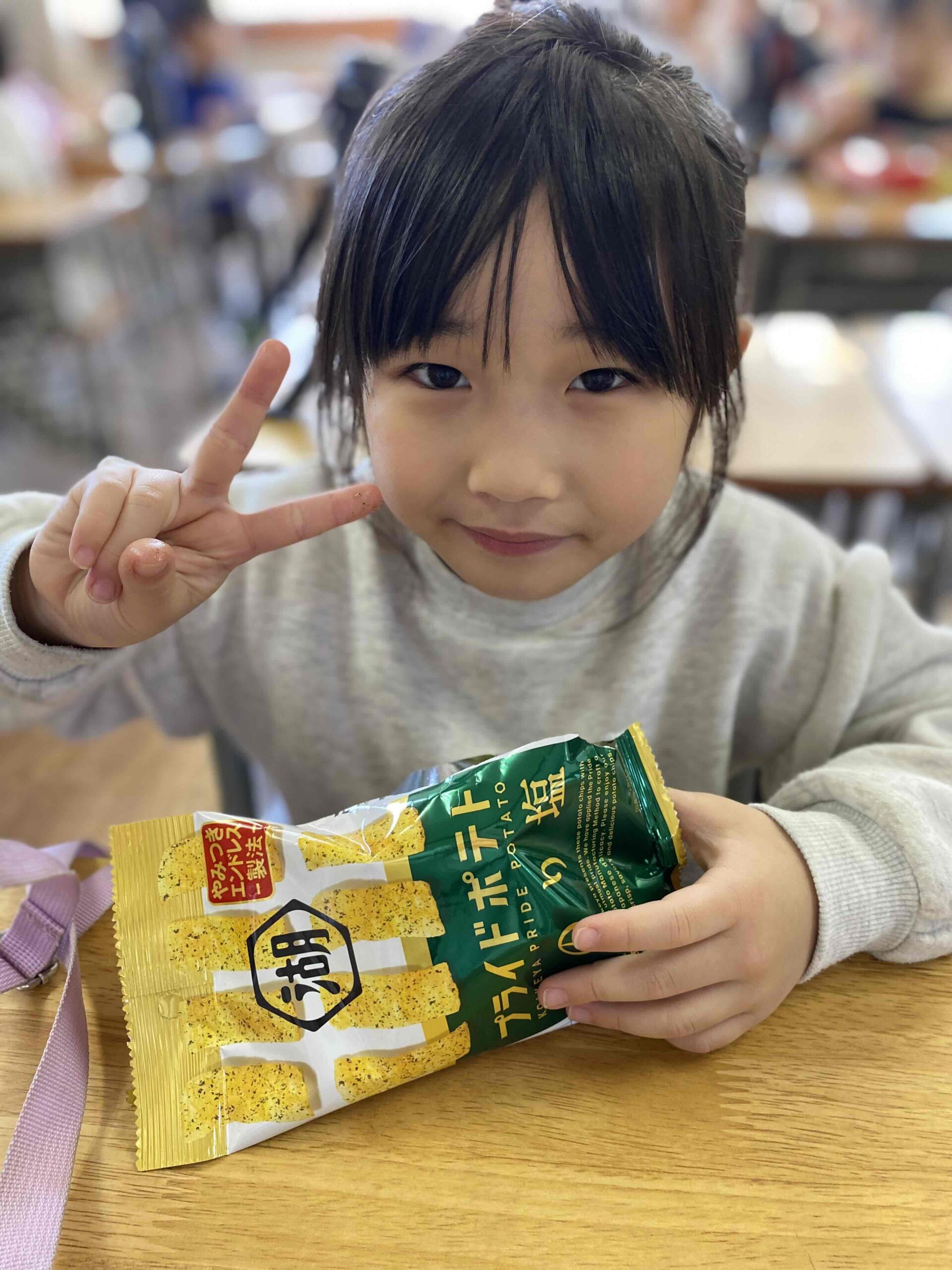 本日のおやつは プライドポテト 神のり塩味でした♬