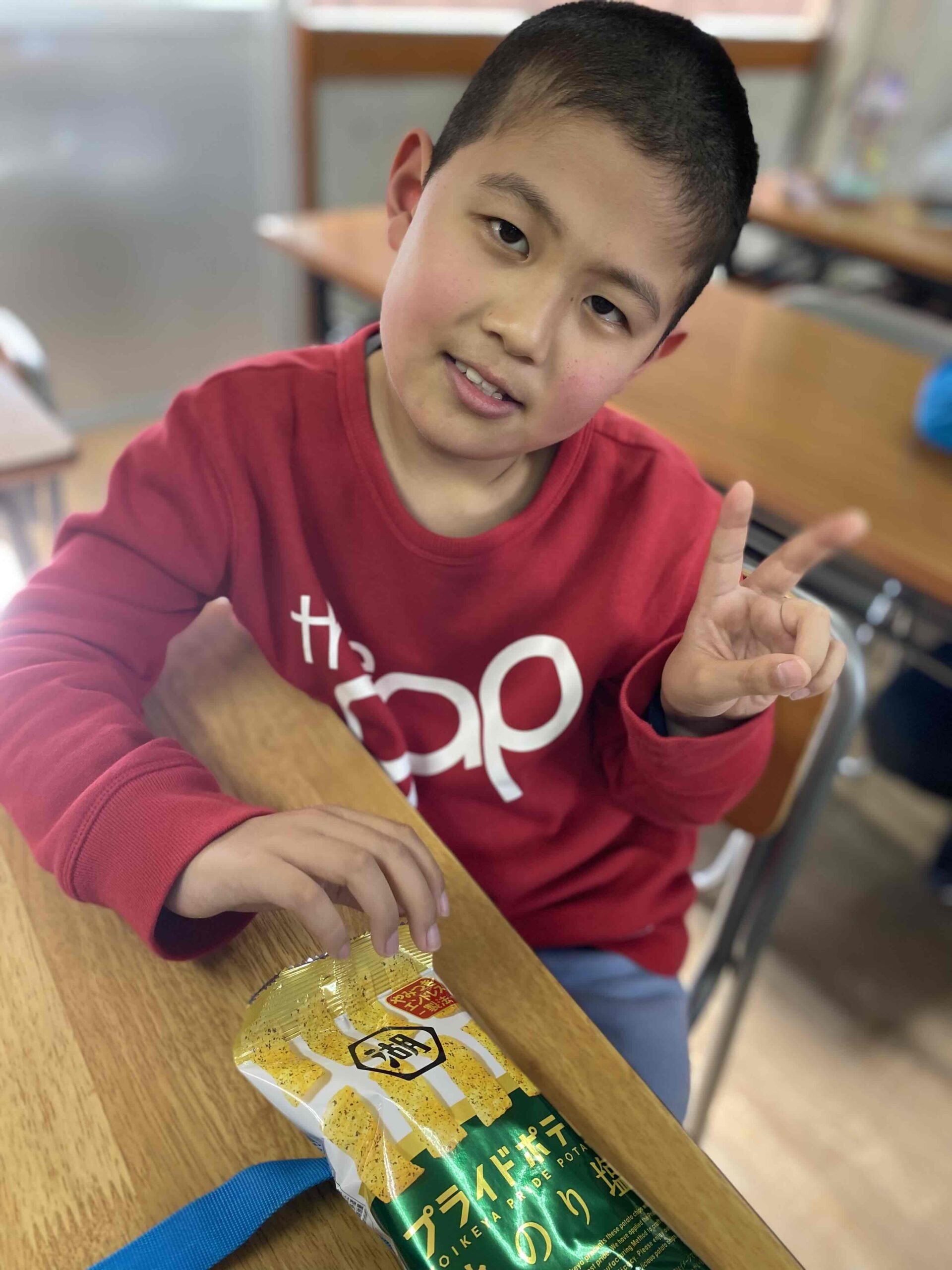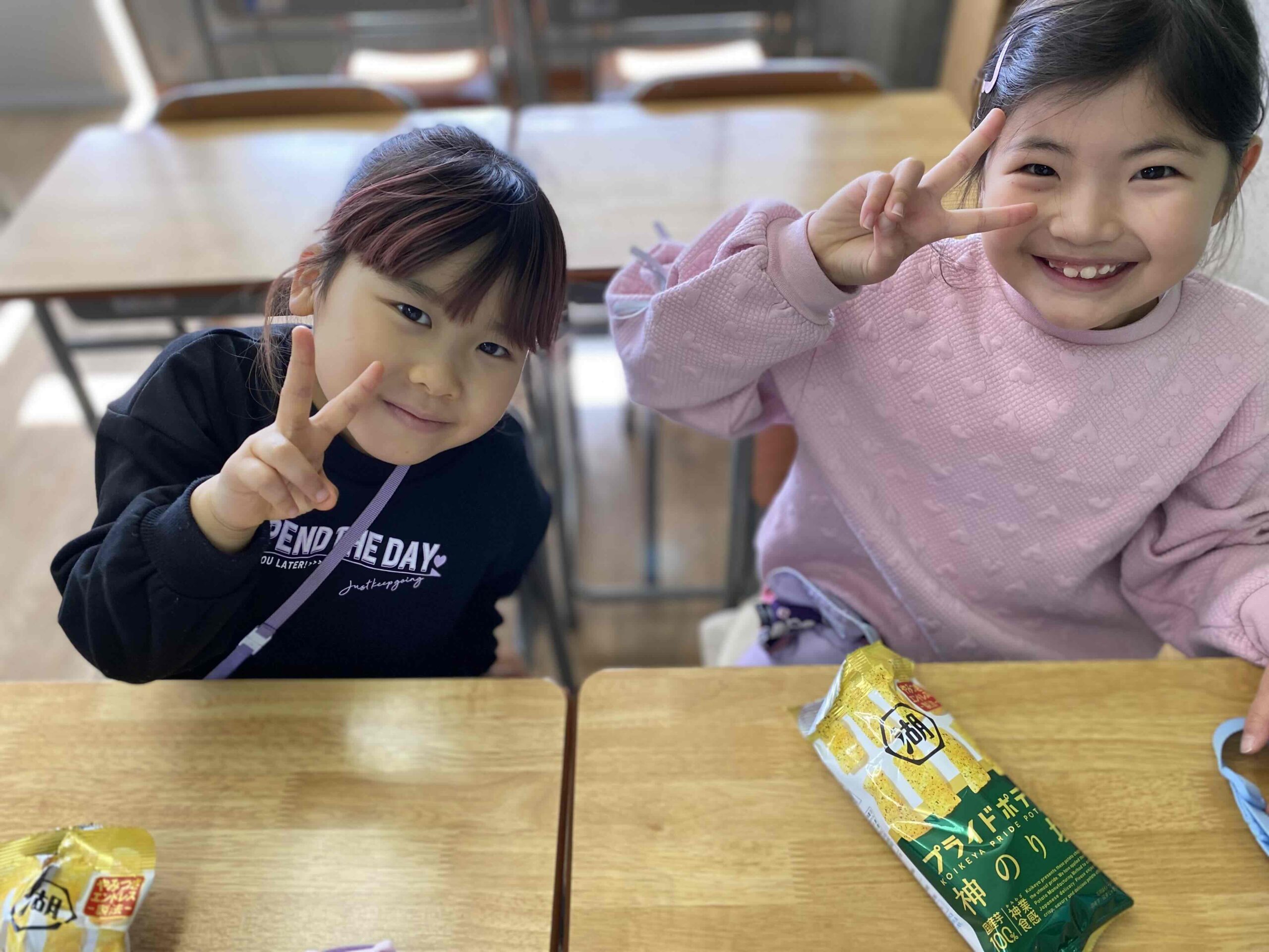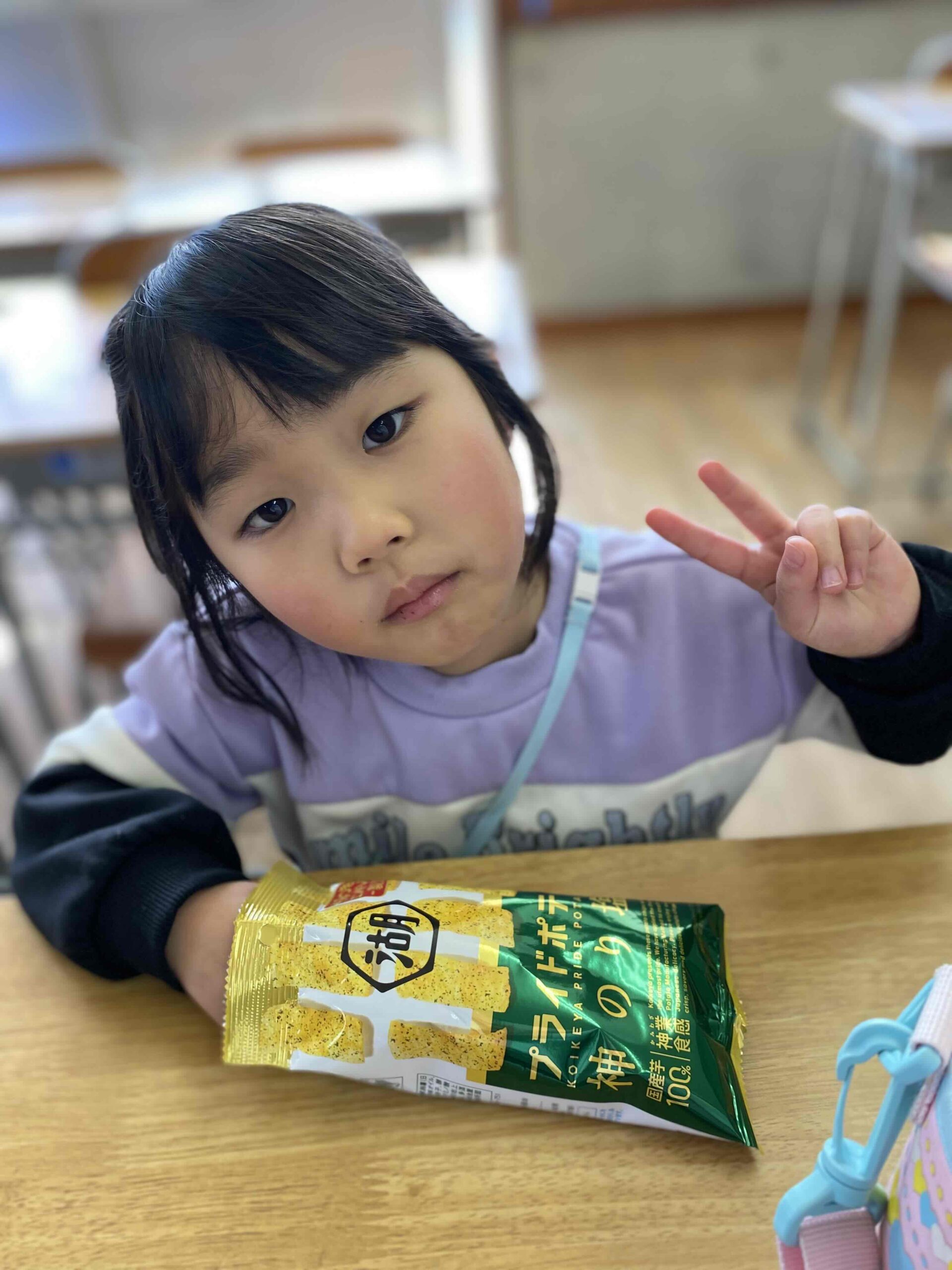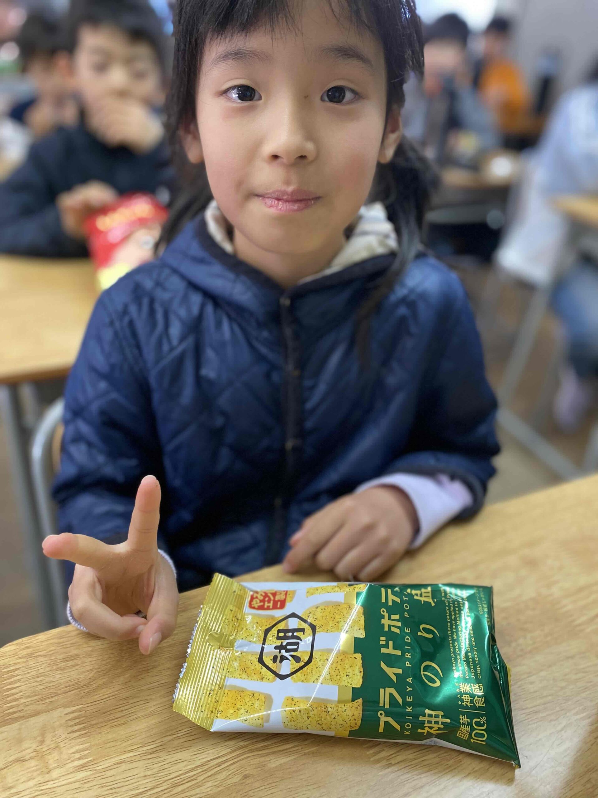 本日のおやつは プライドポテト 神のり塩味でした♬