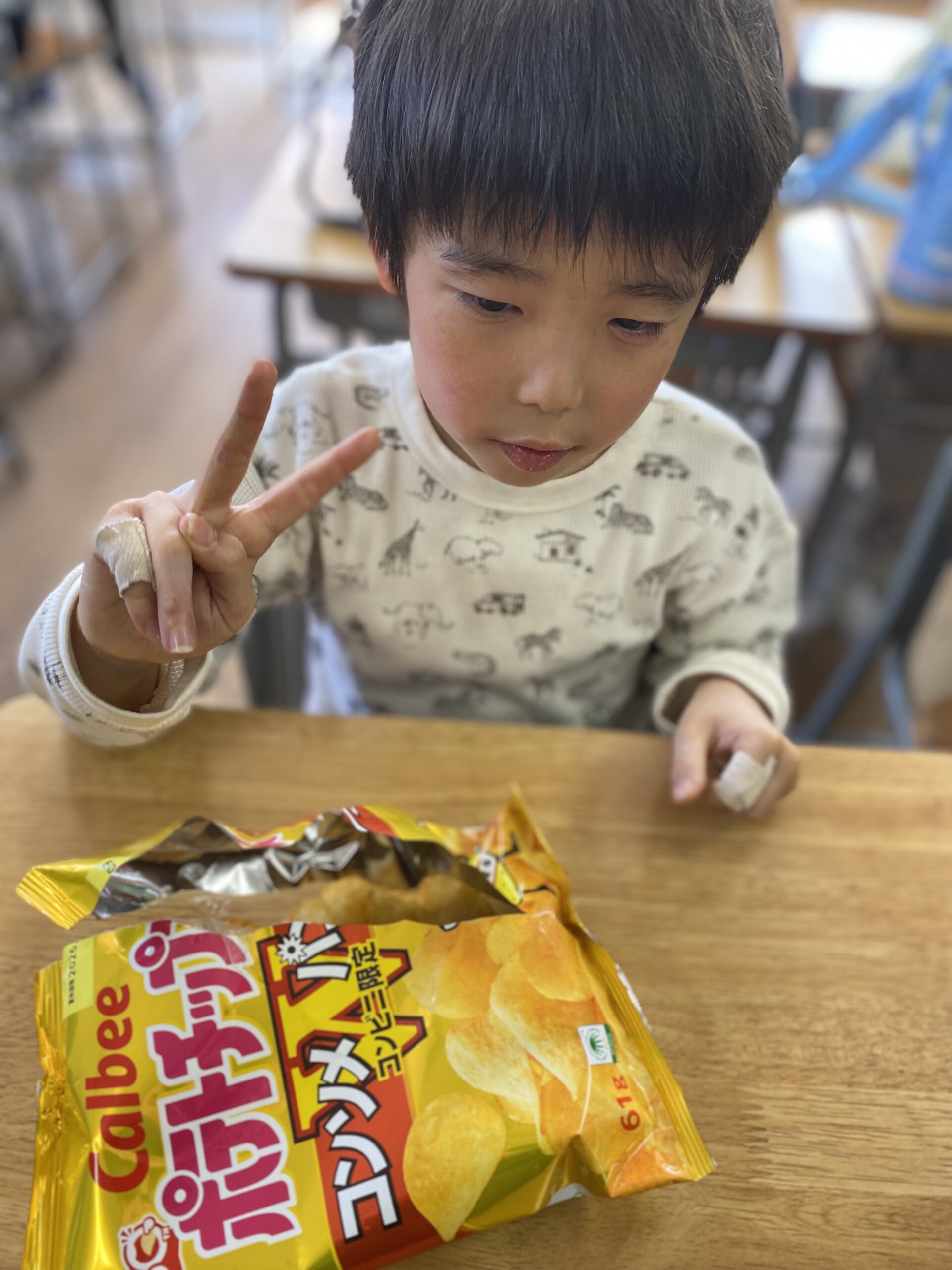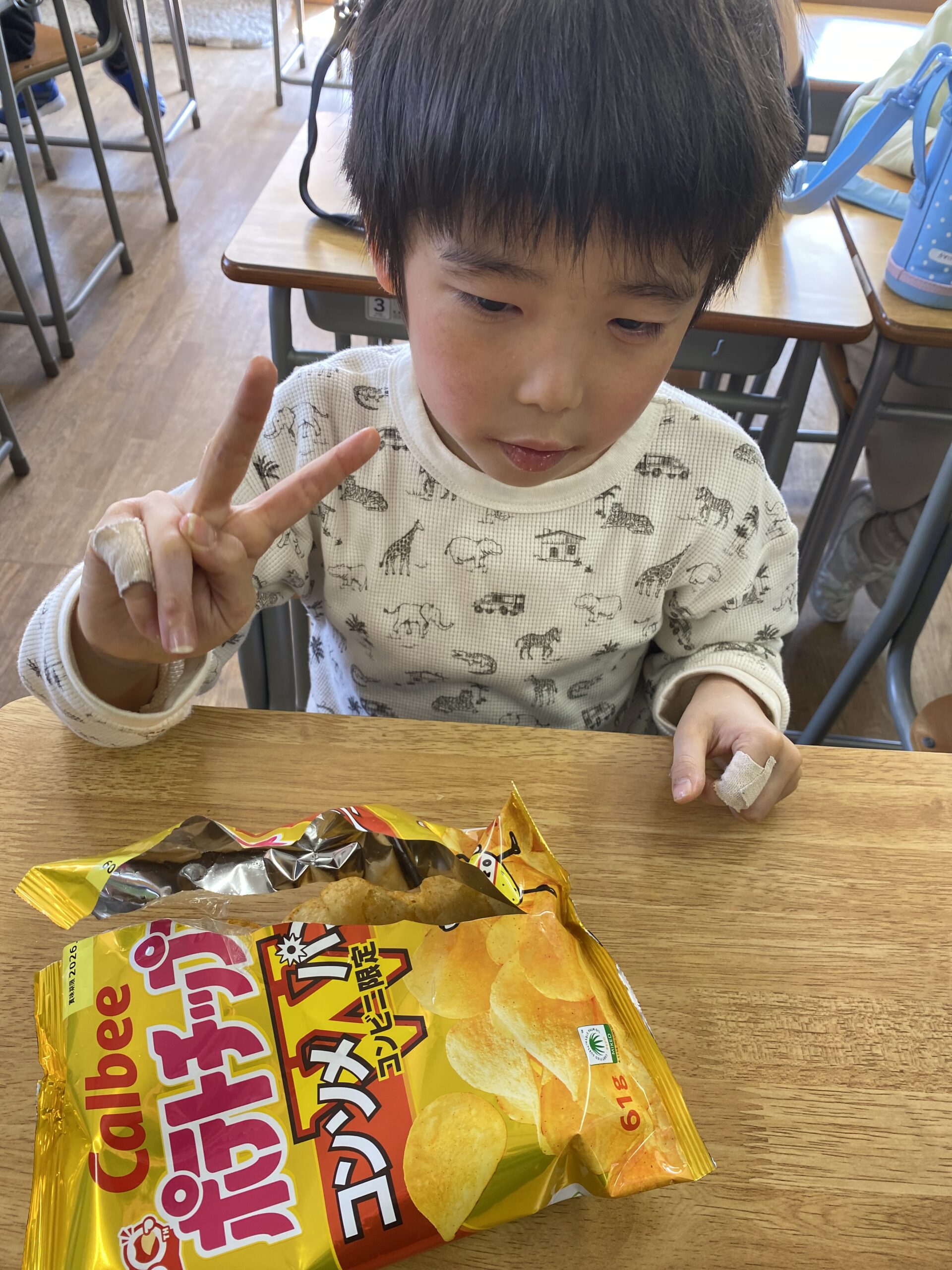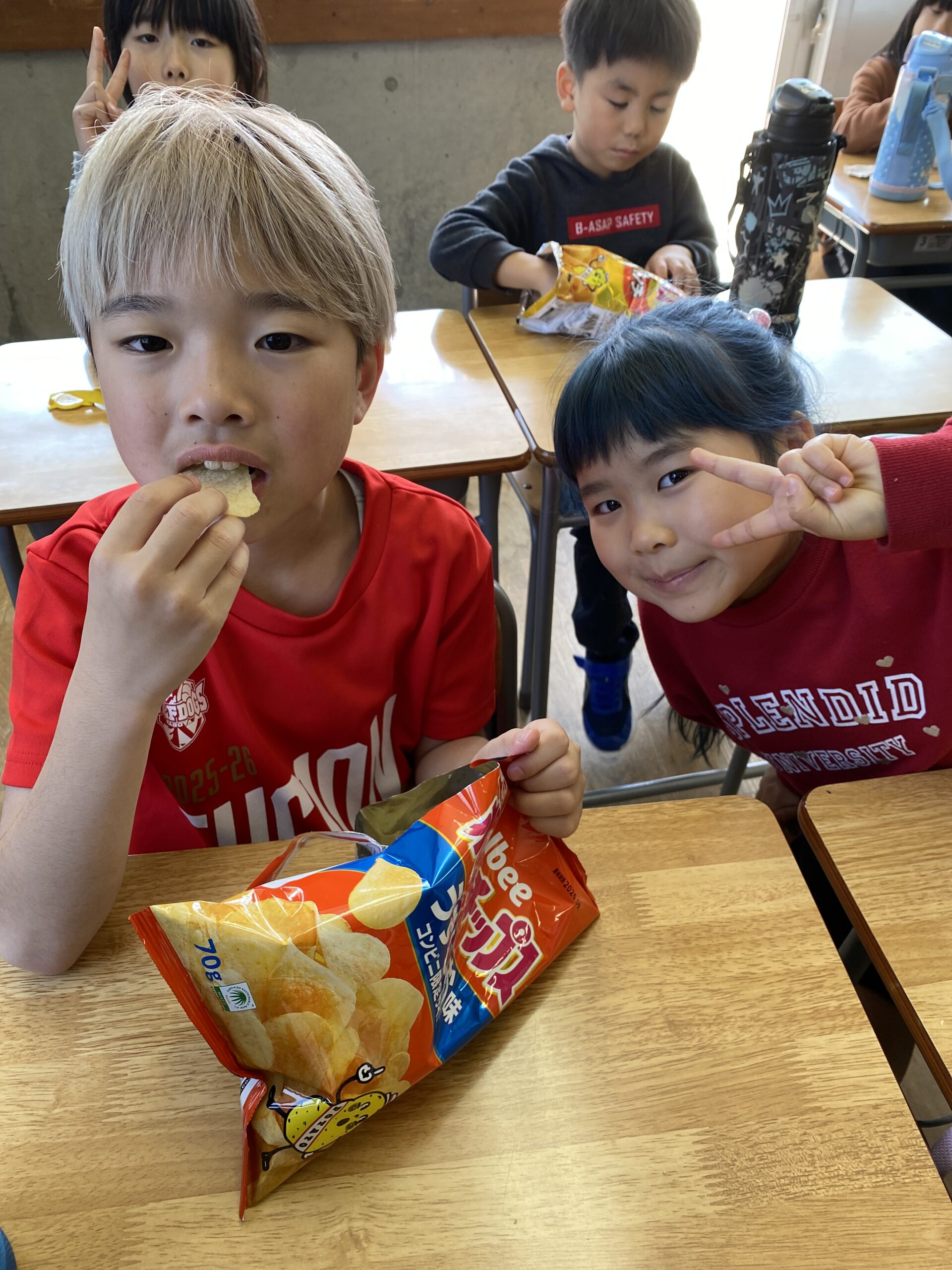 ポテトチップス4種か余っているお菓子でした😊