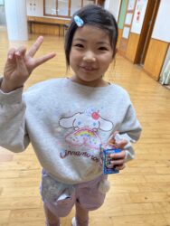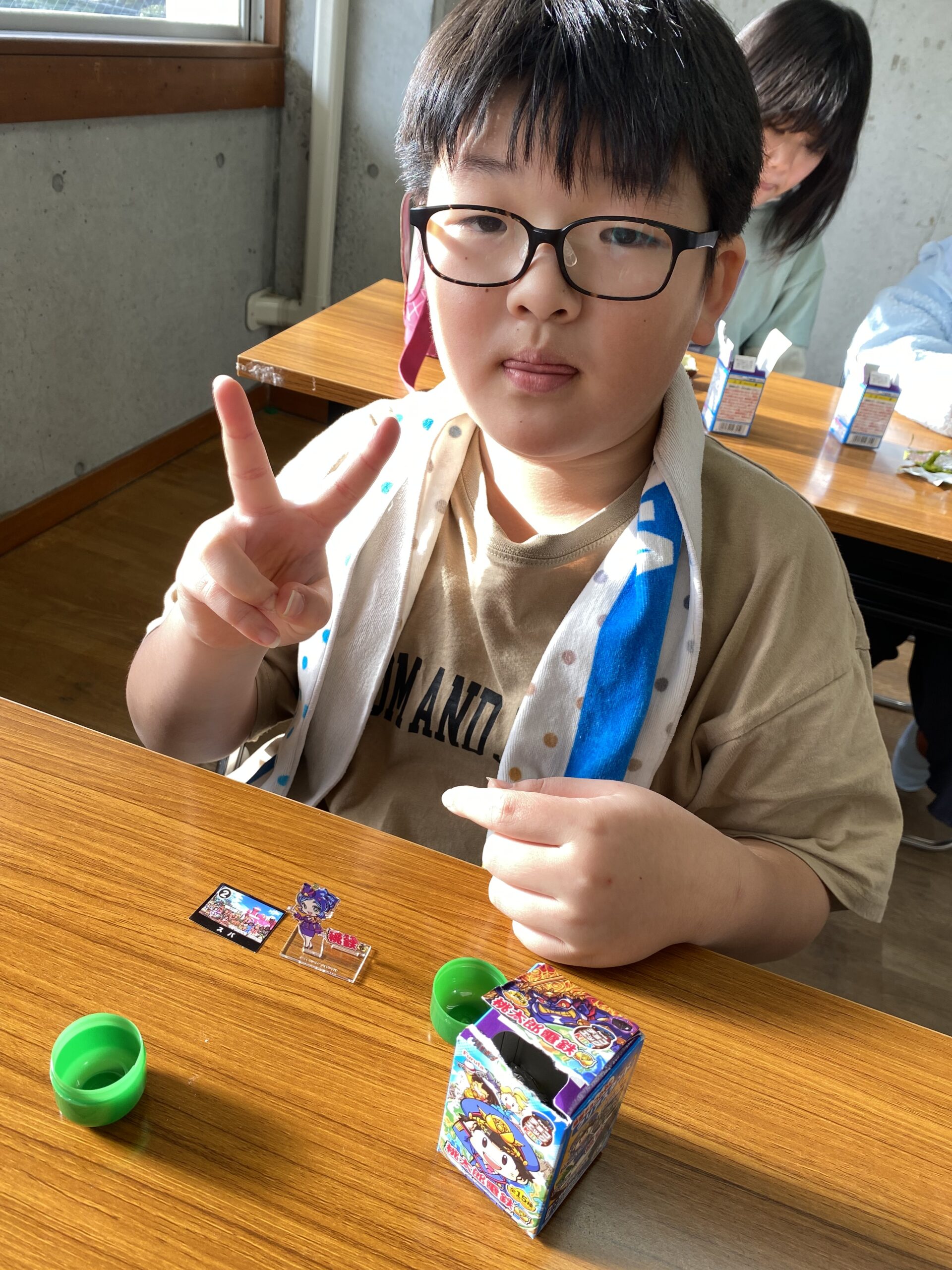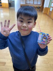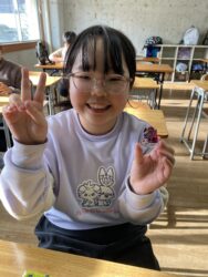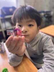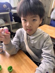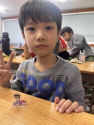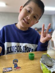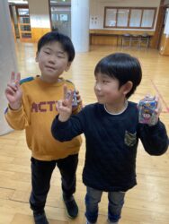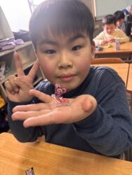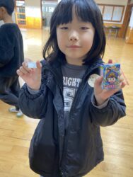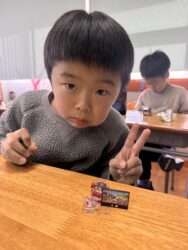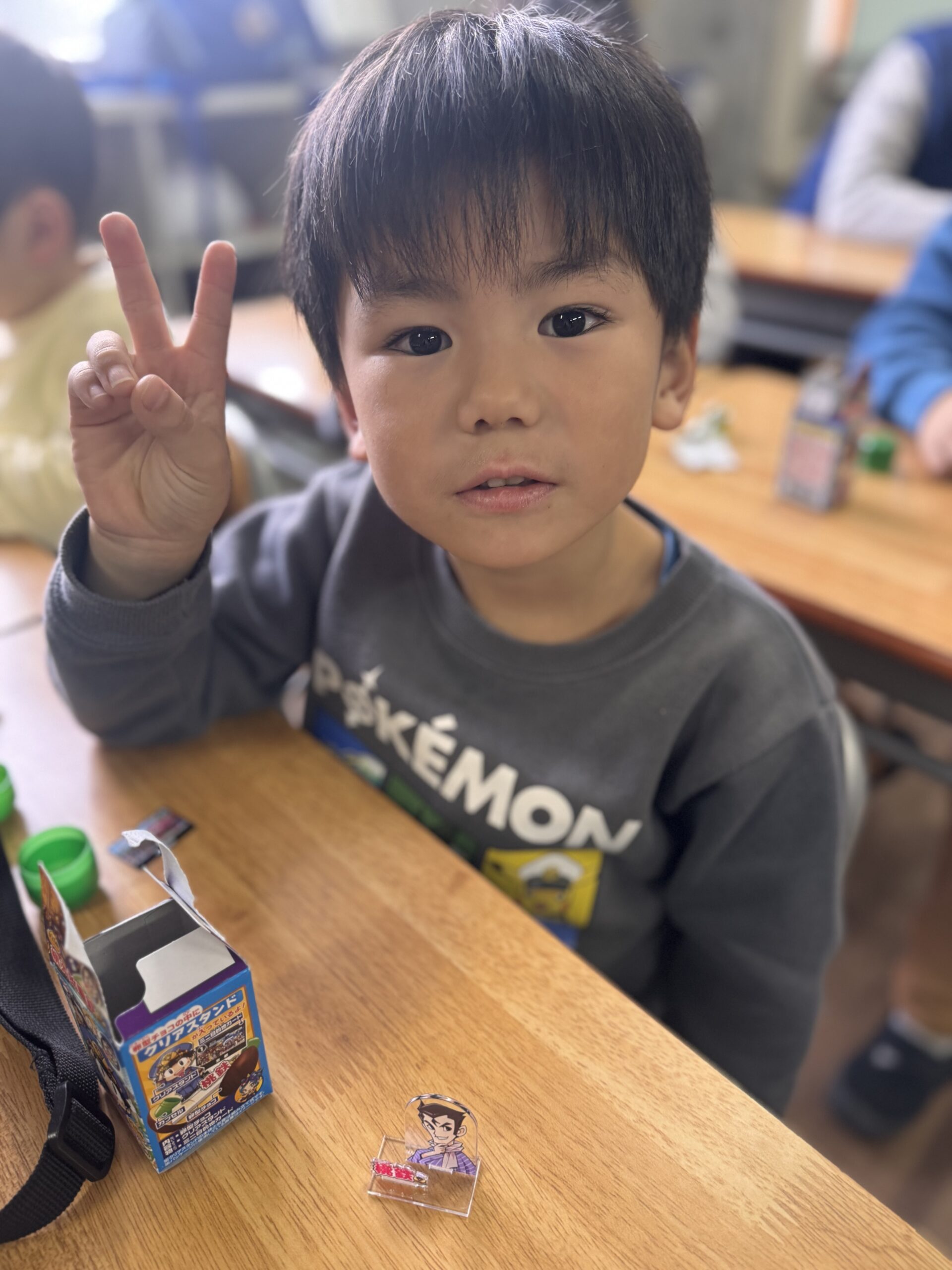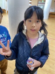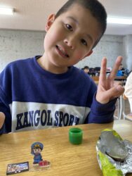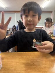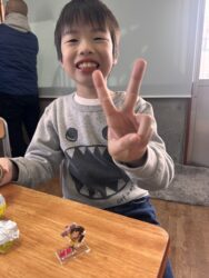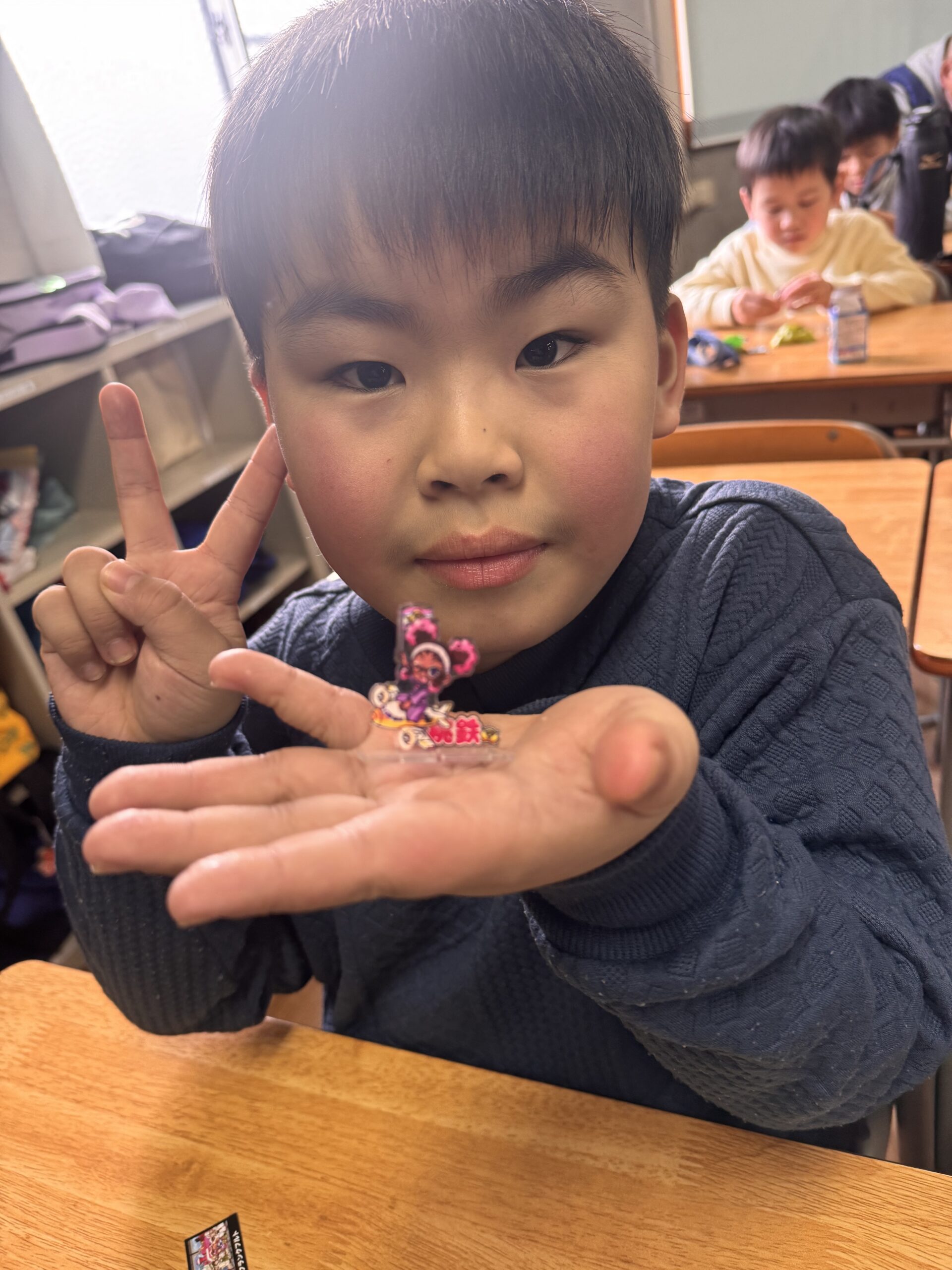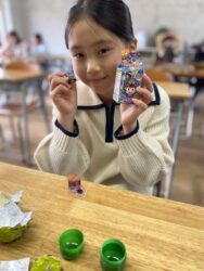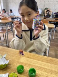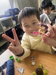エッグチョコにはアクリルスタンドが付いていて喜んで開けていて