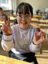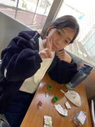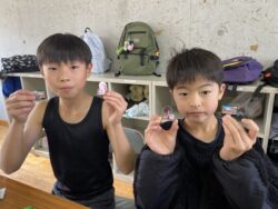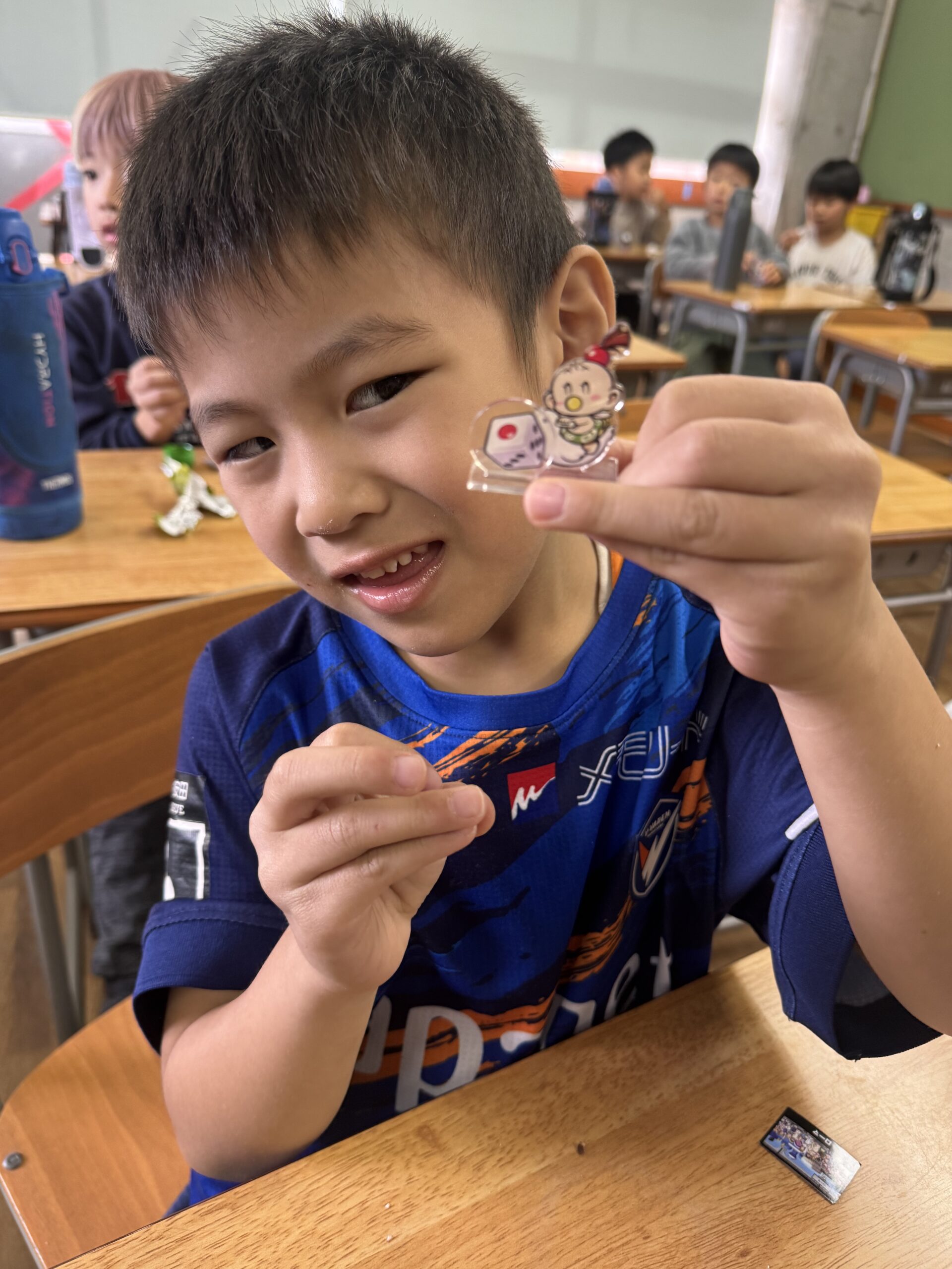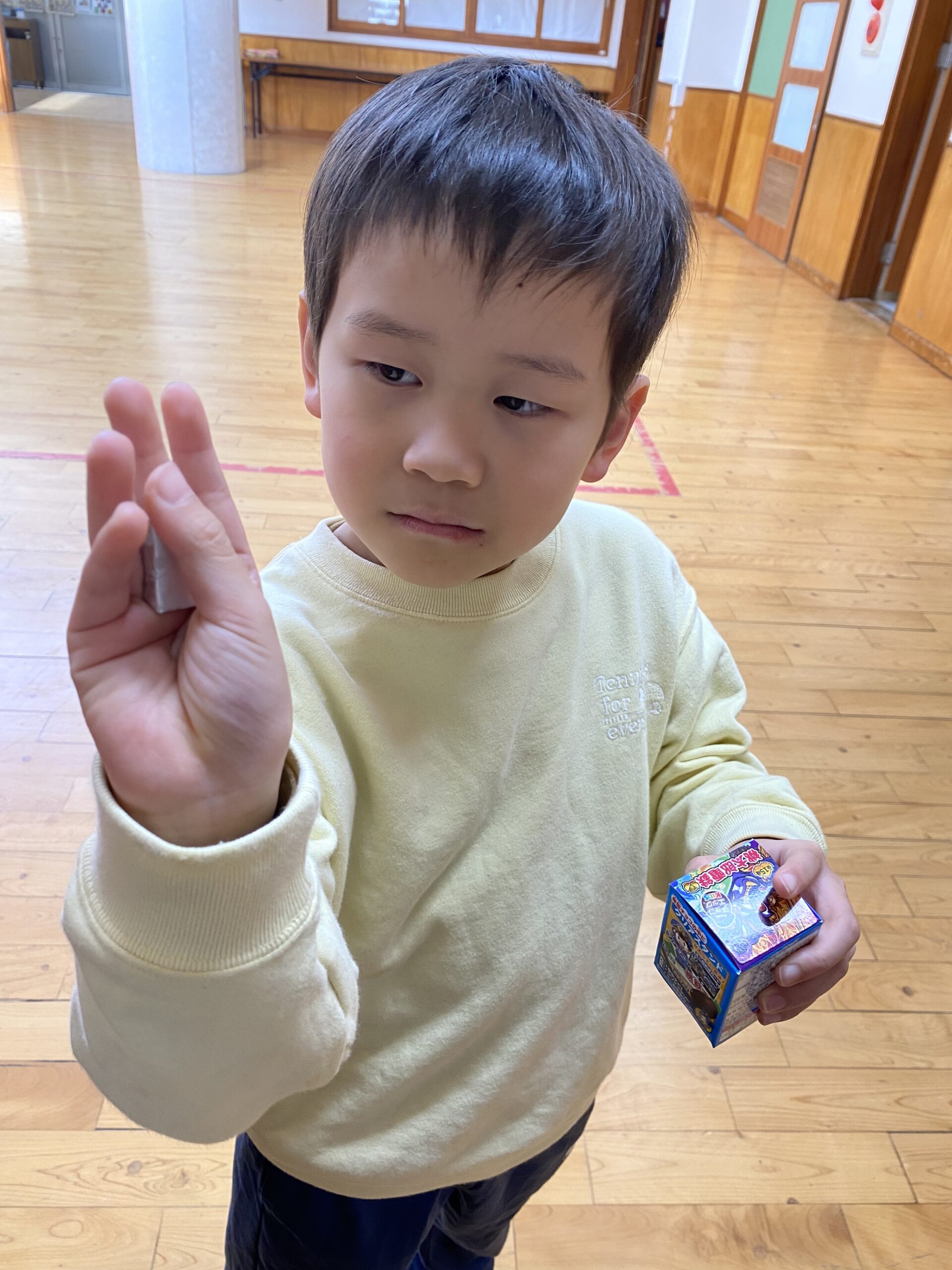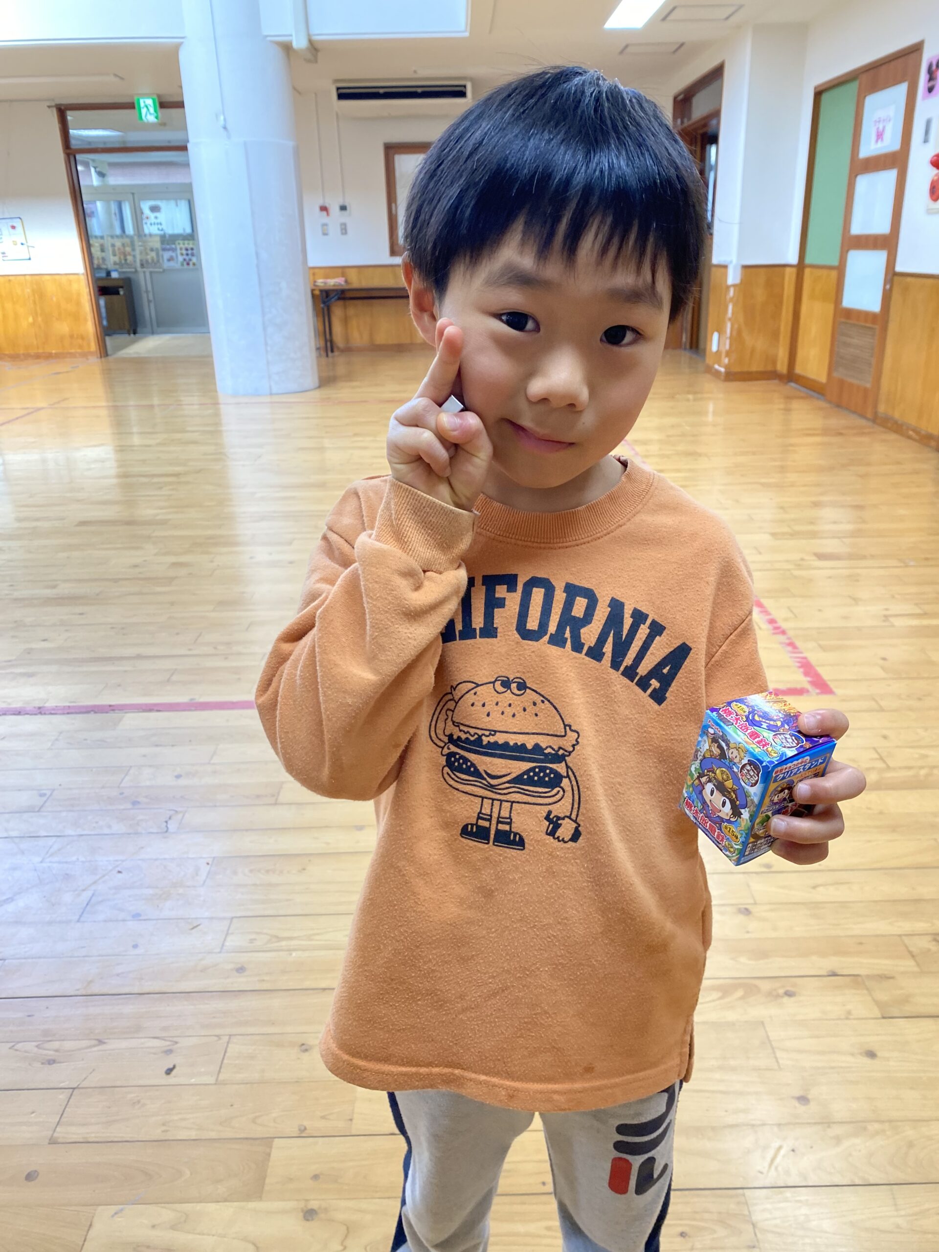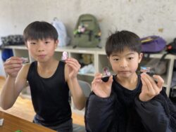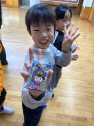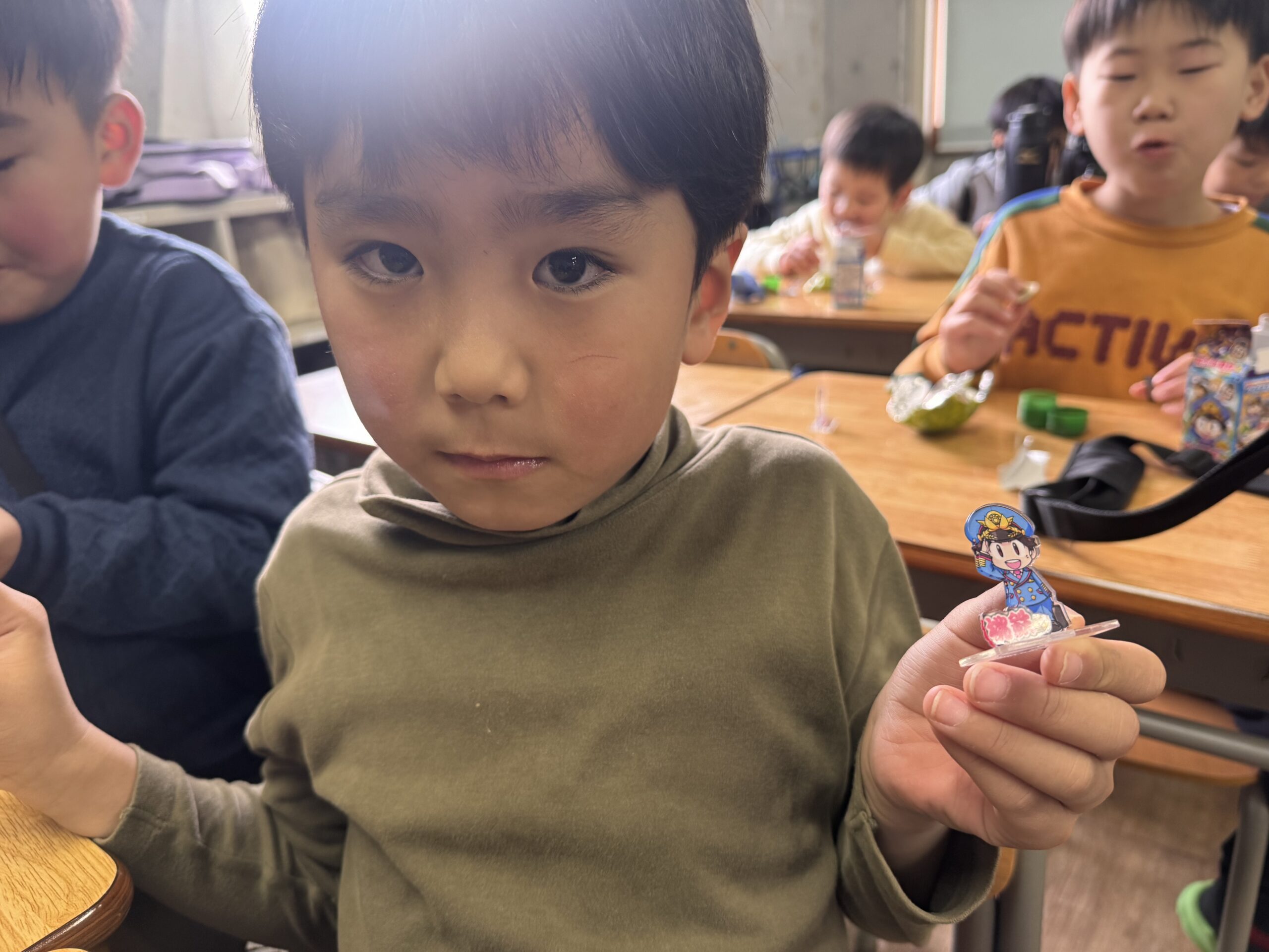 エッグチョコにはアクリルスタンドが付いていて喜んで開けていて
