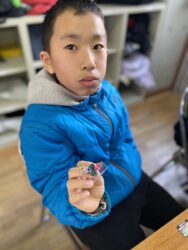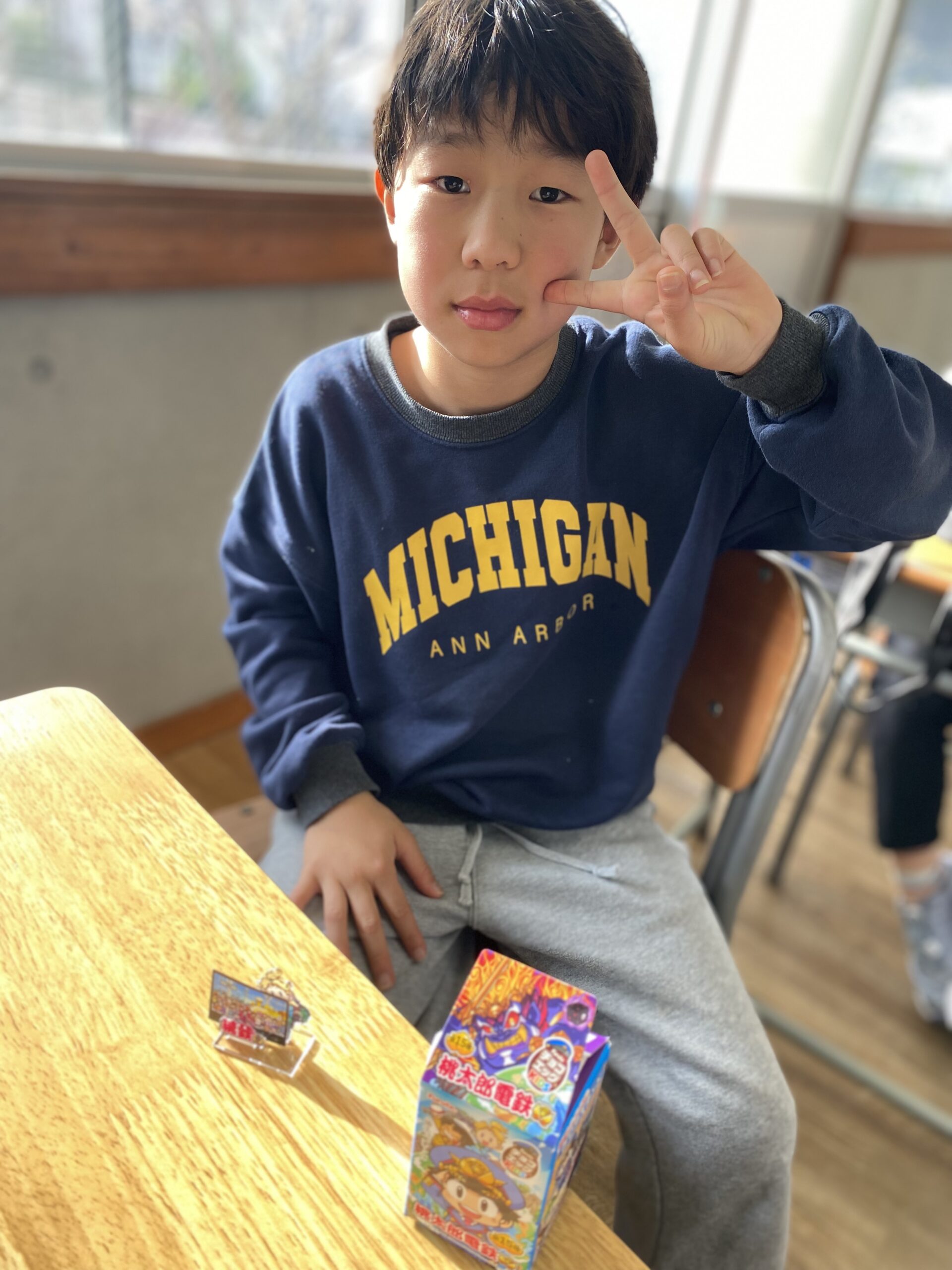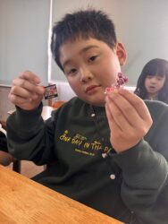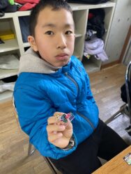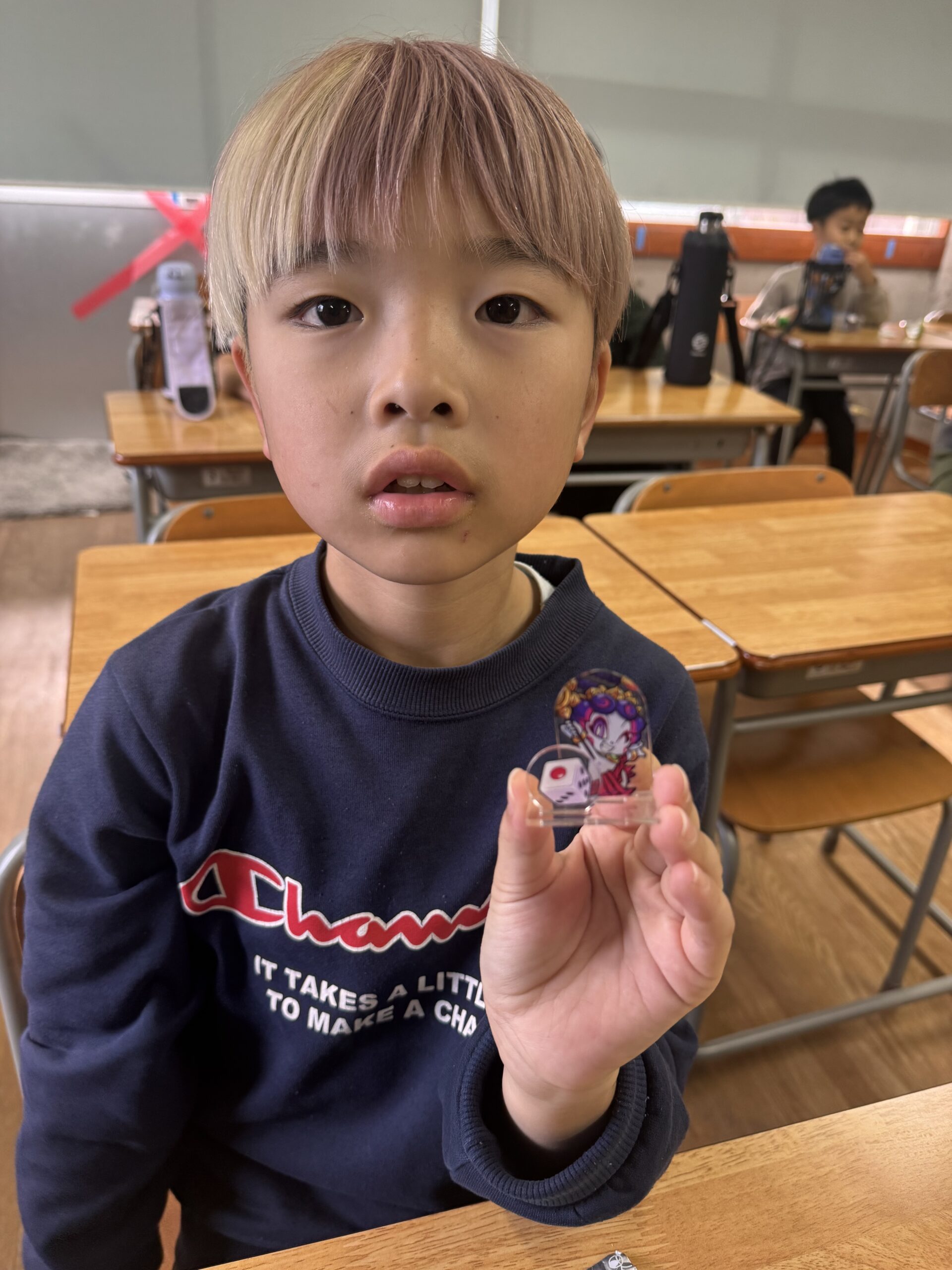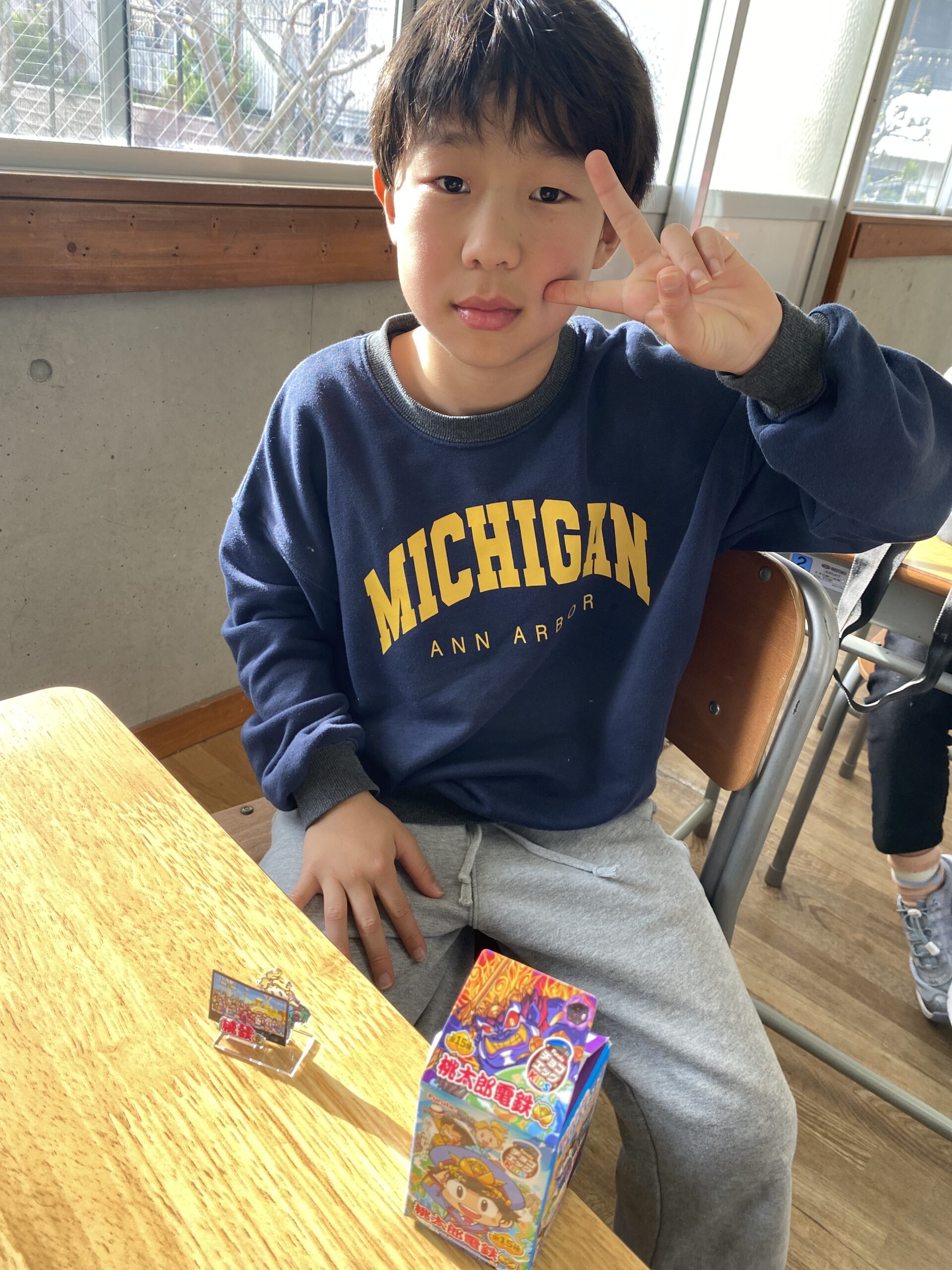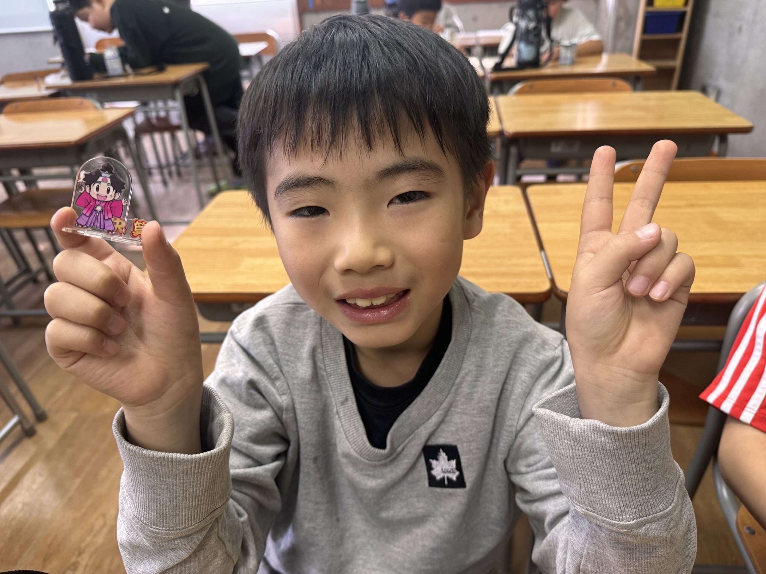 エッグチョコにはアクリルスタンドが付いていて喜んで開けていて
