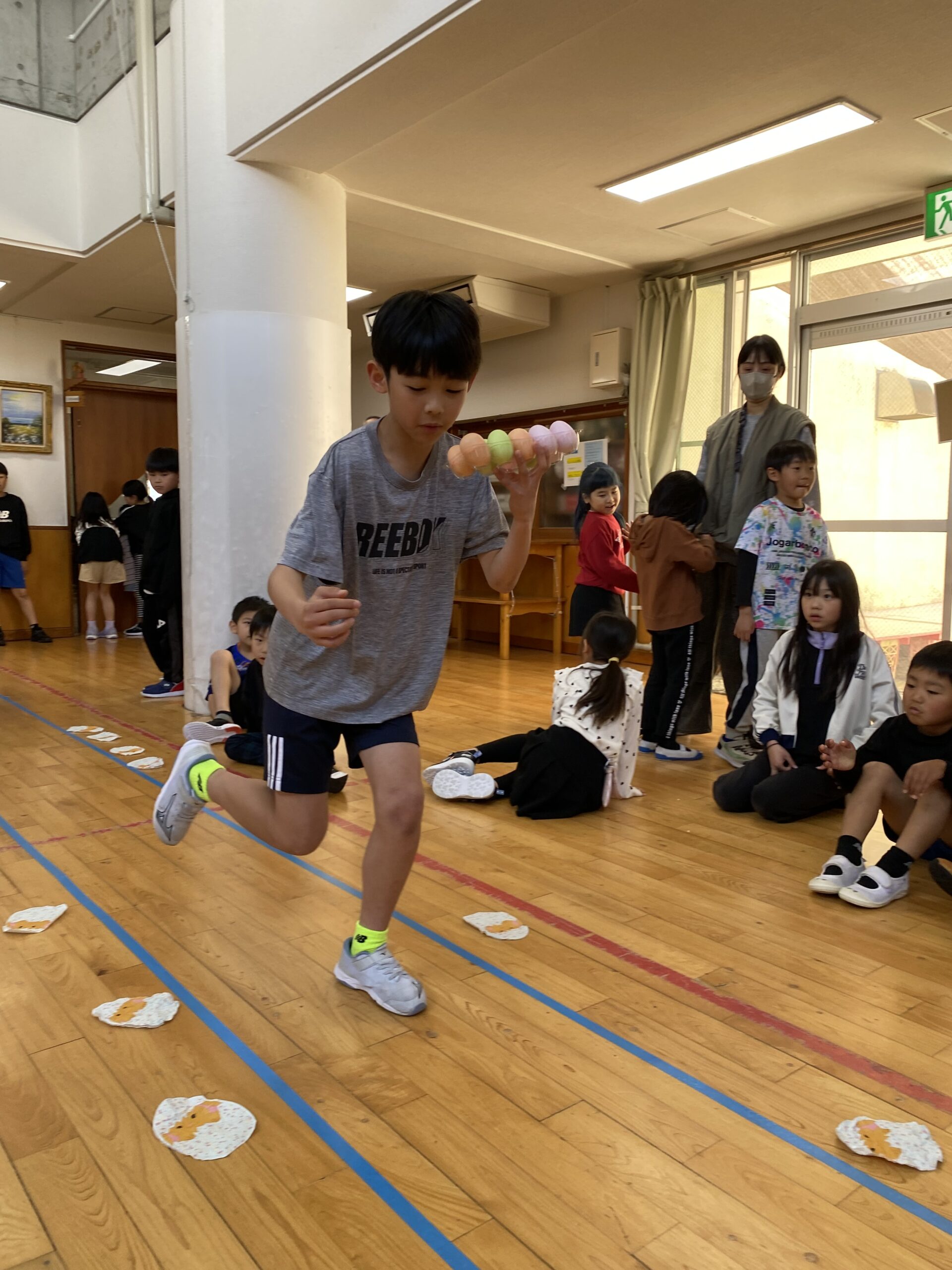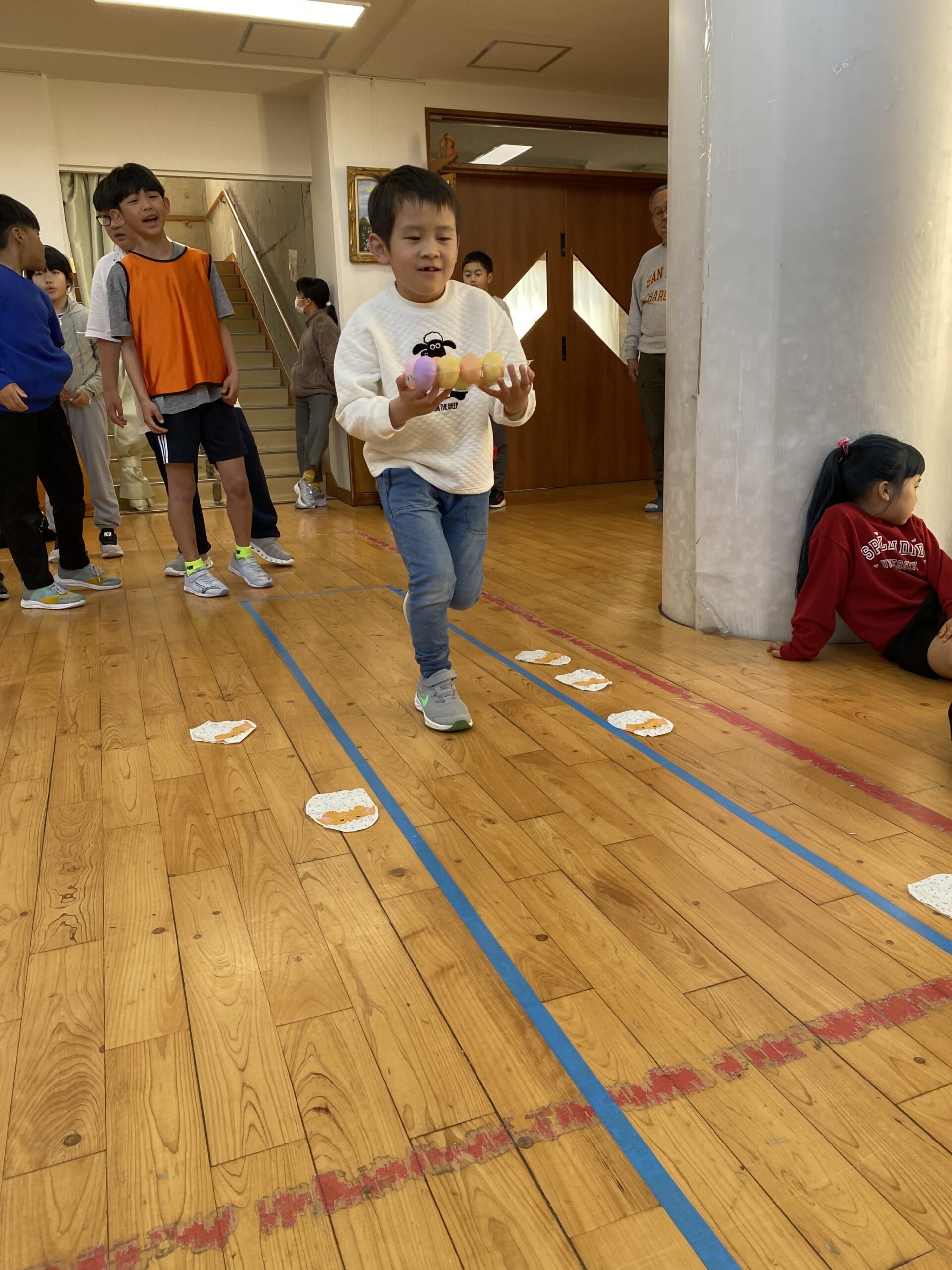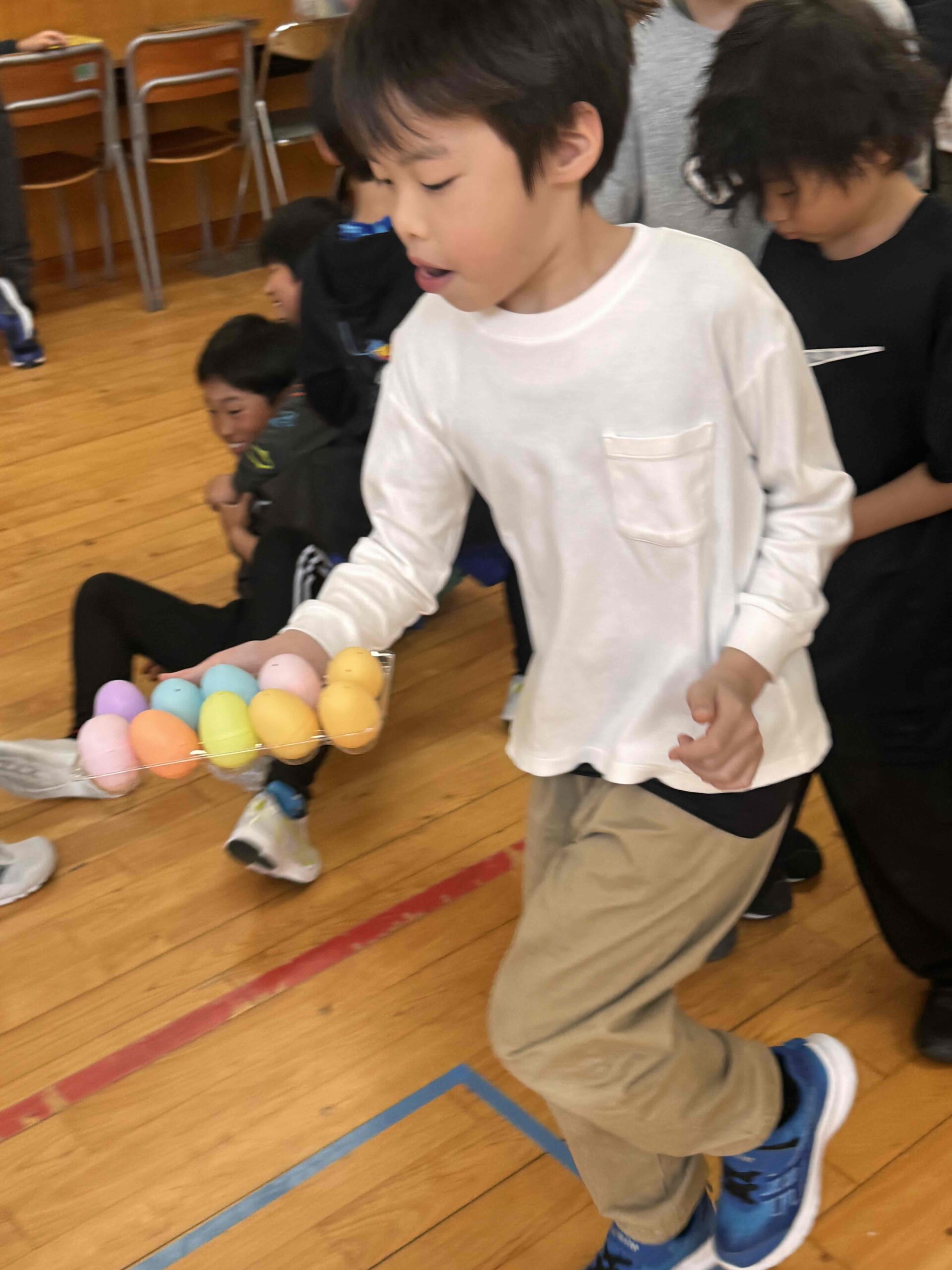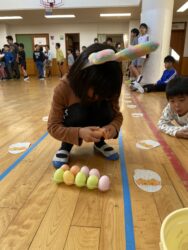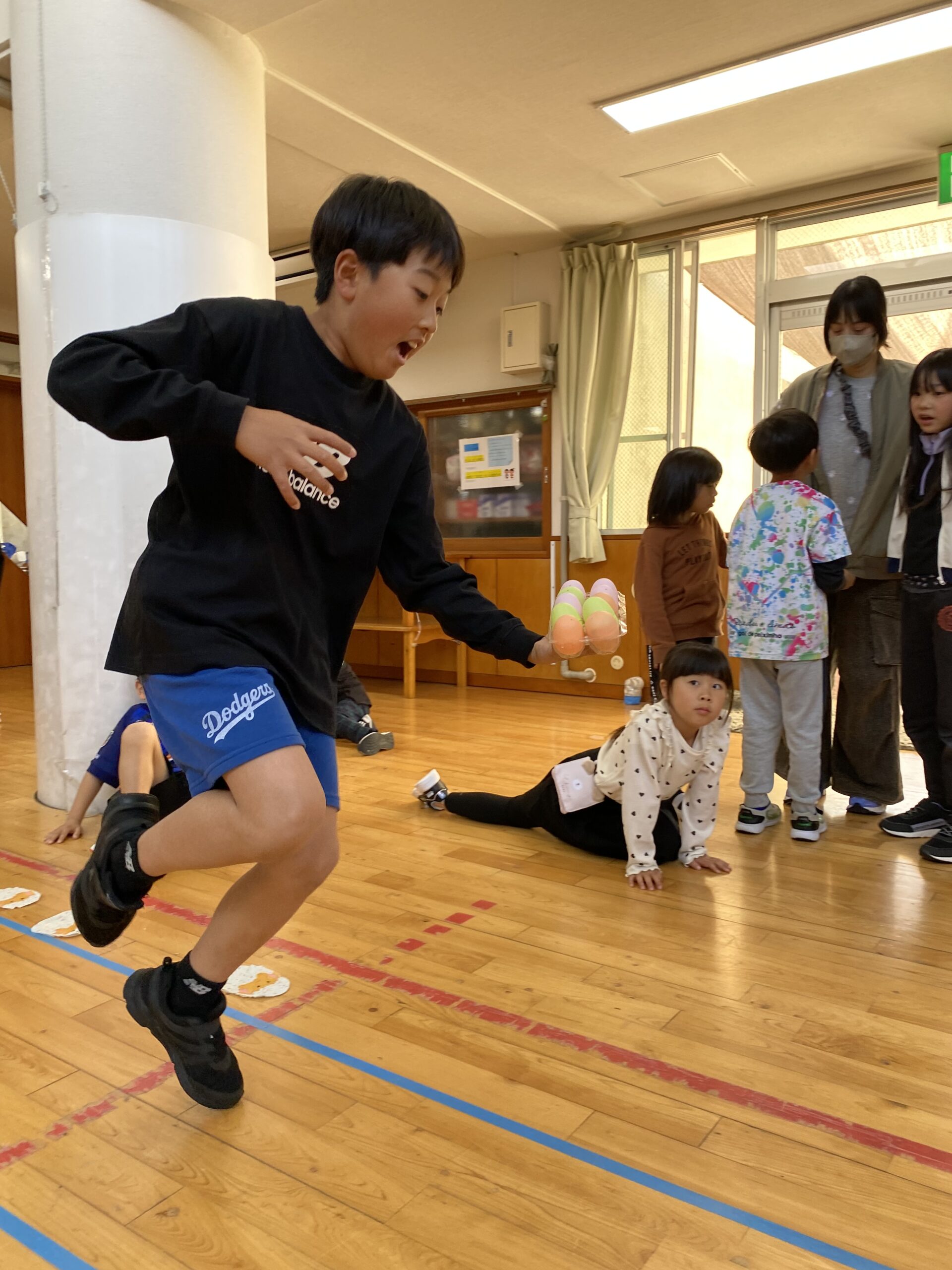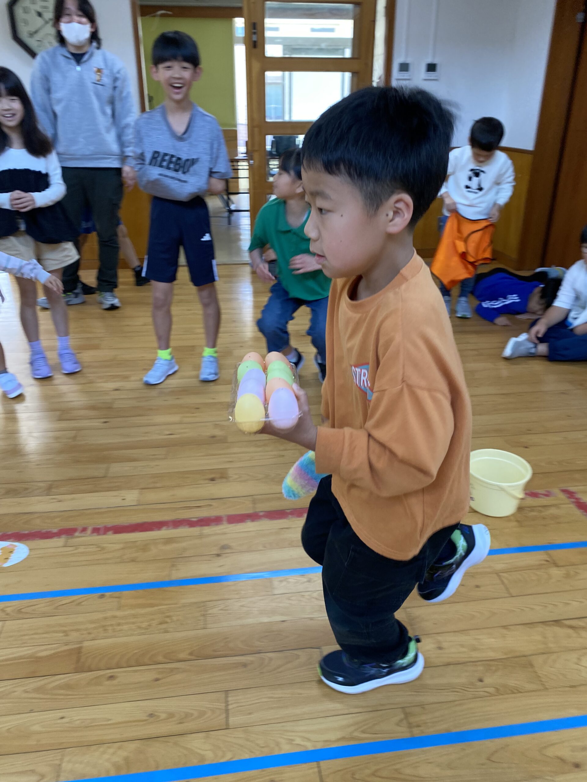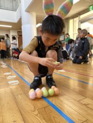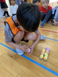 K先生側転しながら卵10個落とさず進みました❣