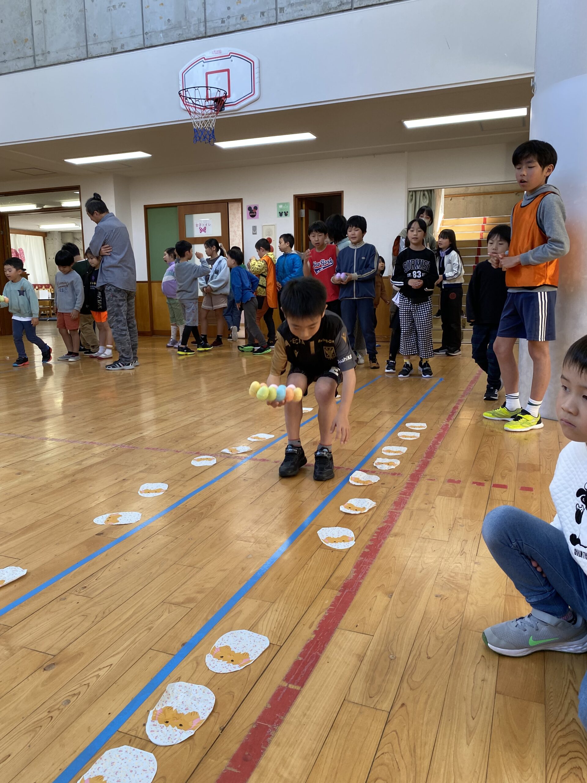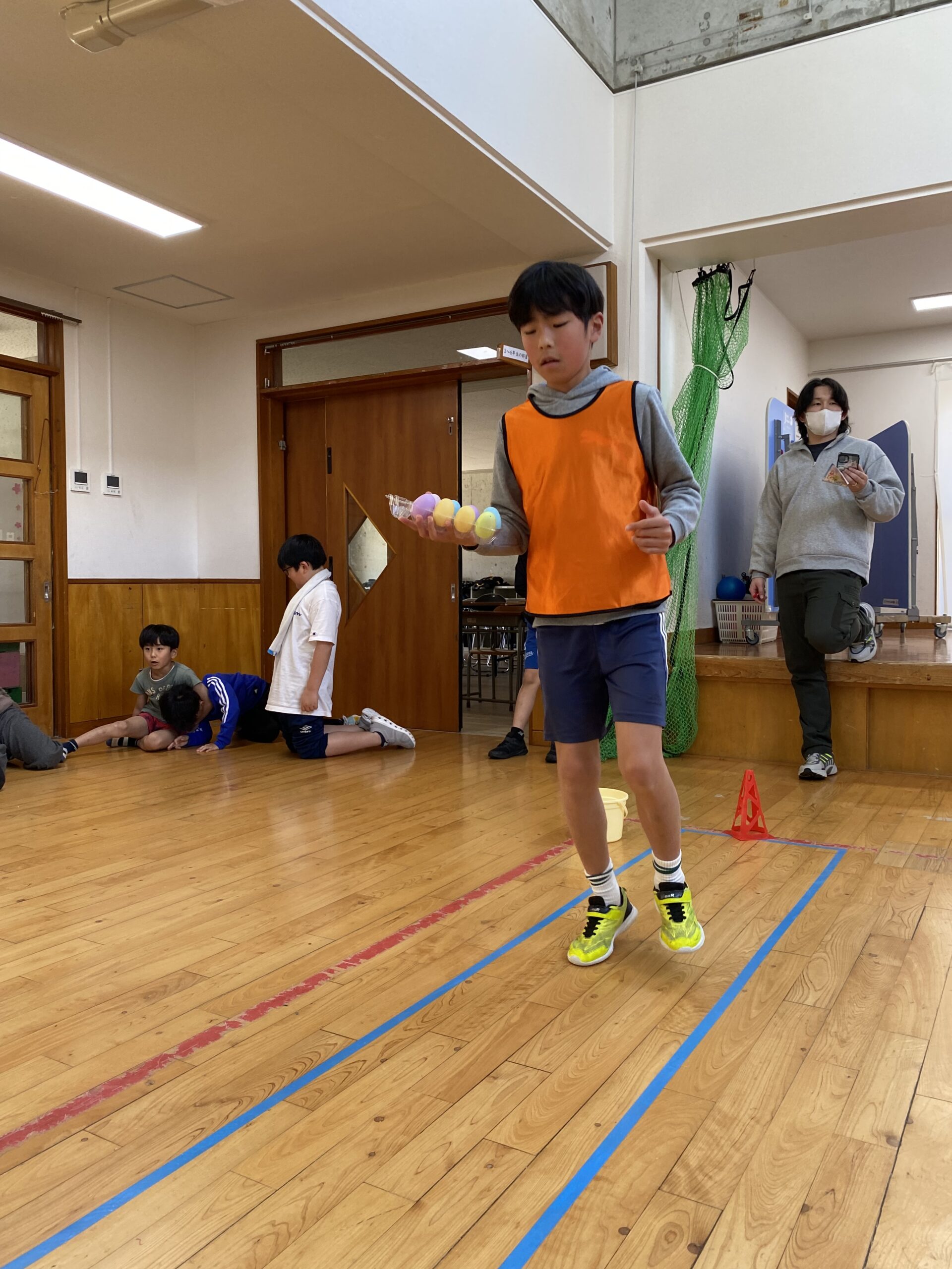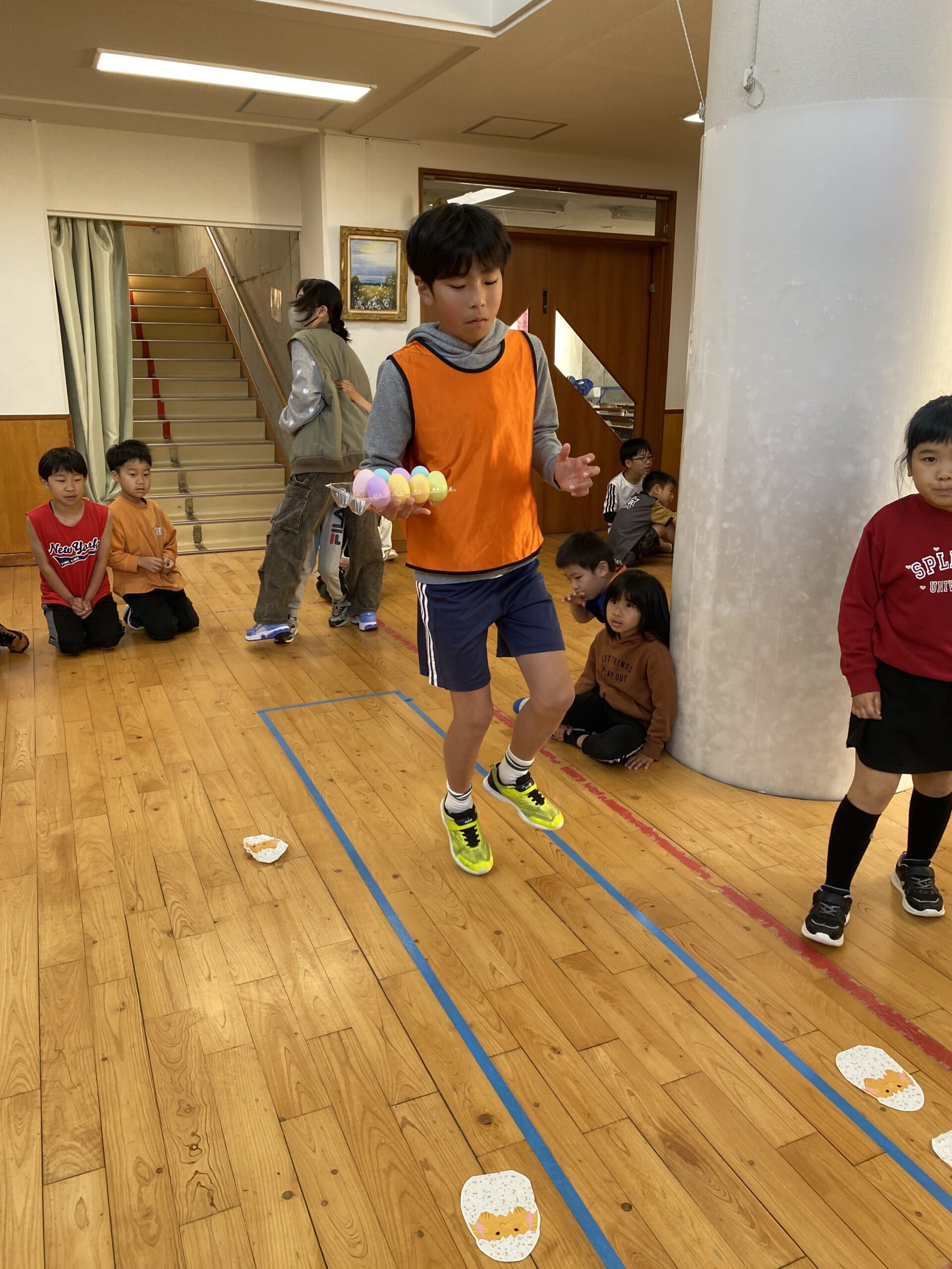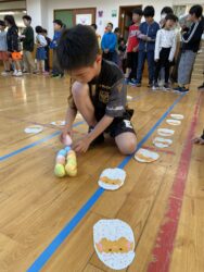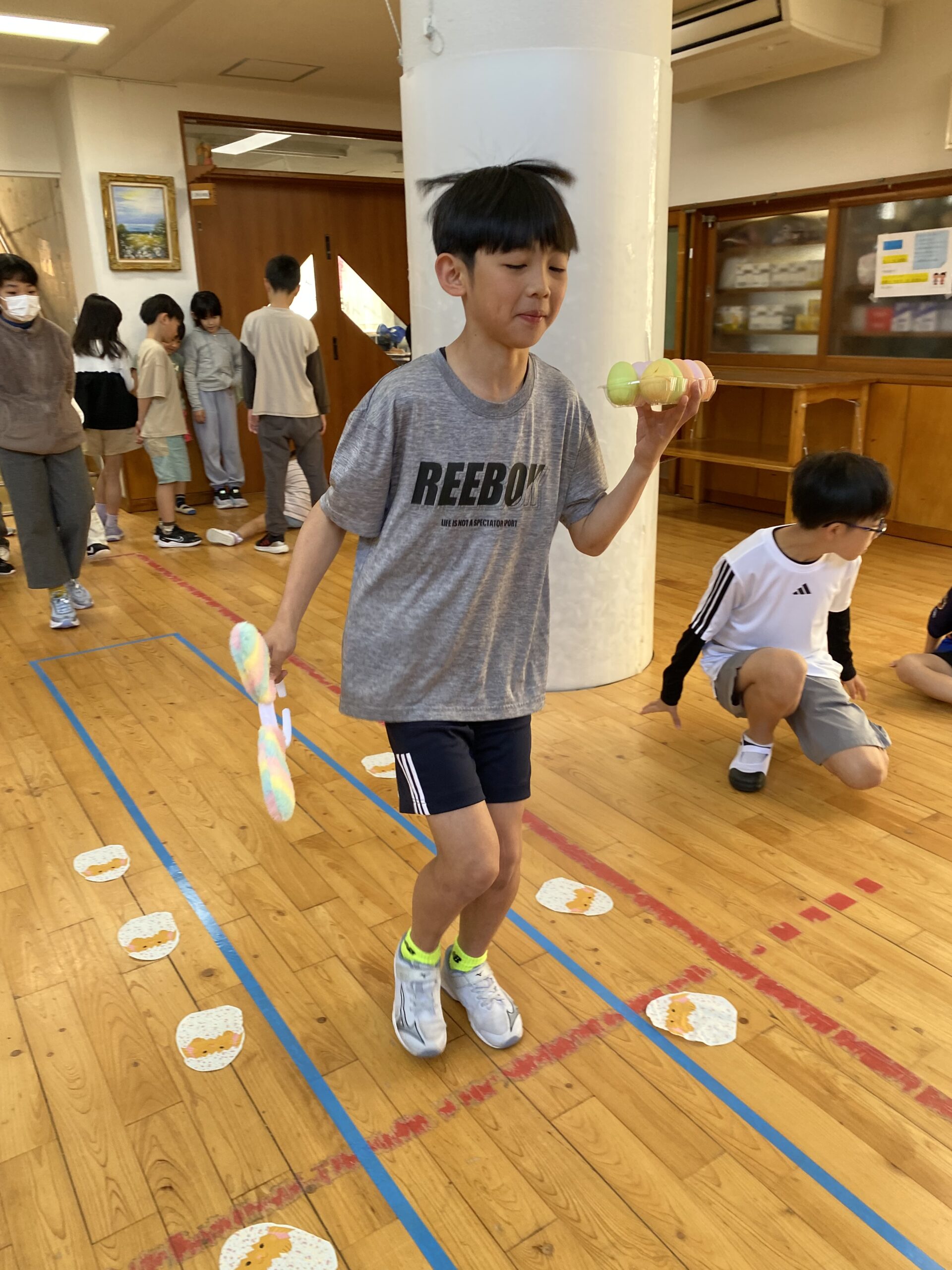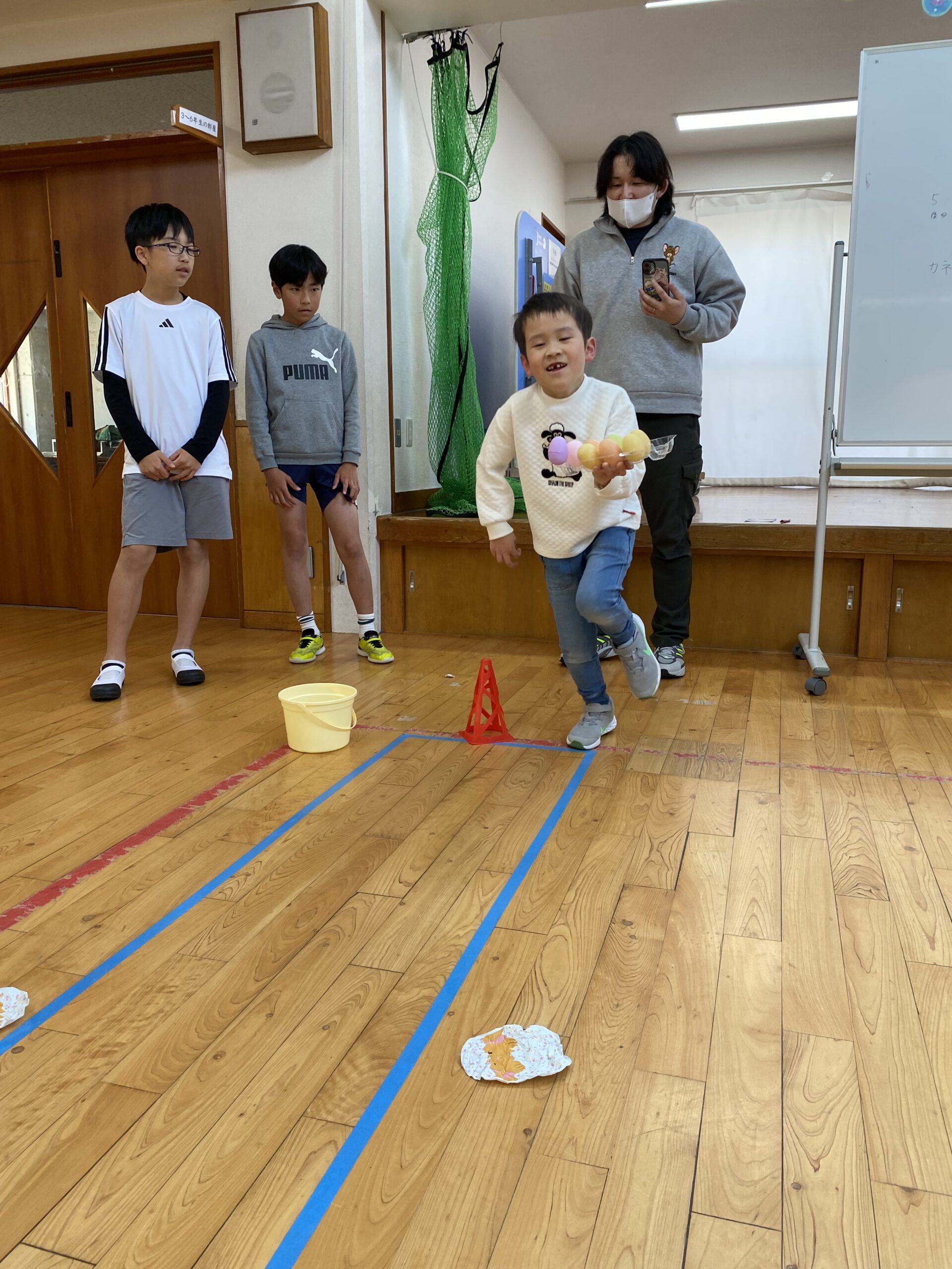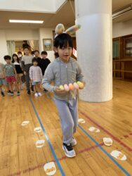 K先生側転しながら卵10個落とさず進みました❣