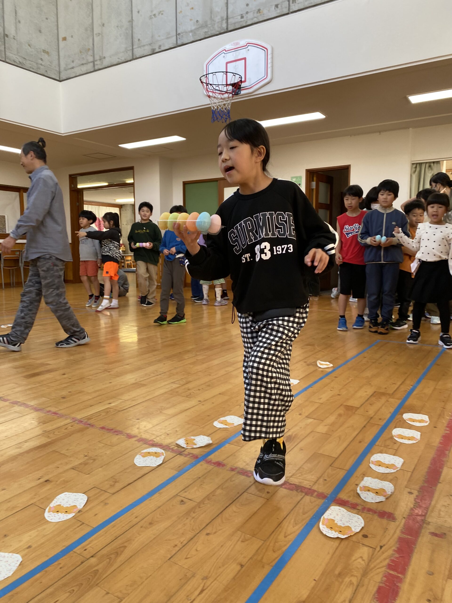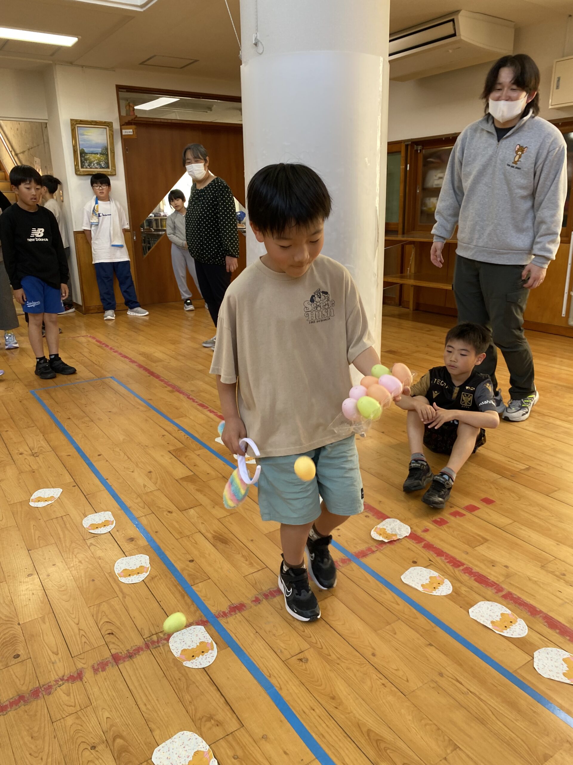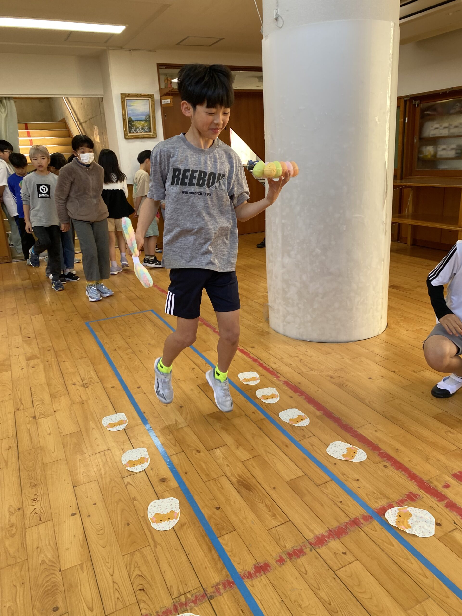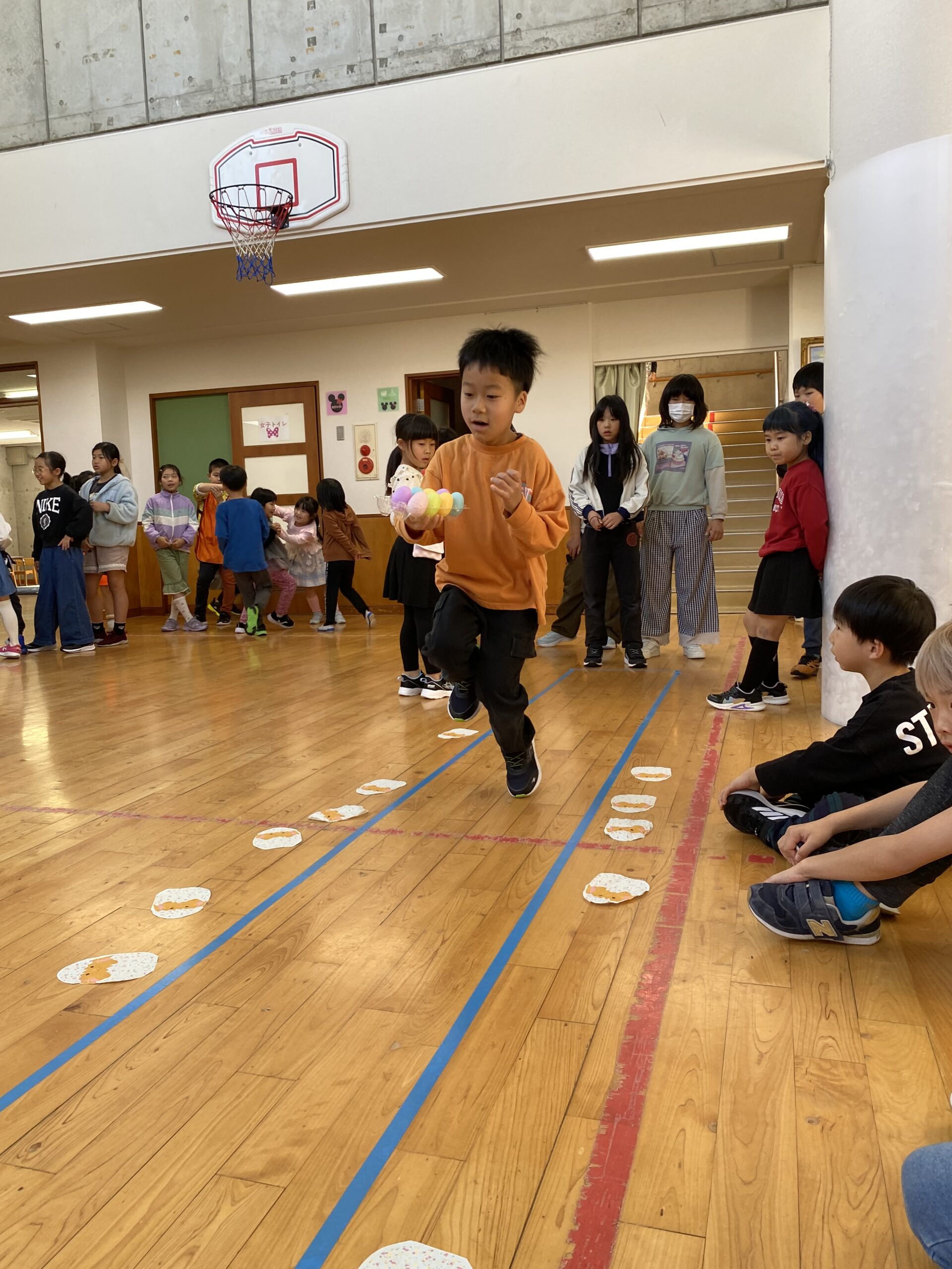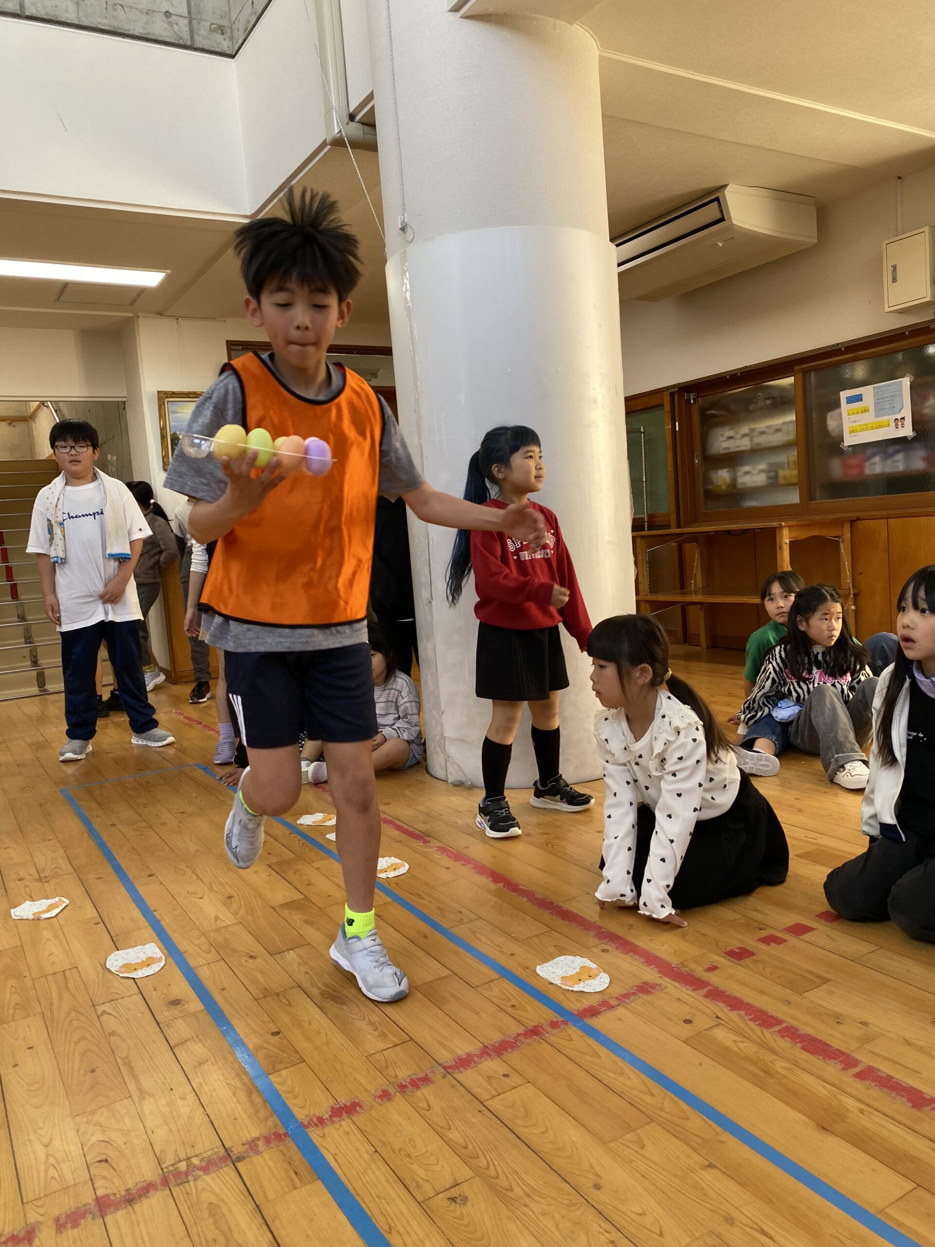 K先生側転しながら卵10個落とさず進みました❣