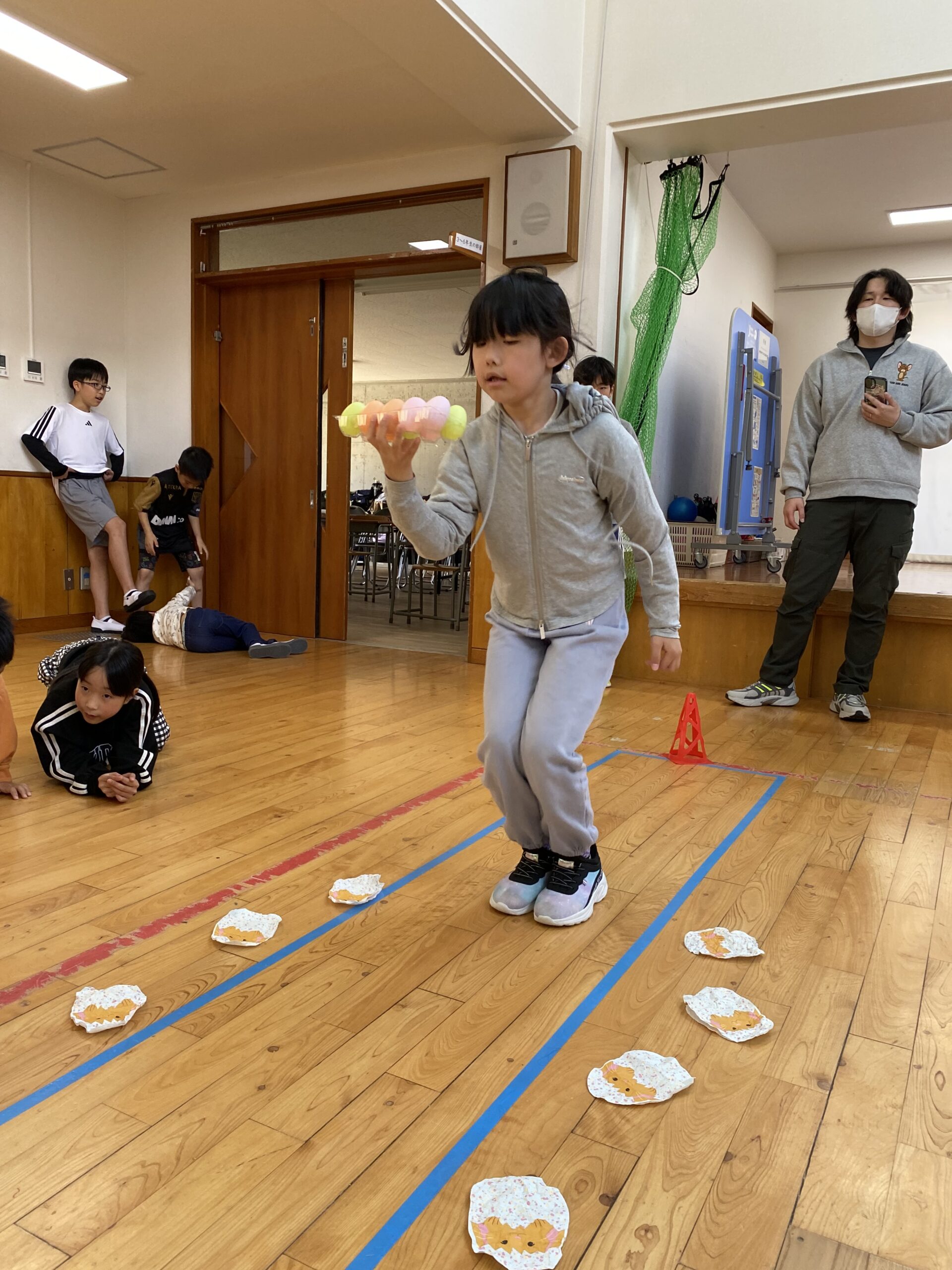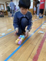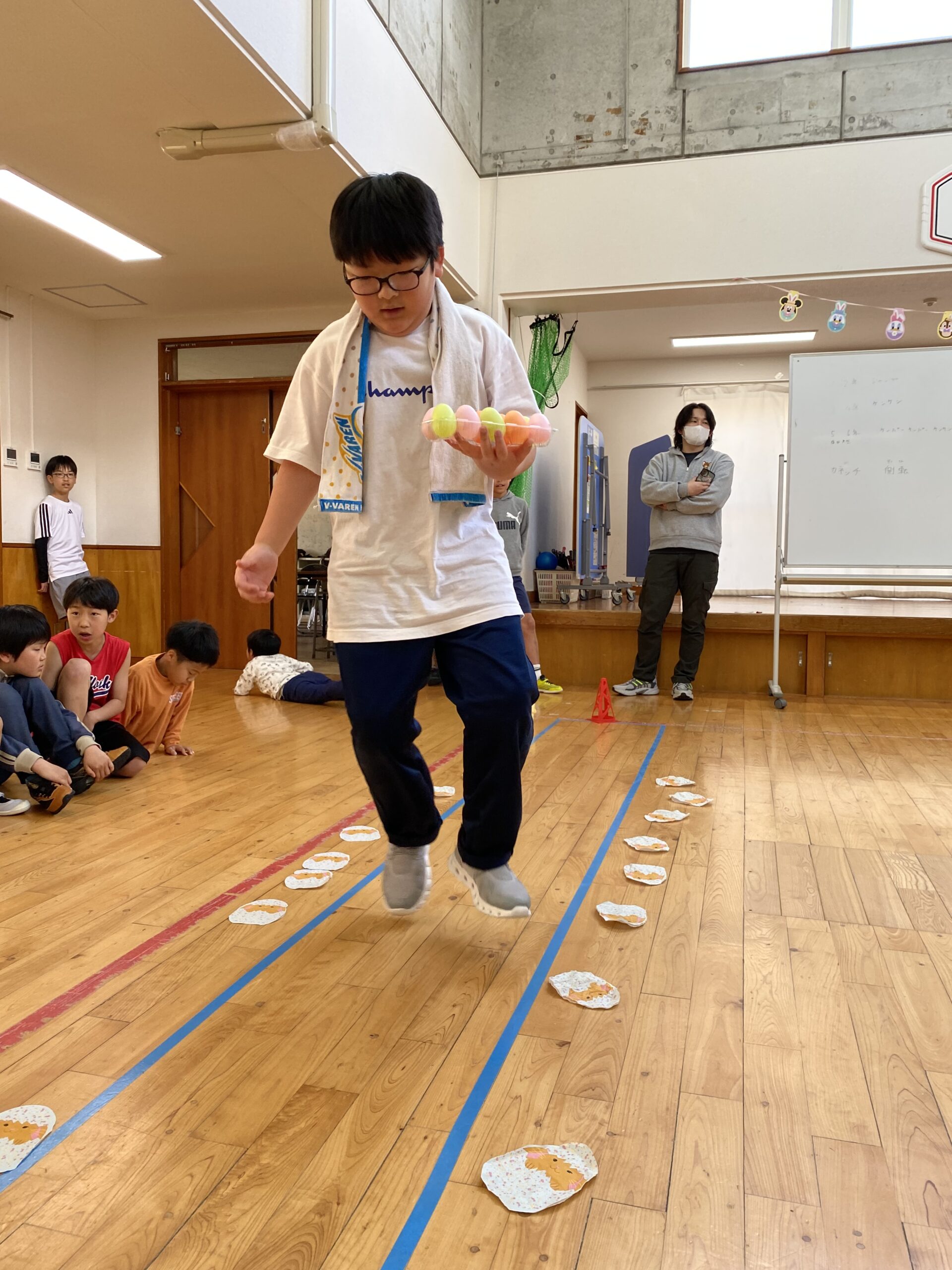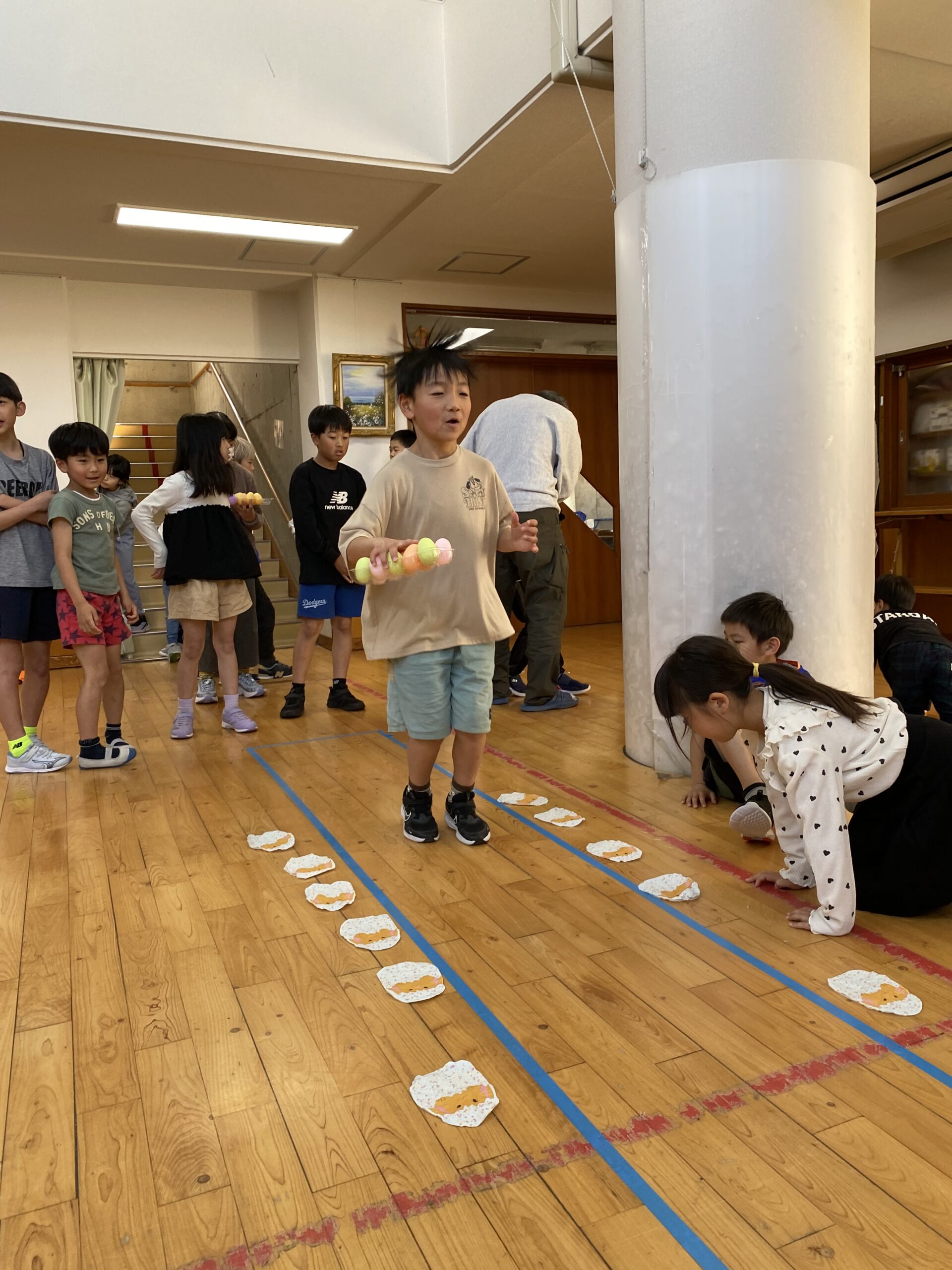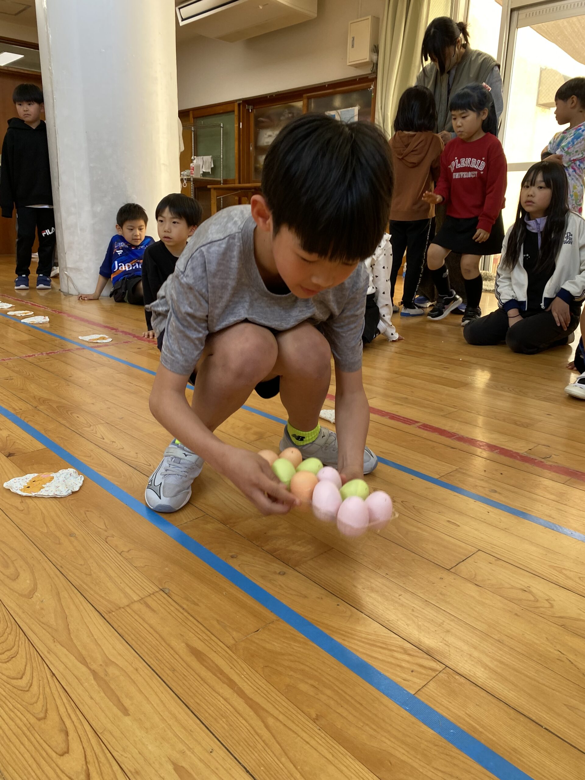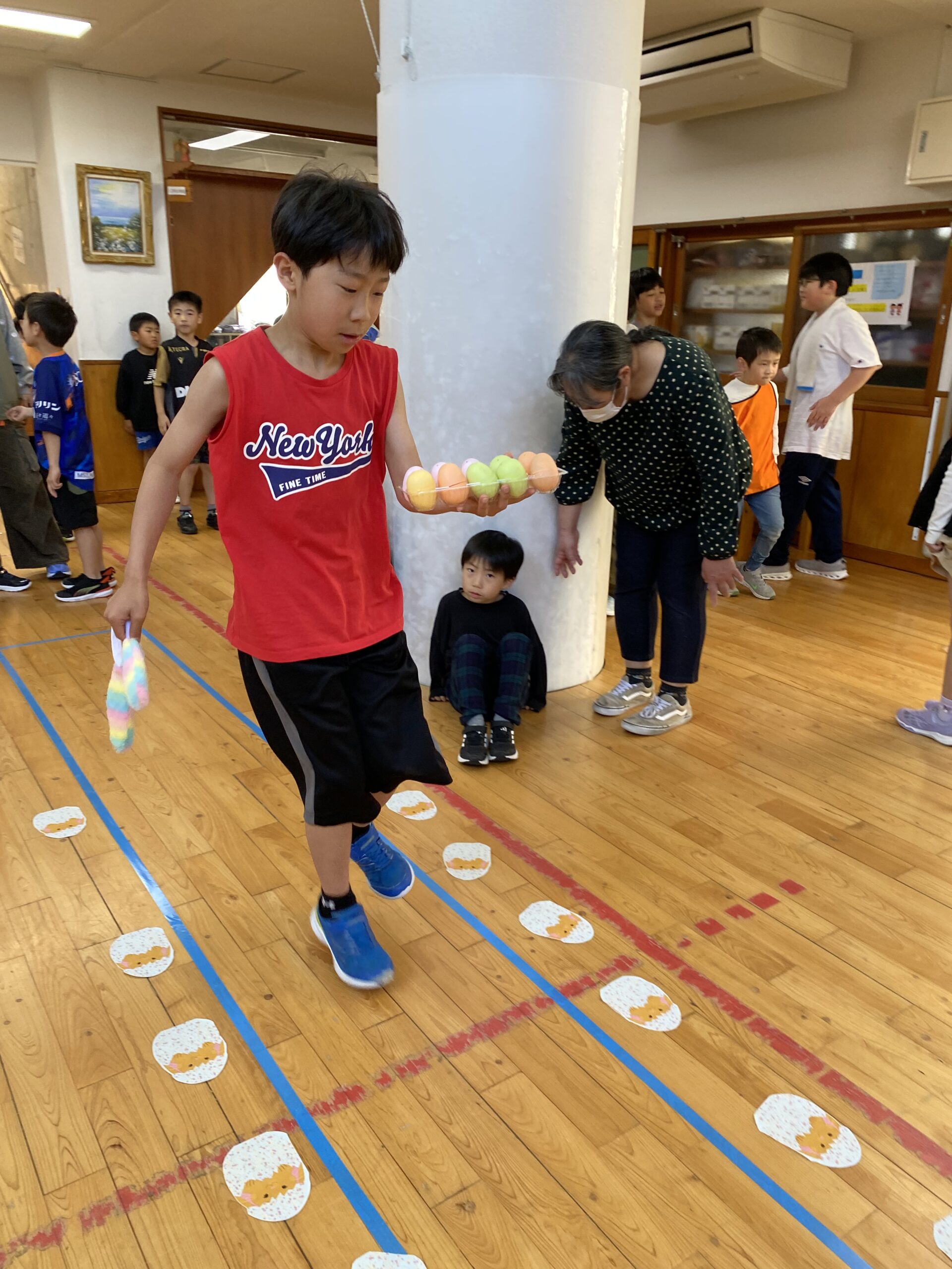 K先生側転しながら卵10個落とさず進みました❣