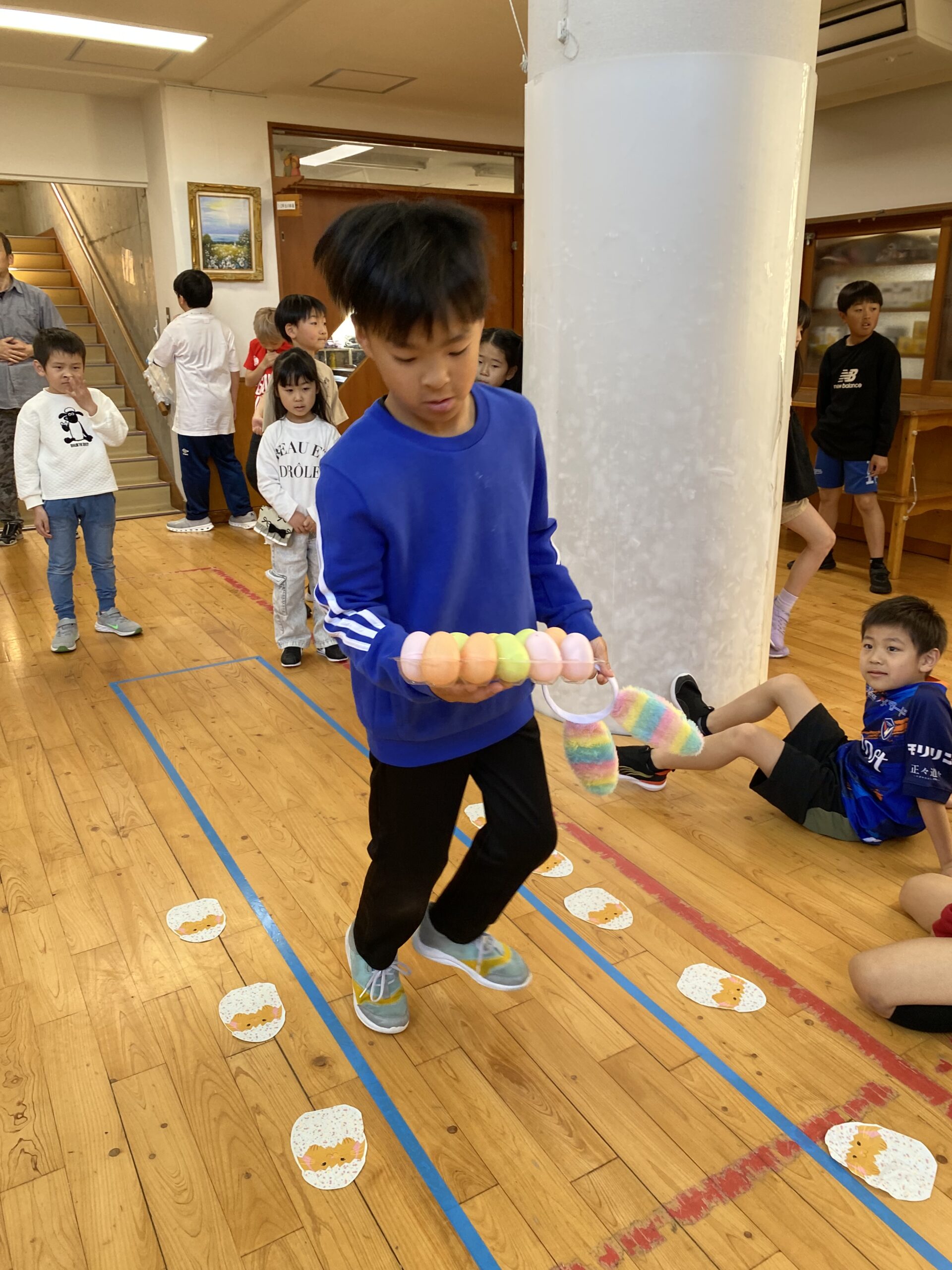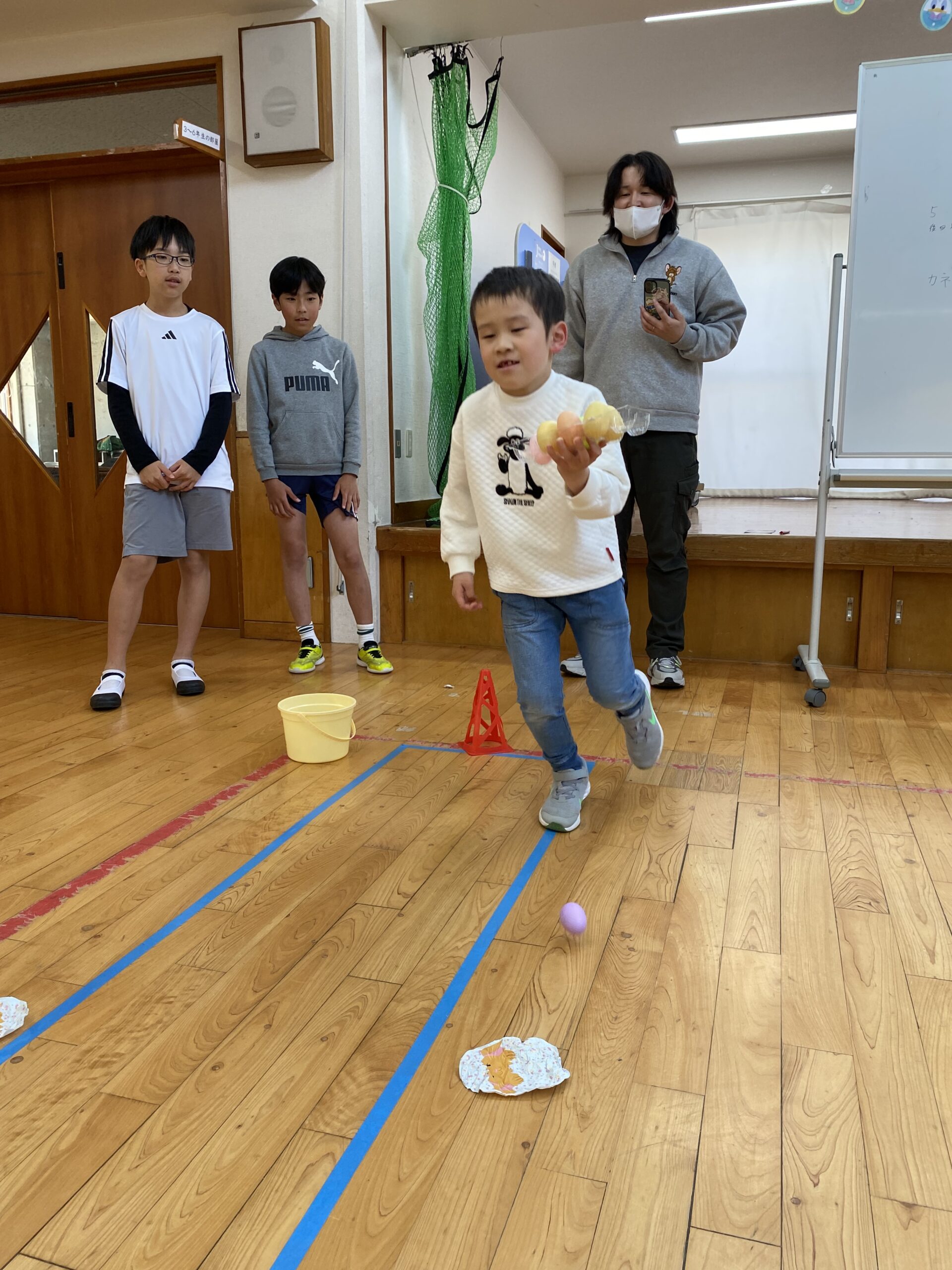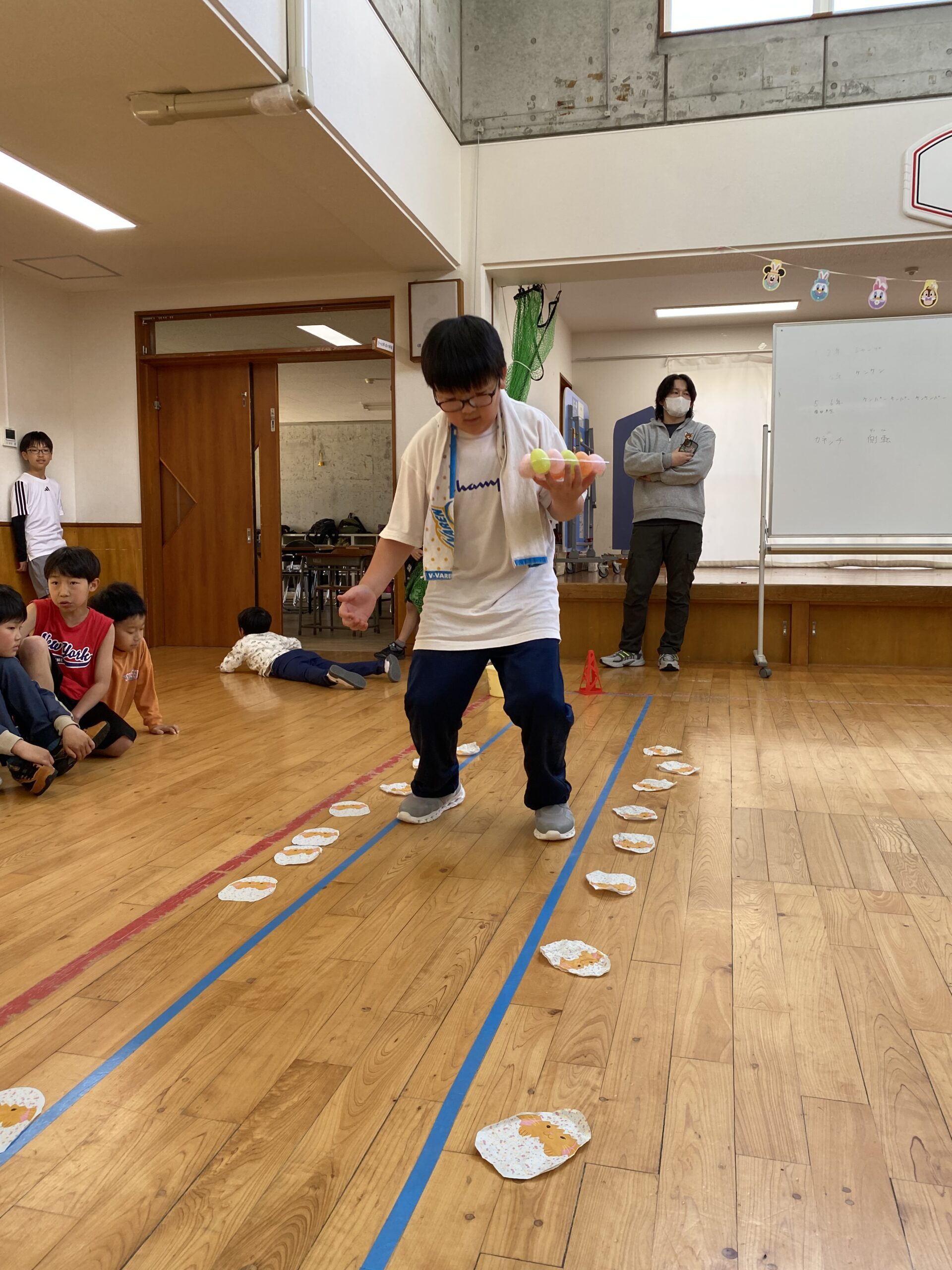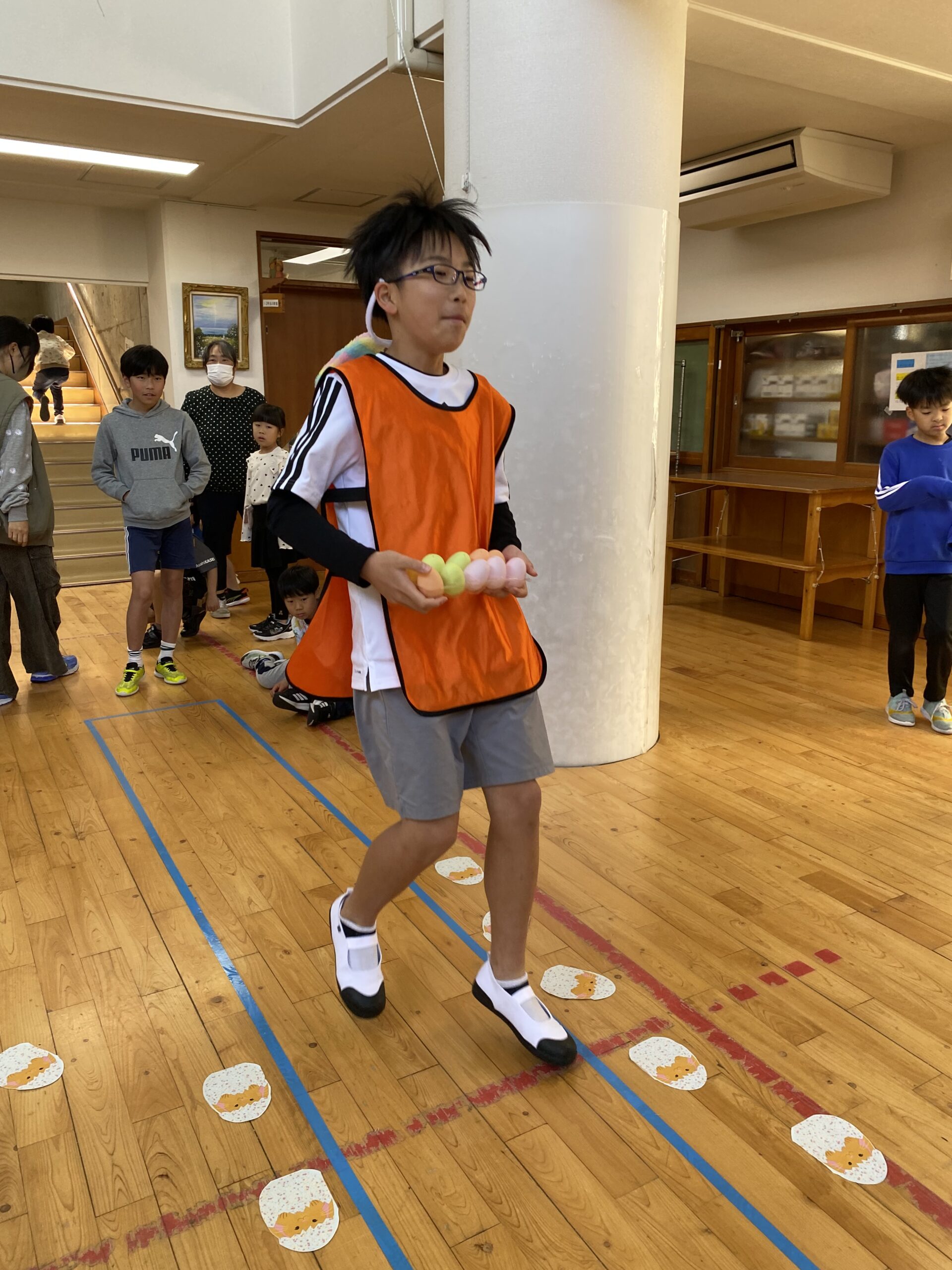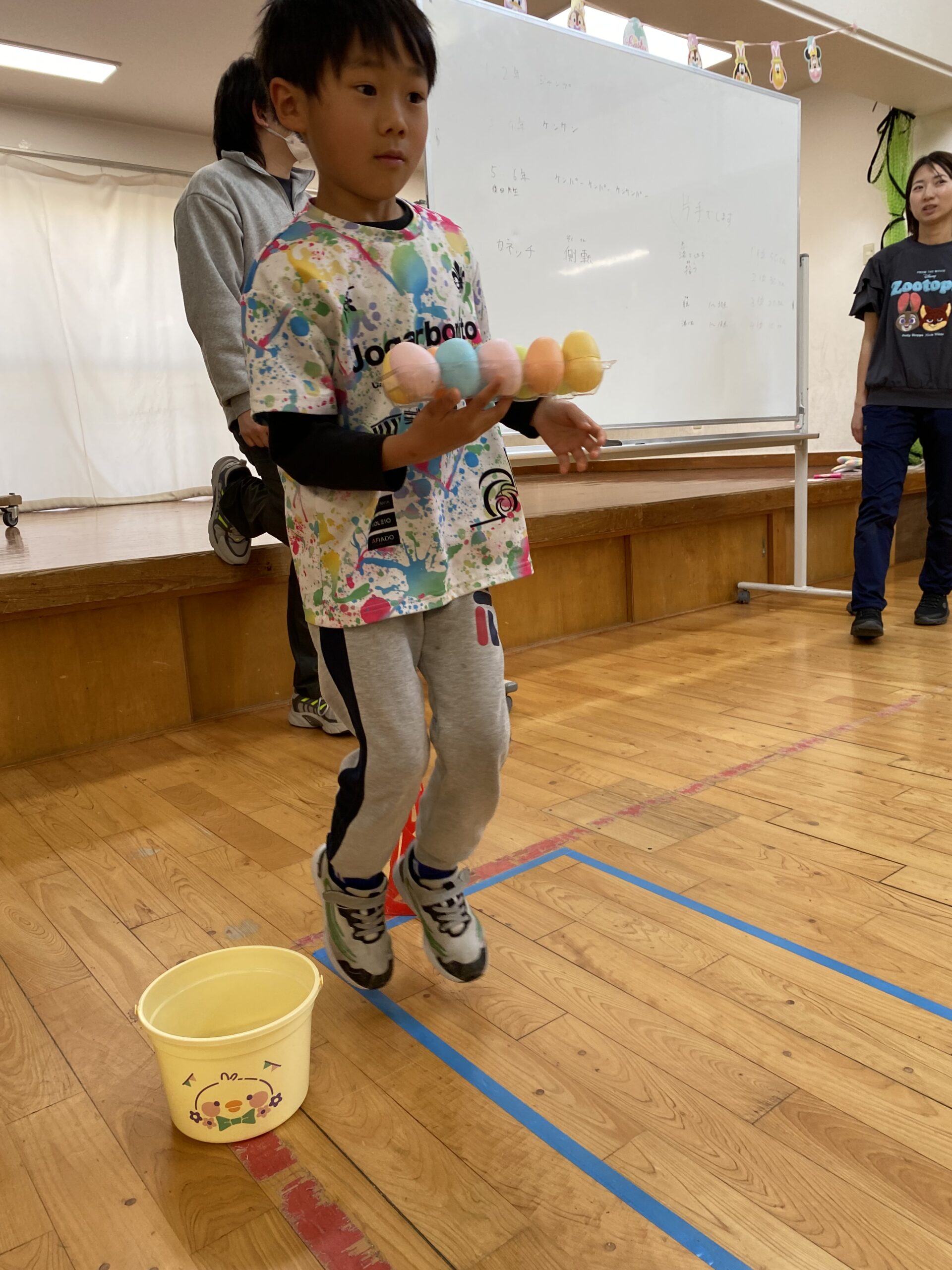 K先生側転しながら卵10個落とさず進みました❣