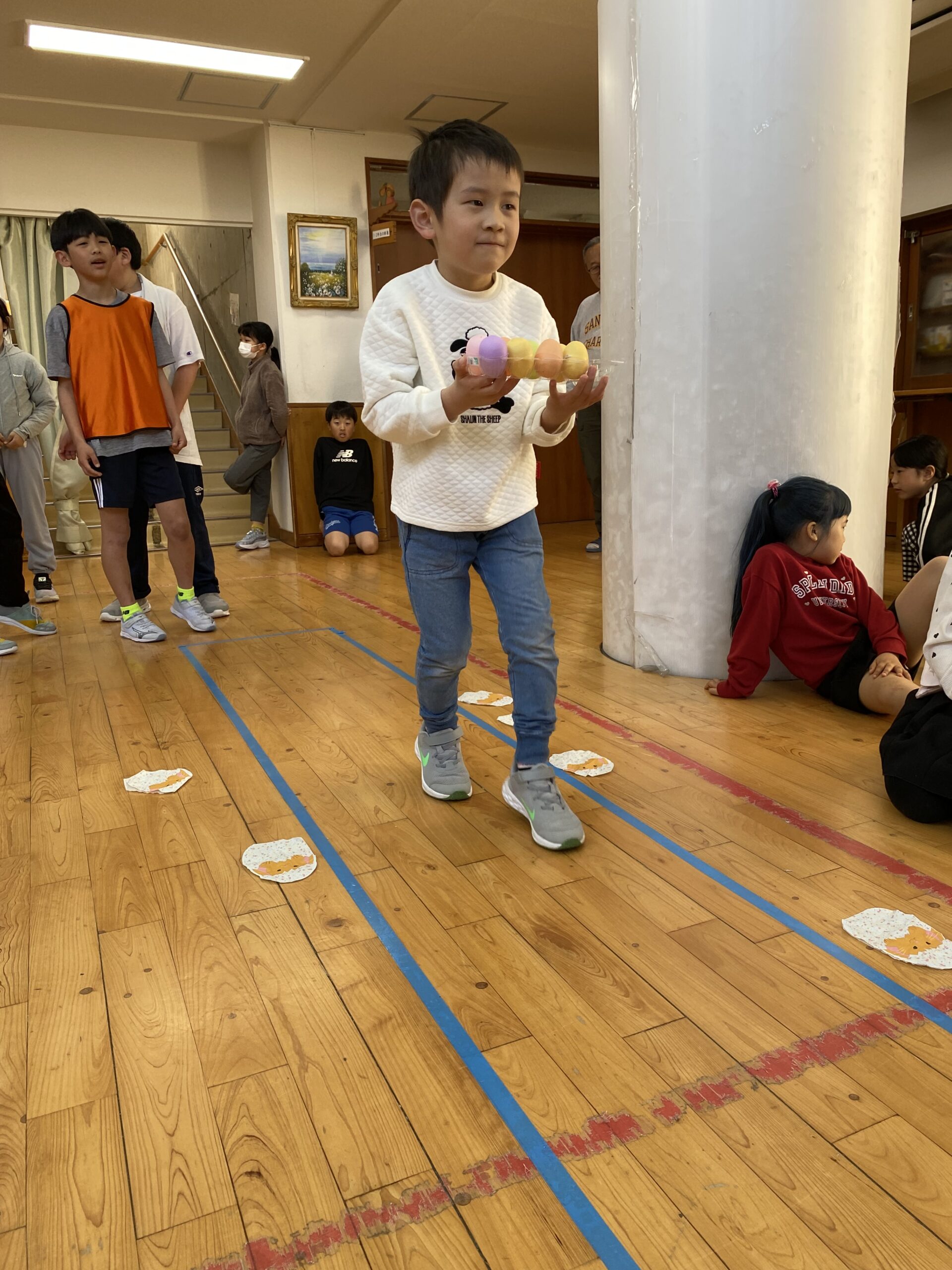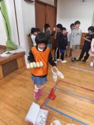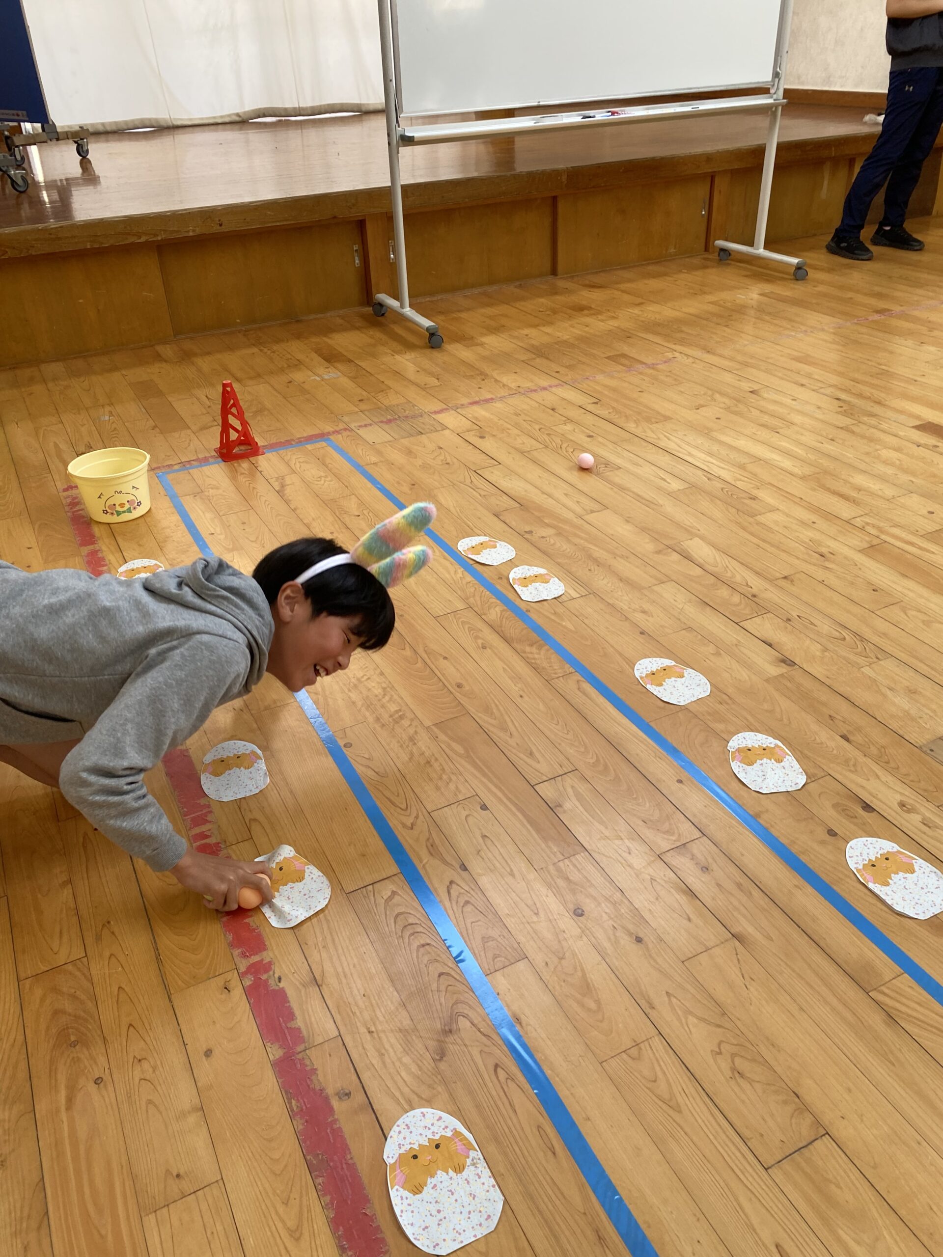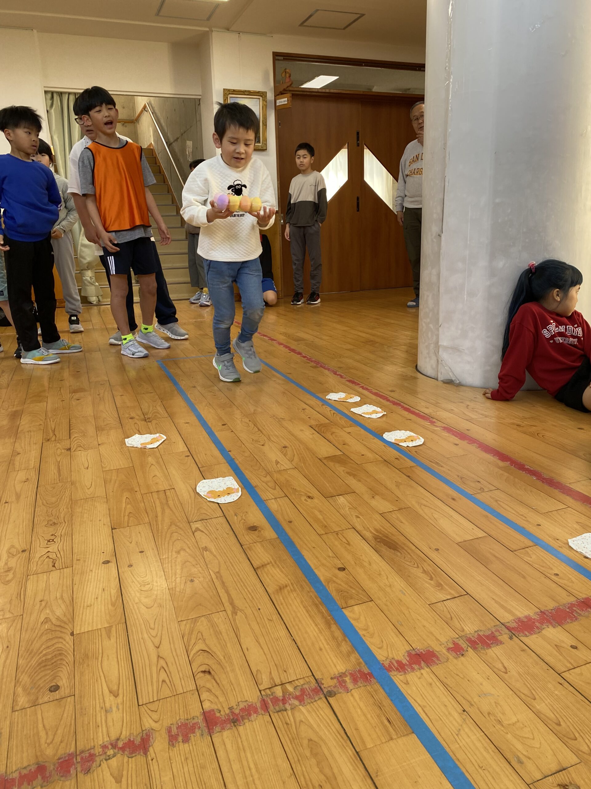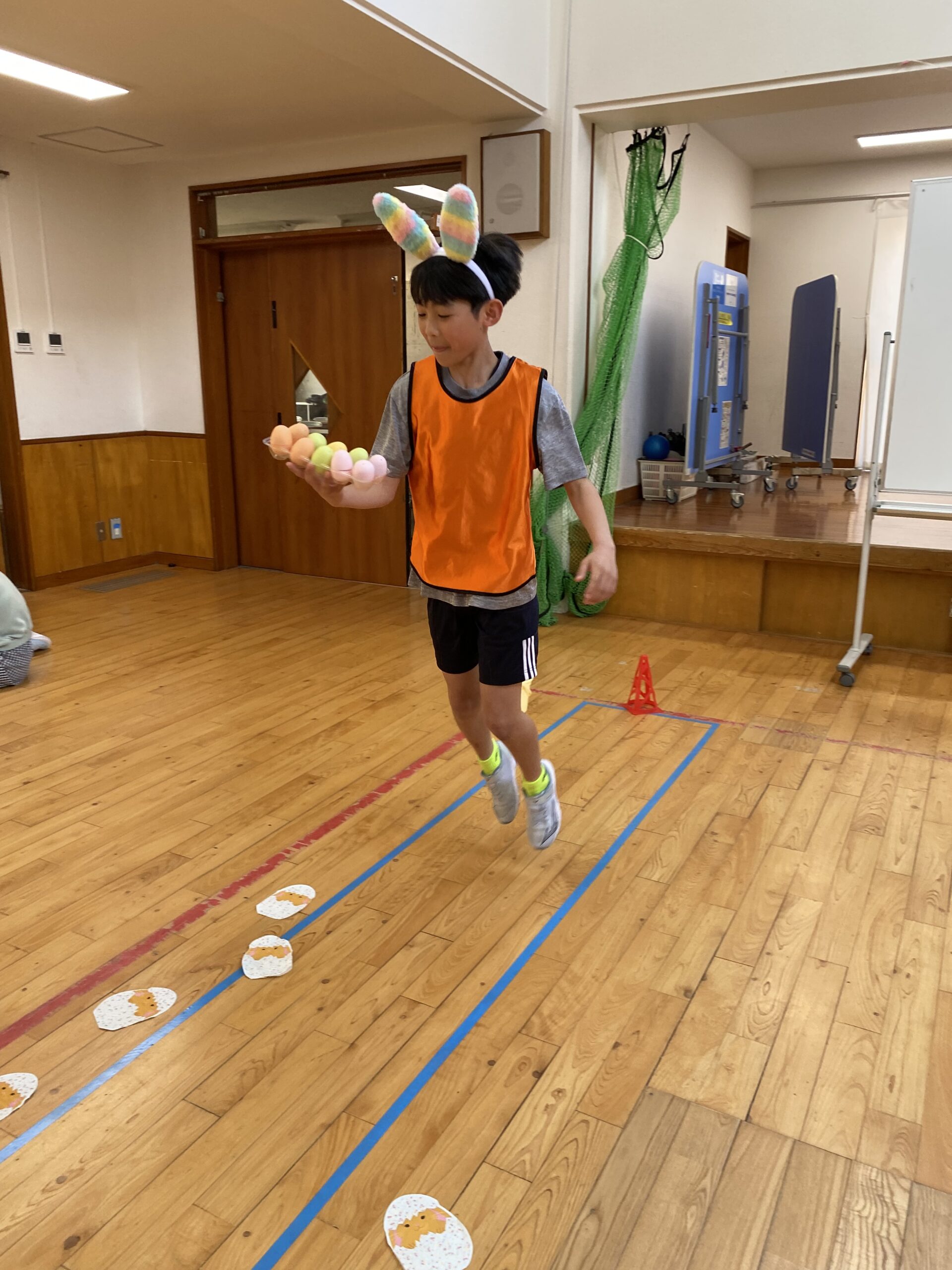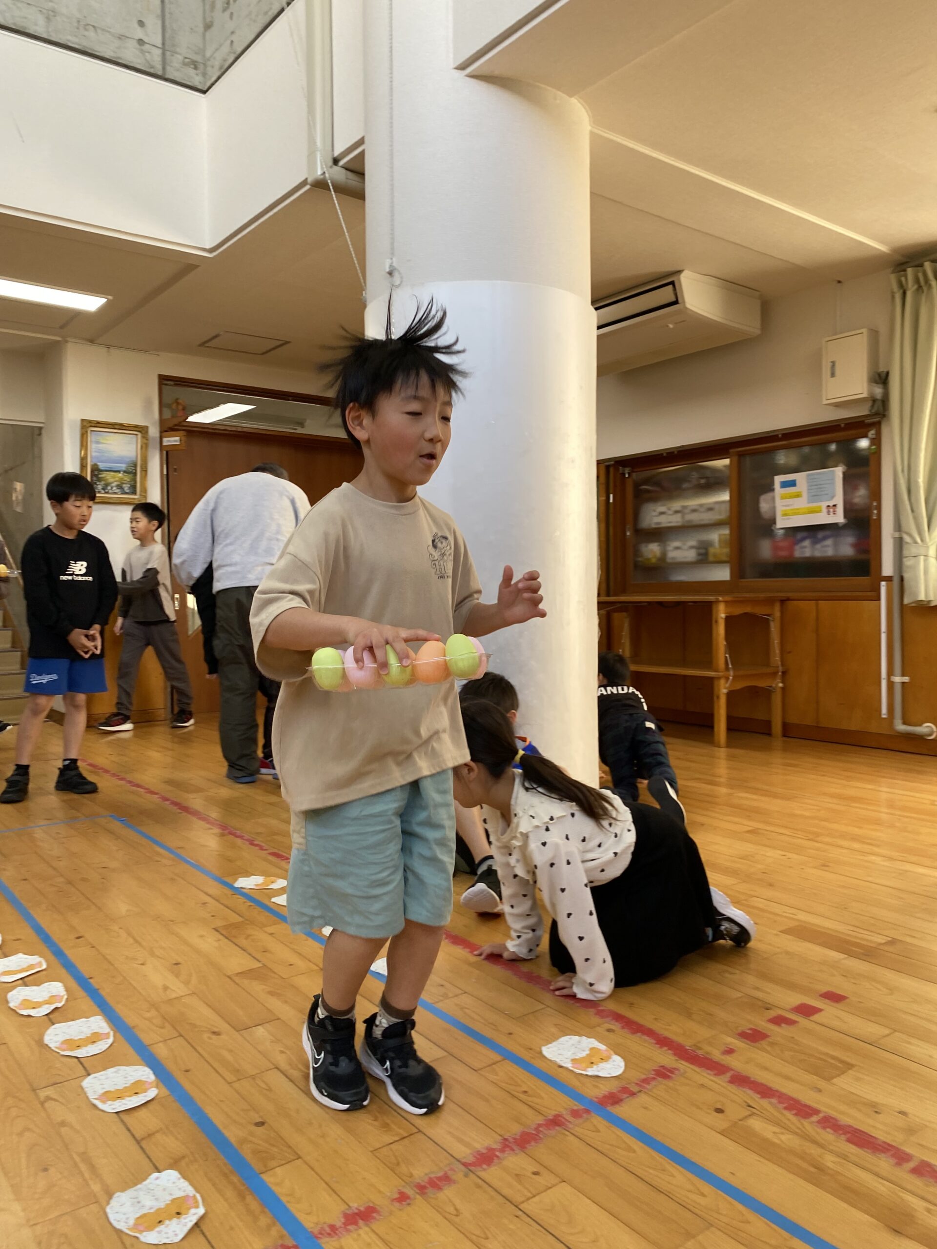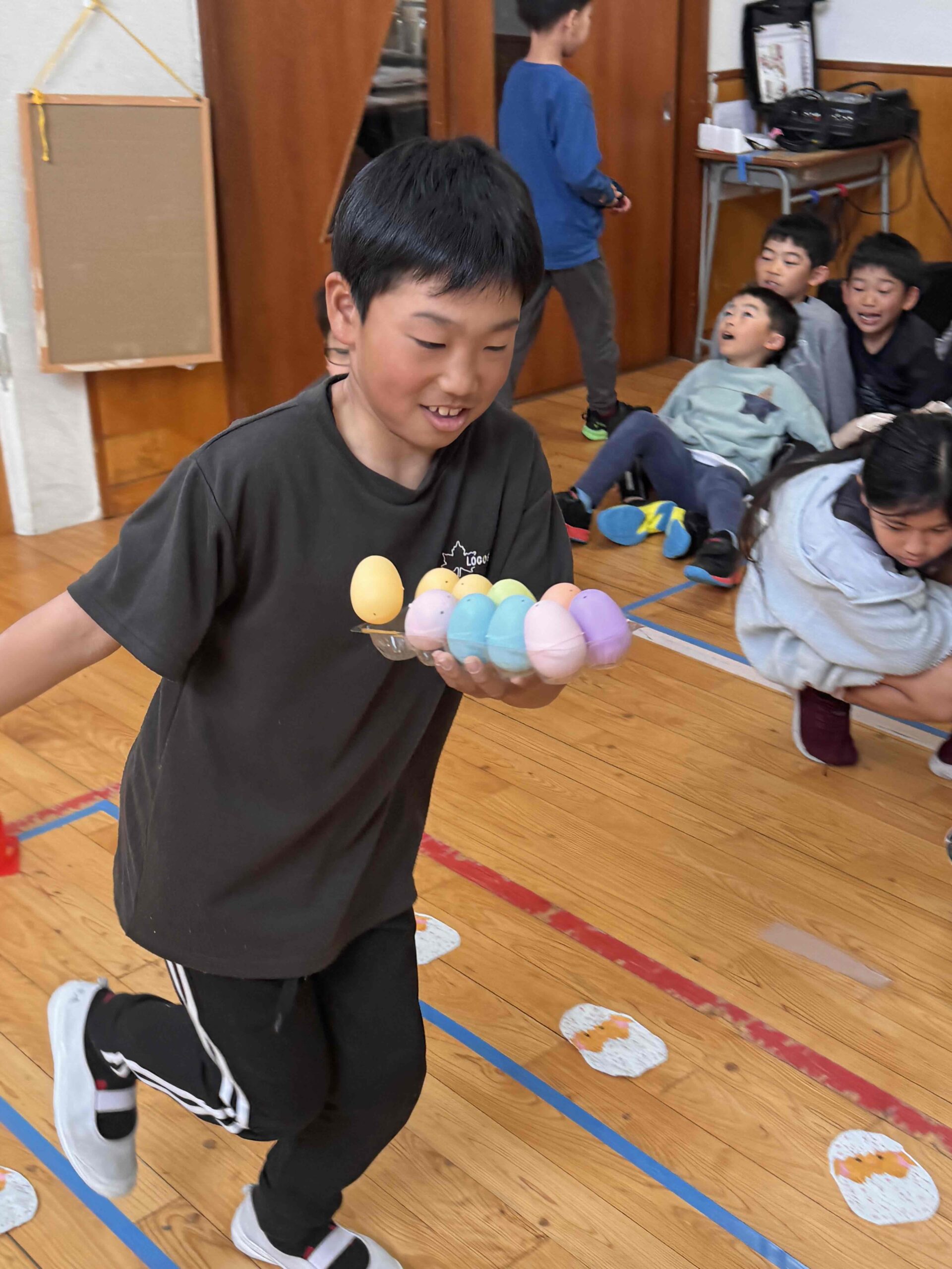 K先生側転しながら卵10個落とさず進みました❣