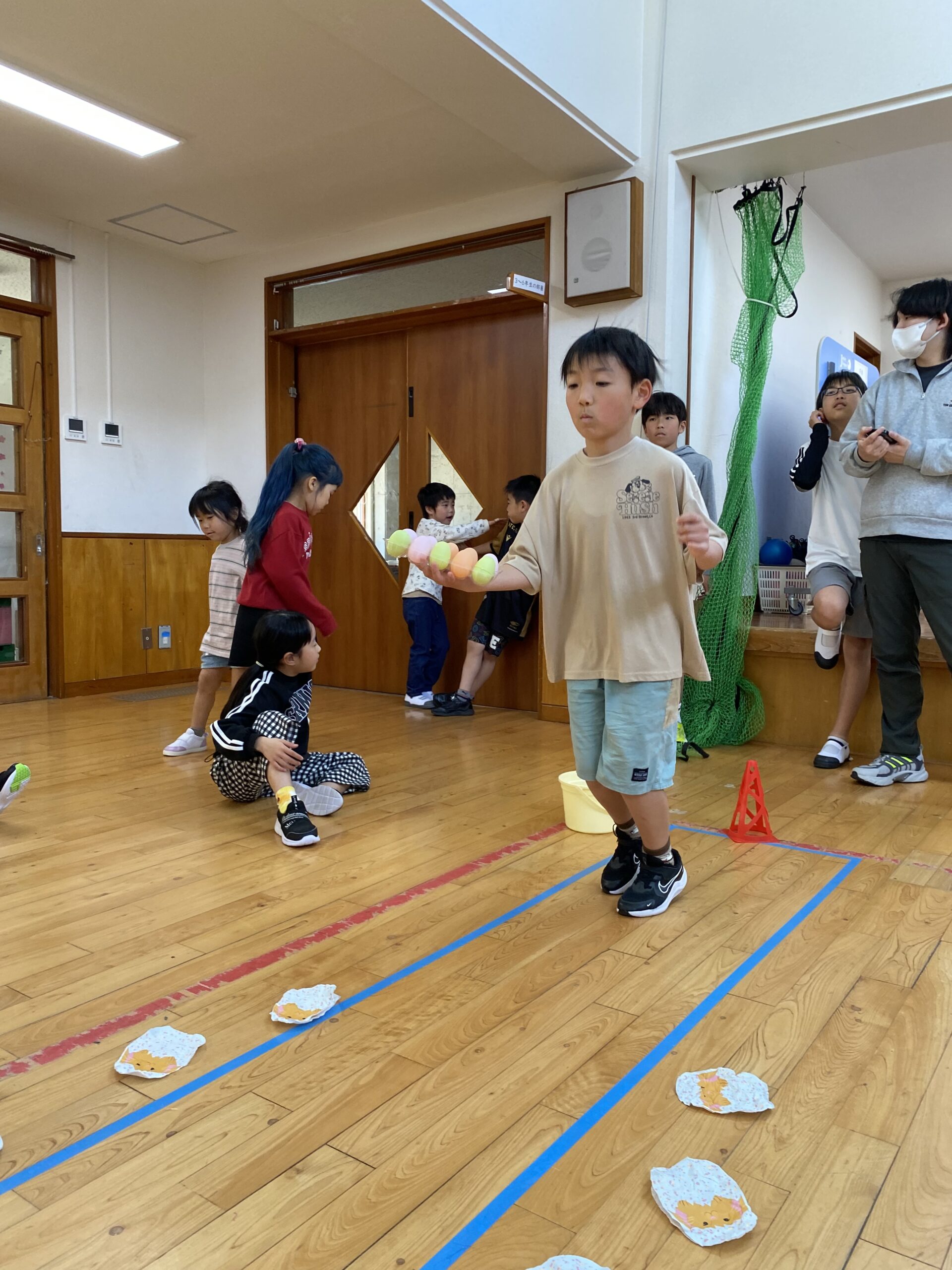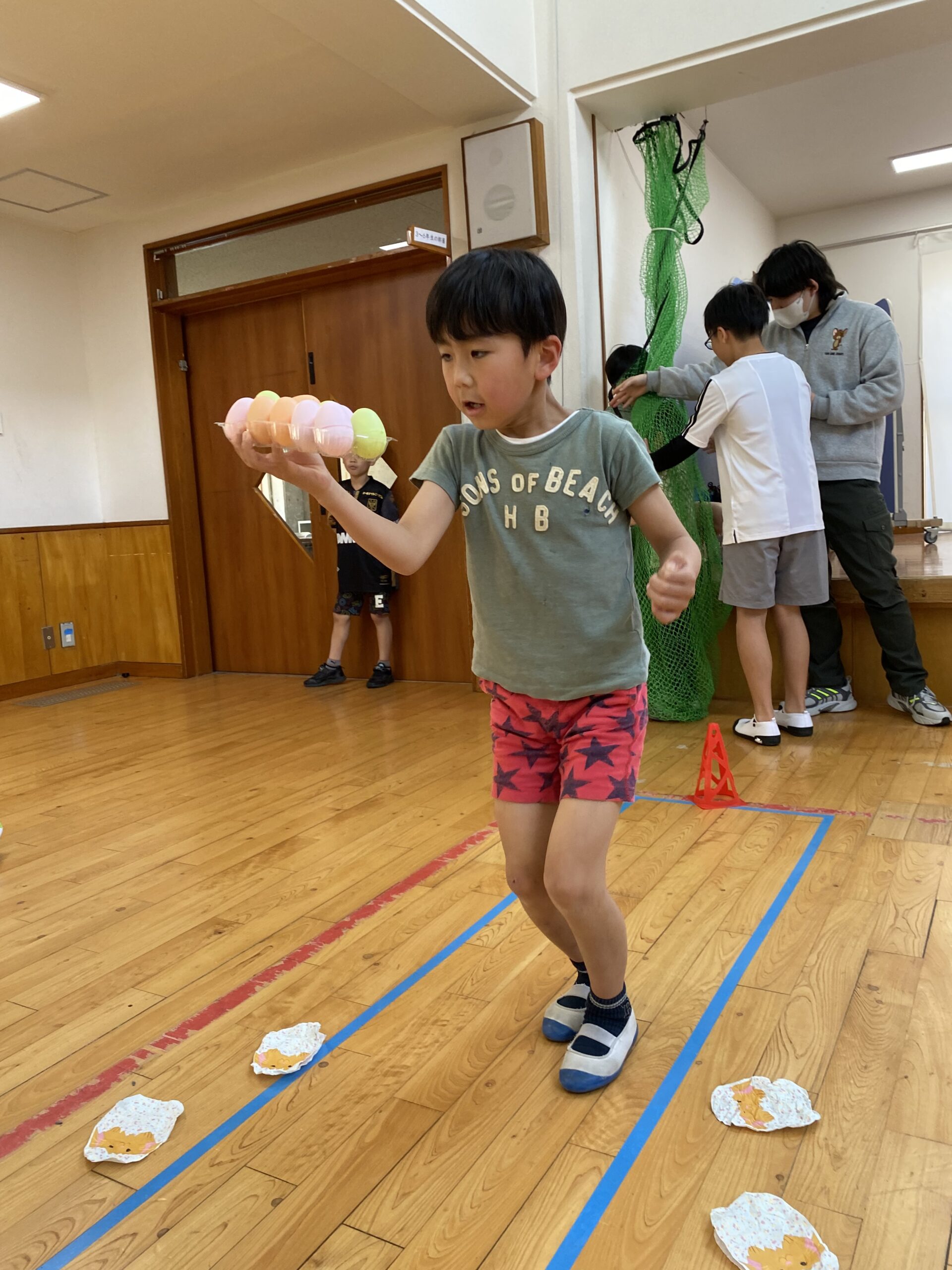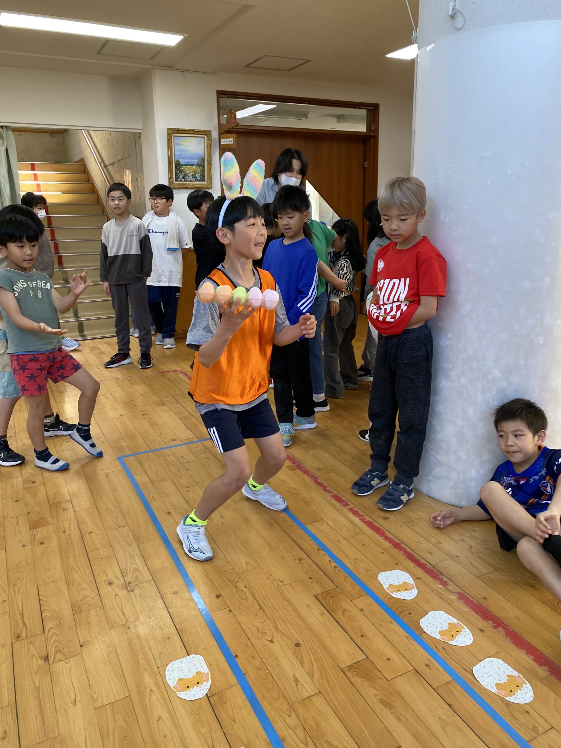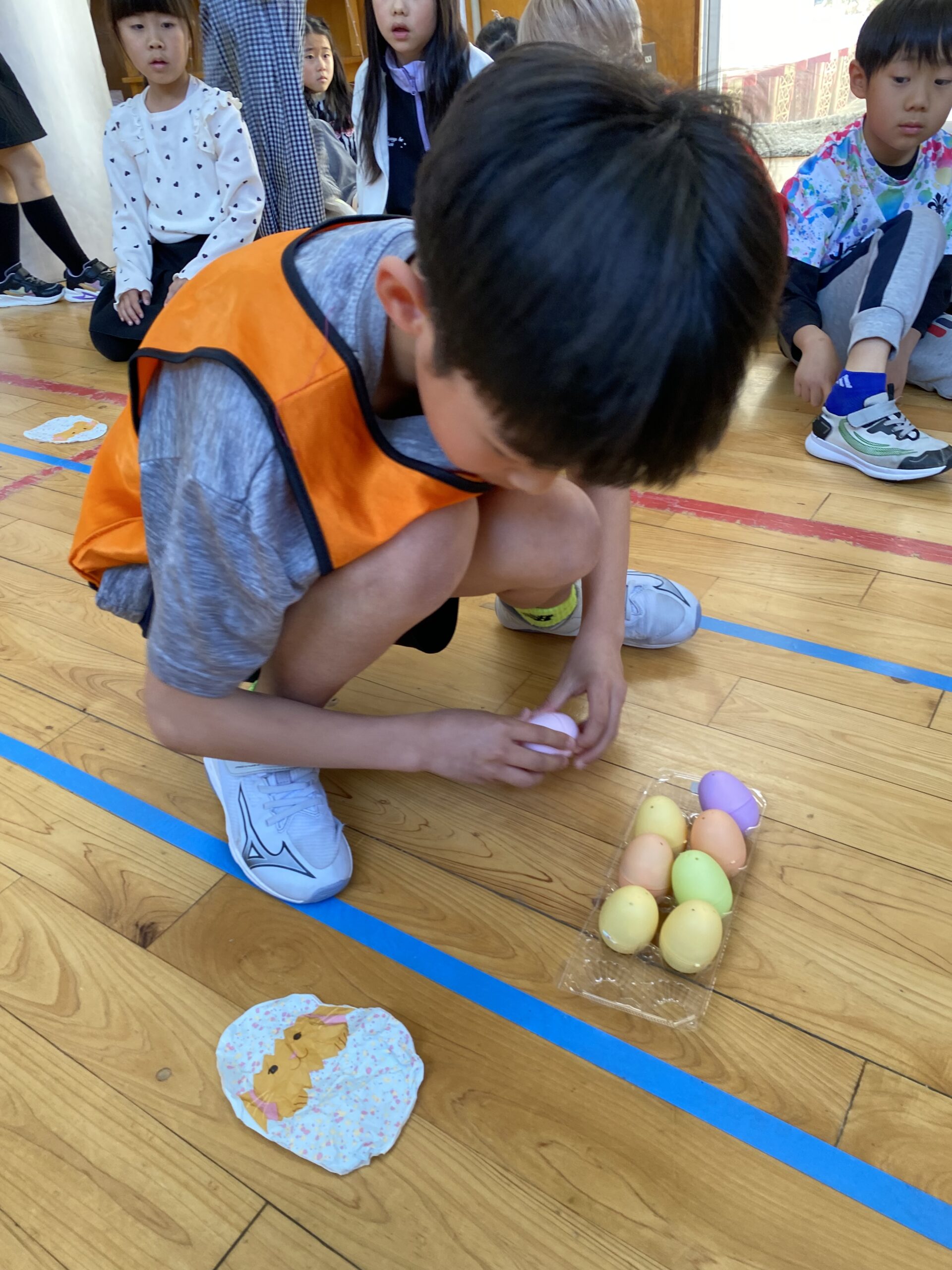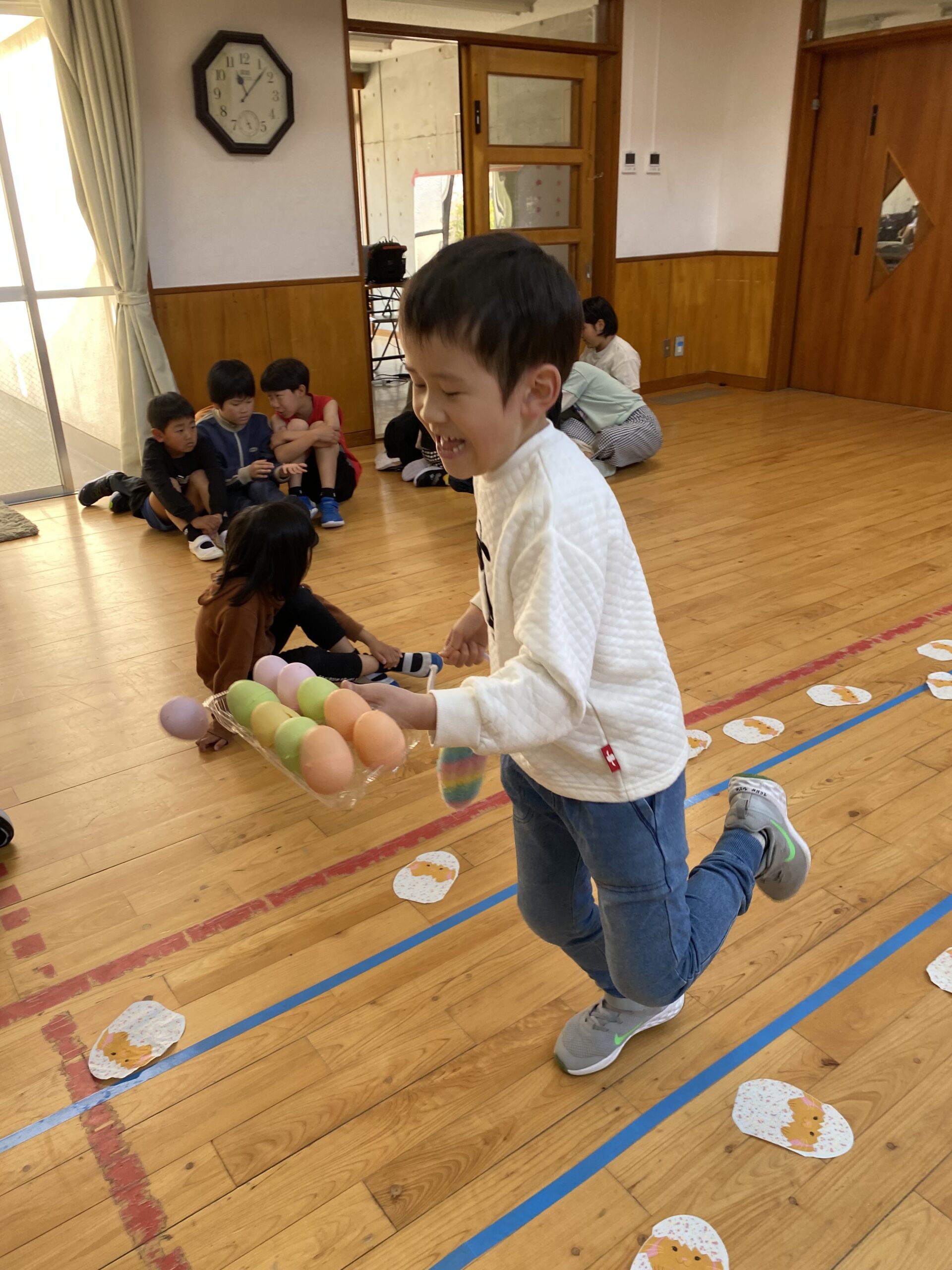 K先生側転しながら卵10個落とさず進みました❣