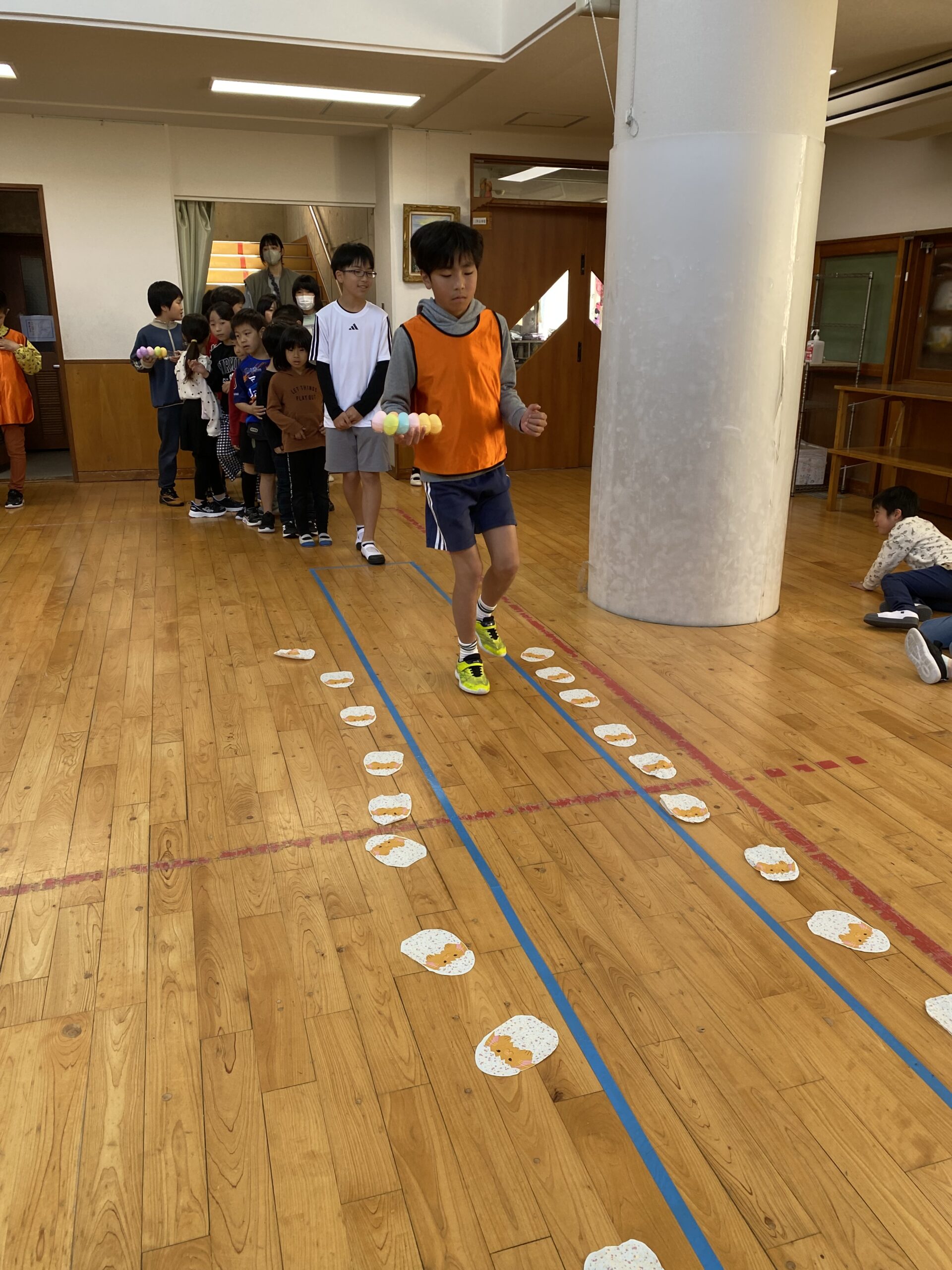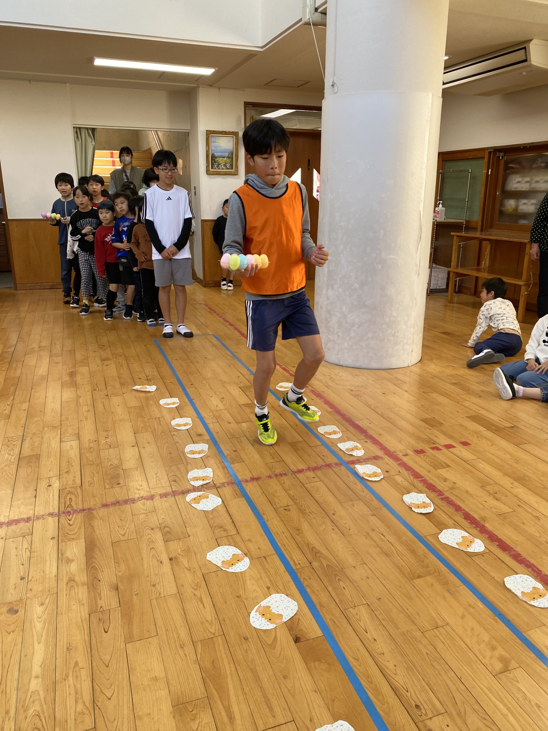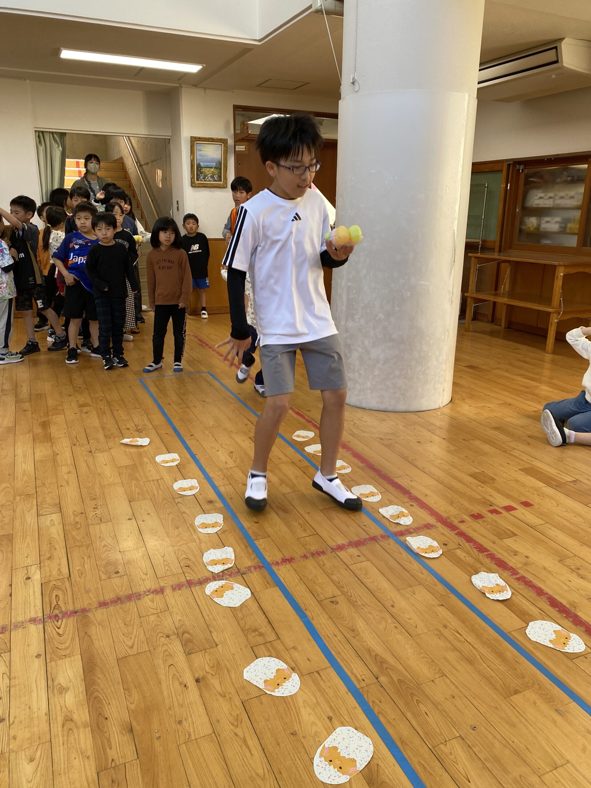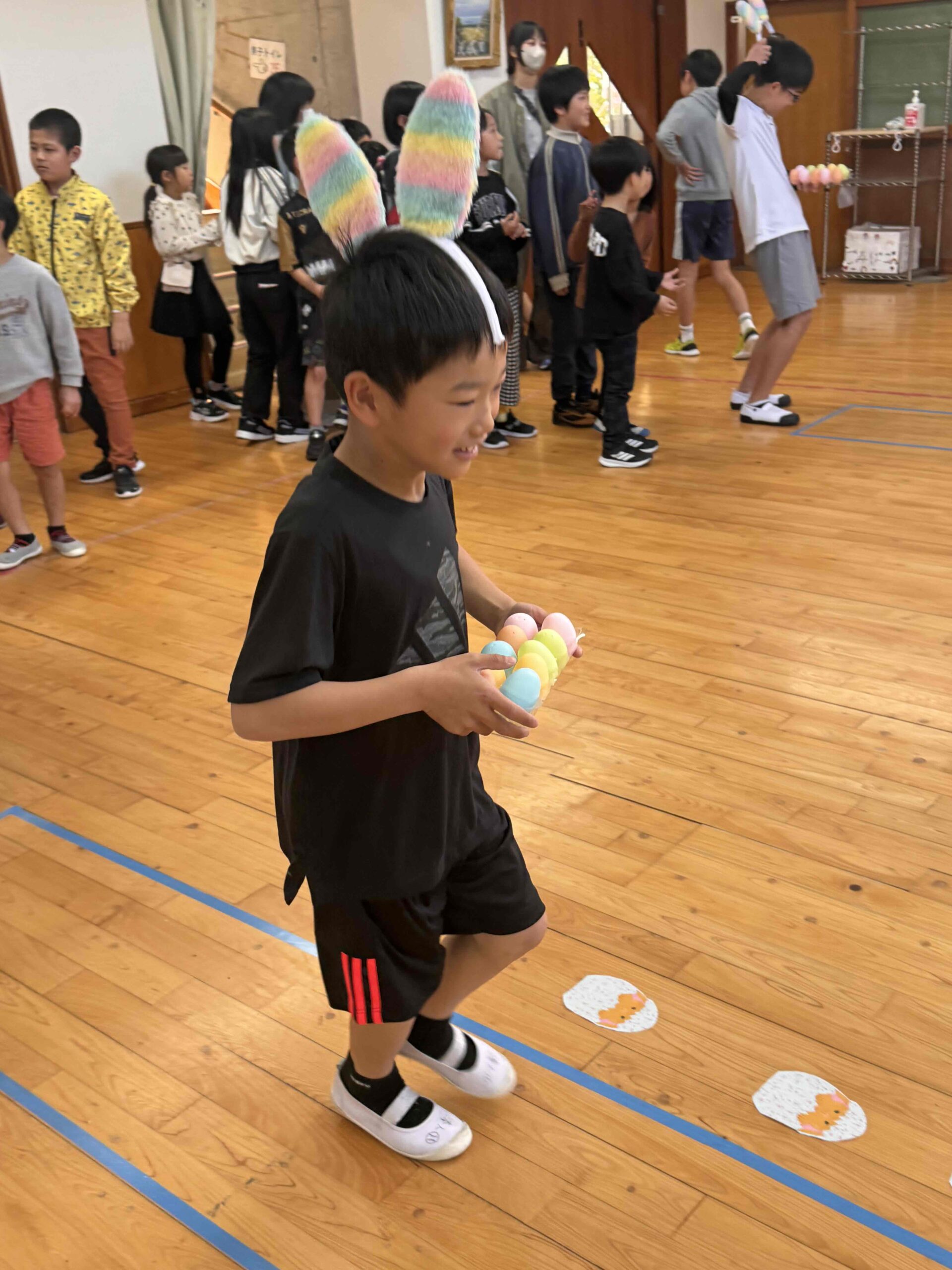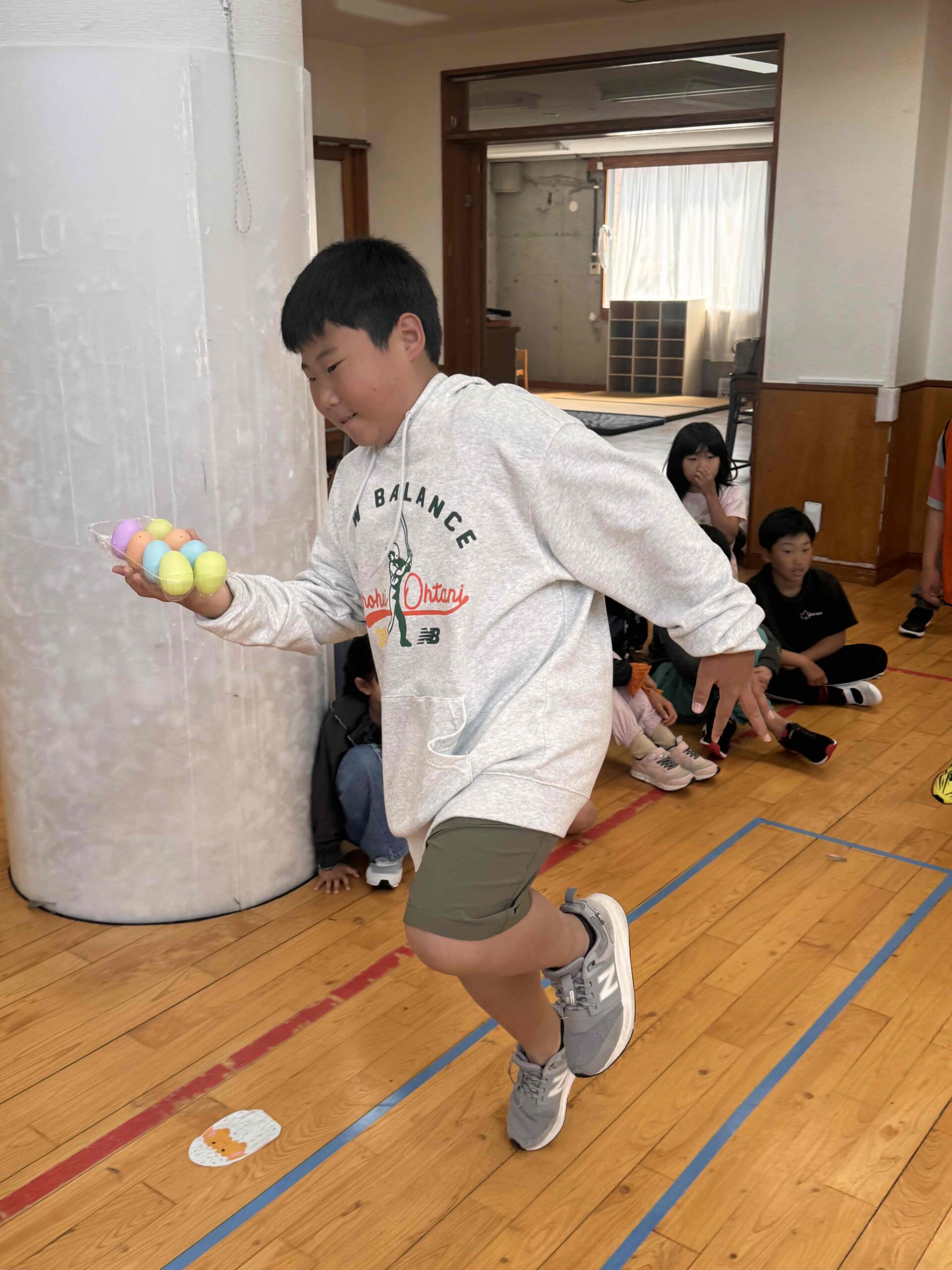 K先生側転しながら卵10個落とさず進みました❣