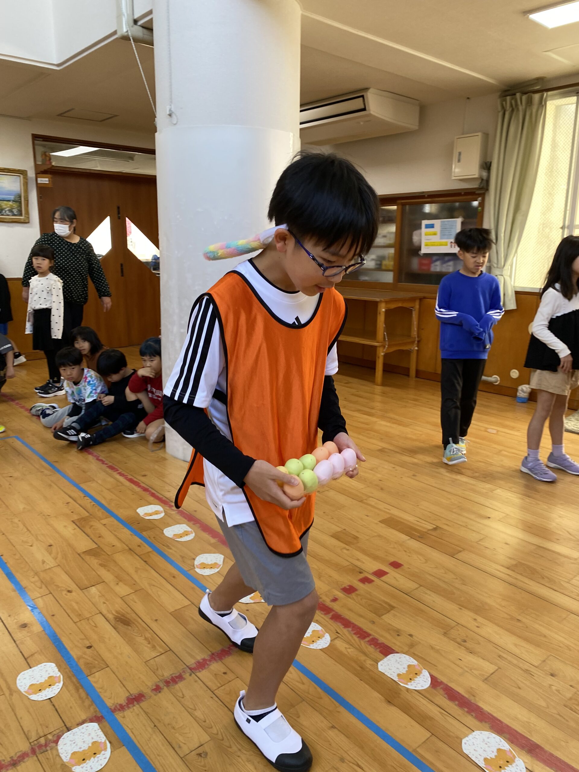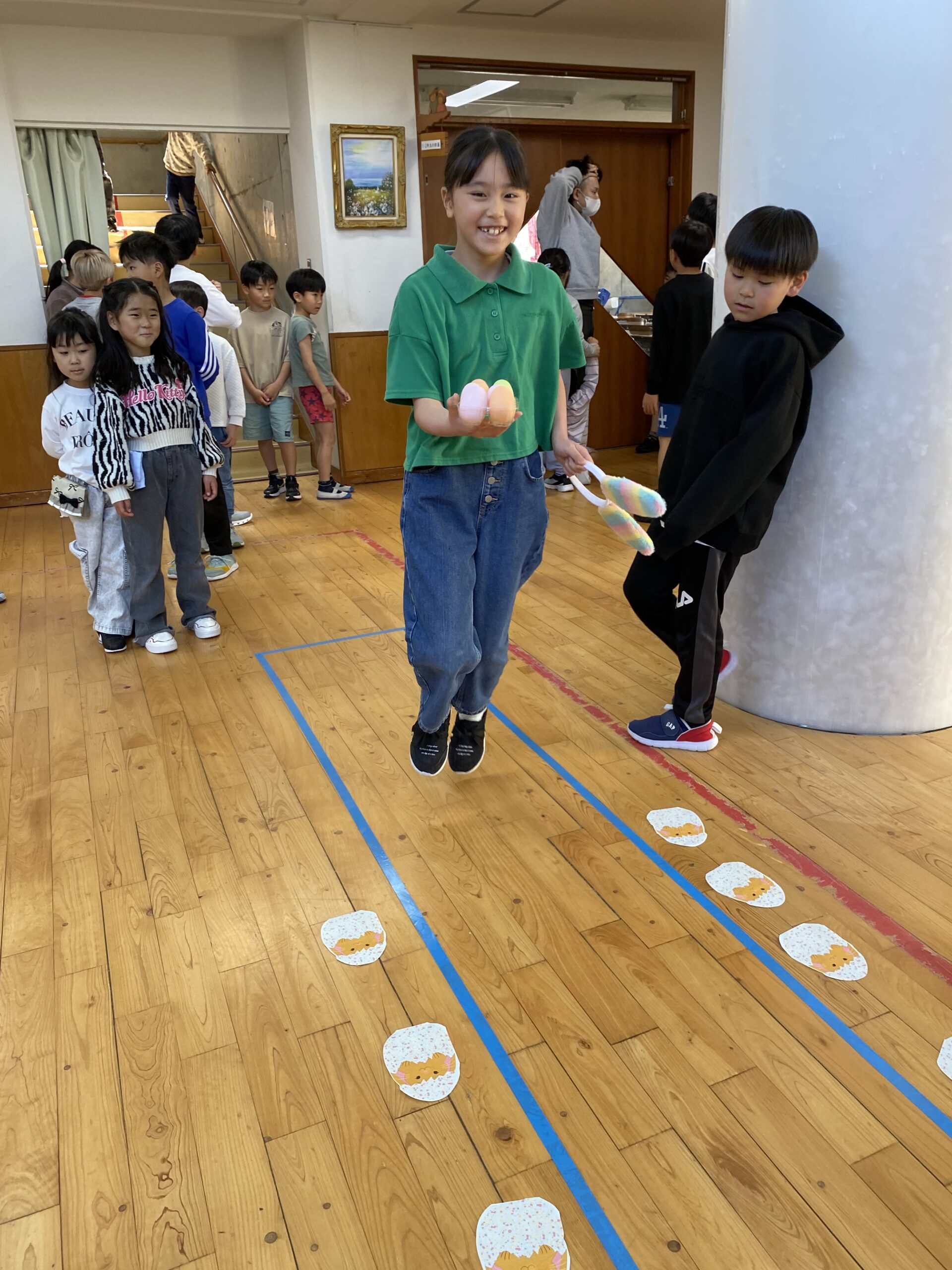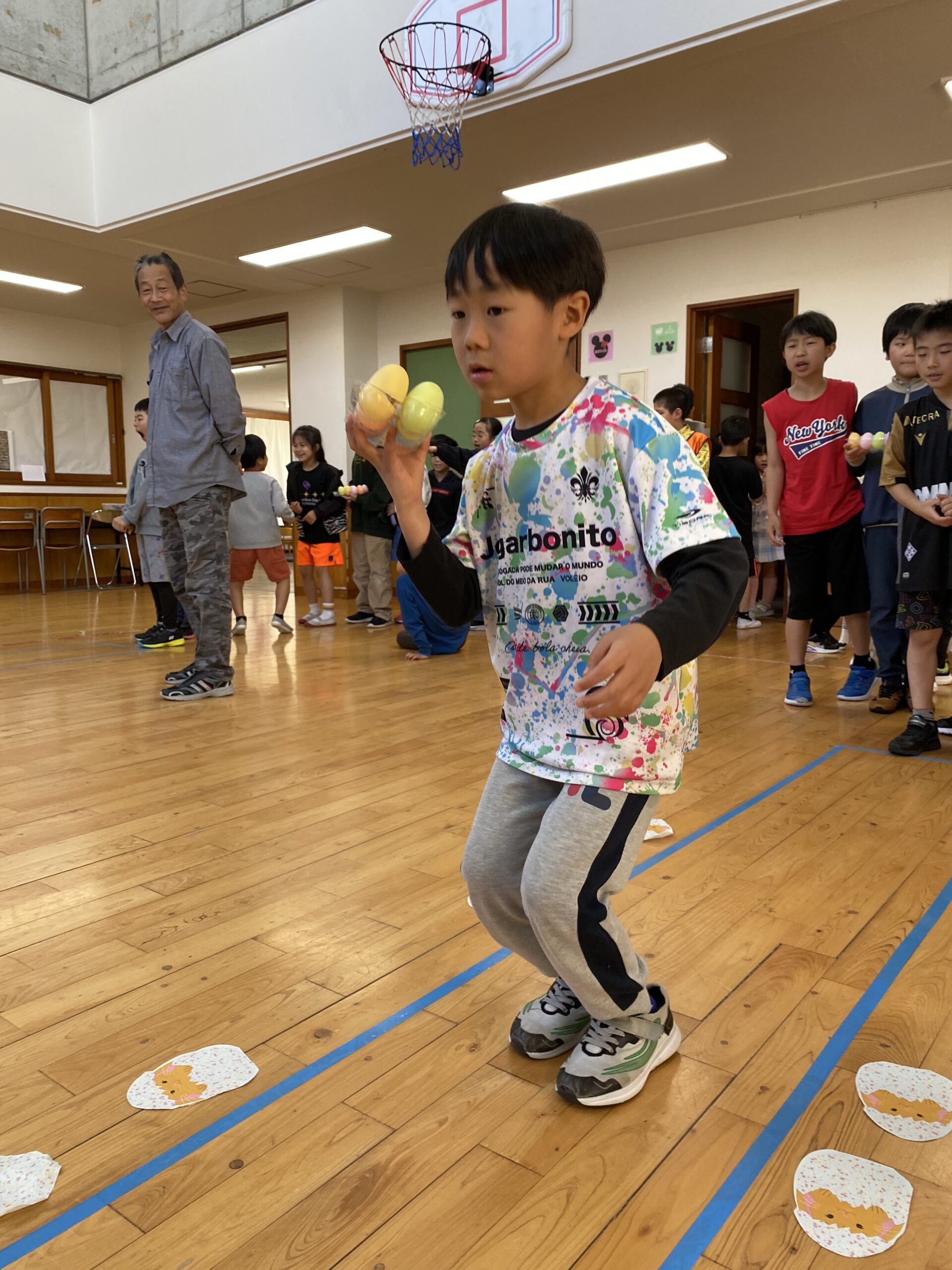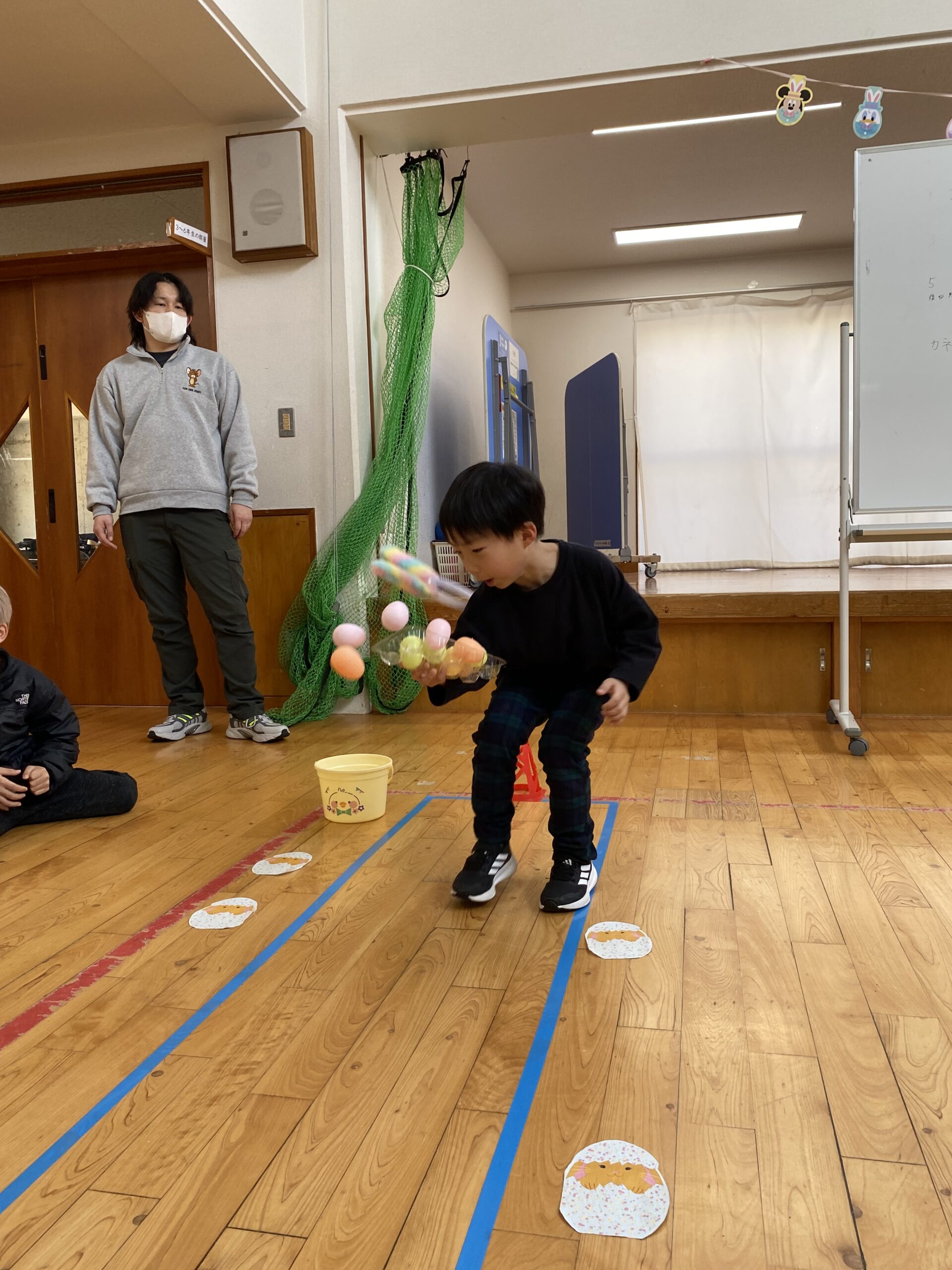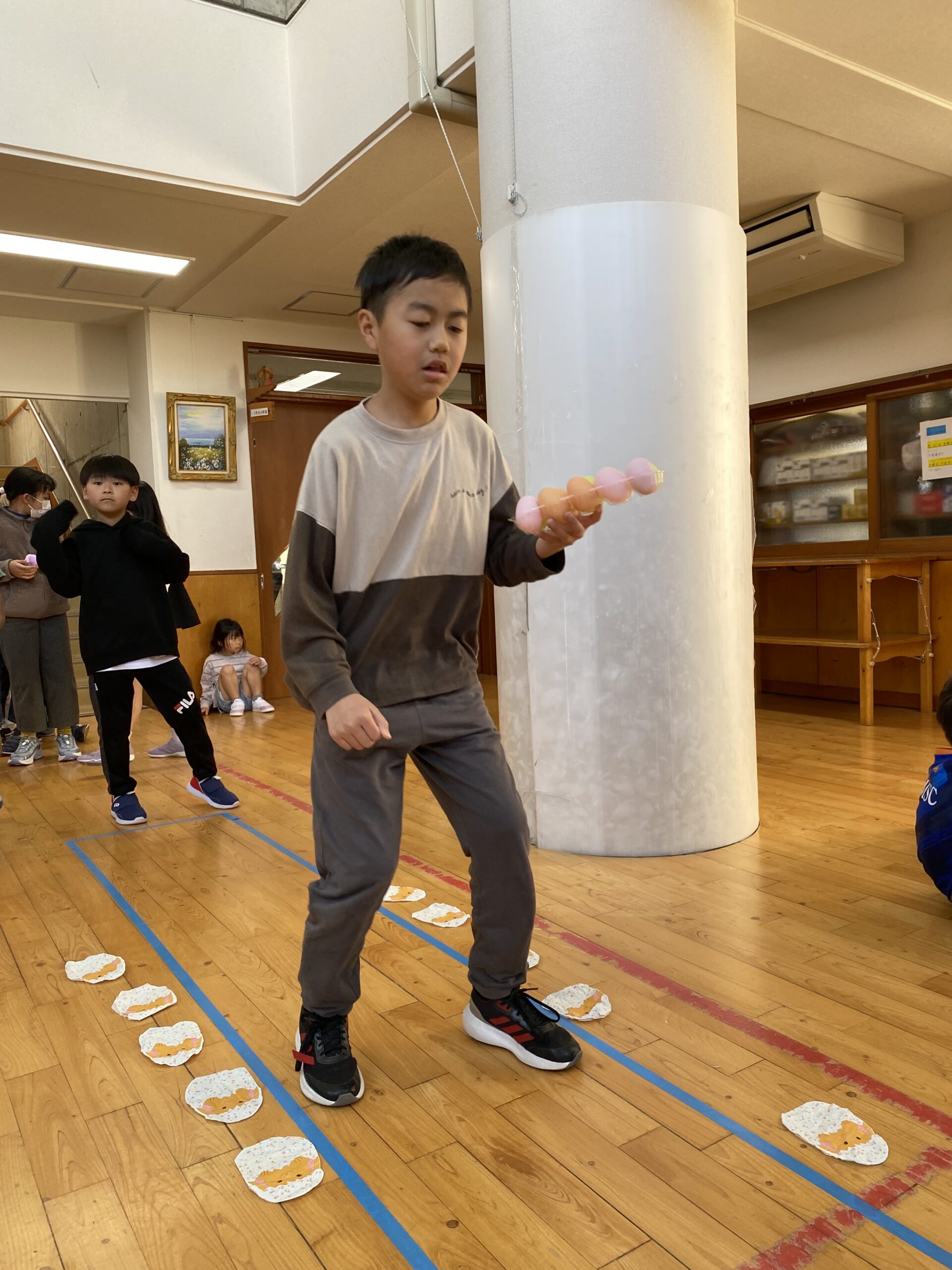 K先生側転しながら卵10個落とさず進みました❣