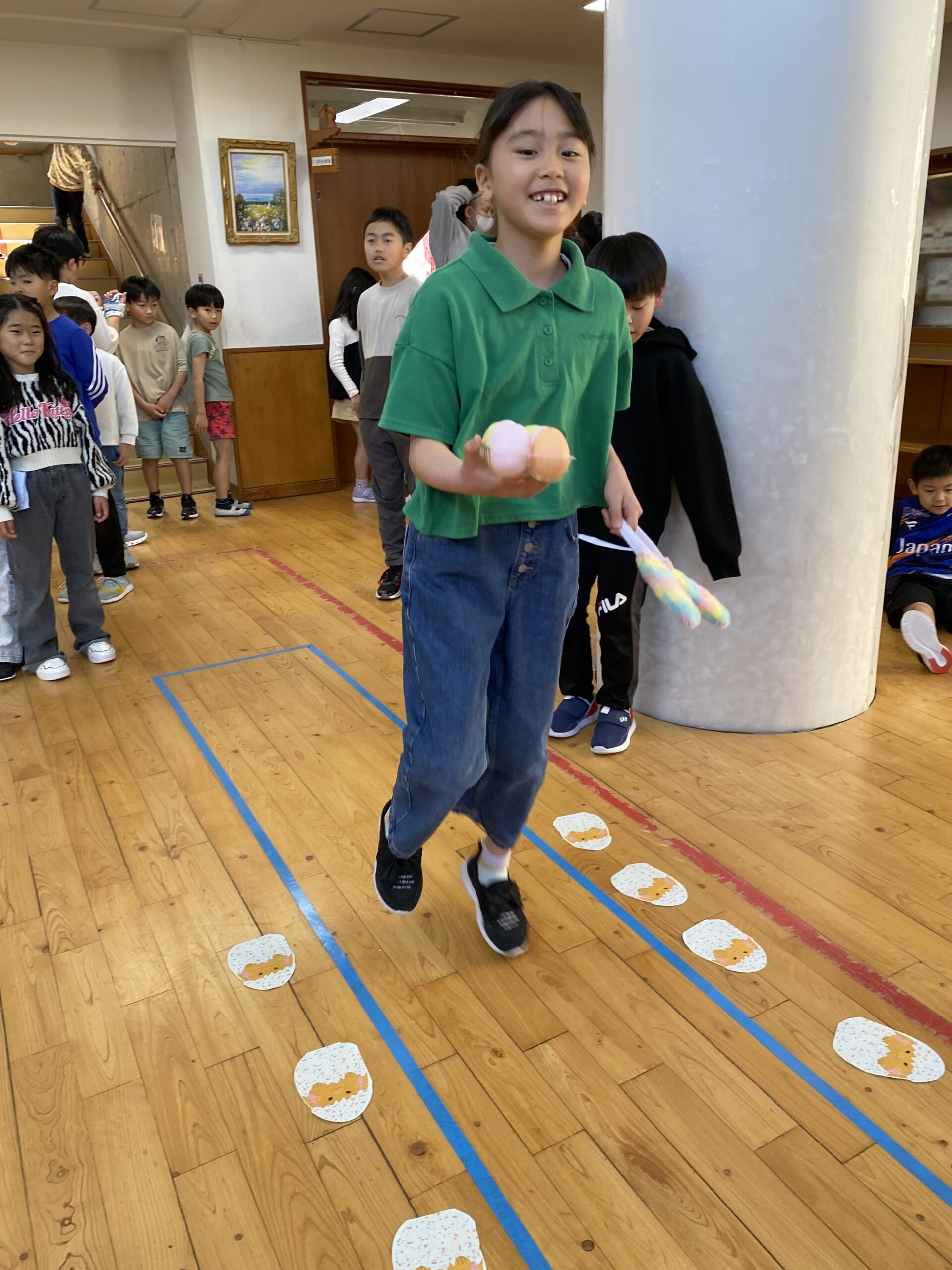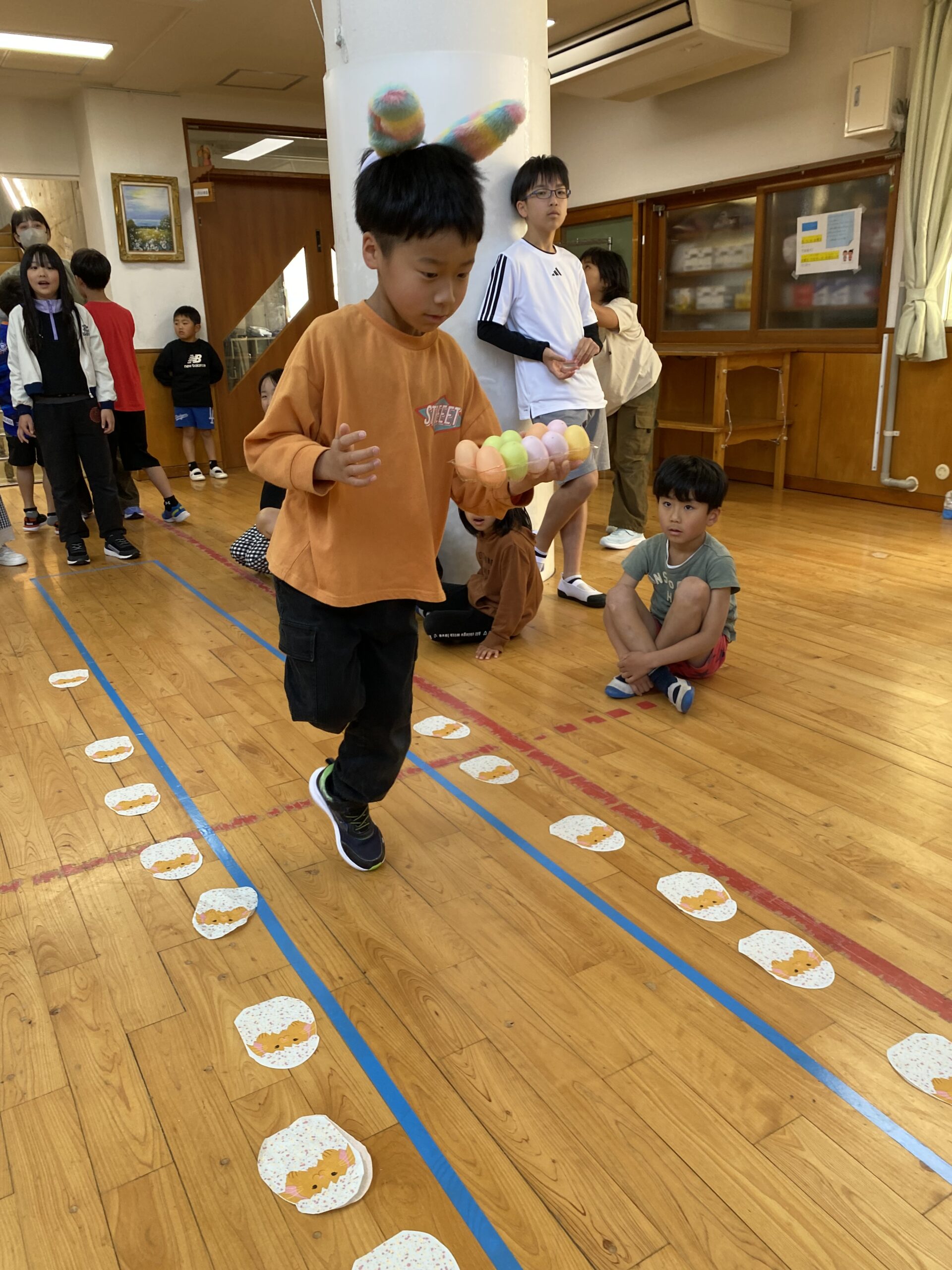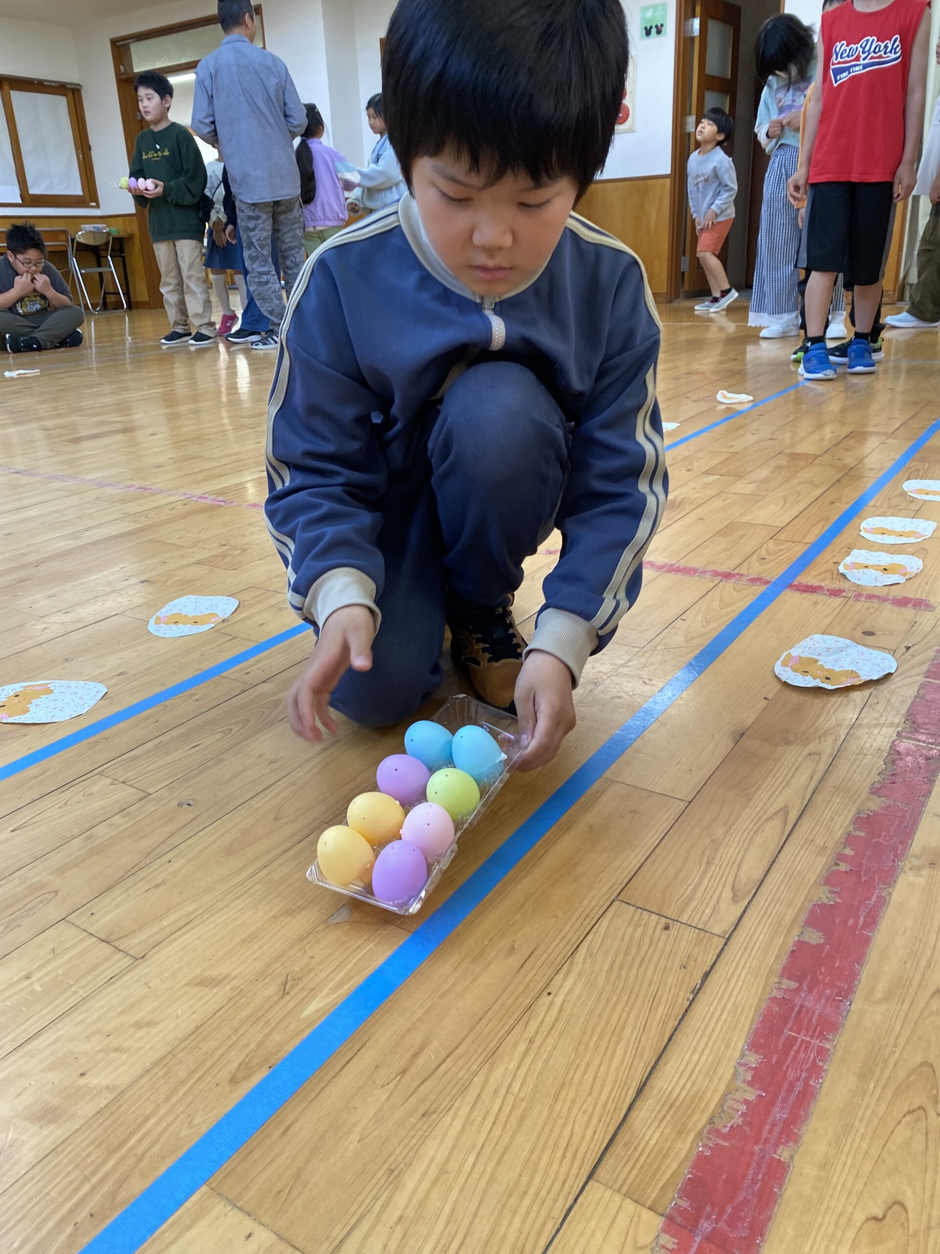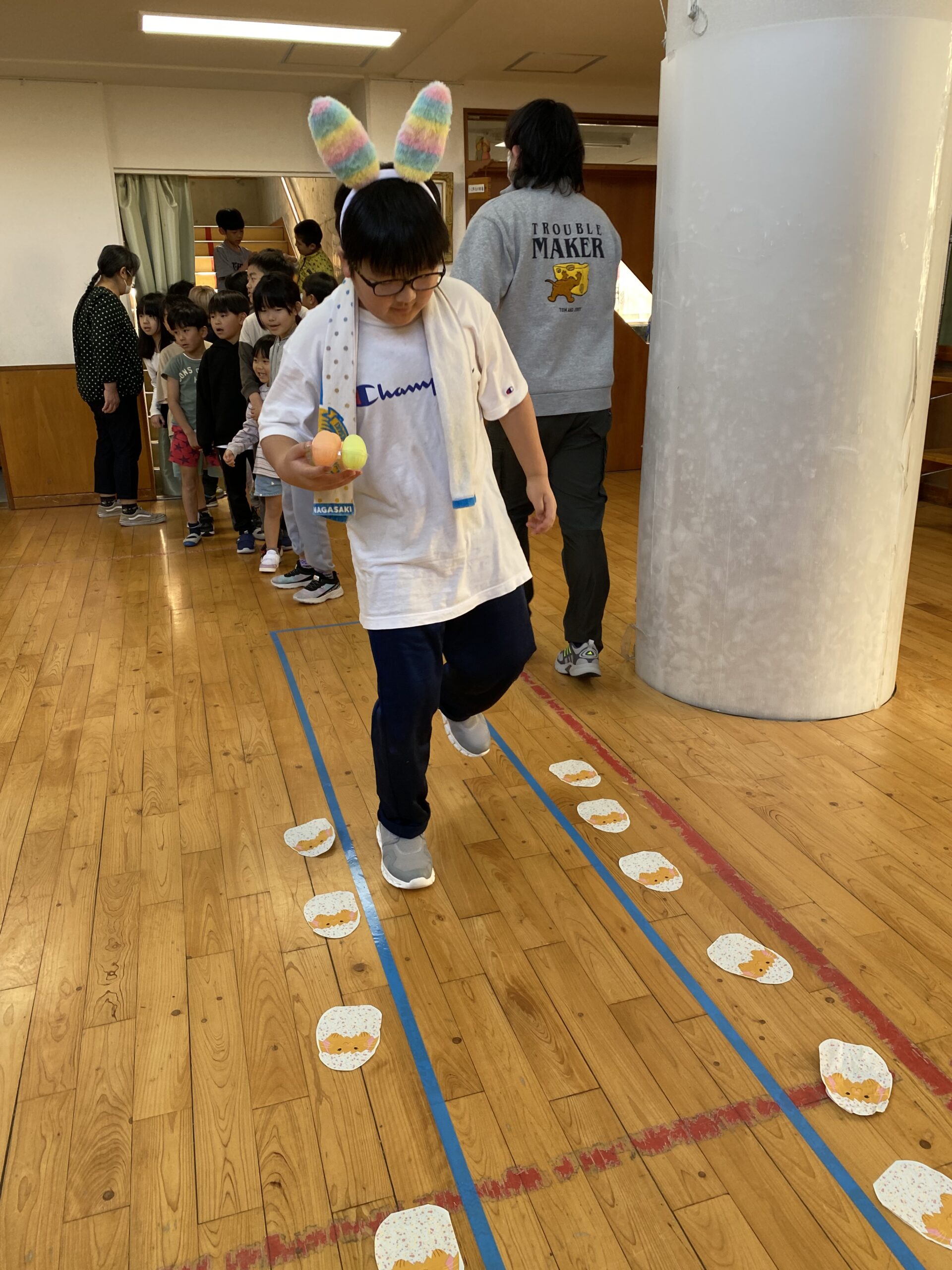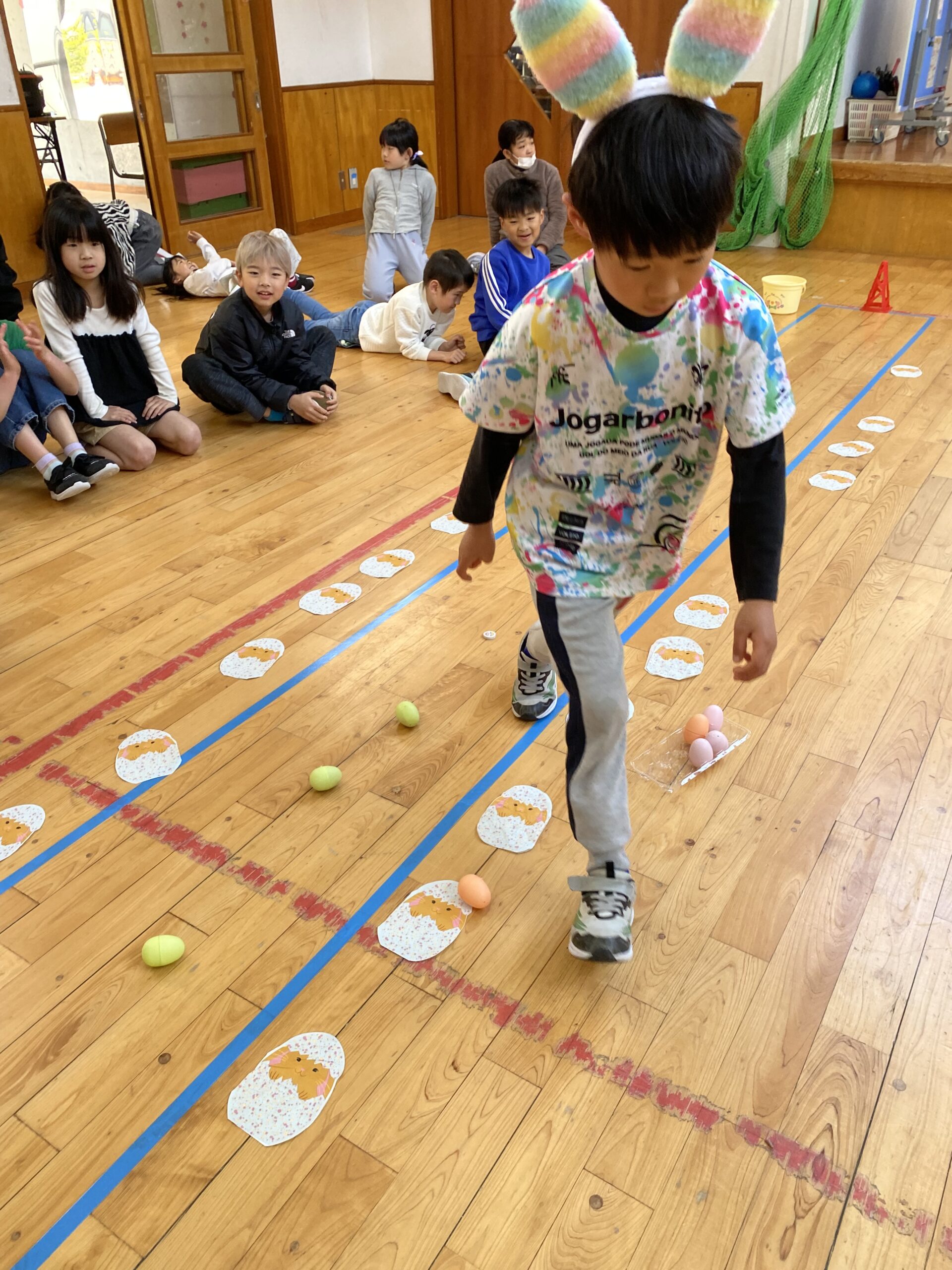K先生側転しながら卵10個落とさず進みました❣