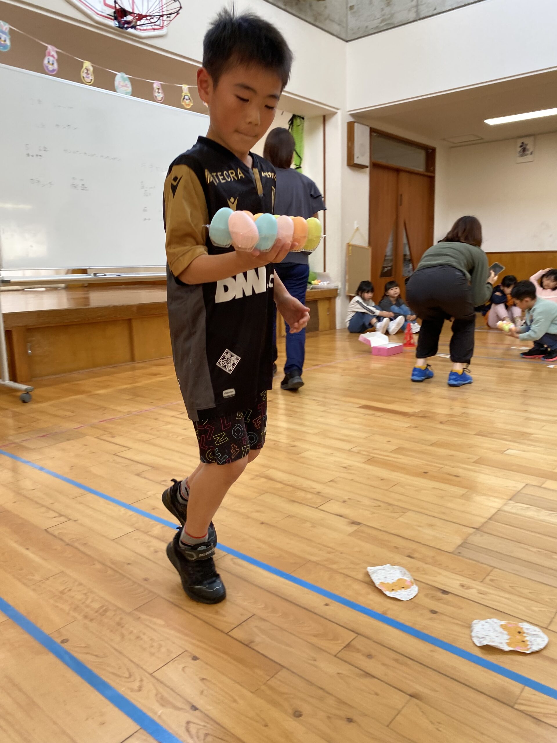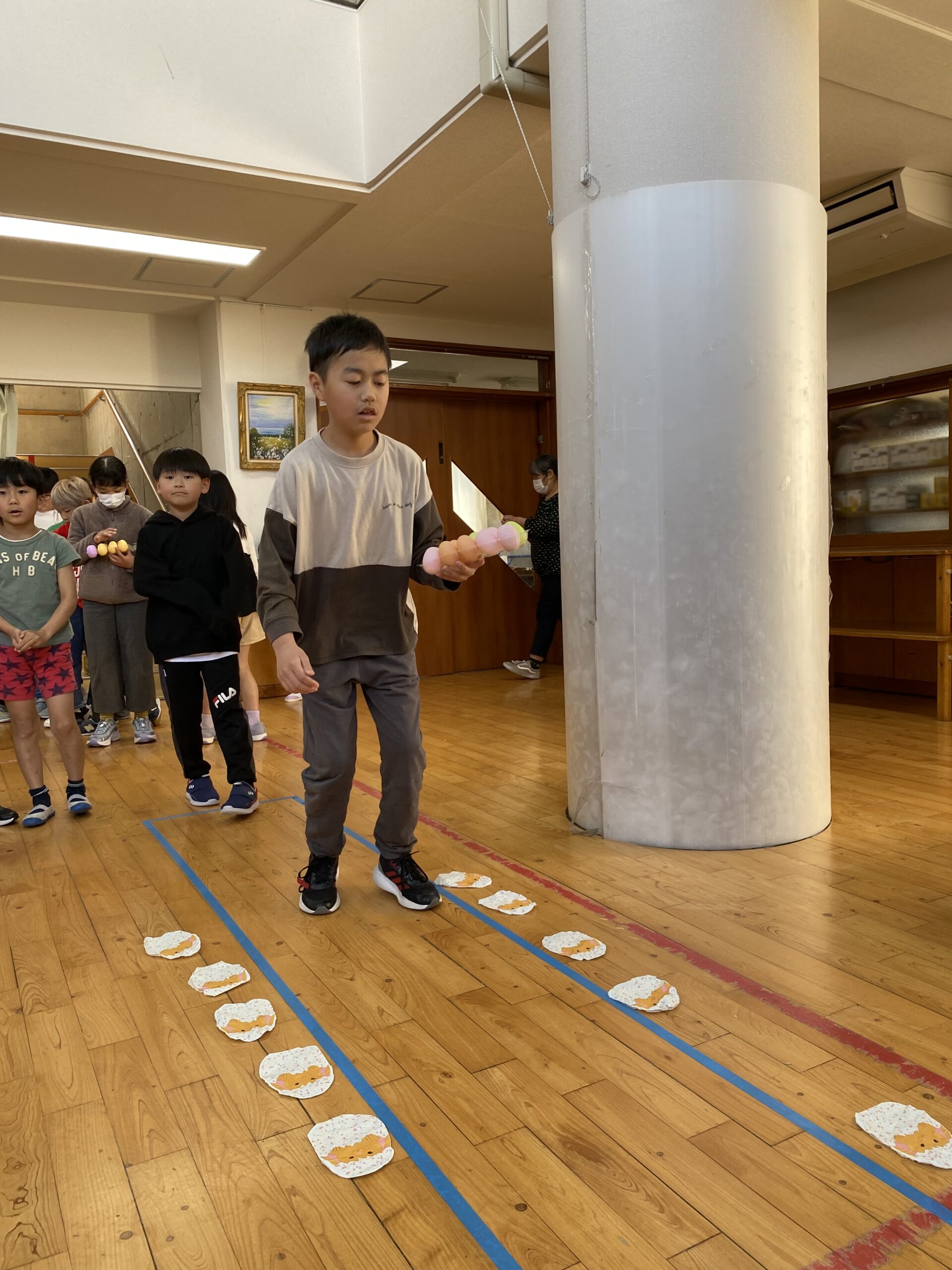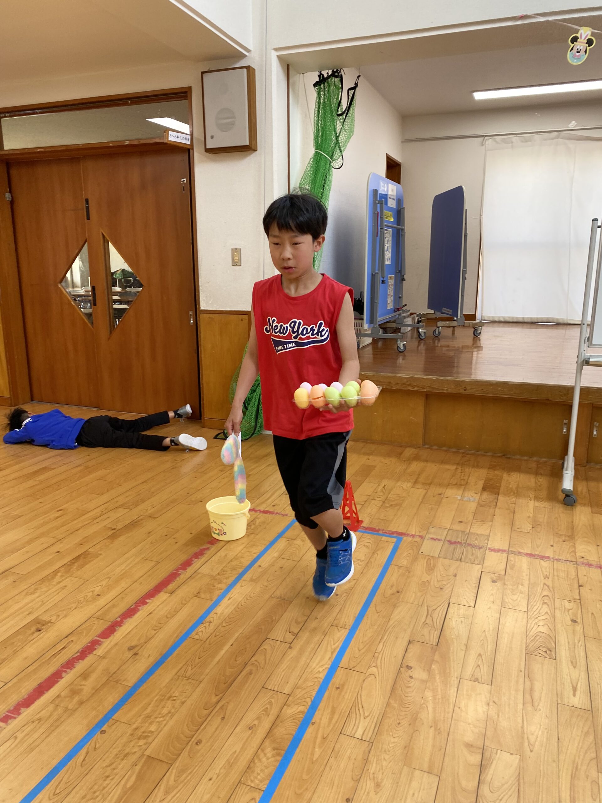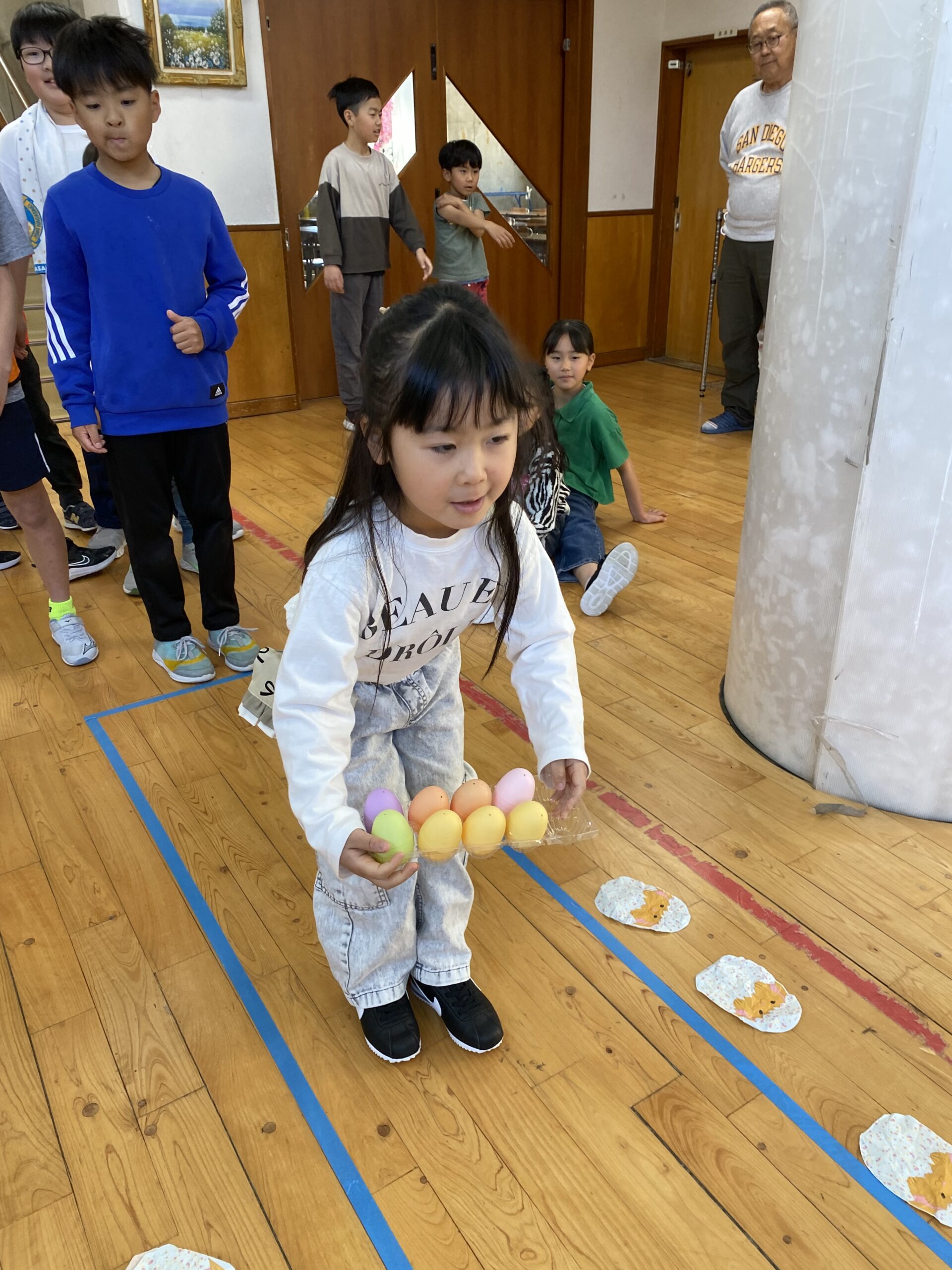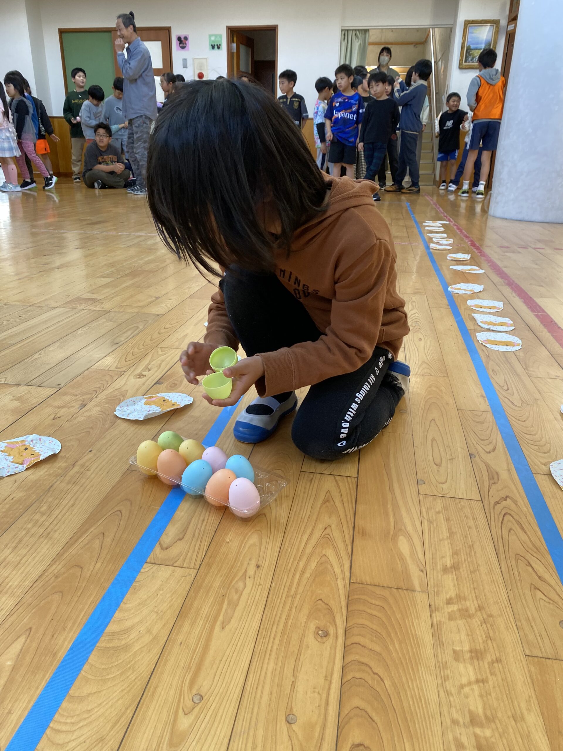 K先生側転しながら卵10個落とさず進みました❣
