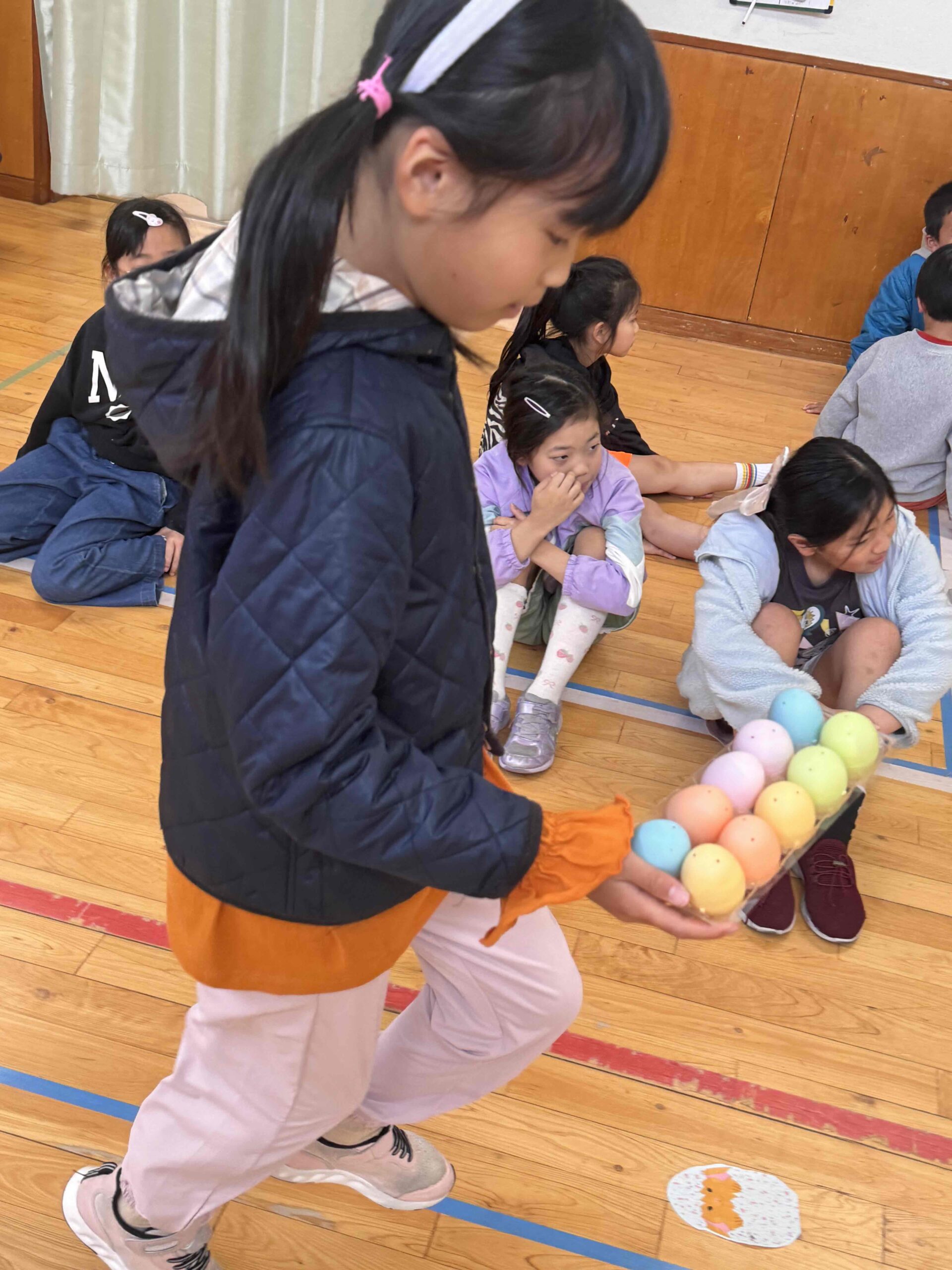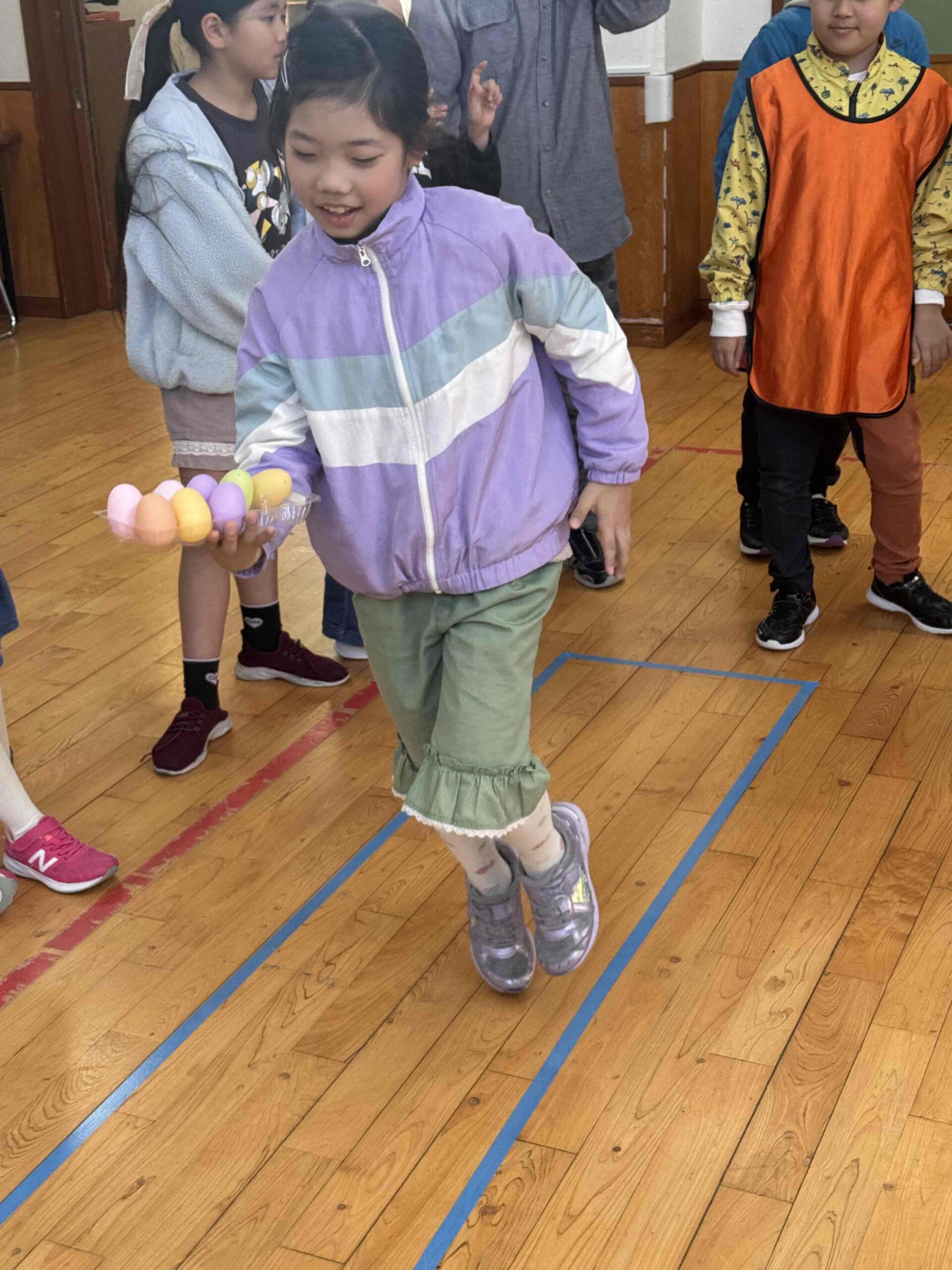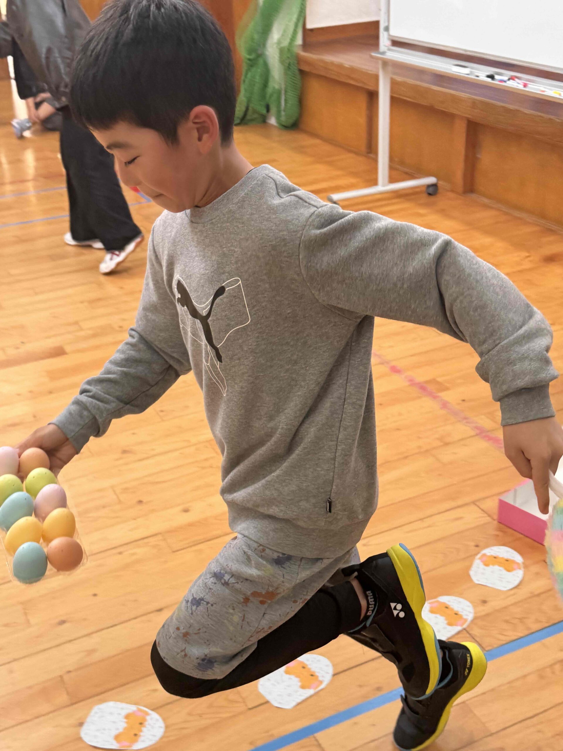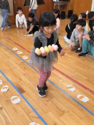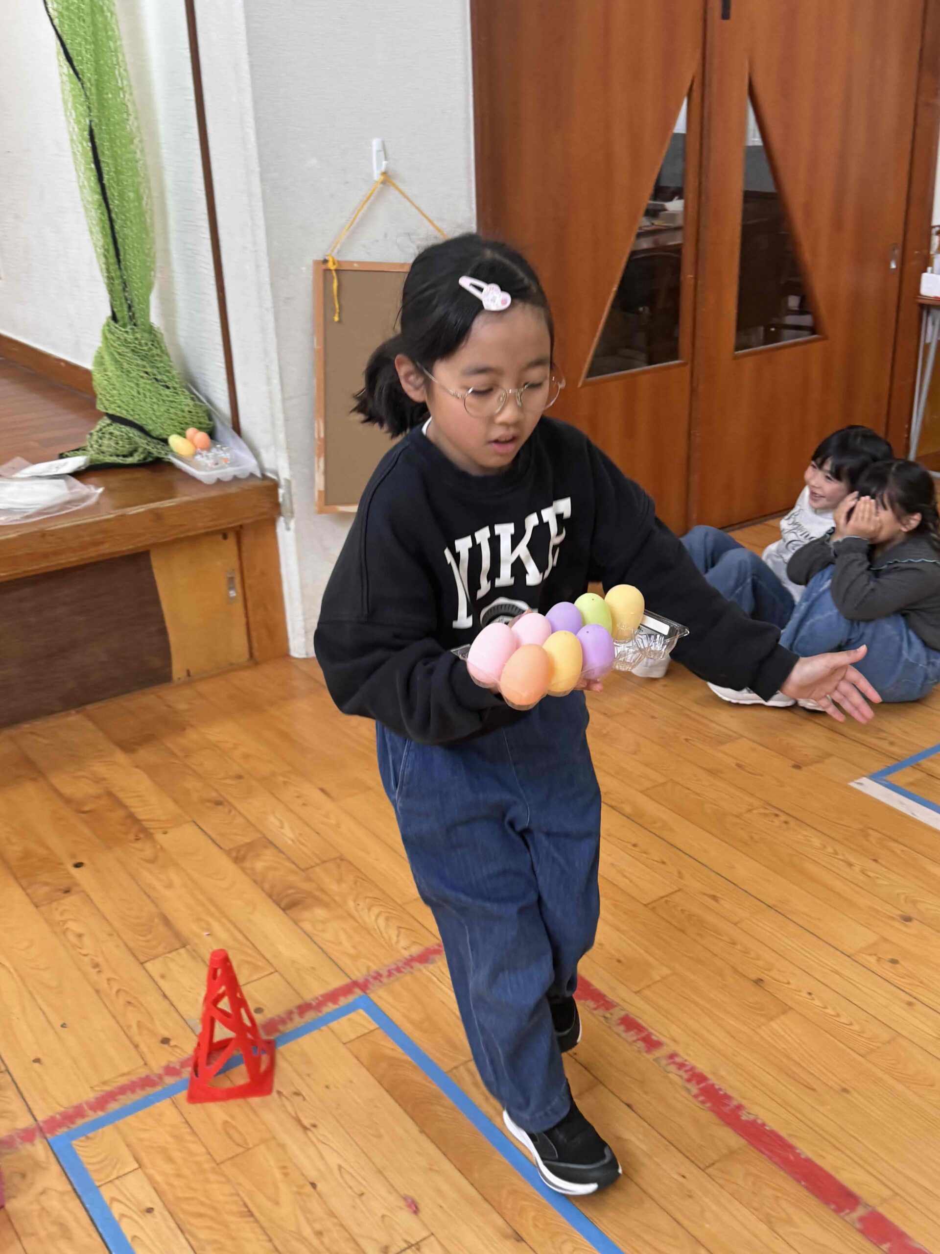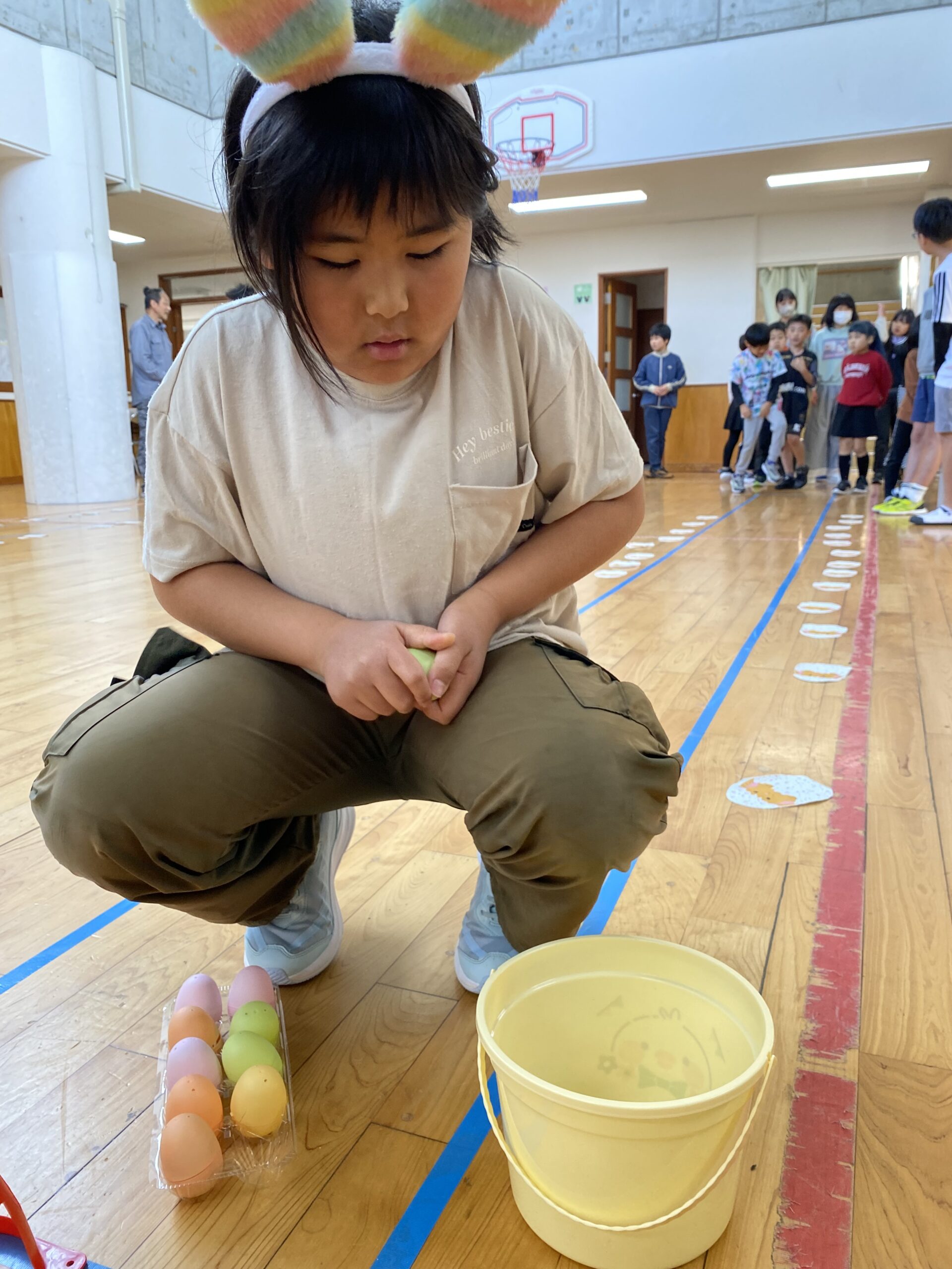 K先生側転しながら卵10個落とさず進みました❣