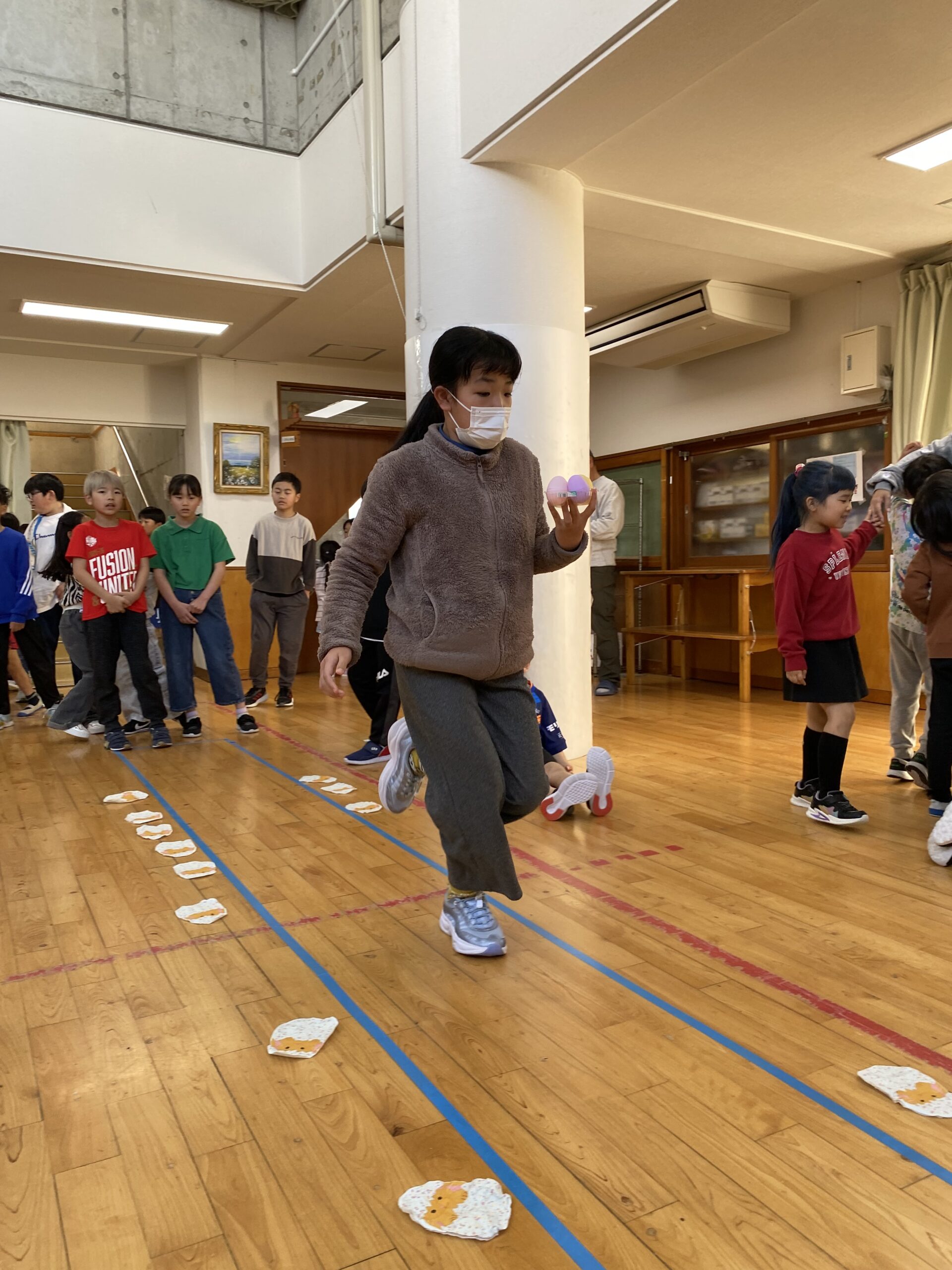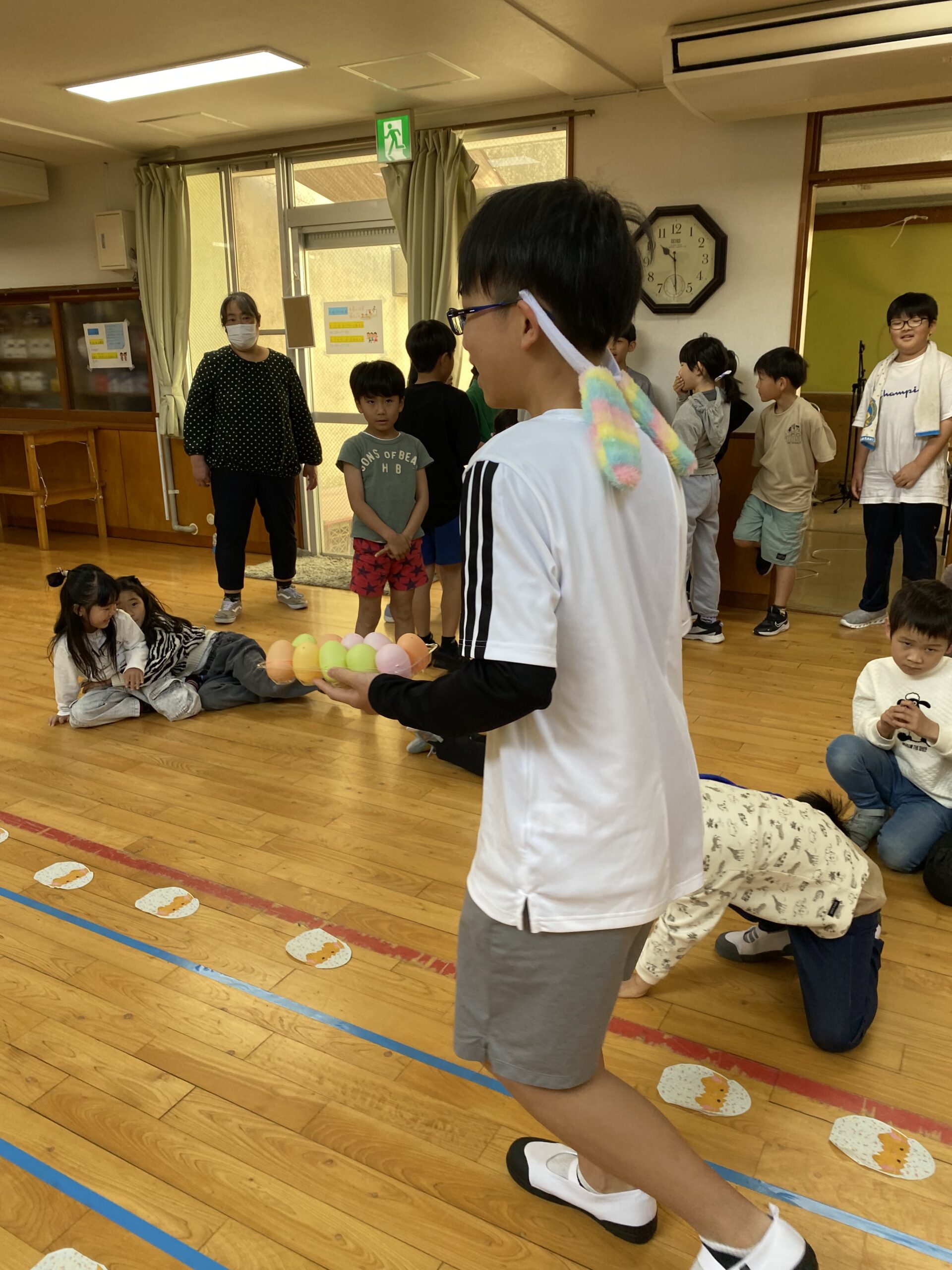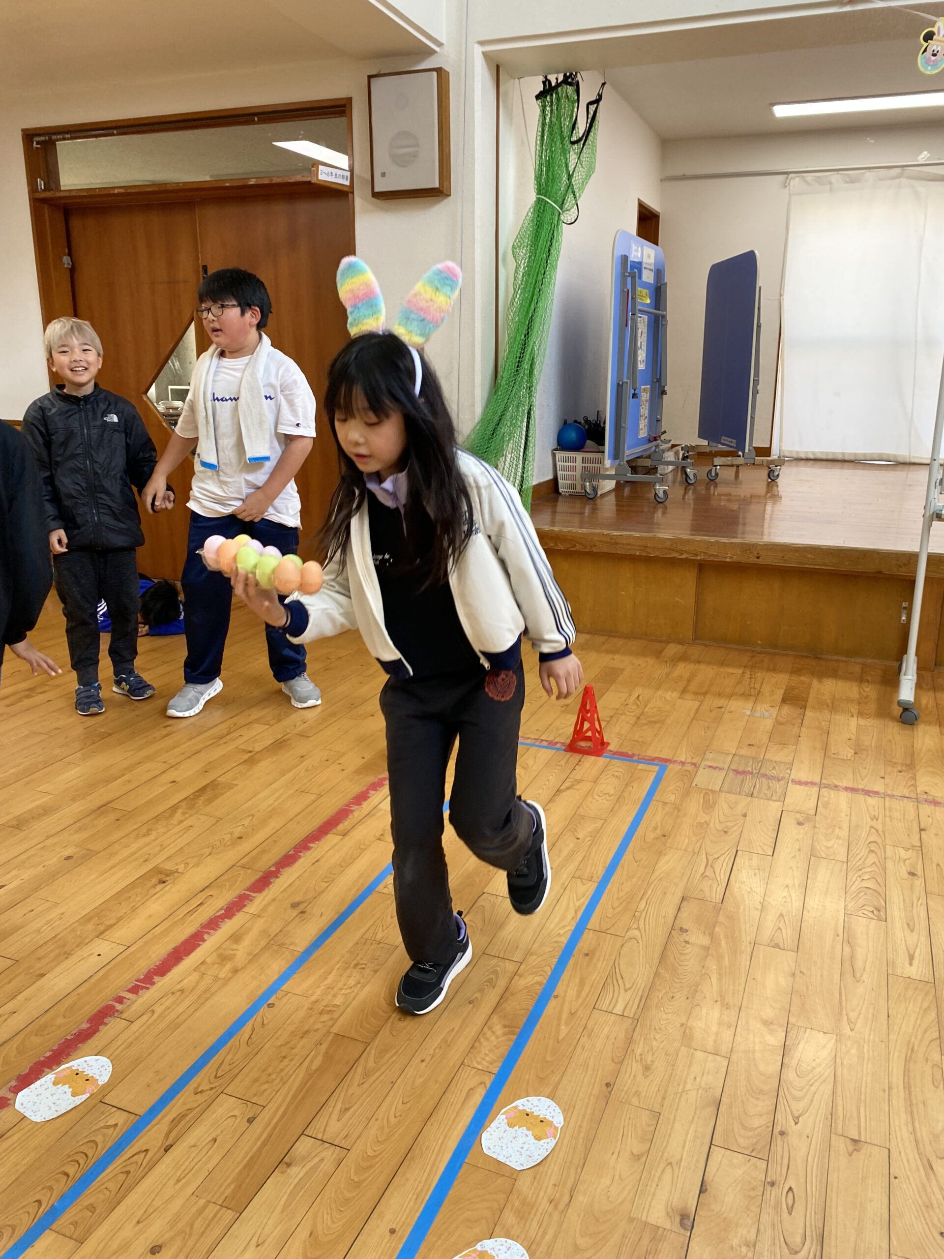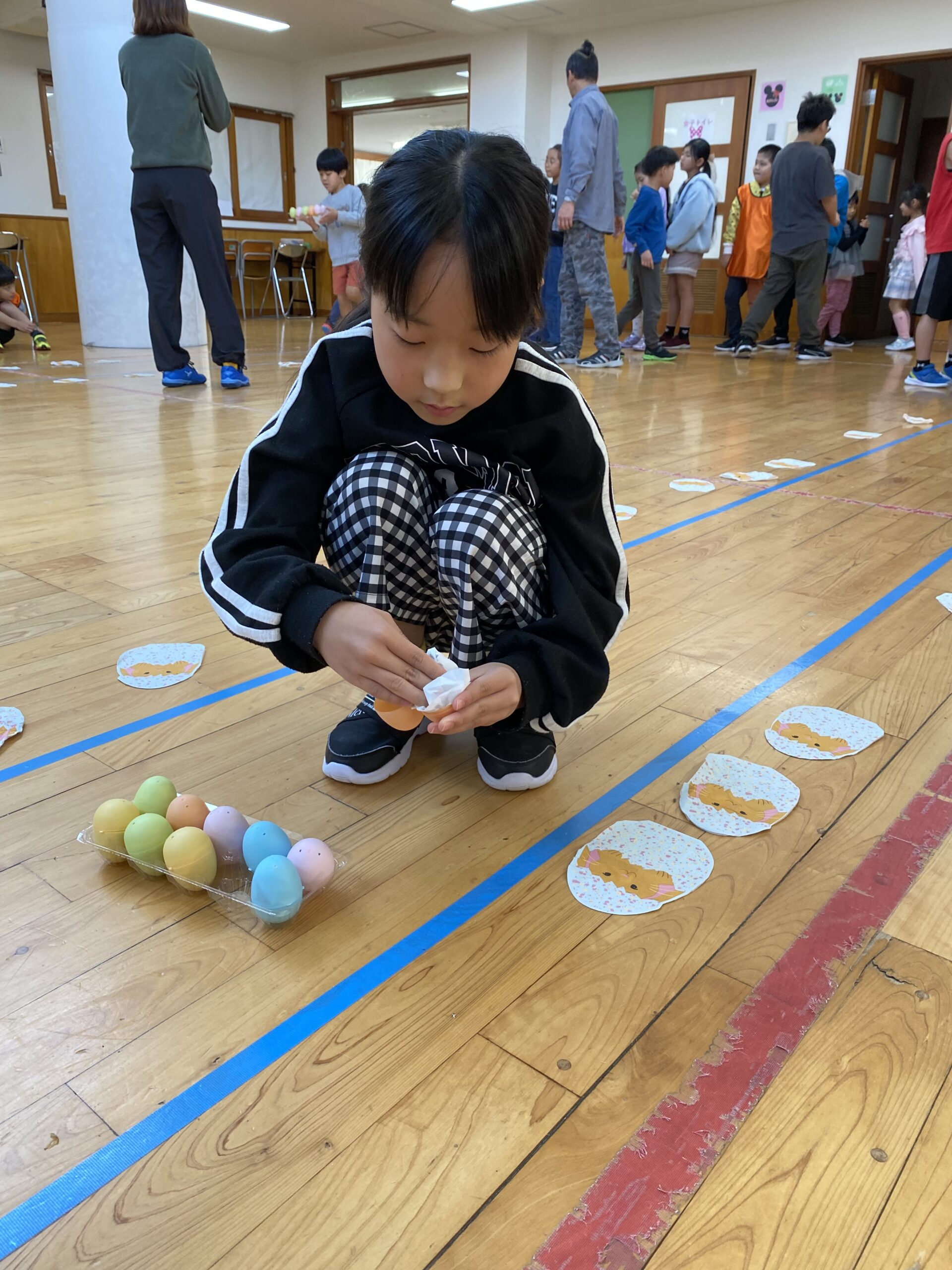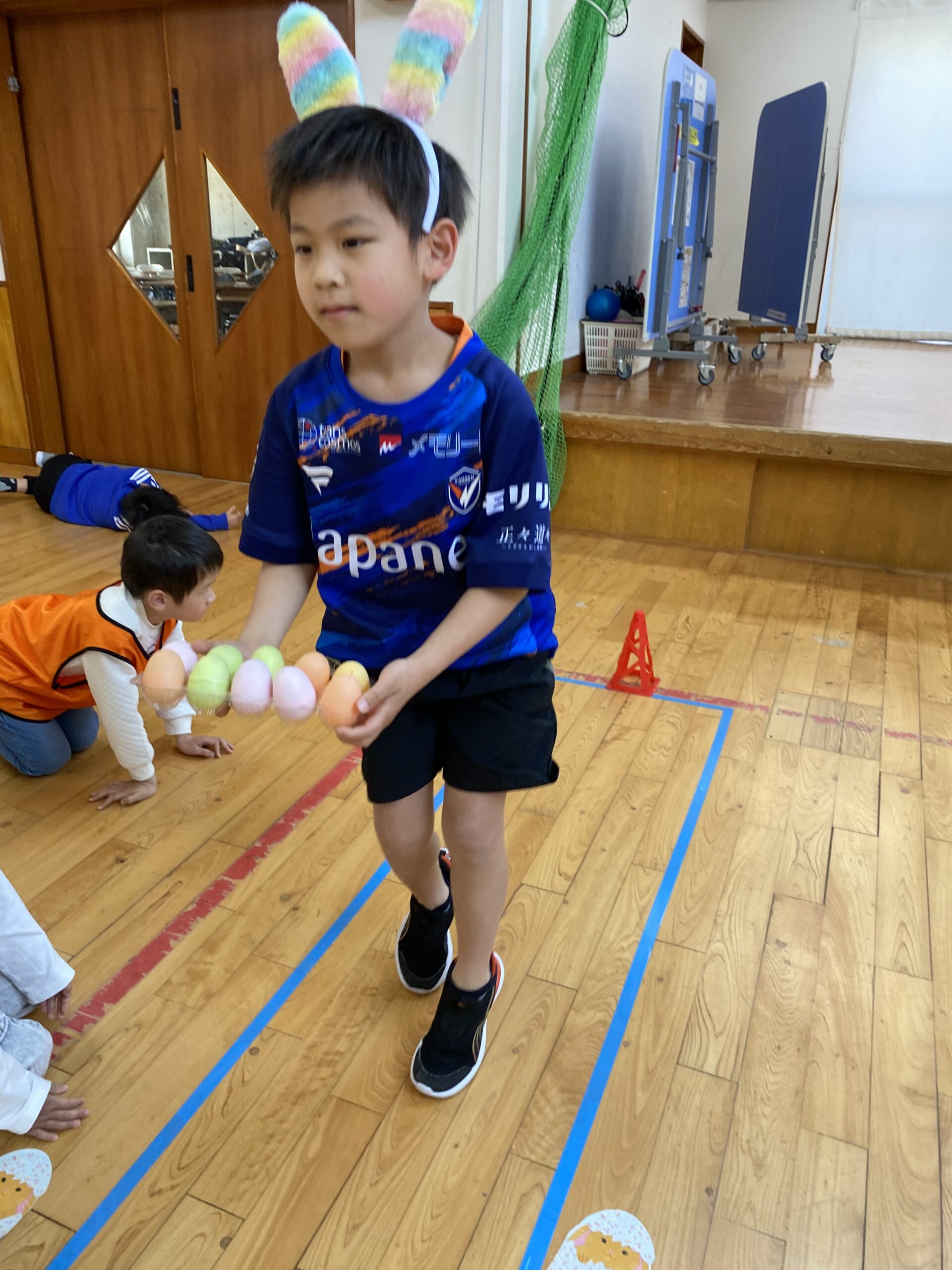 K先生側転しながら卵10個落とさず進みました❣