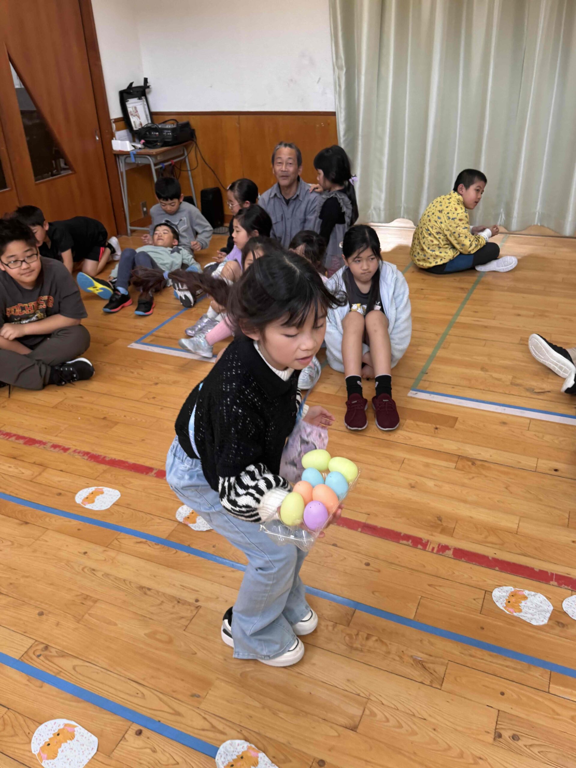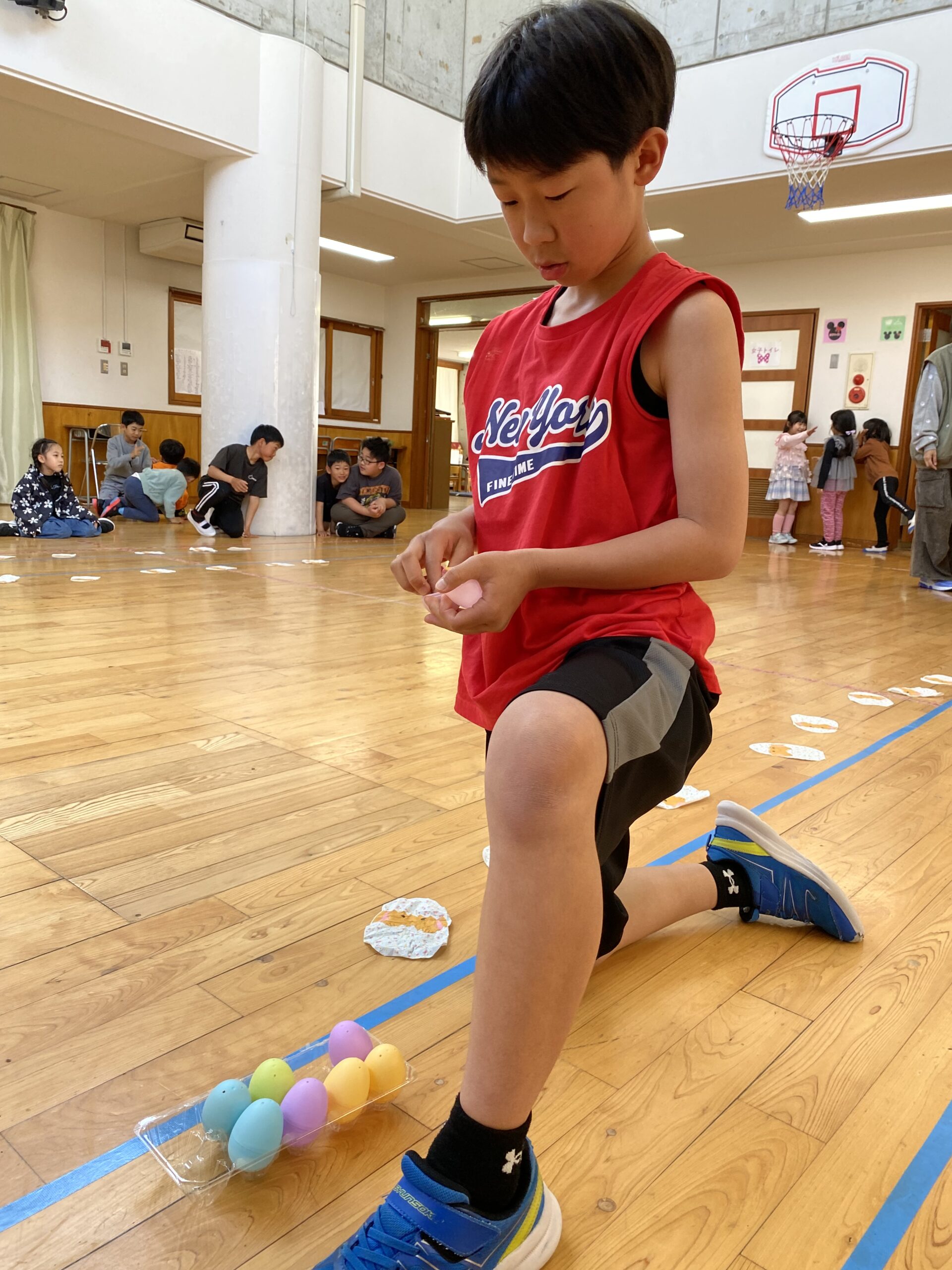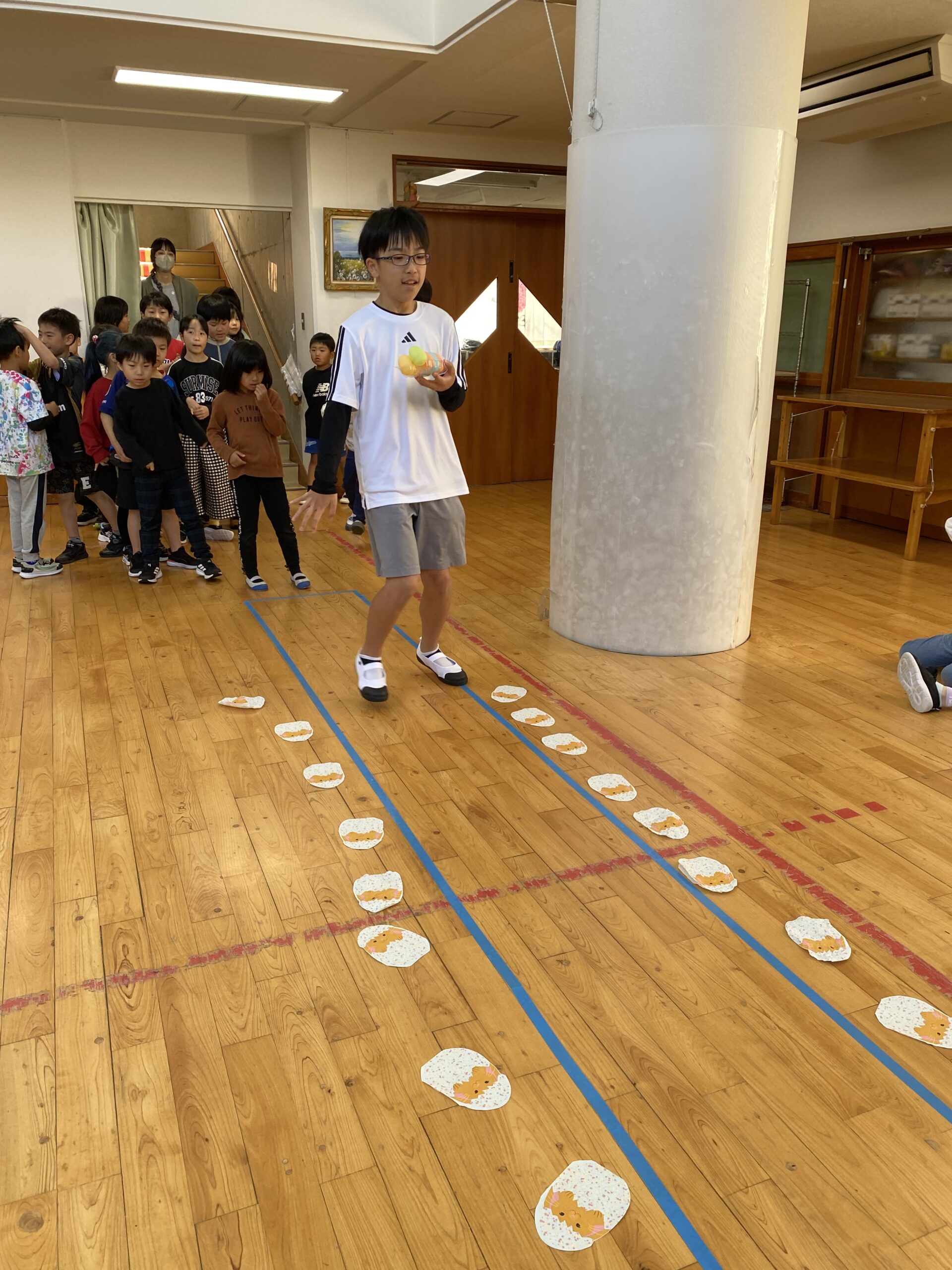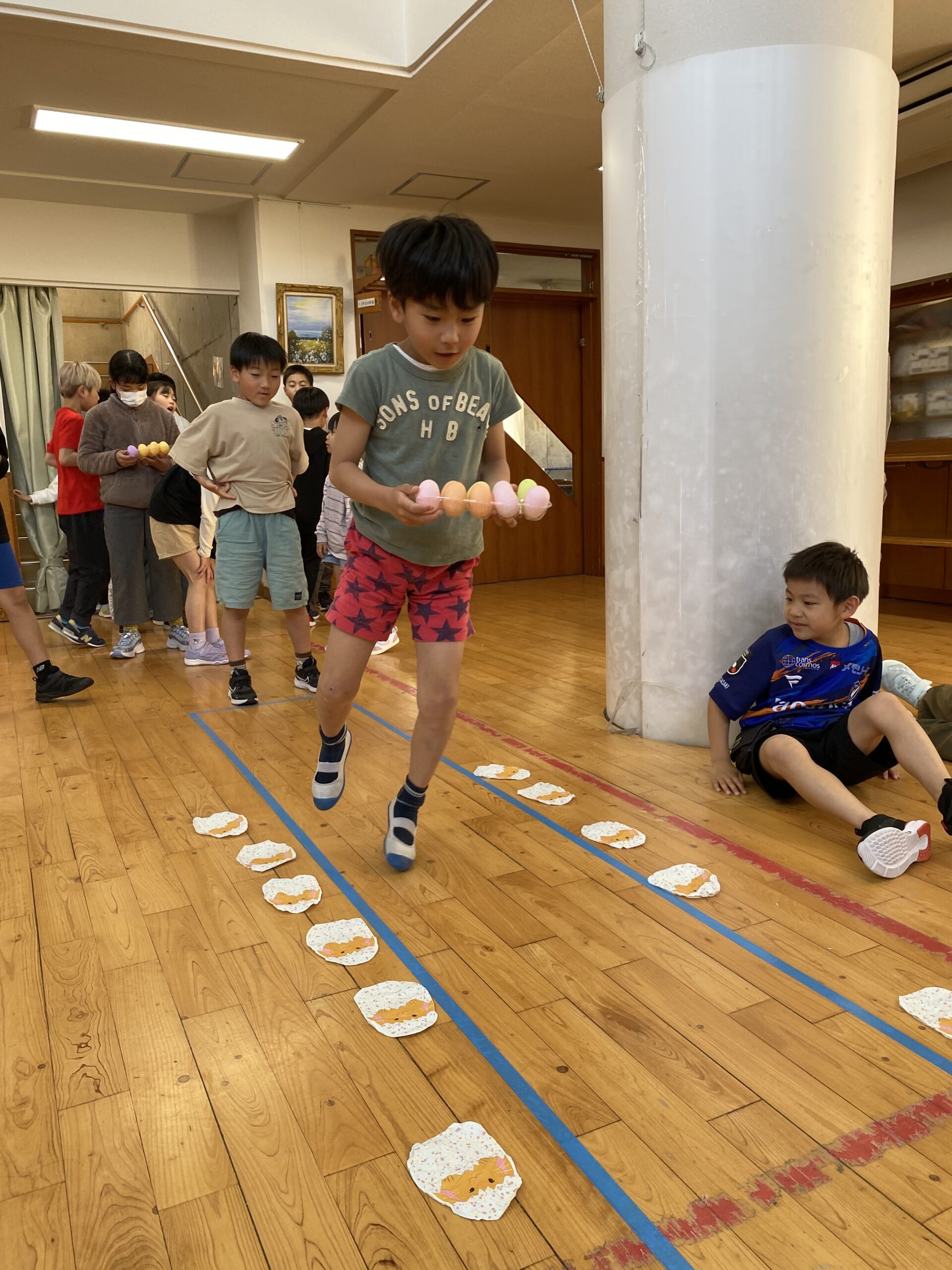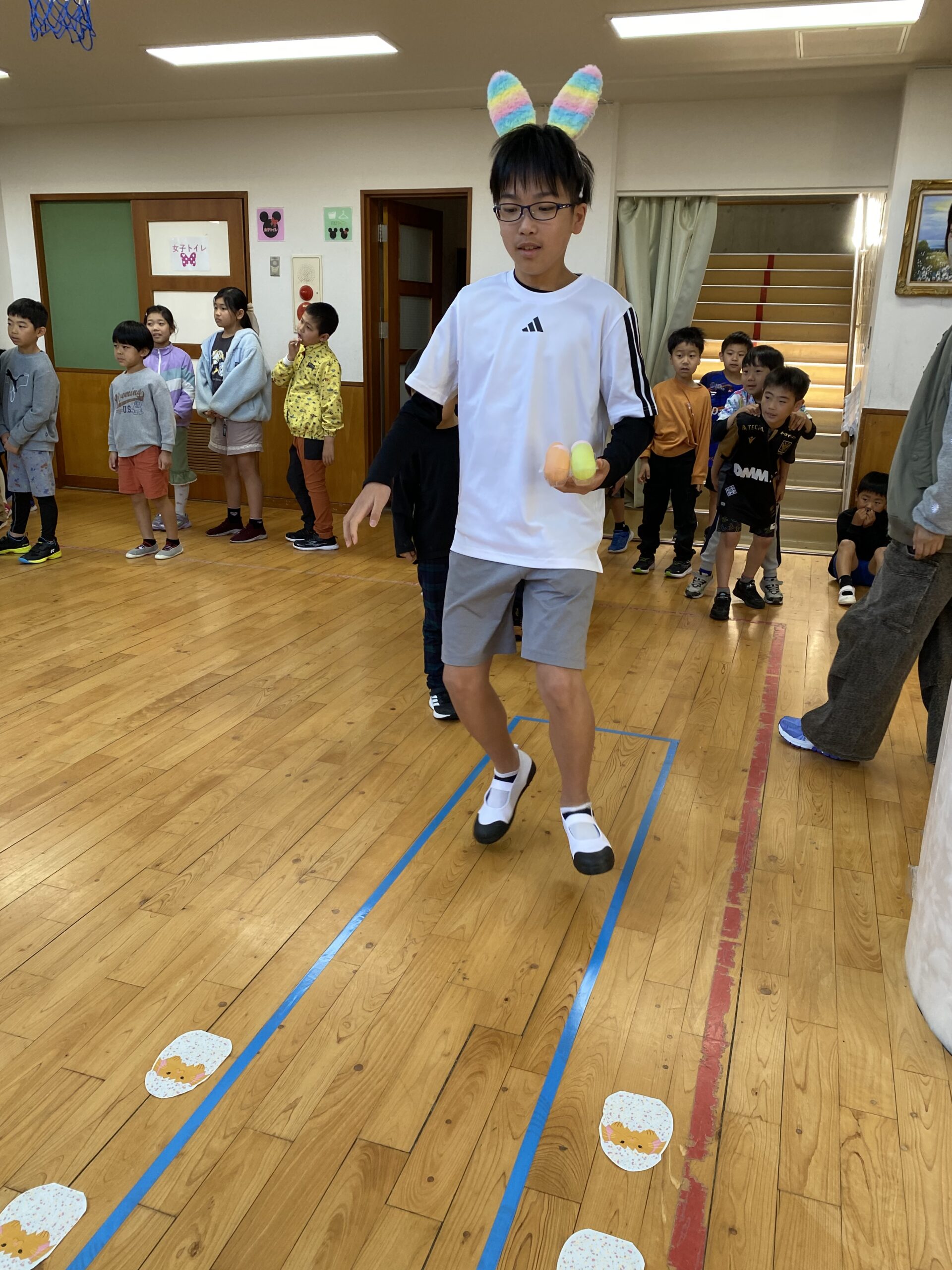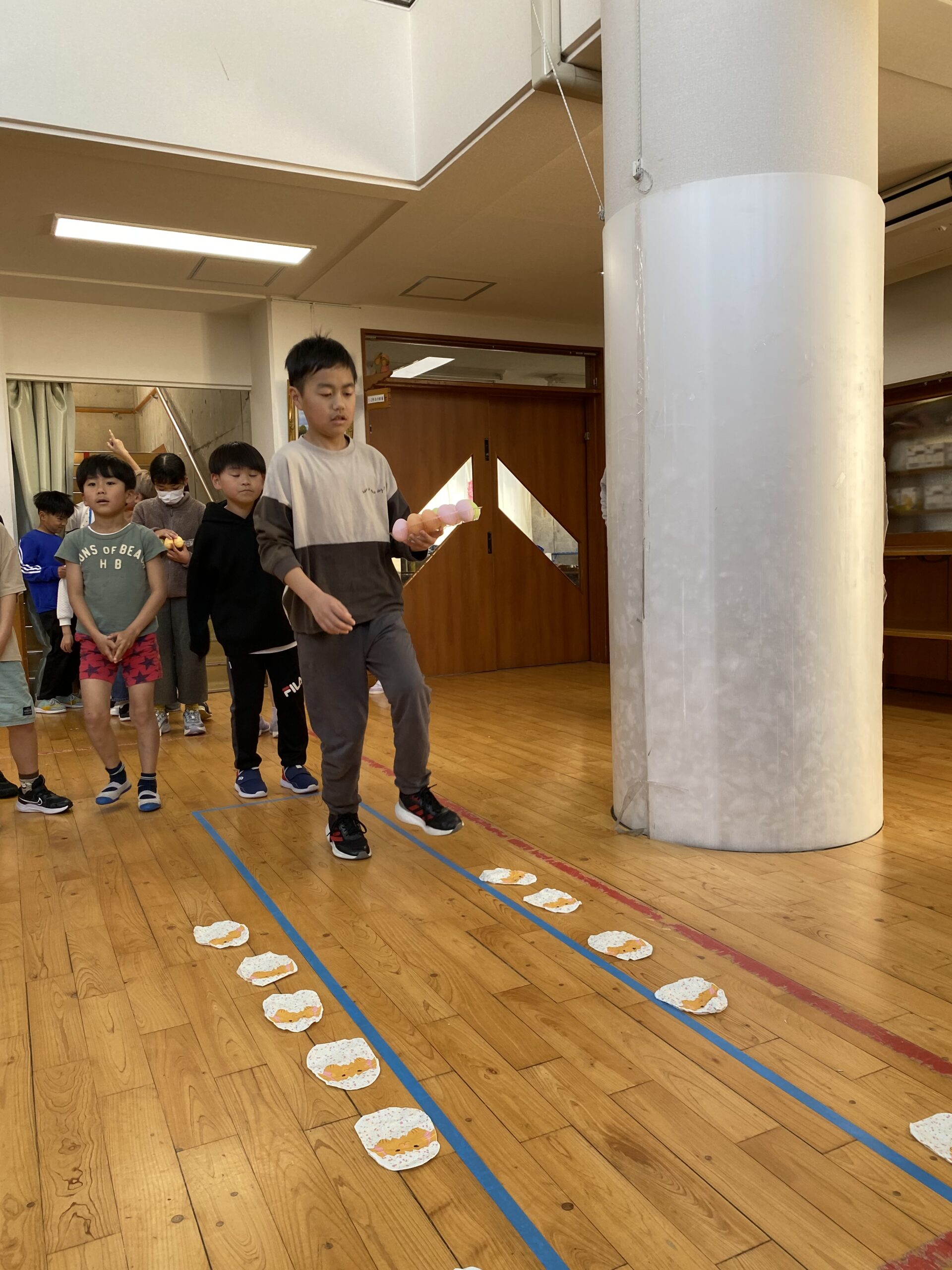 K先生側転しながら卵10個落とさず進みました❣