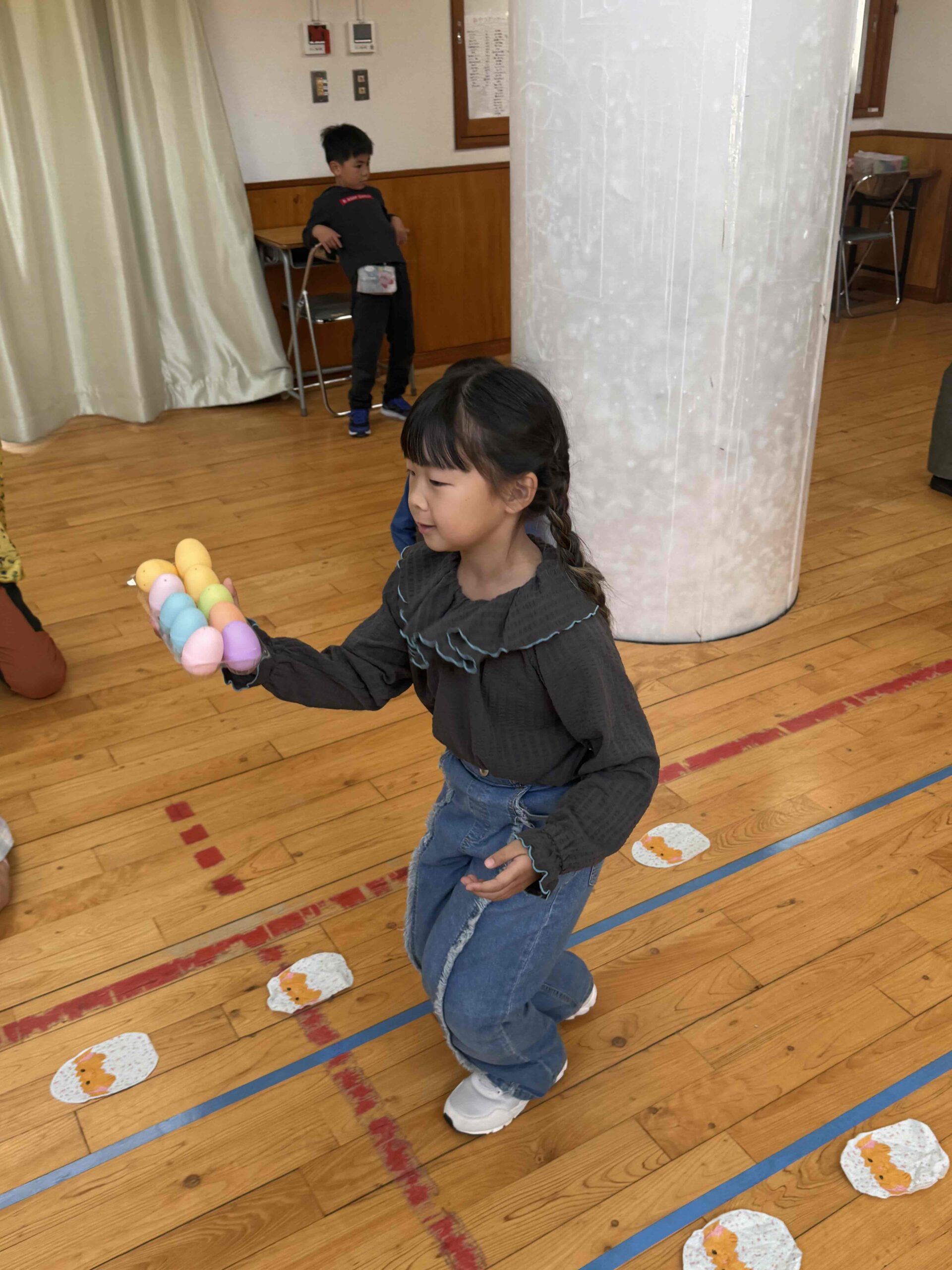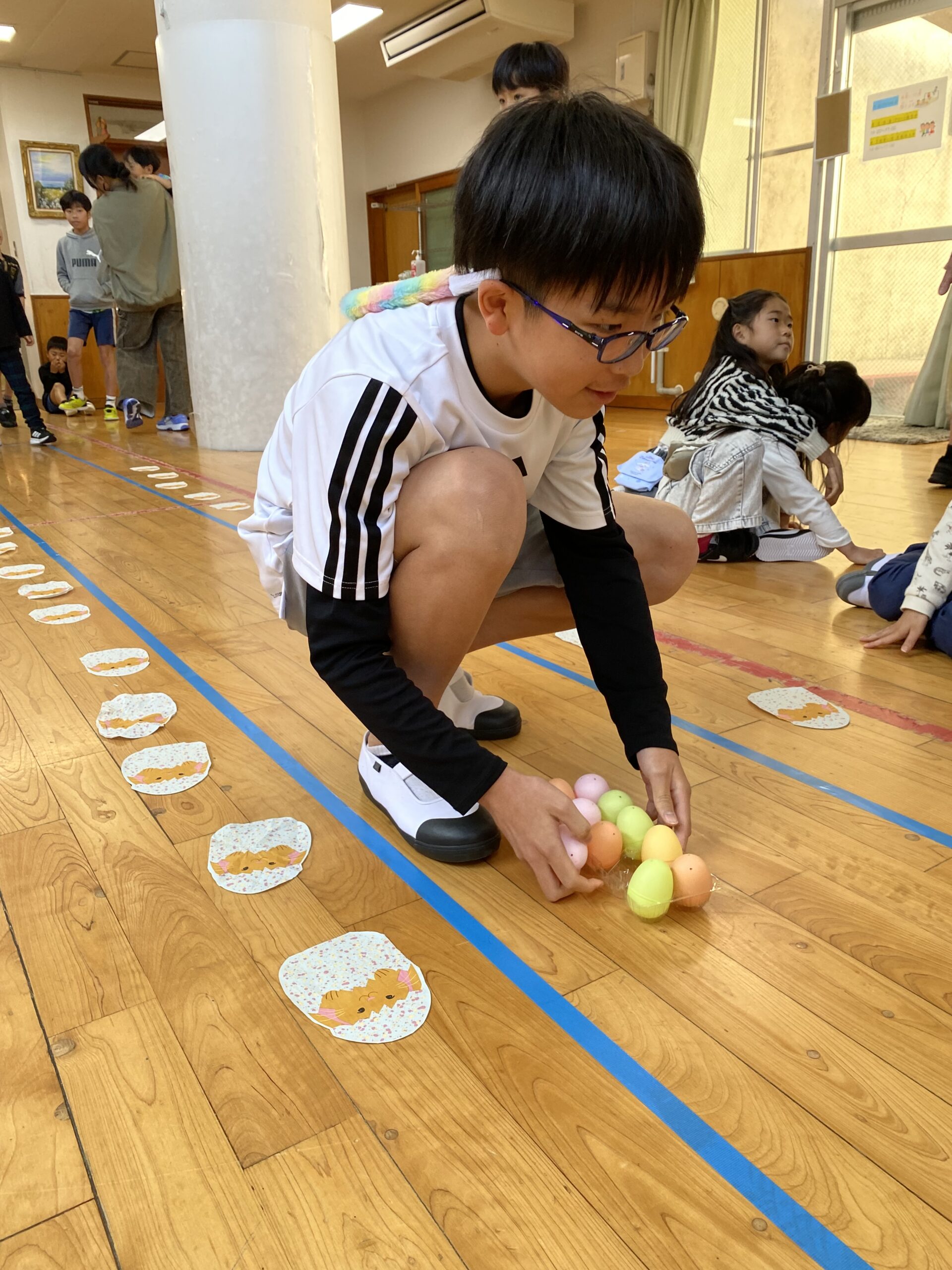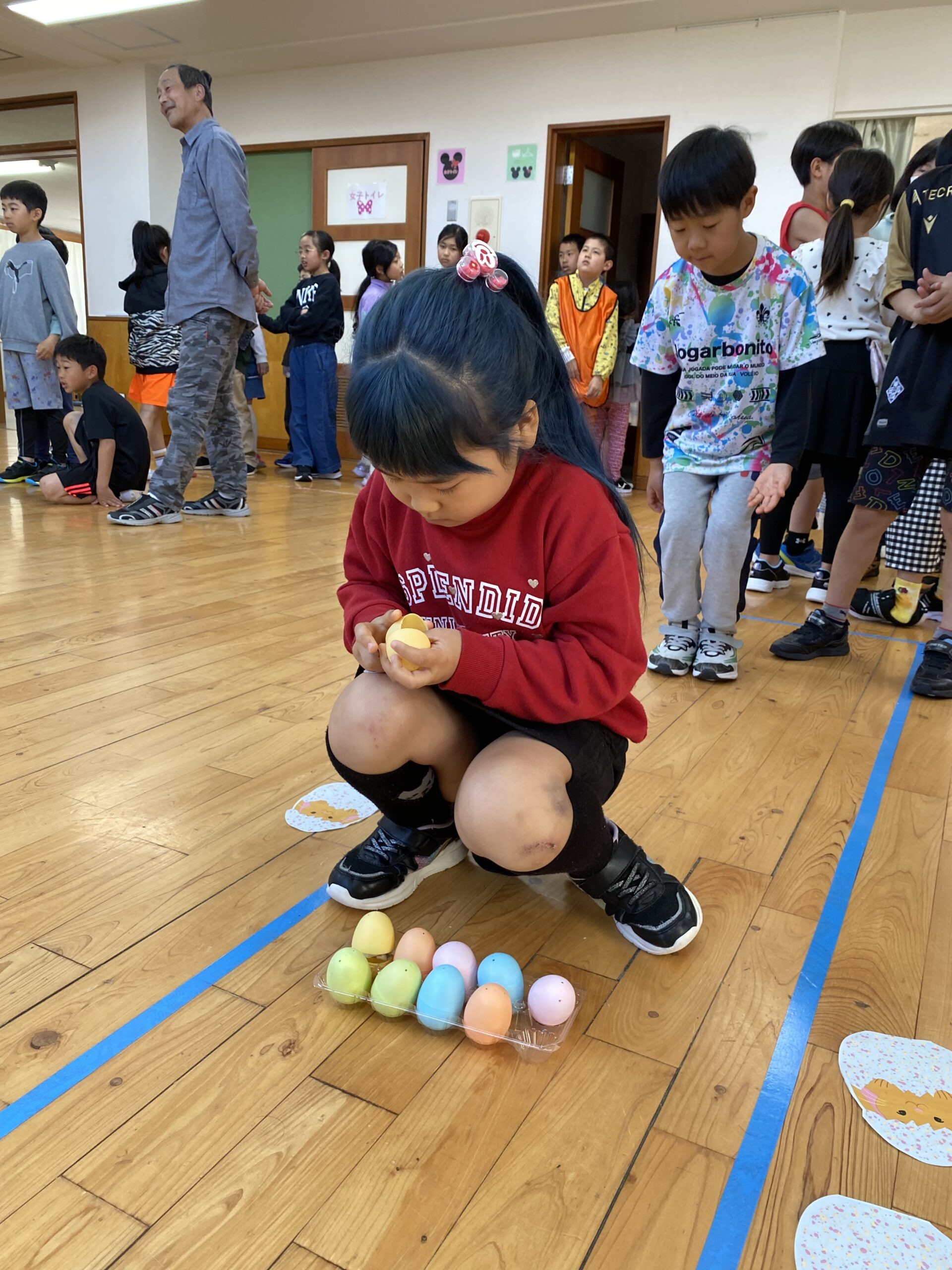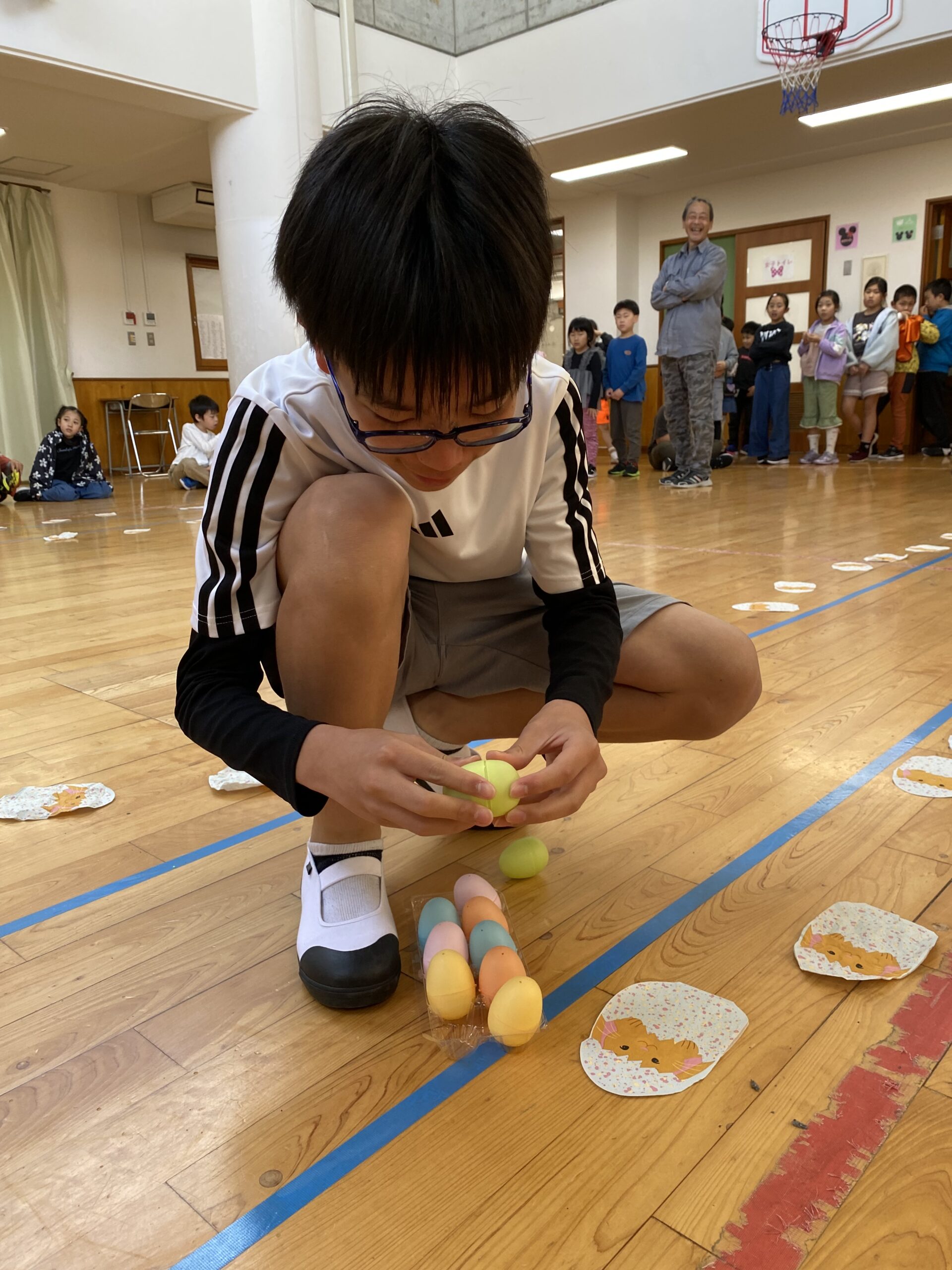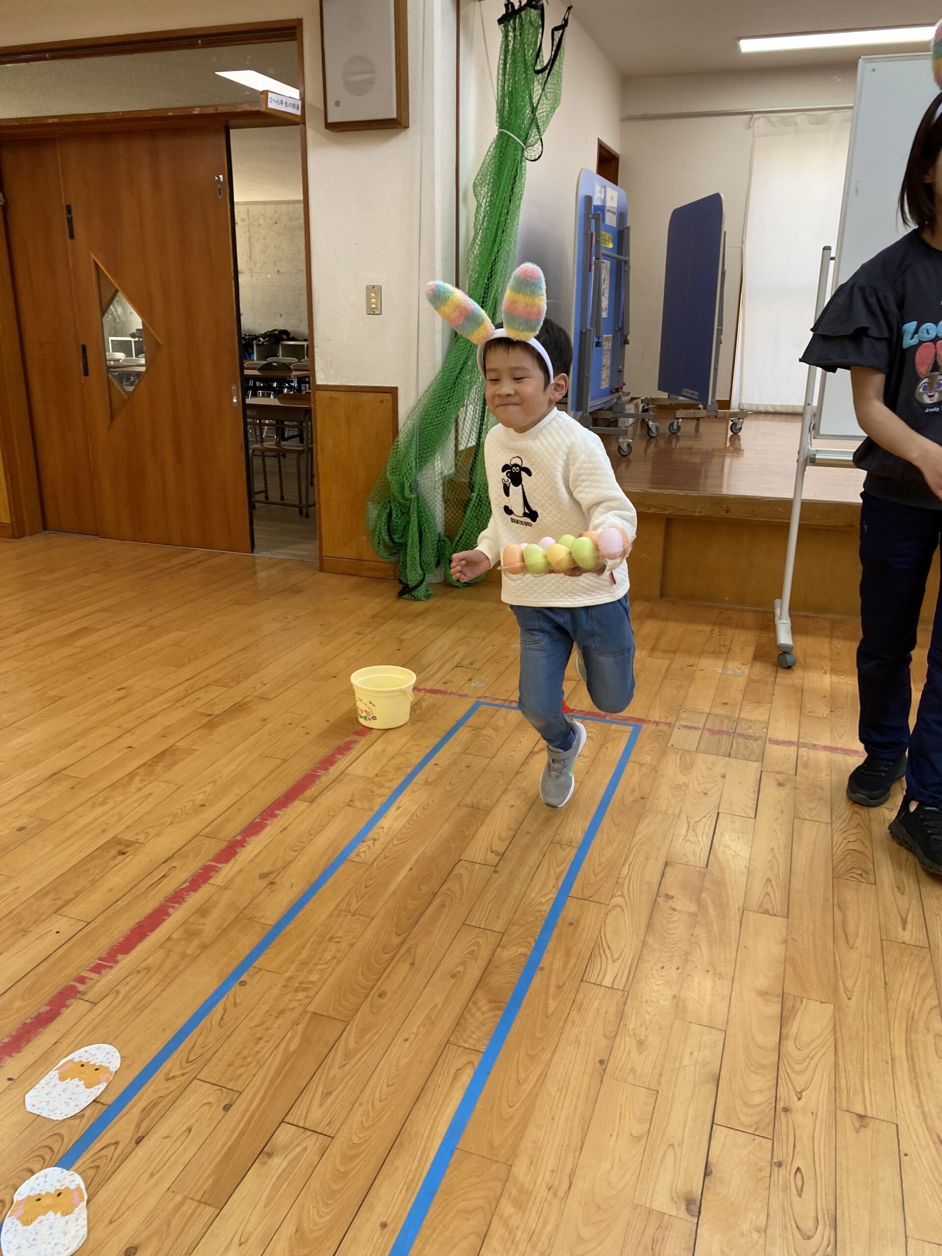 K先生側転しながら卵10個落とさず進みました❣