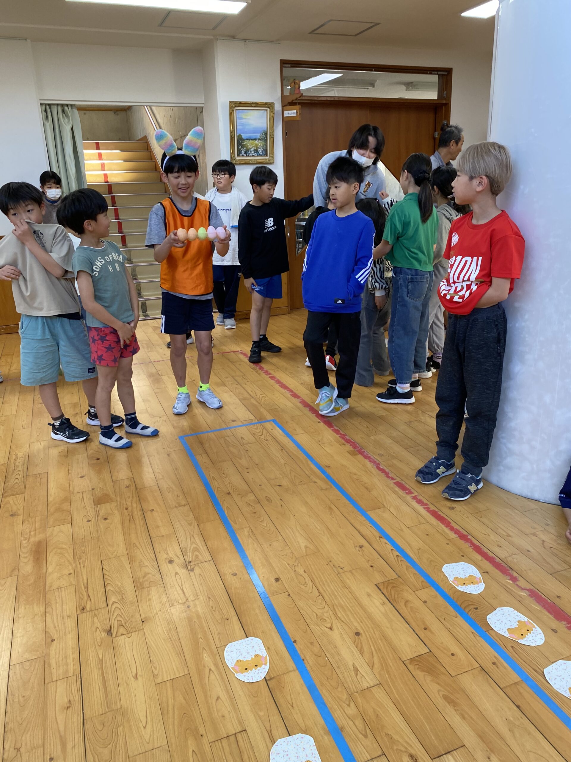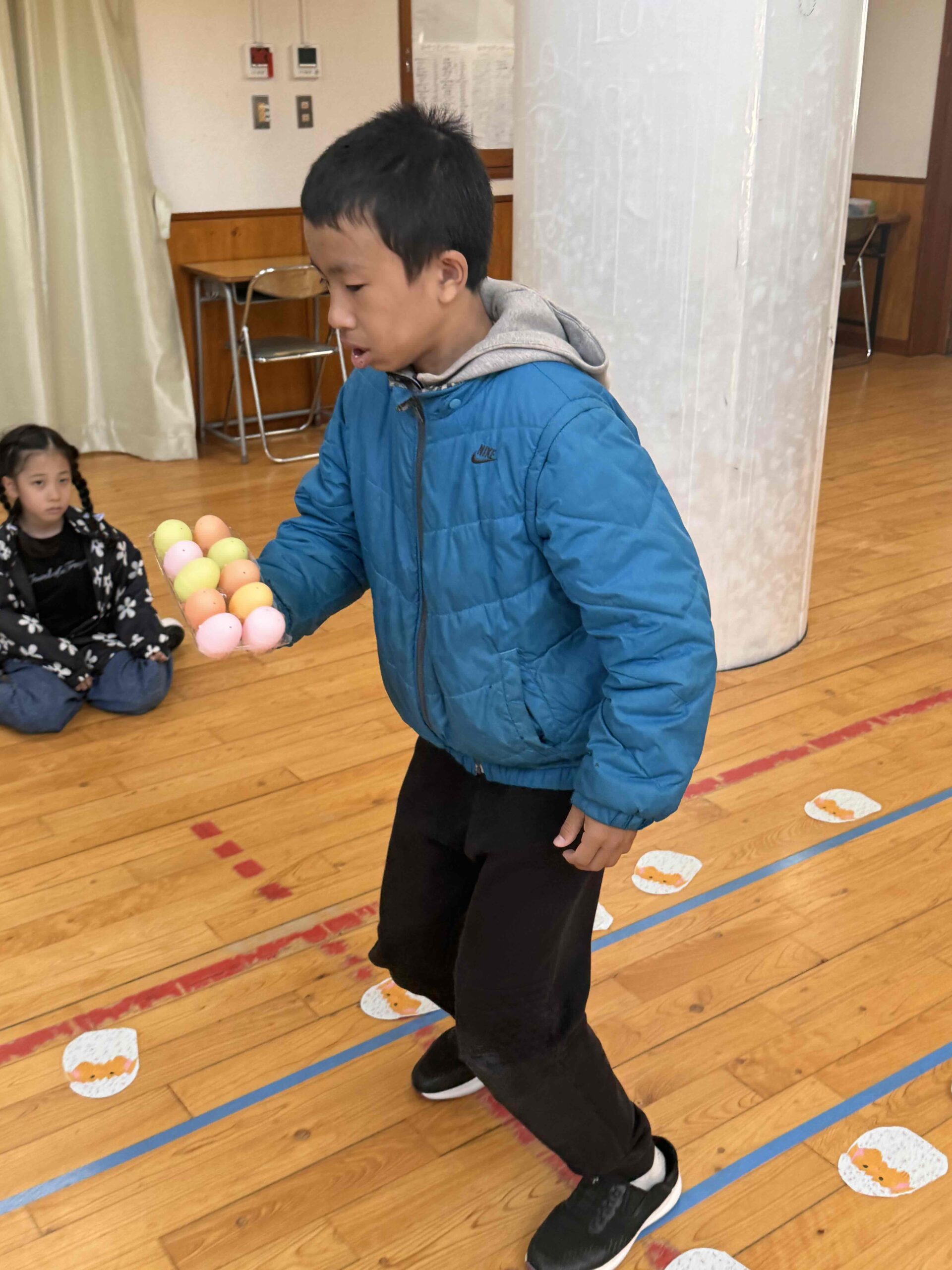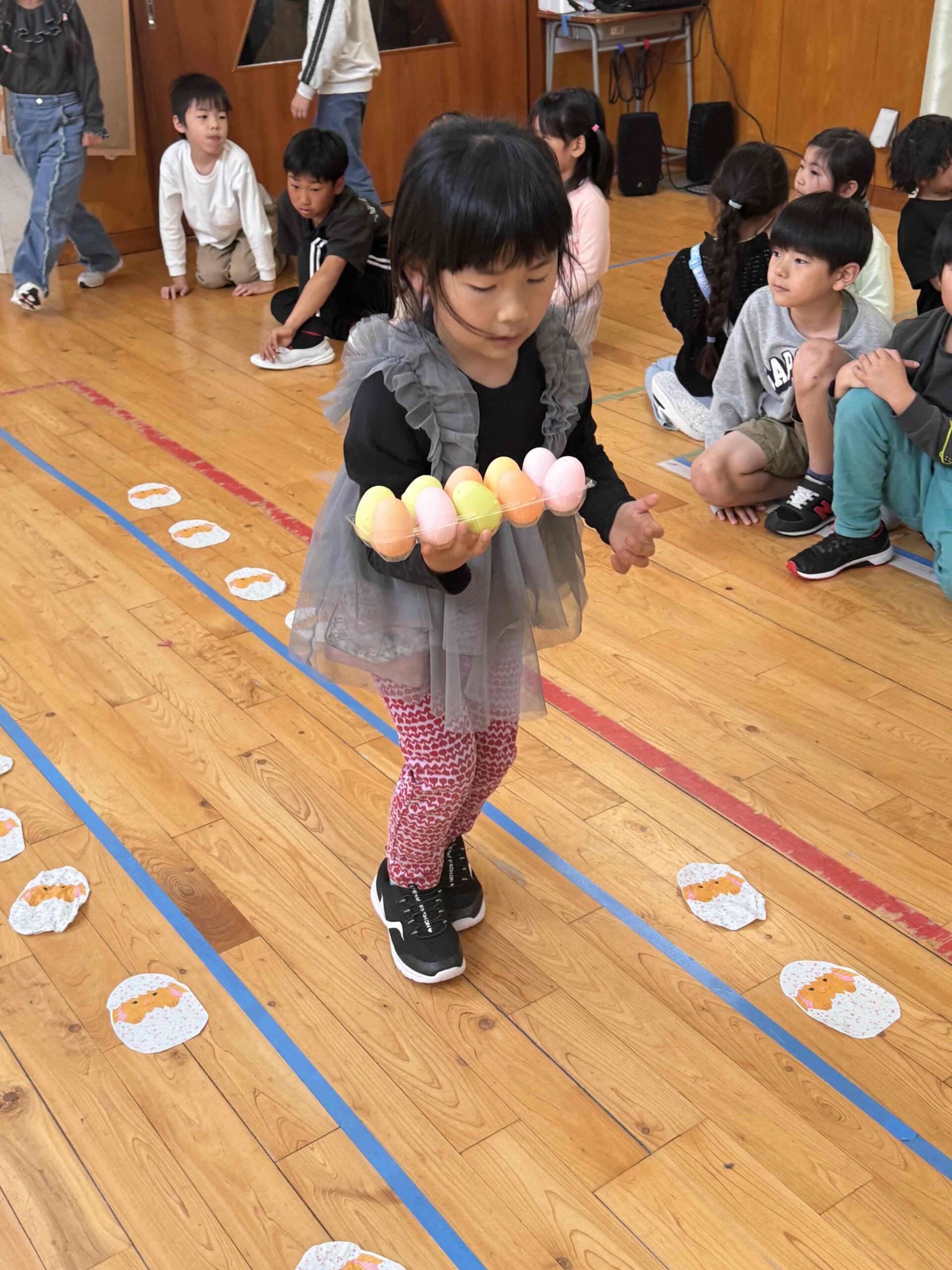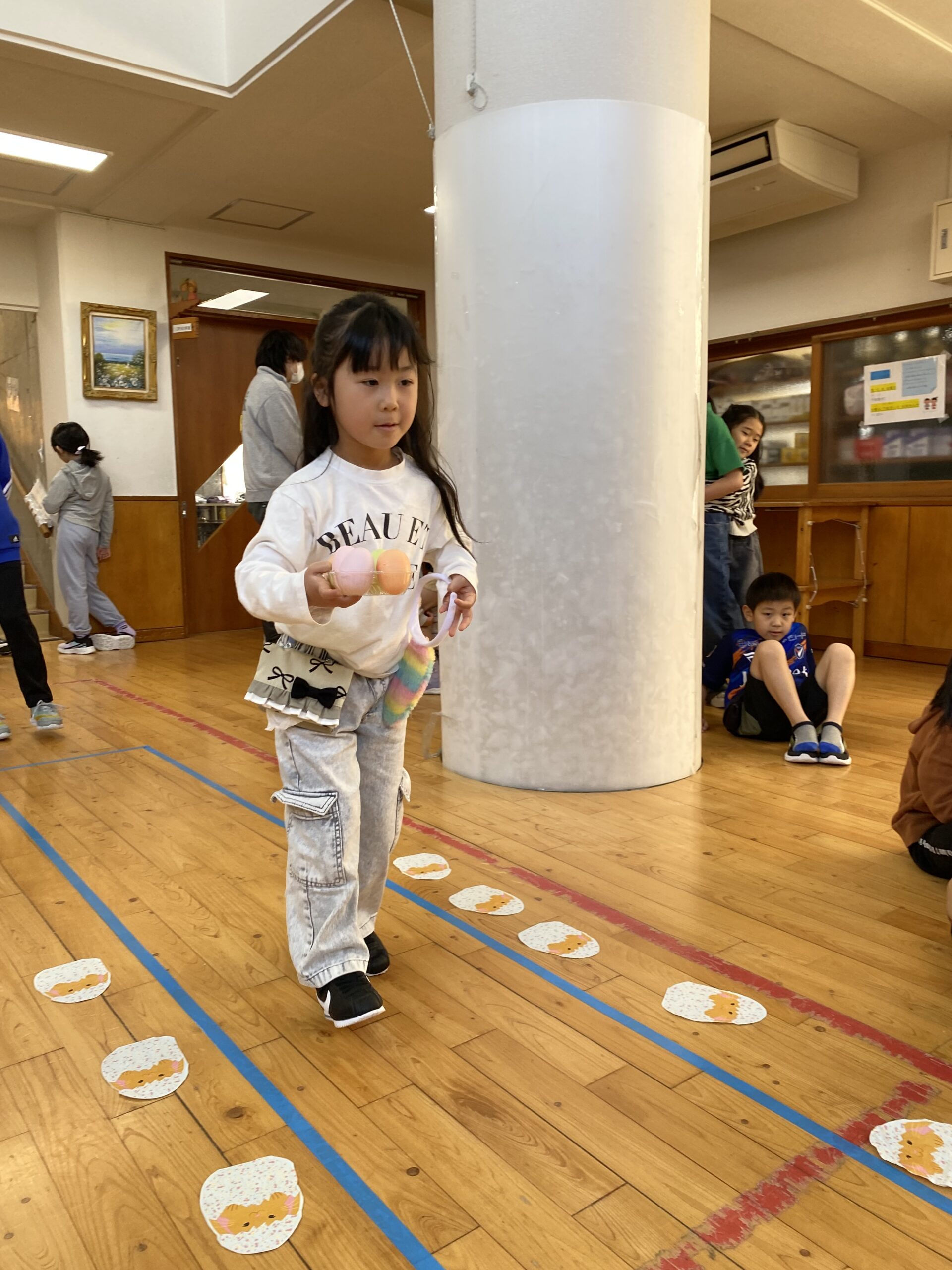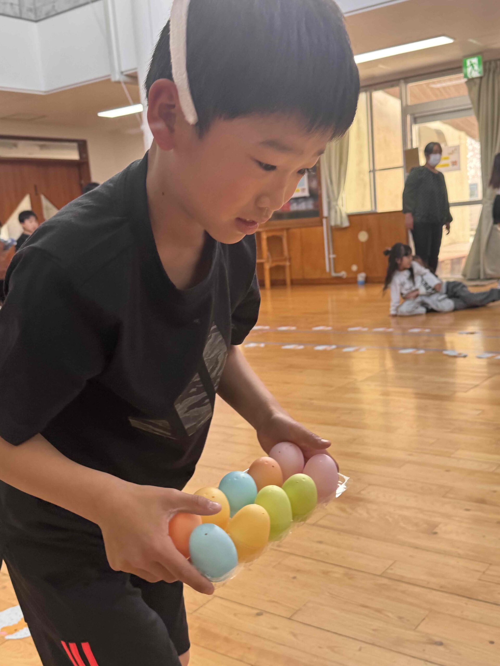 K先生側転しながら卵10個落とさず進みました❣