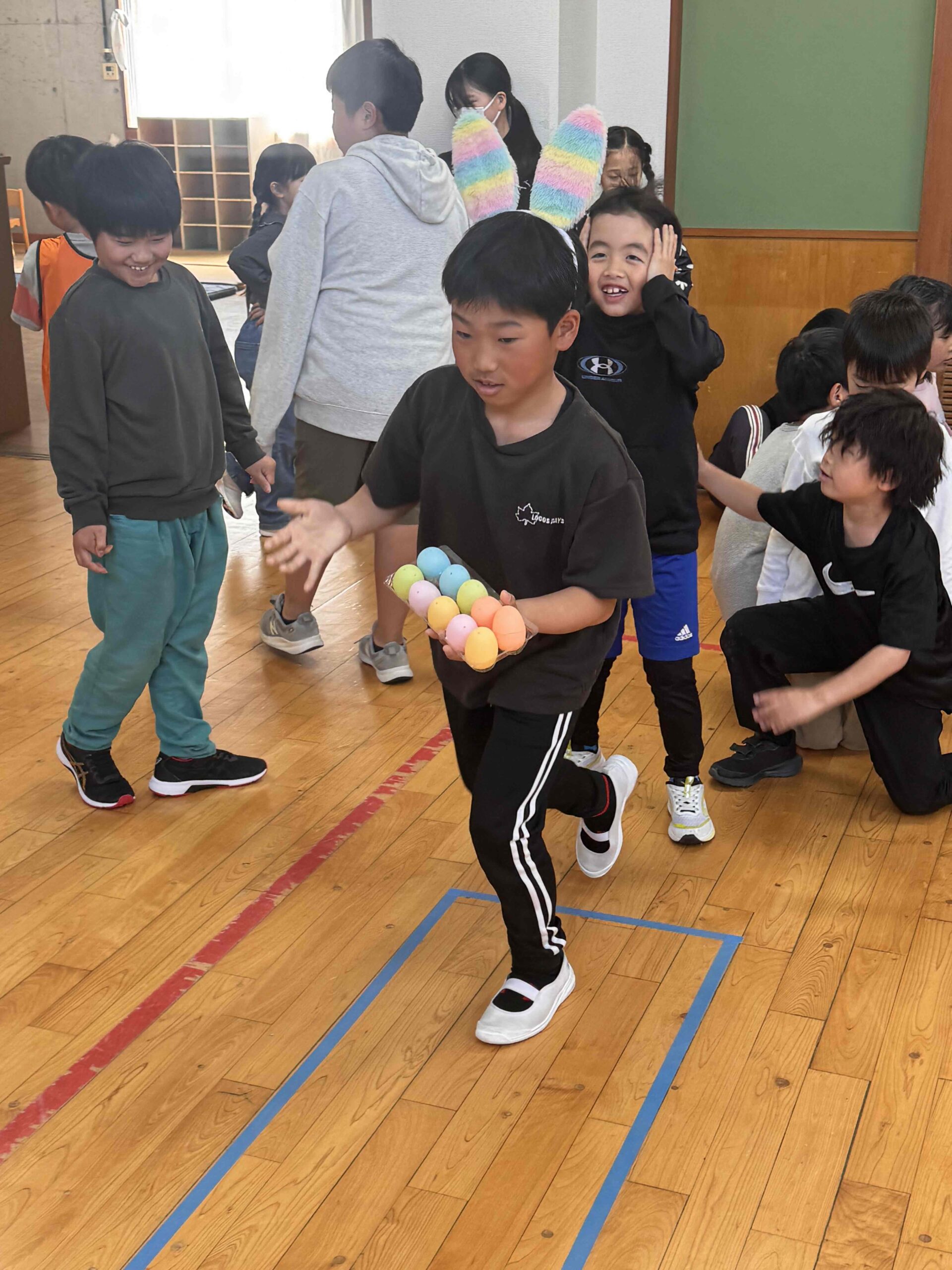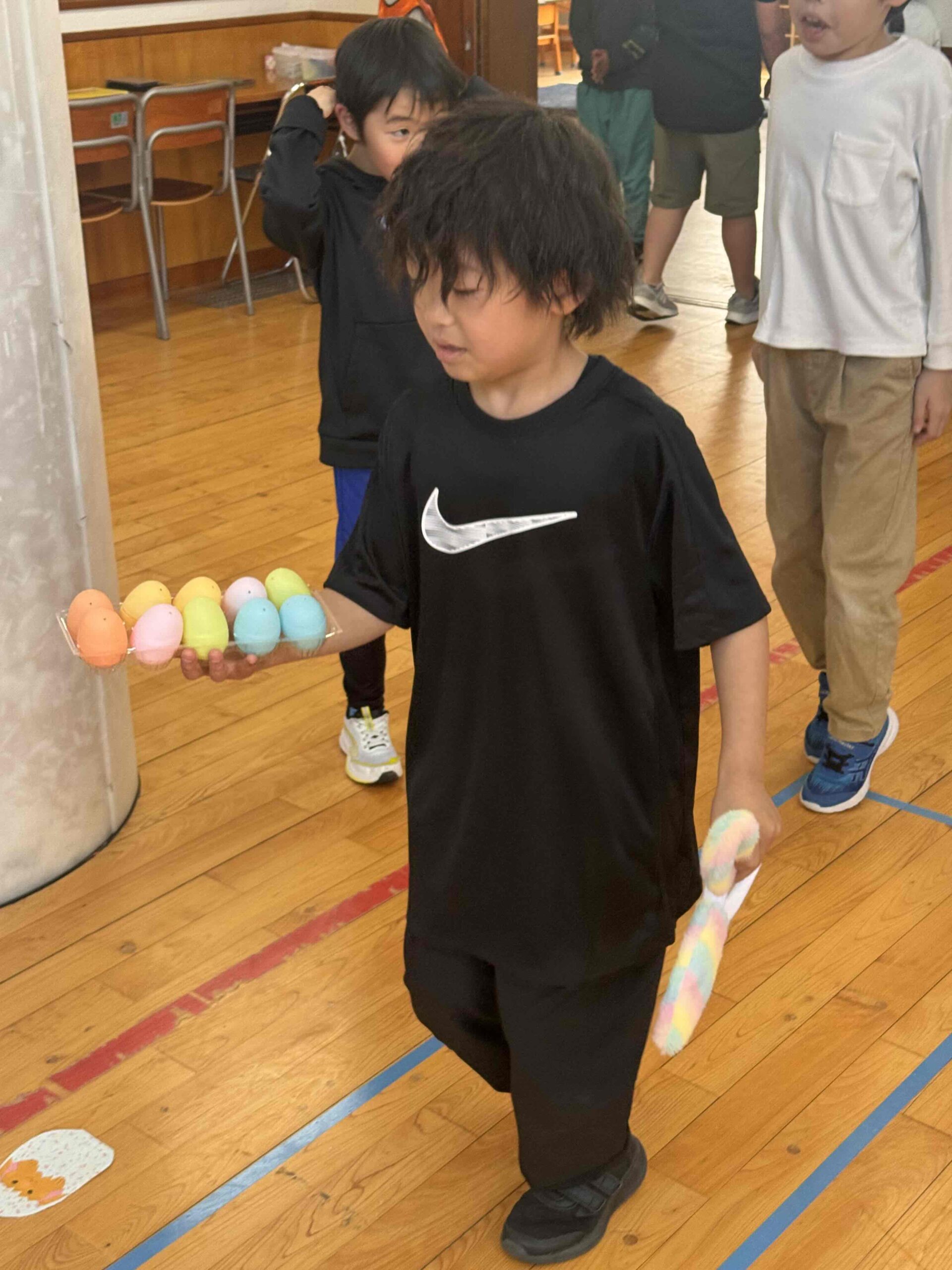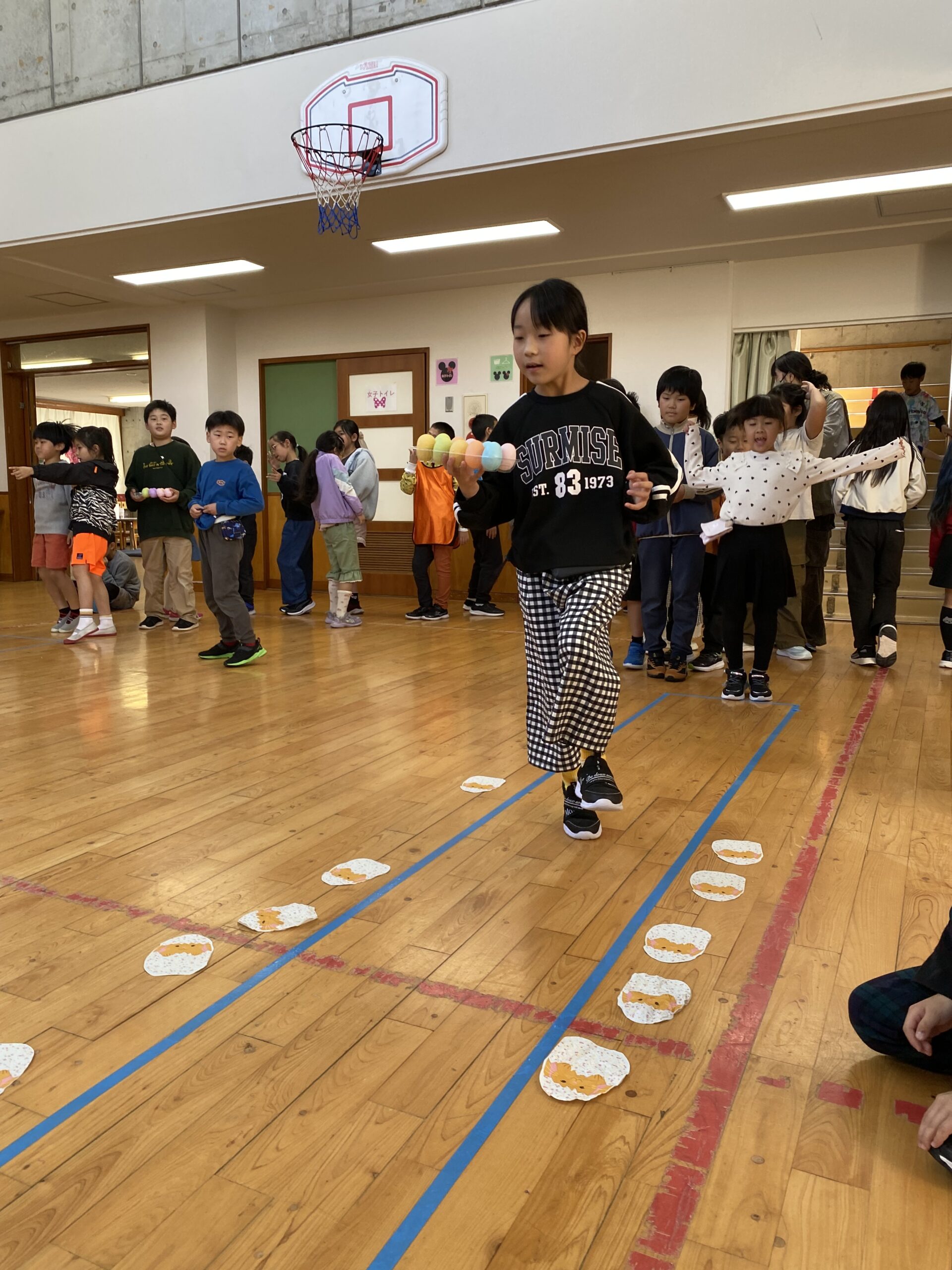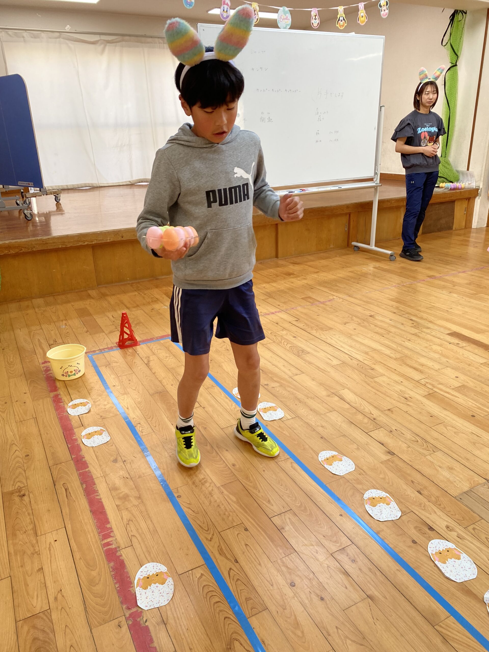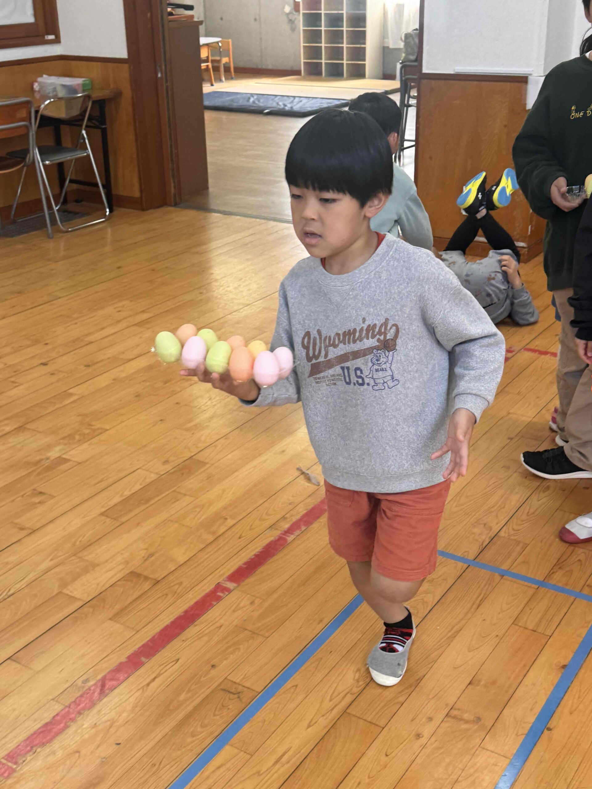 K先生側転しながら卵10個落とさず進みました❣