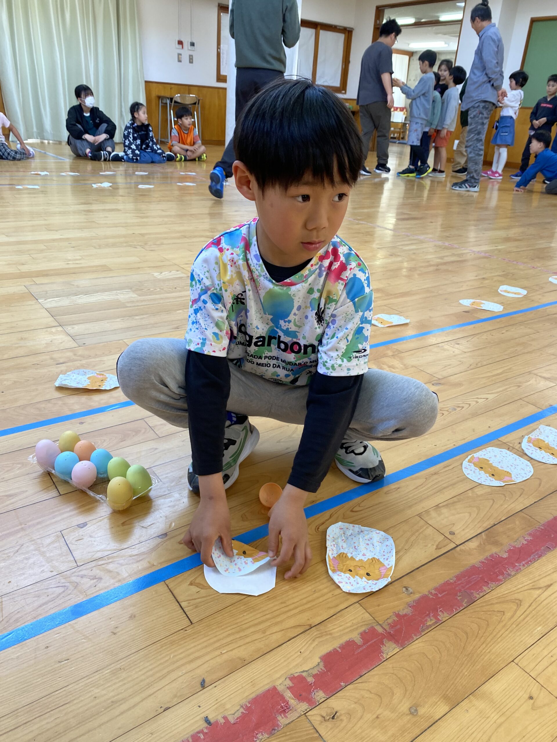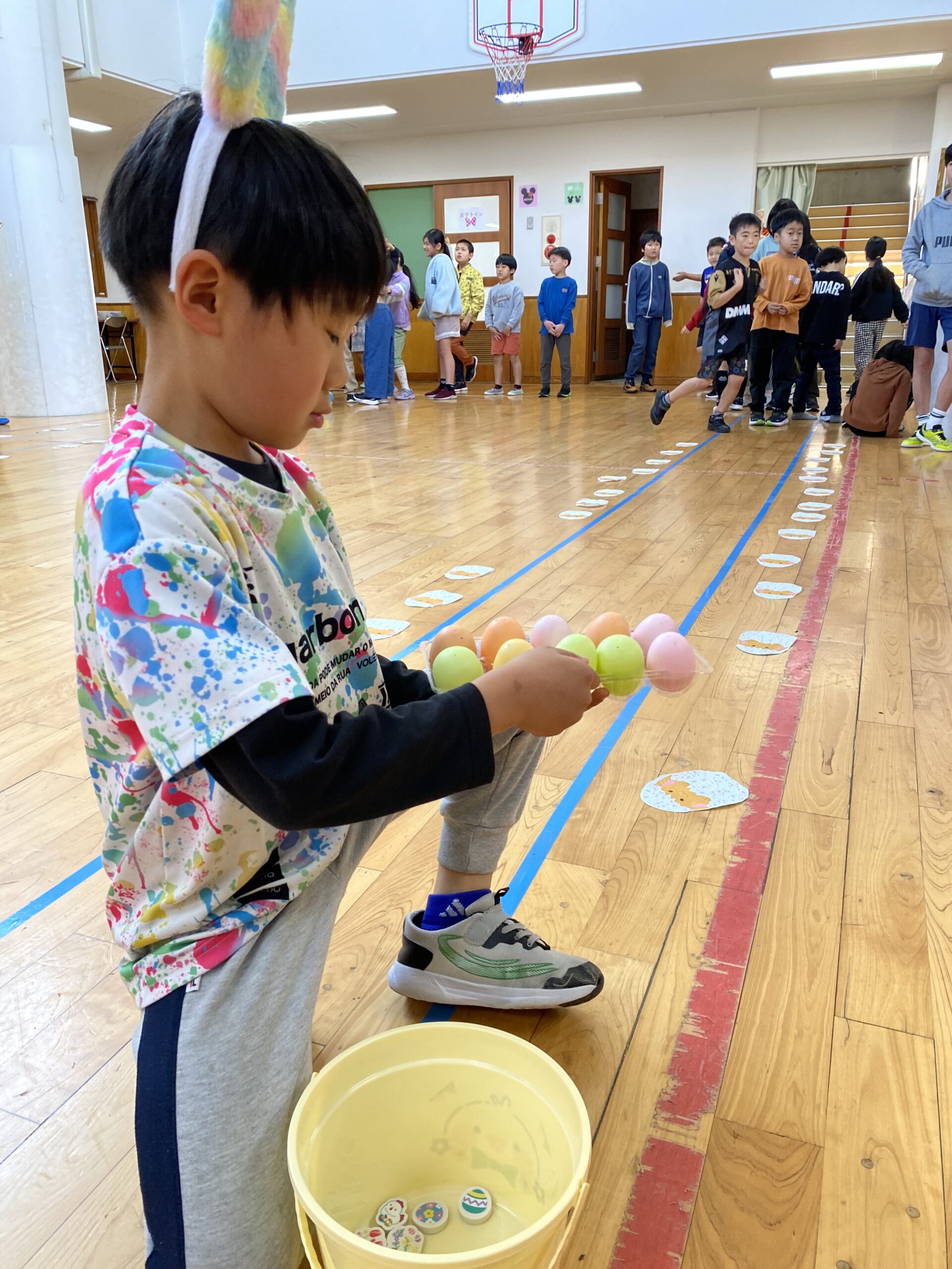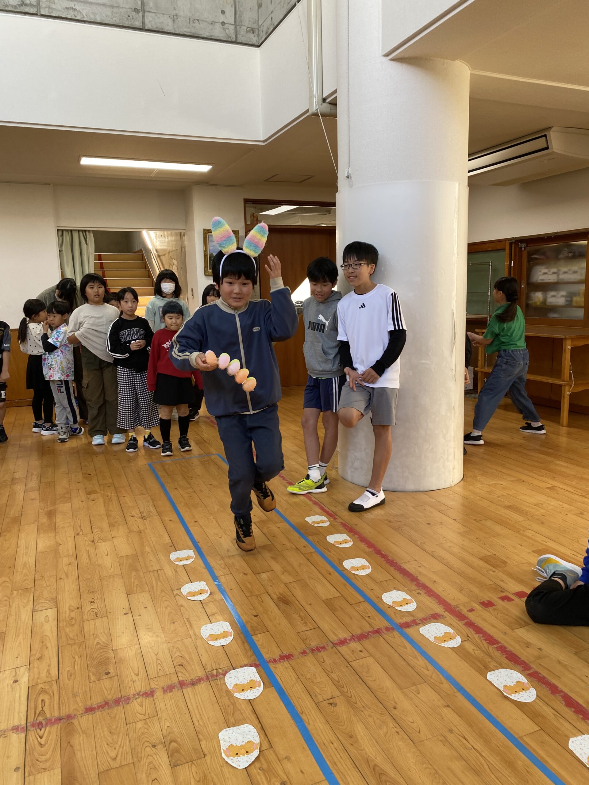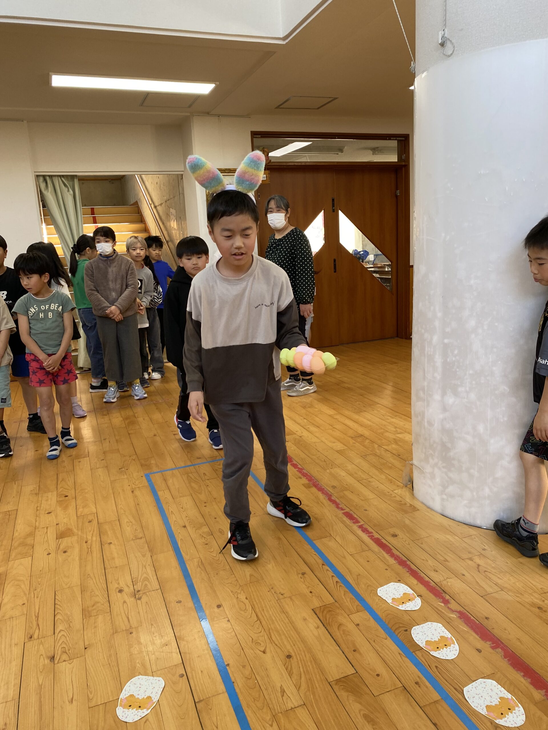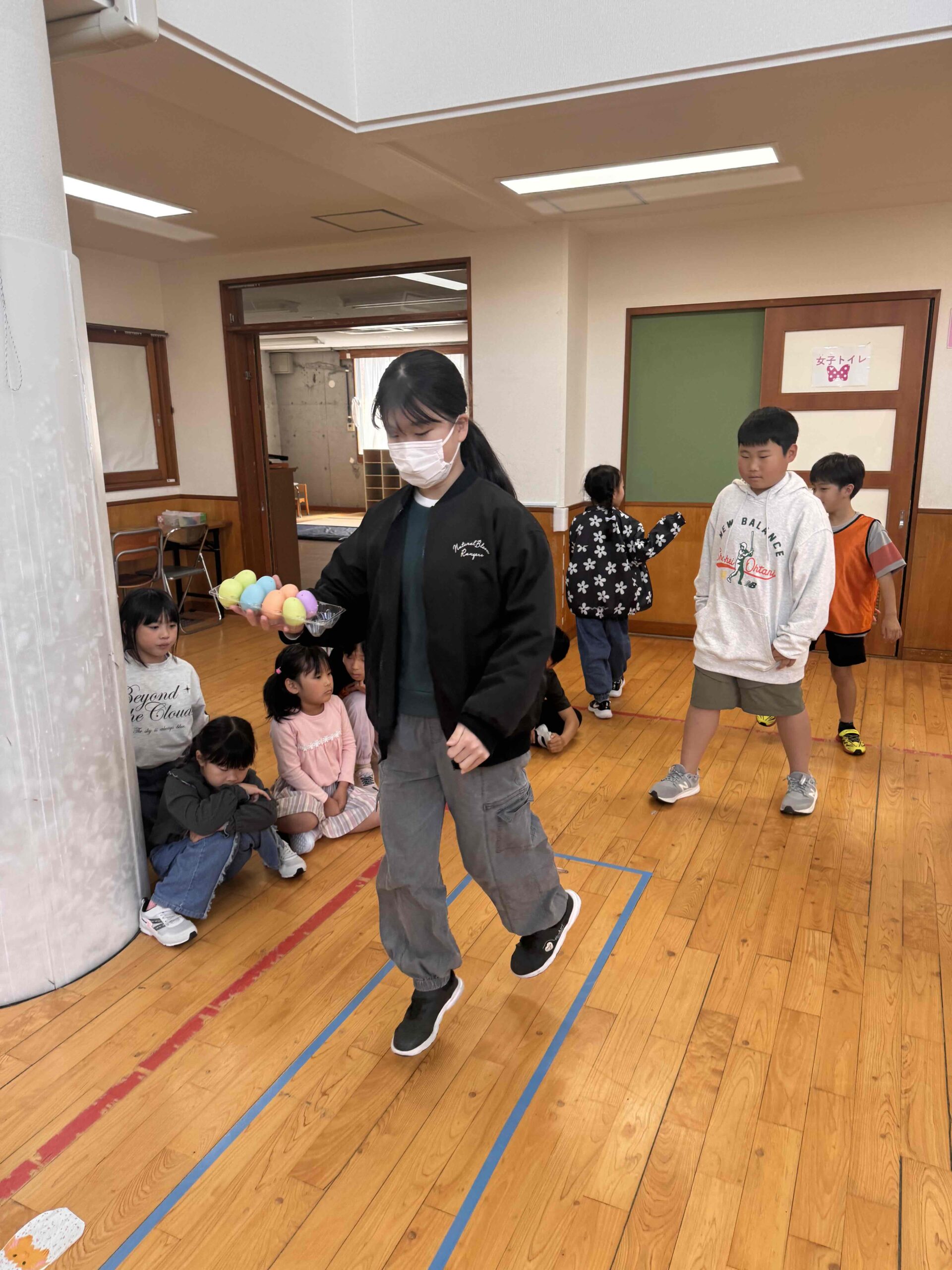 K先生側転しながら卵10個落とさず進みました❣