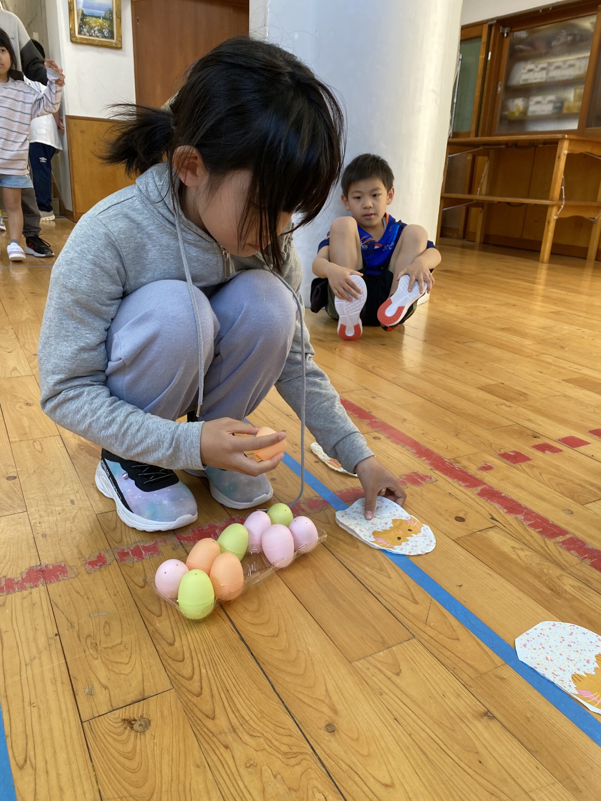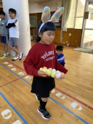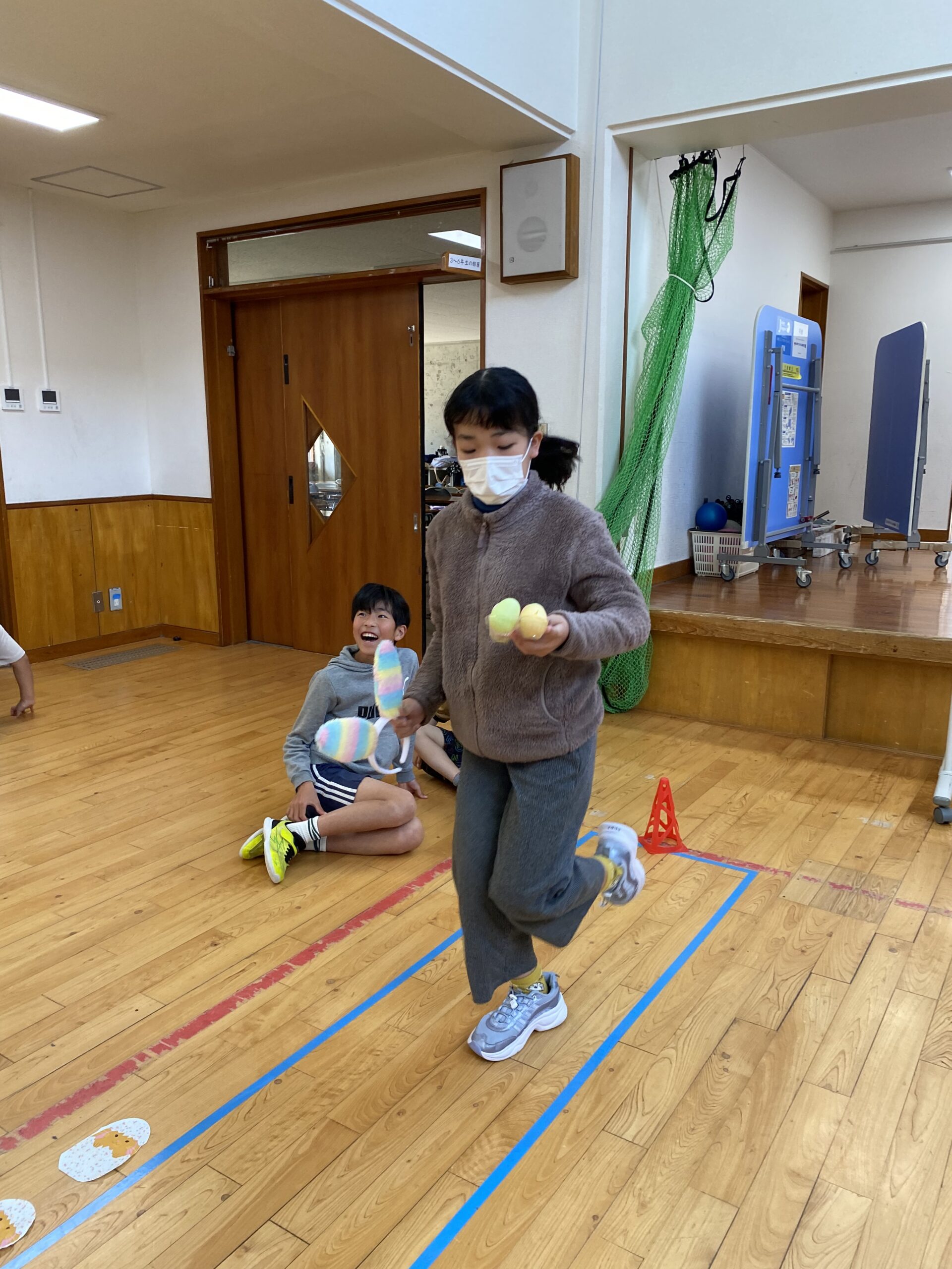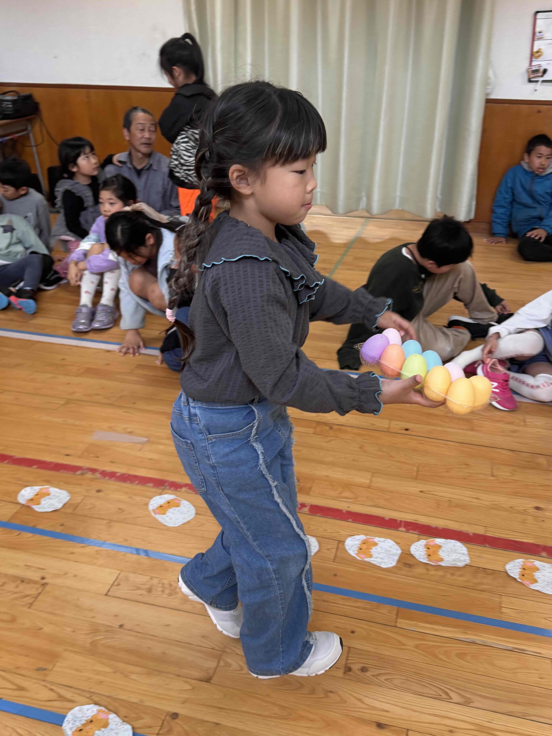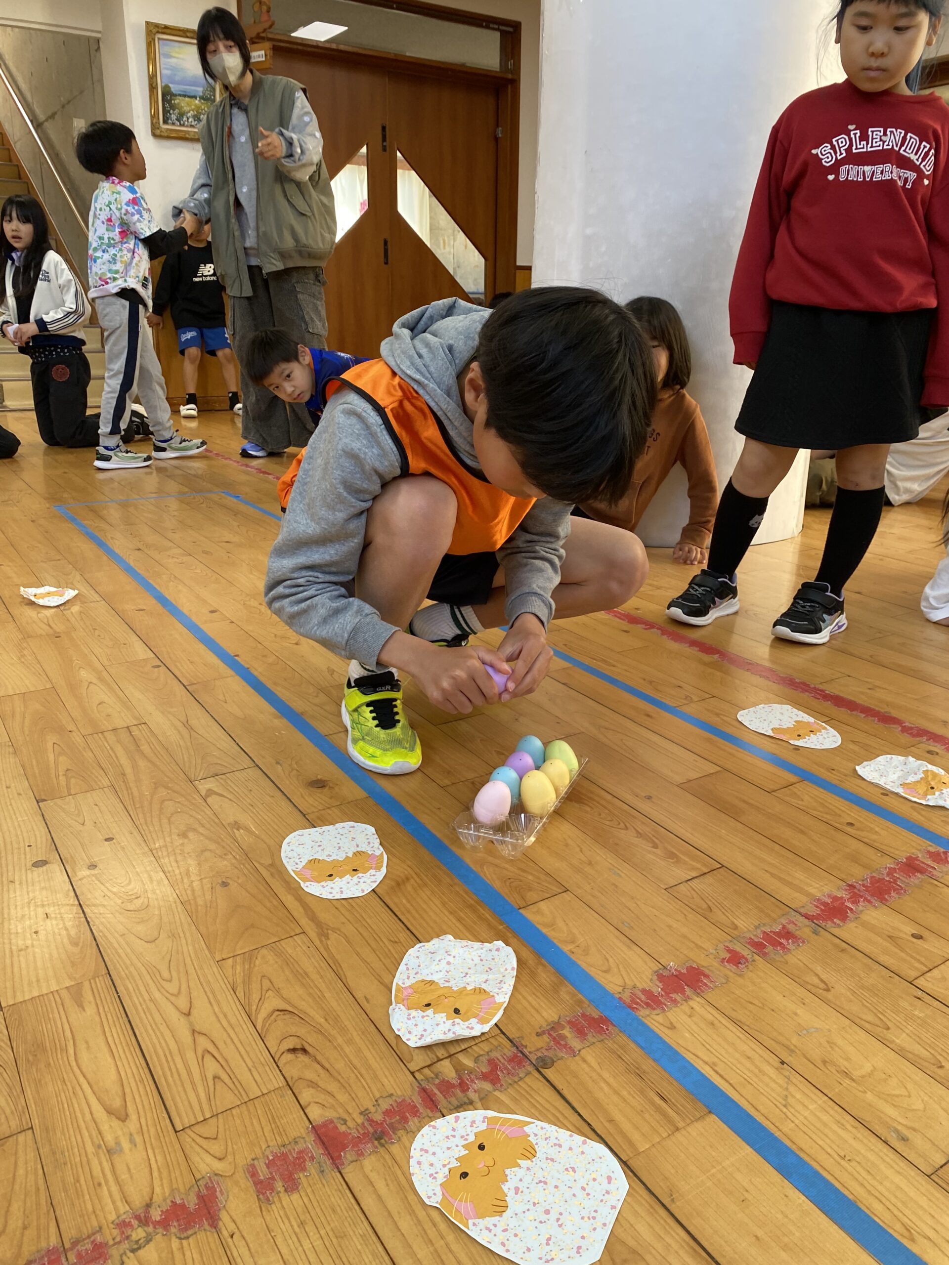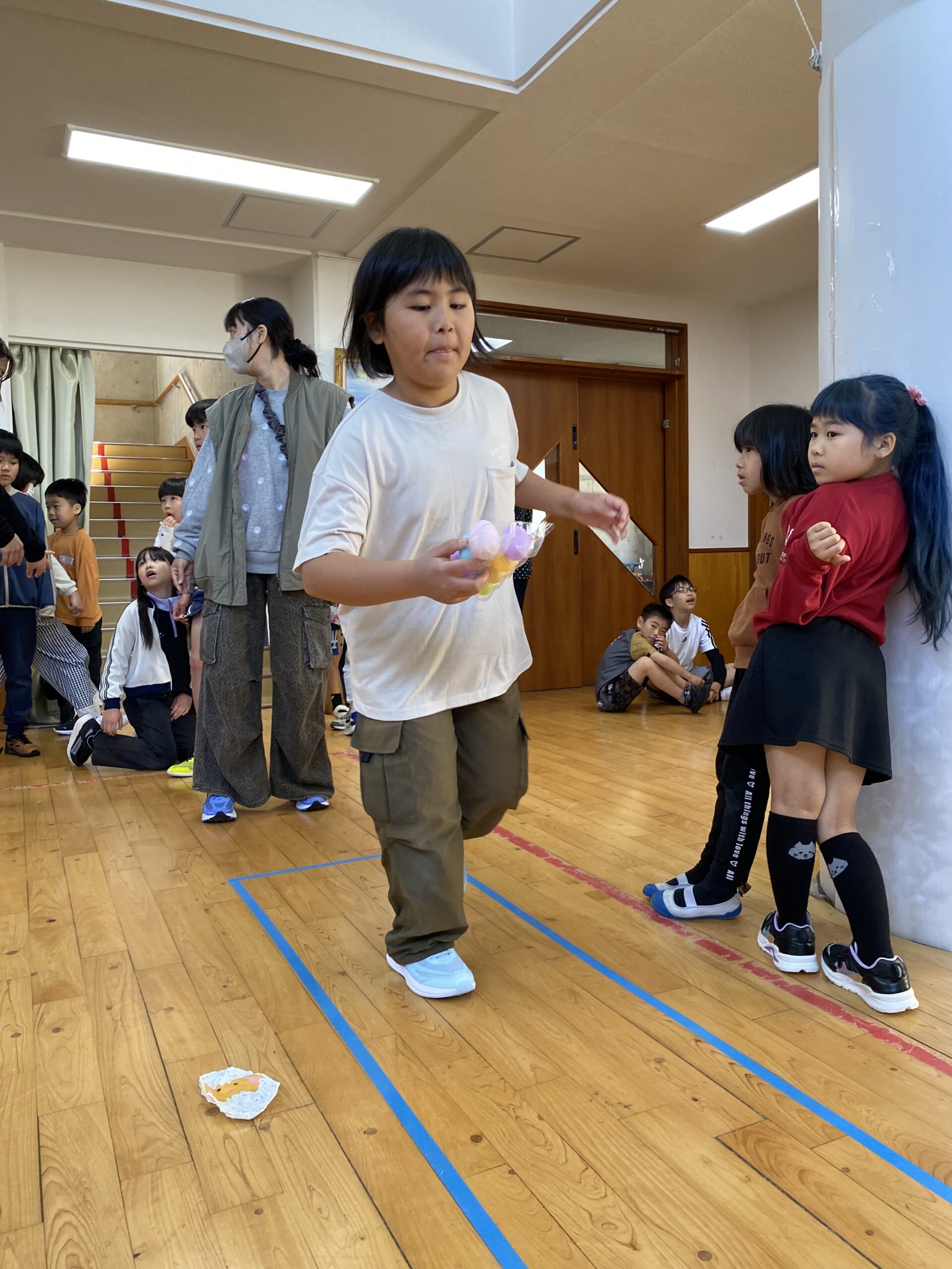 K先生側転しながら卵10個落とさず進みました❣