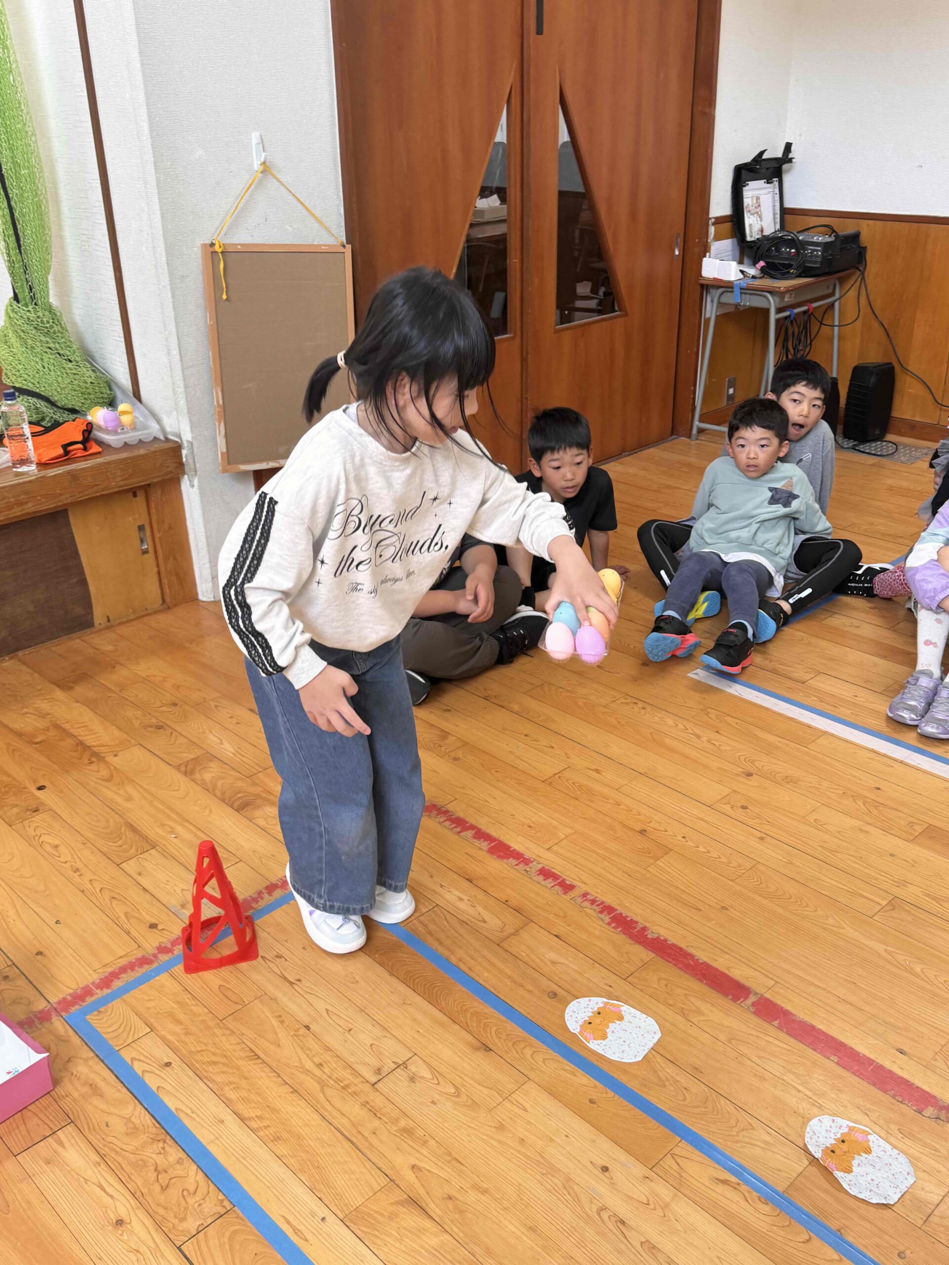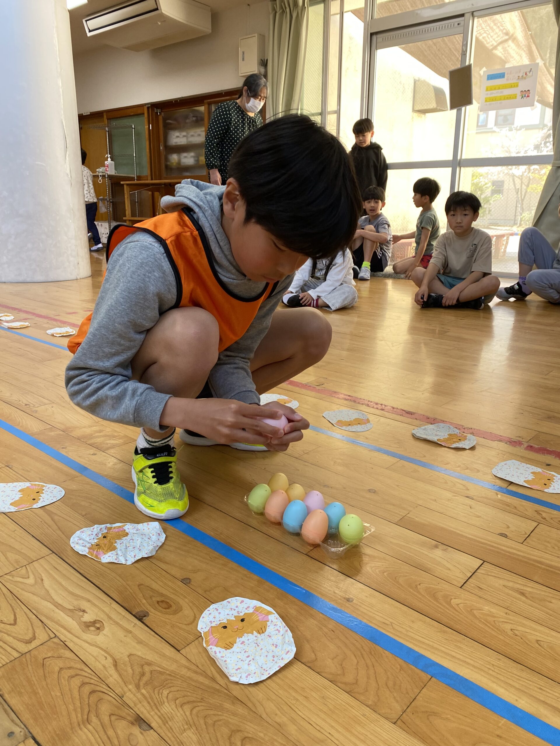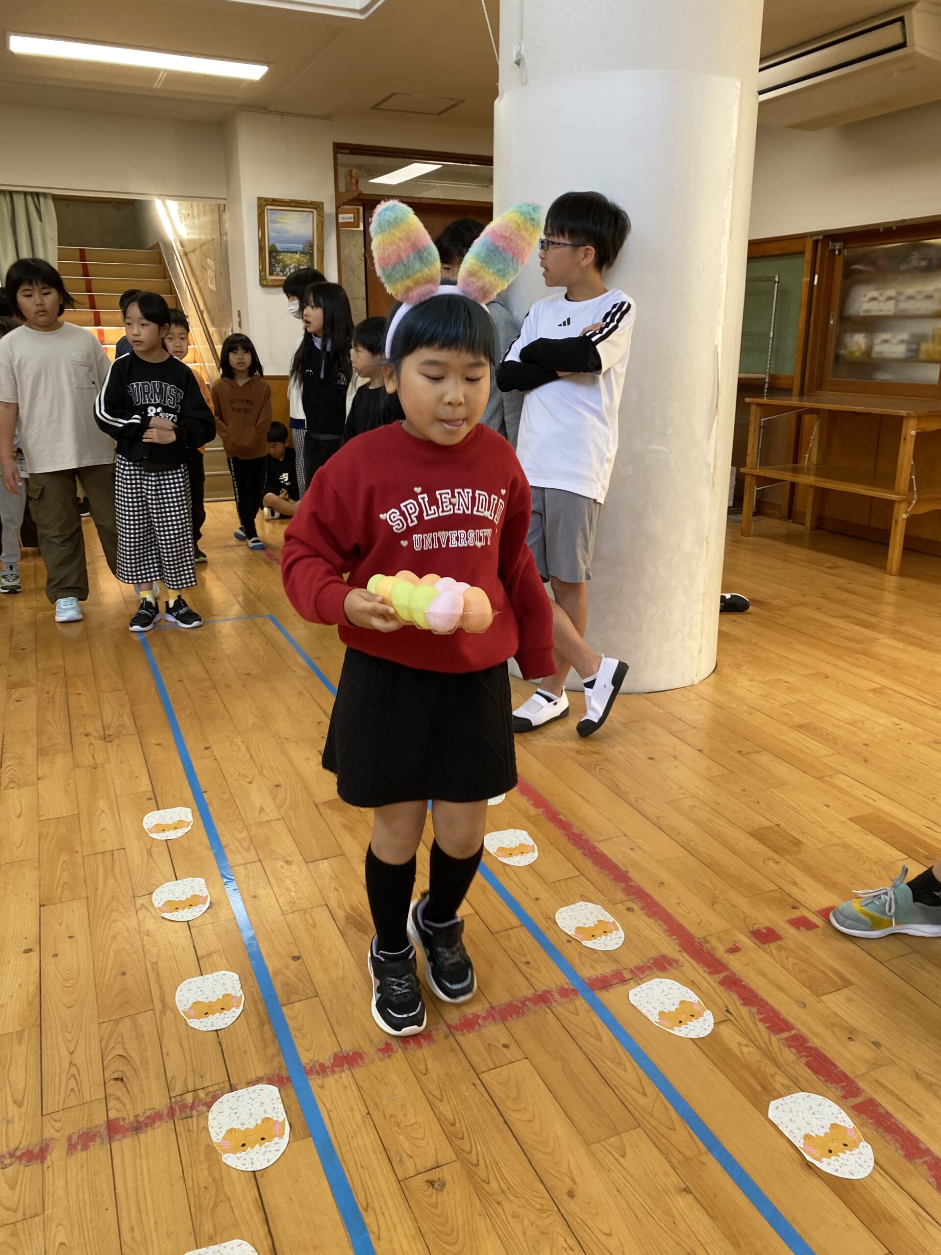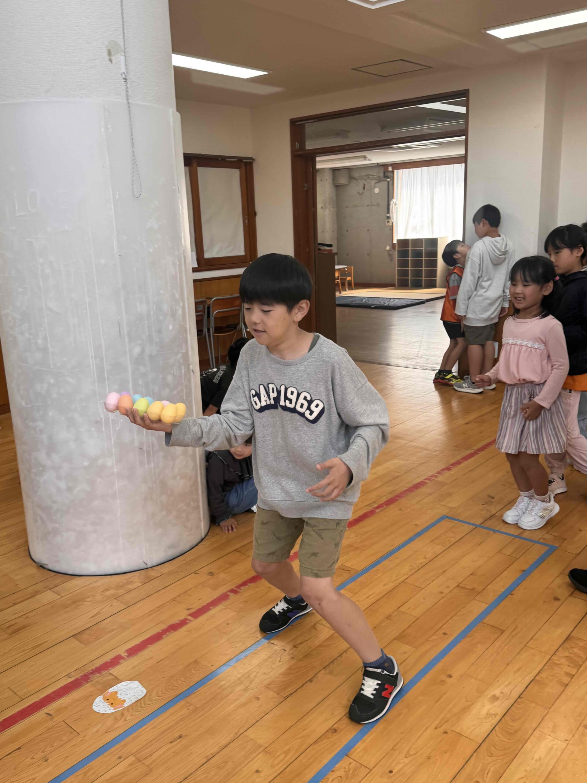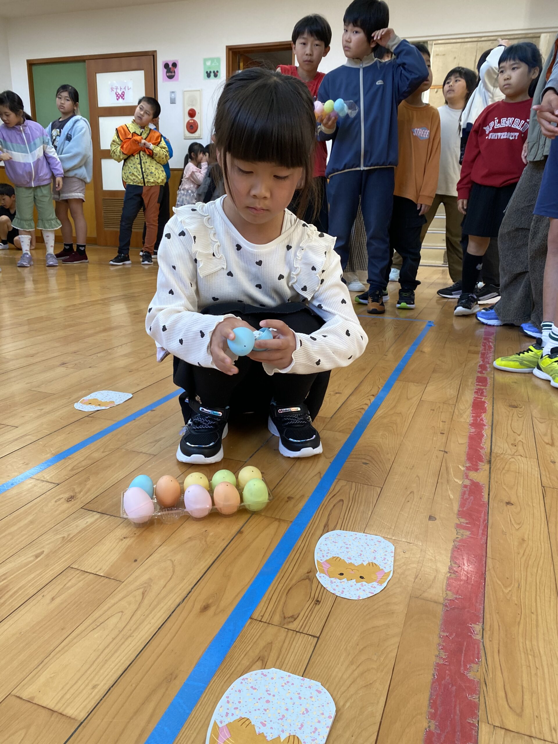 K先生側転しながら卵10個落とさず進みました❣