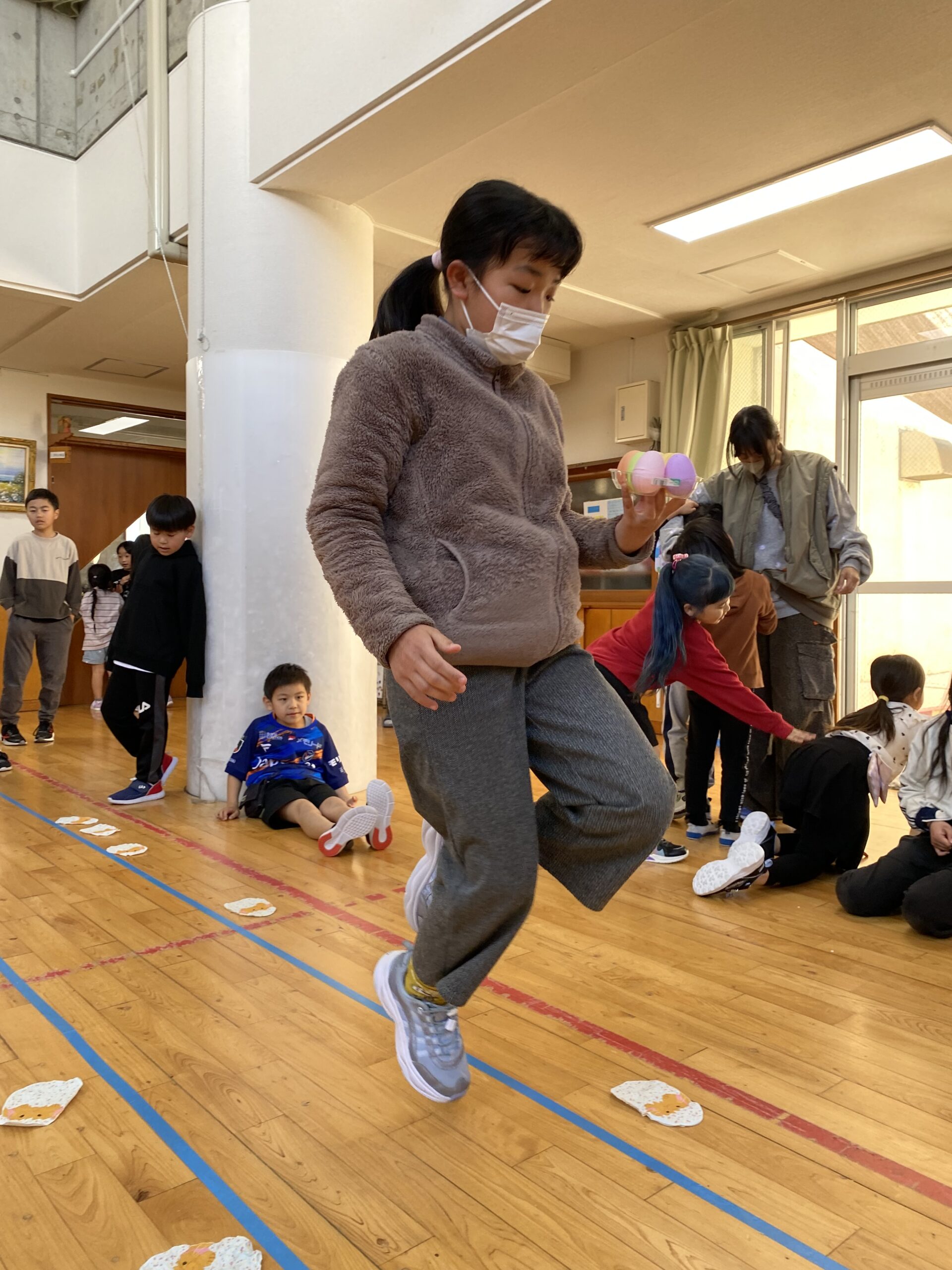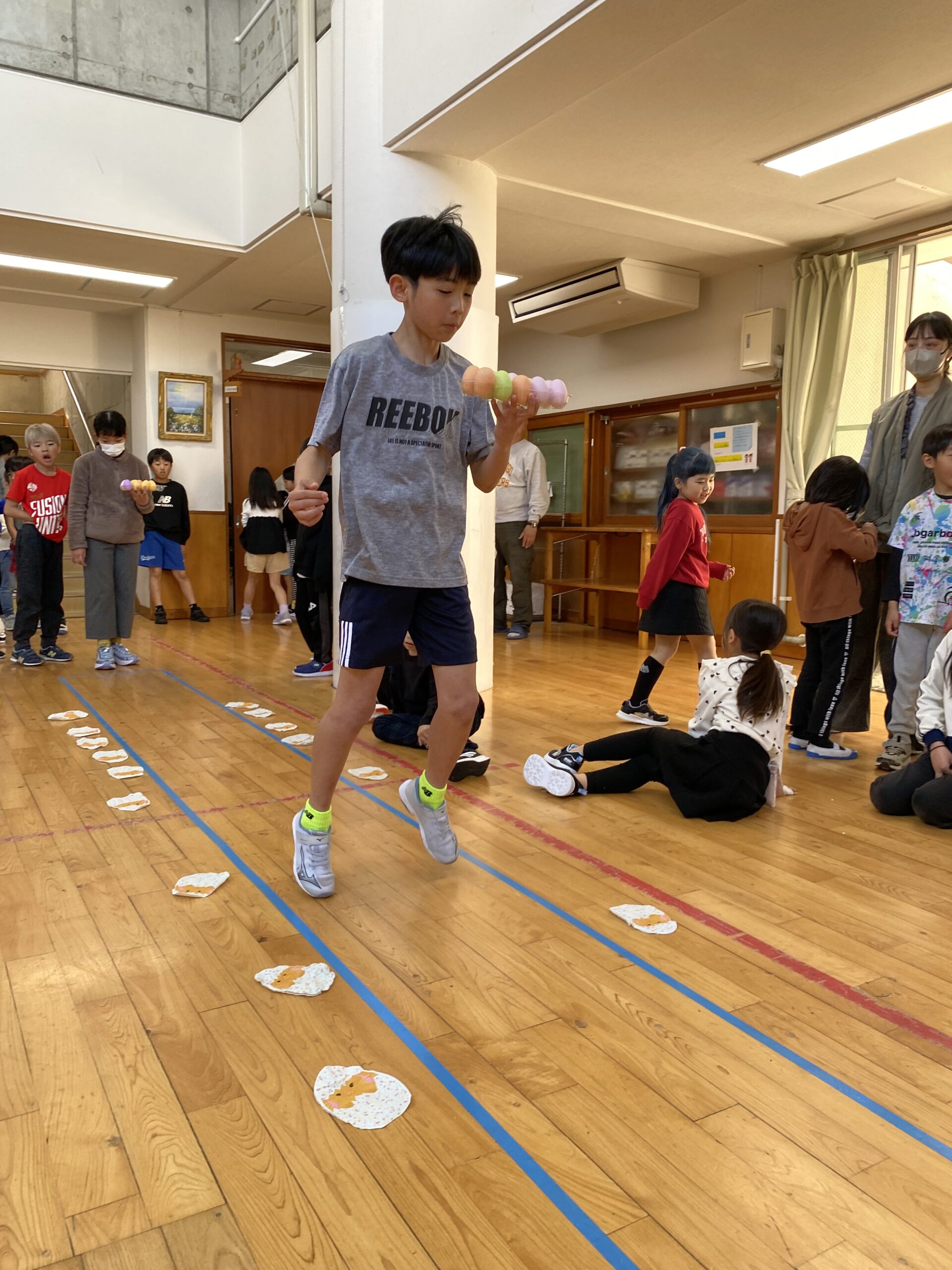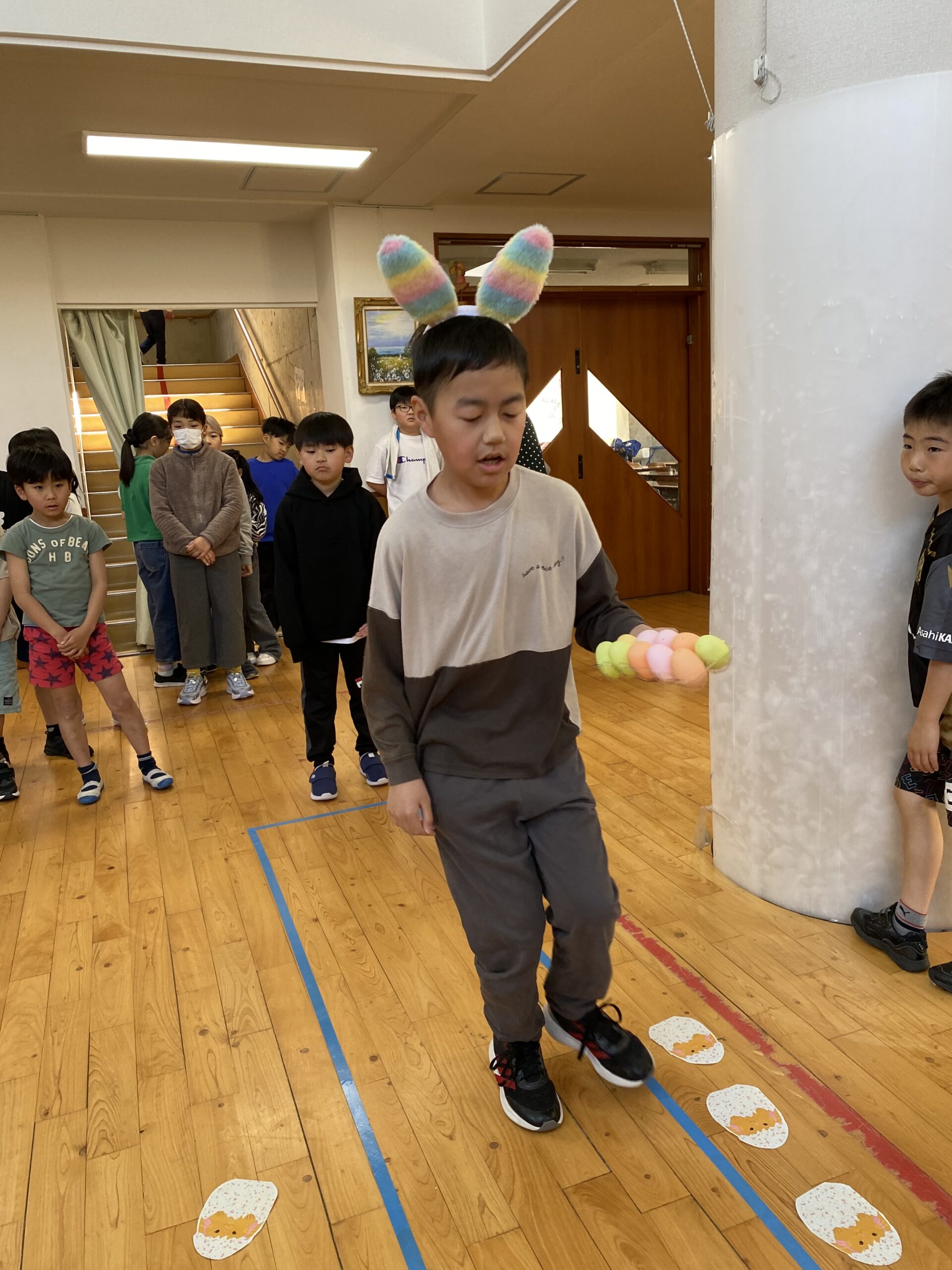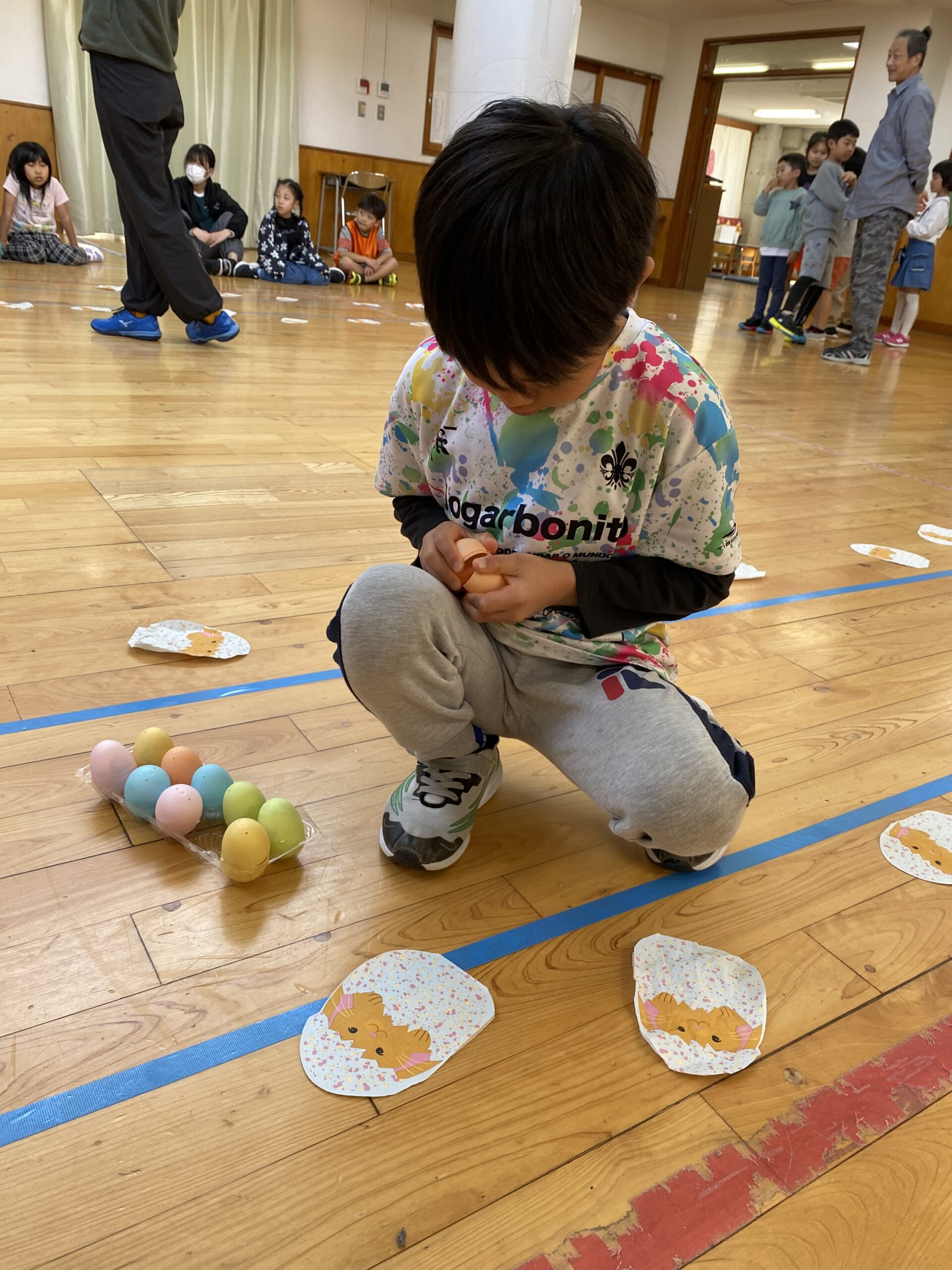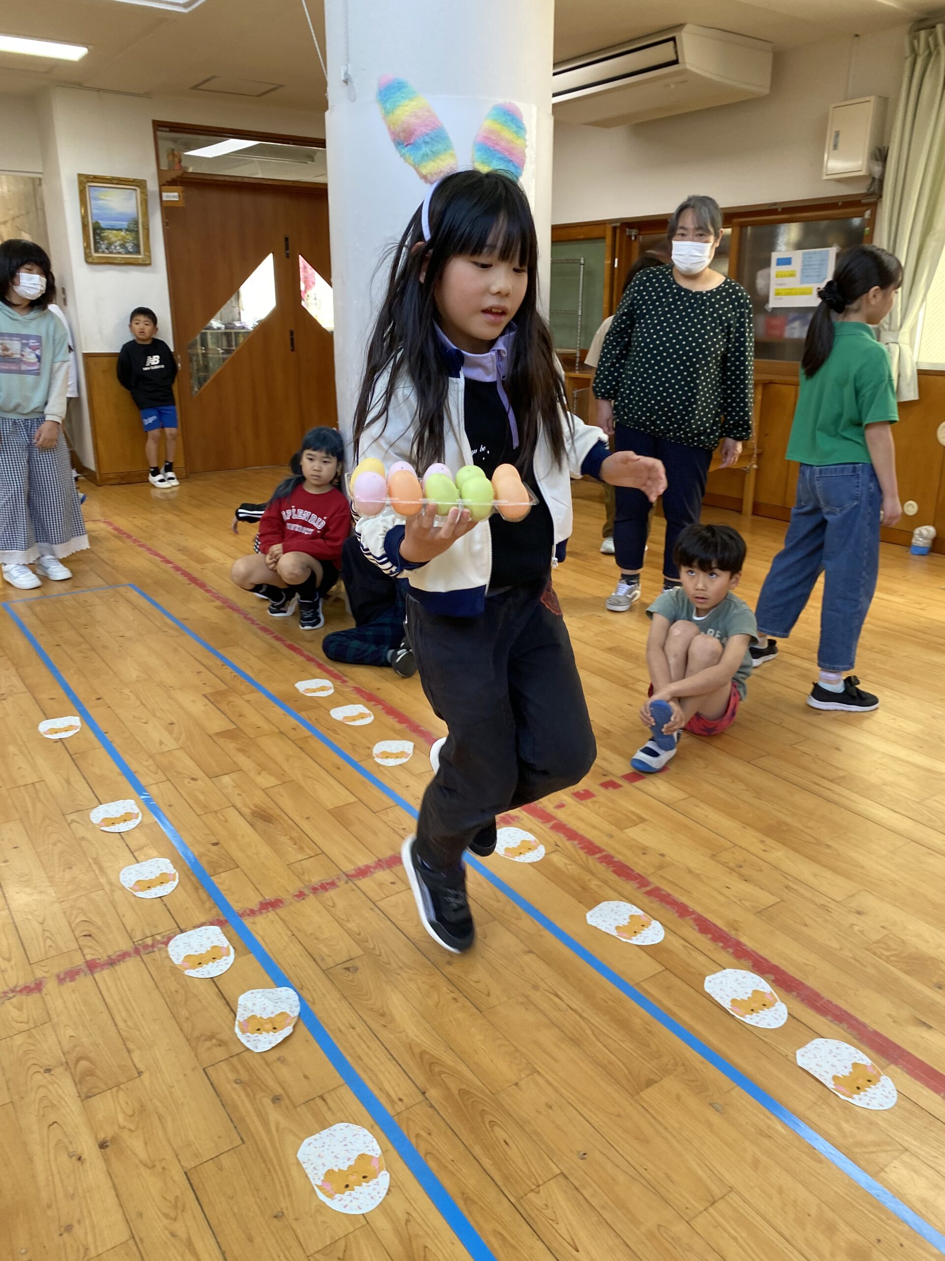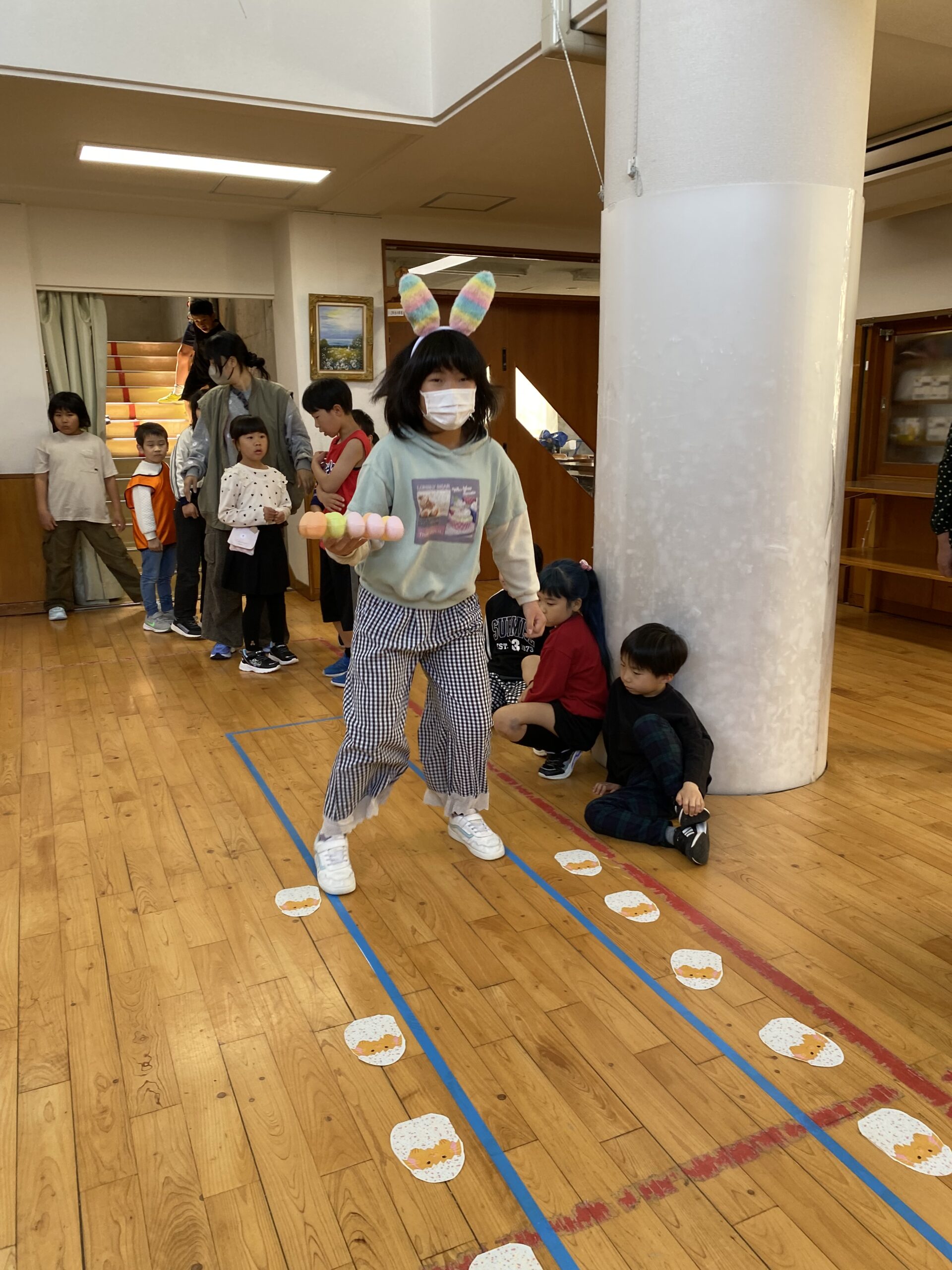 K先生側転しながら卵10個落とさず進みました❣