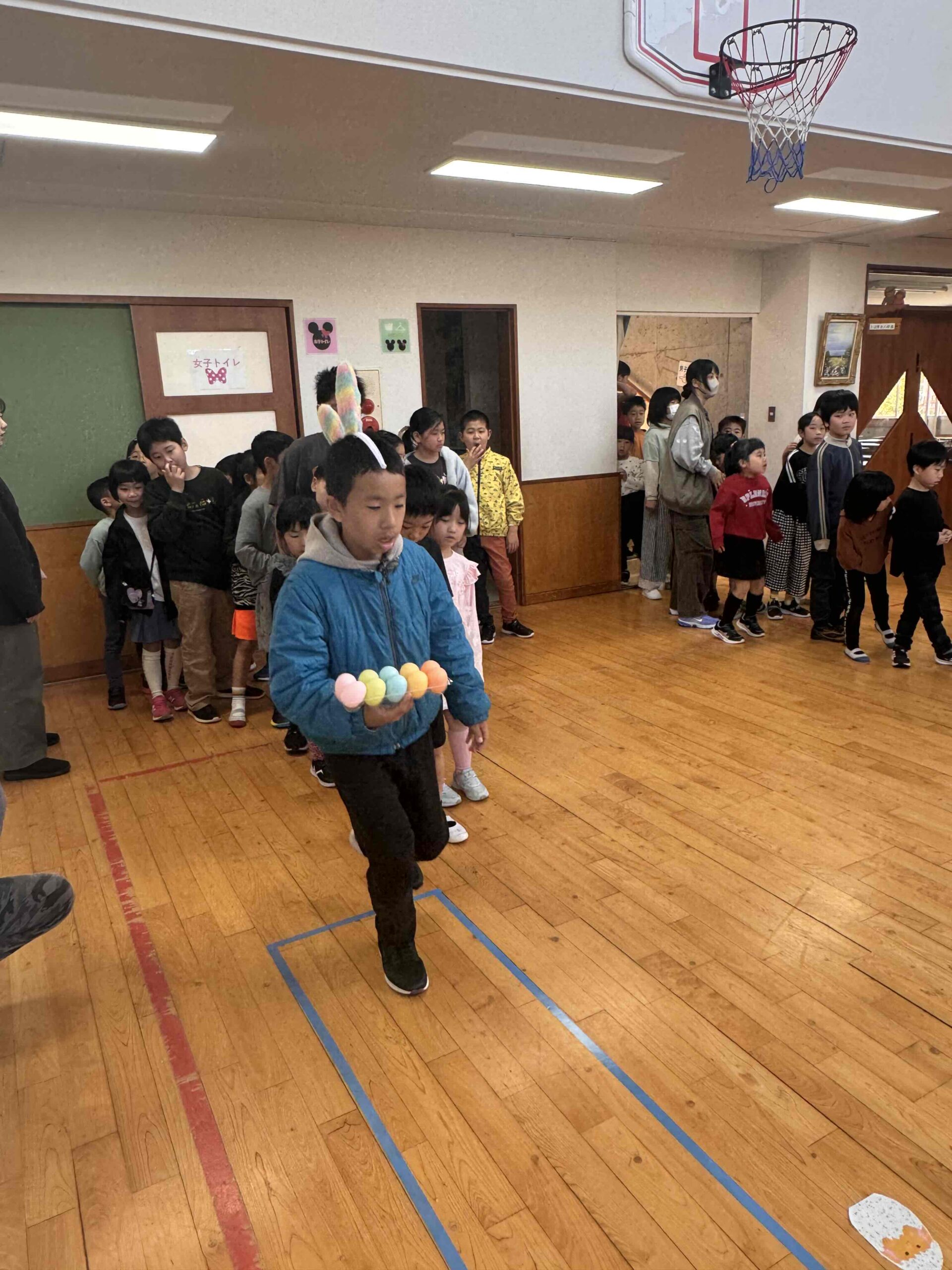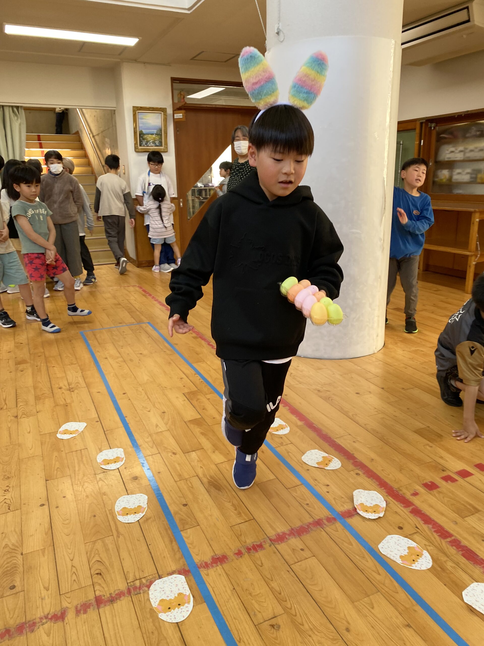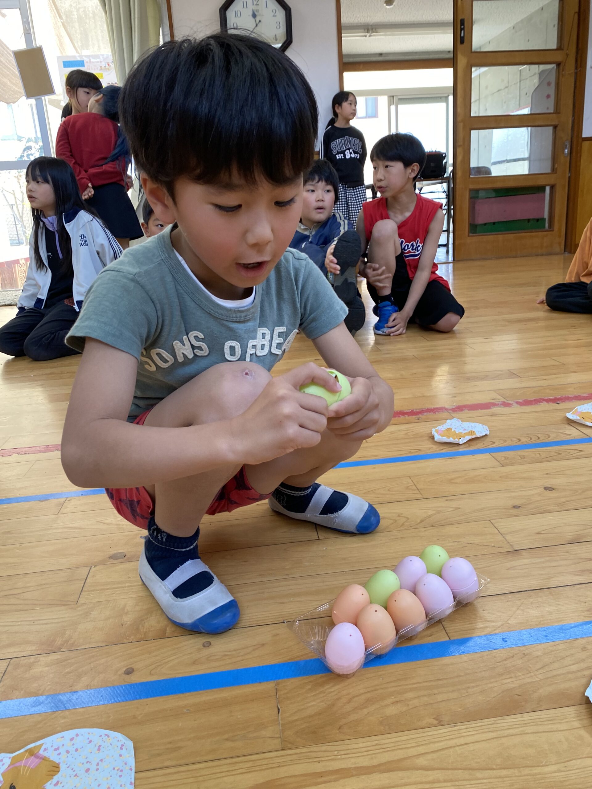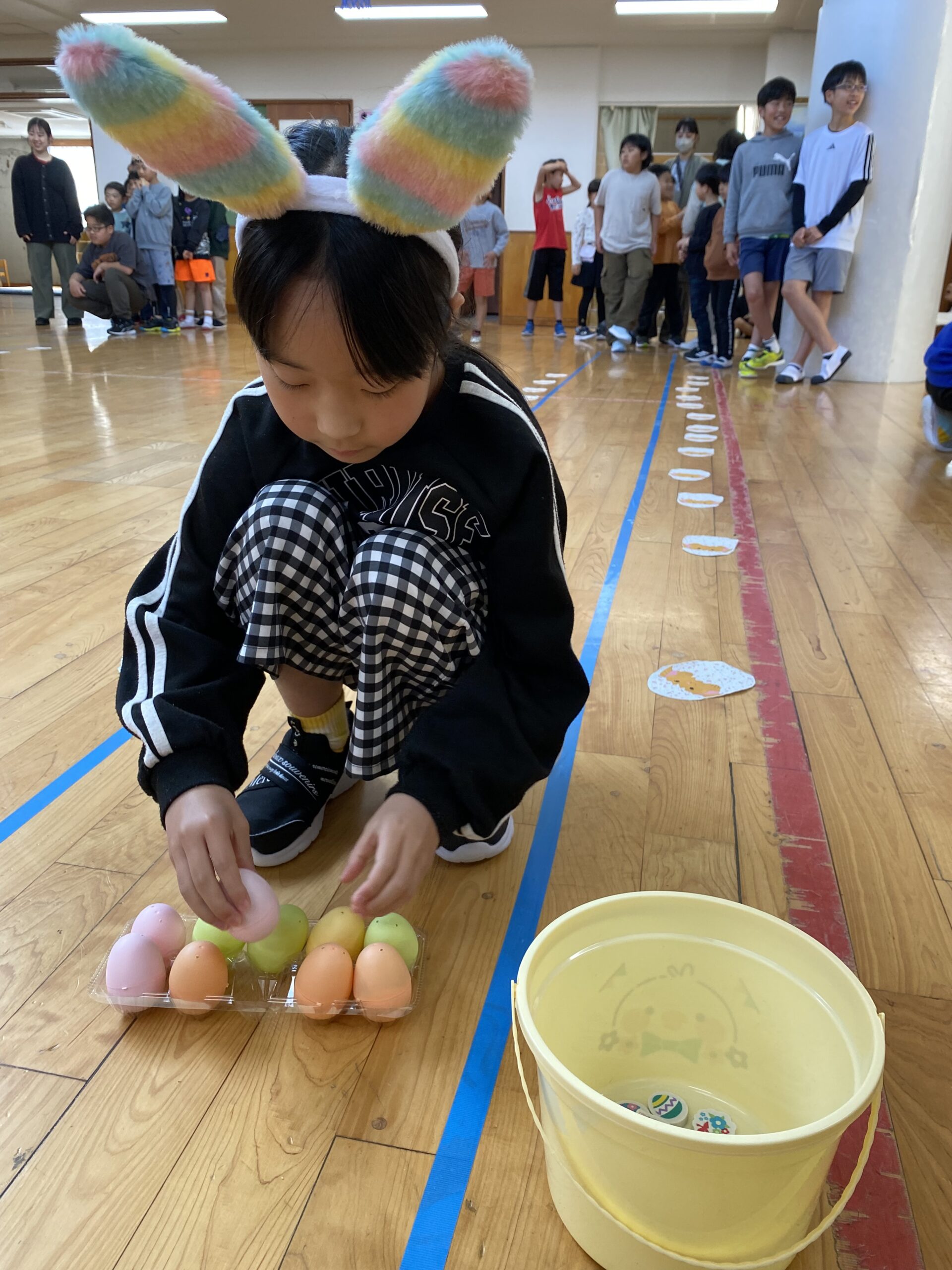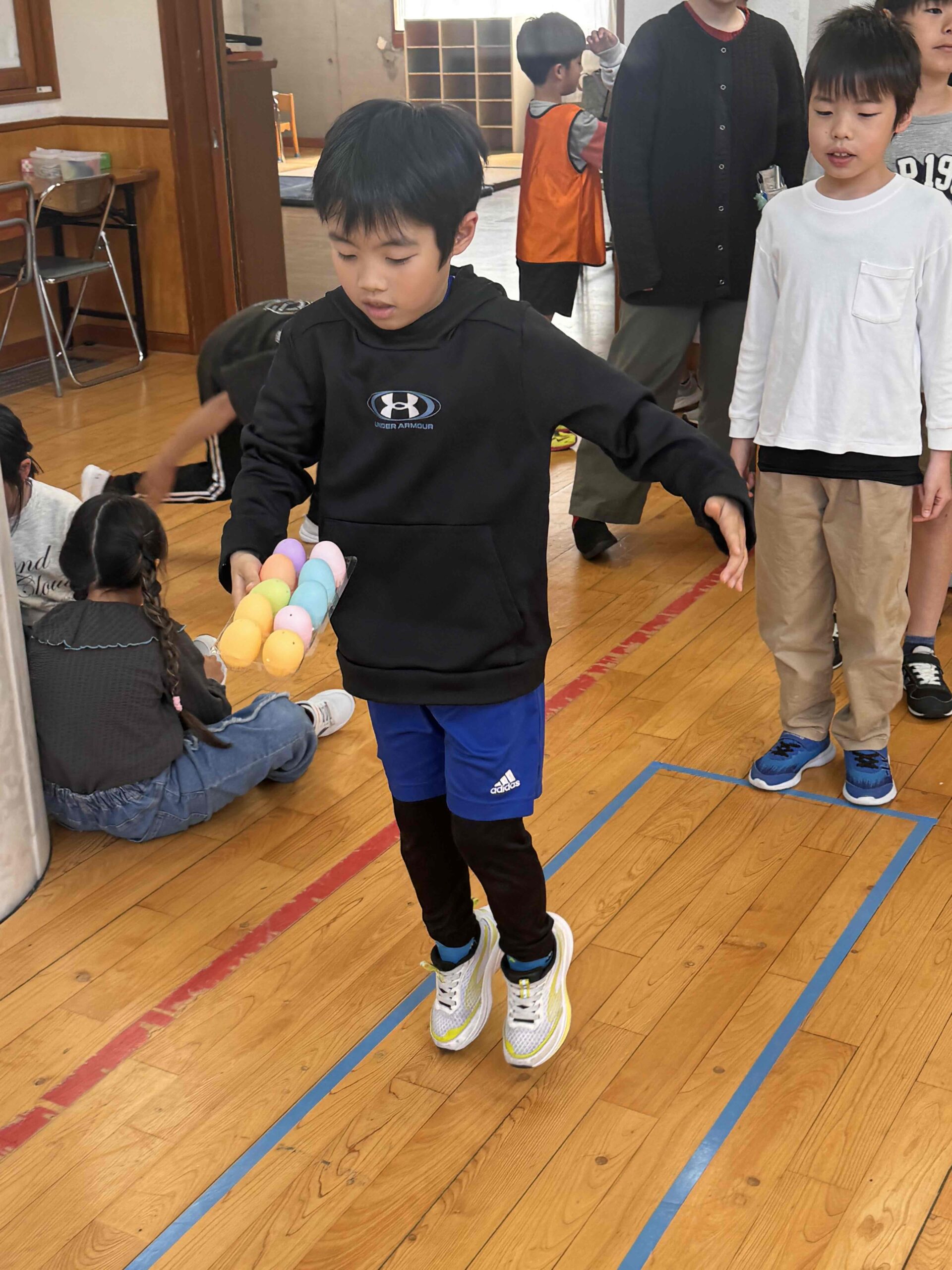 K先生側転しながら卵10個落とさず進みました❣