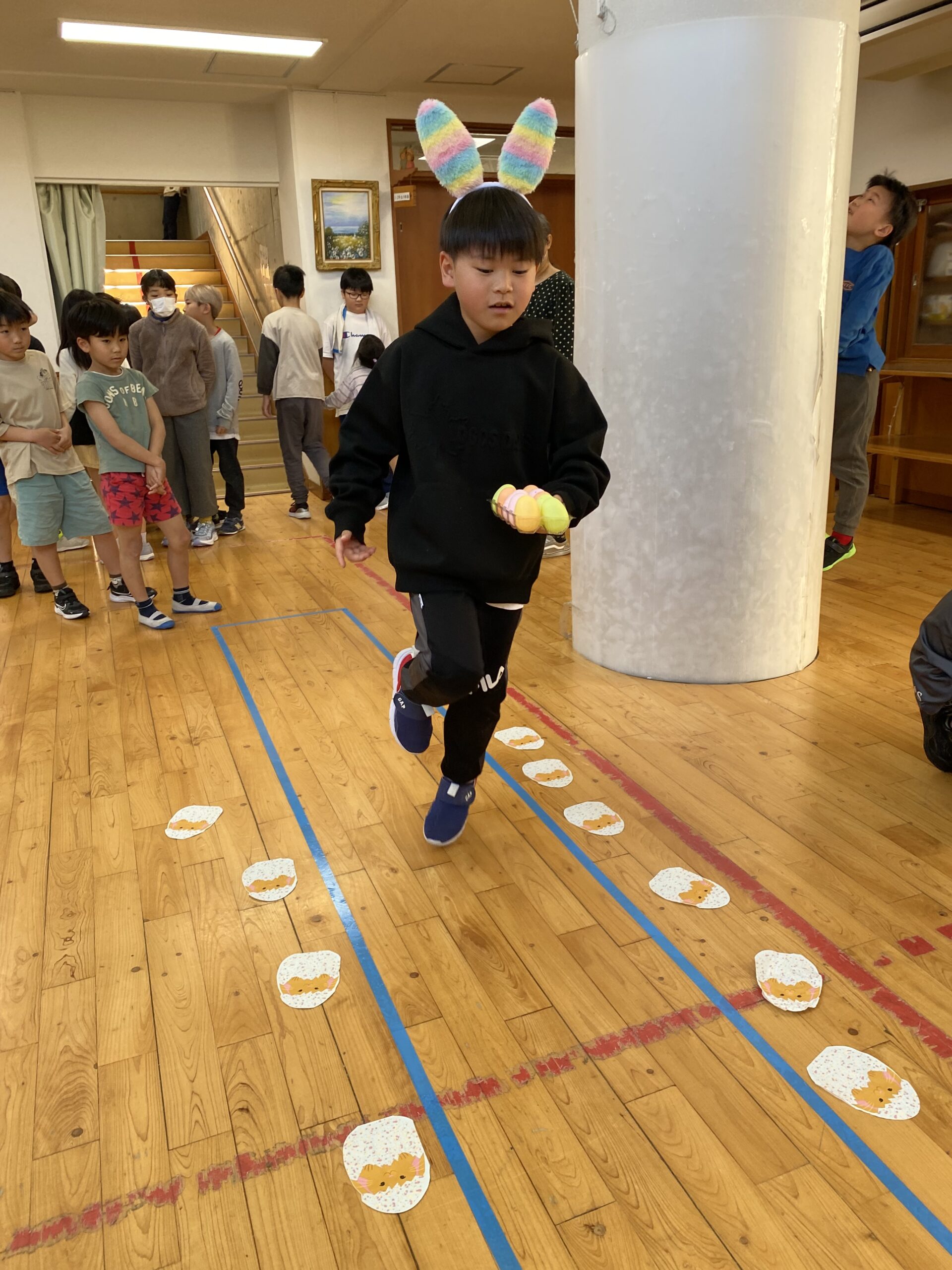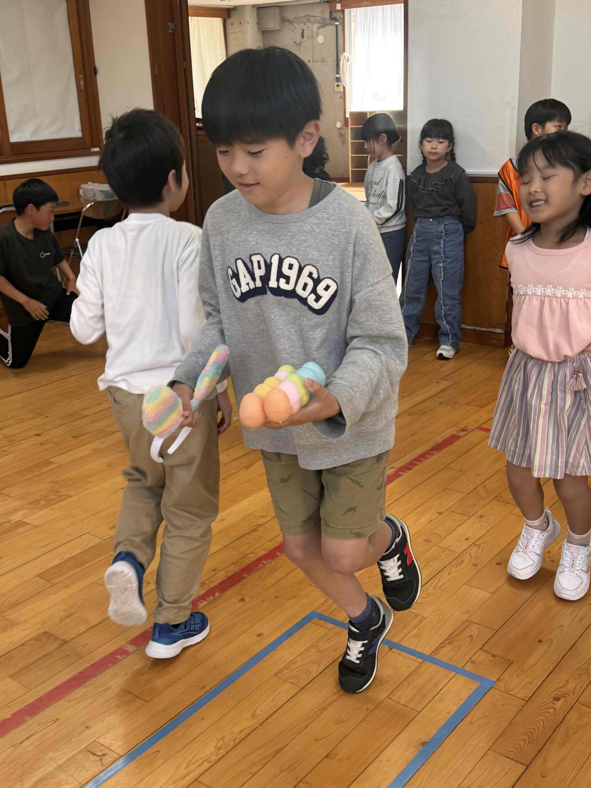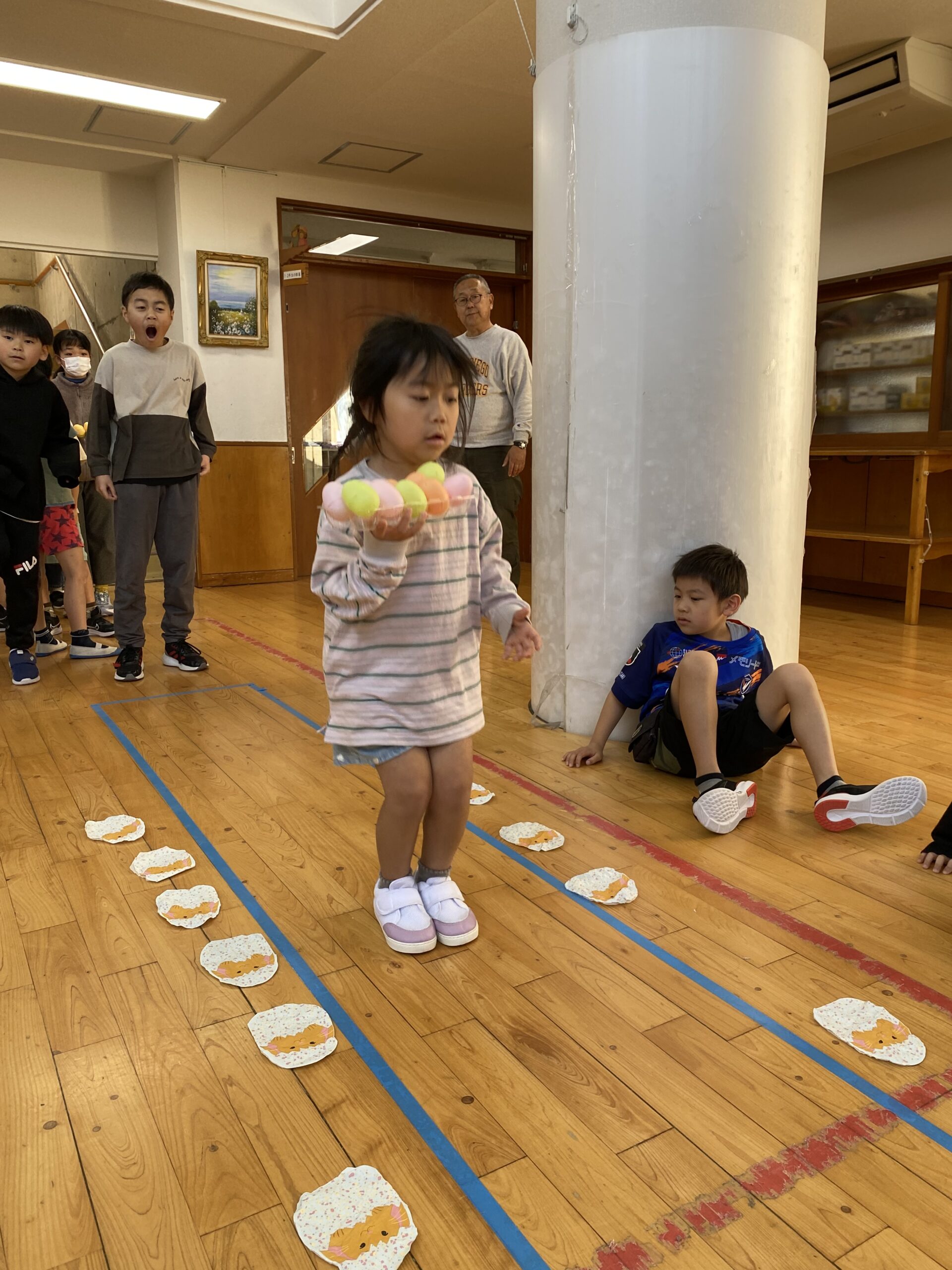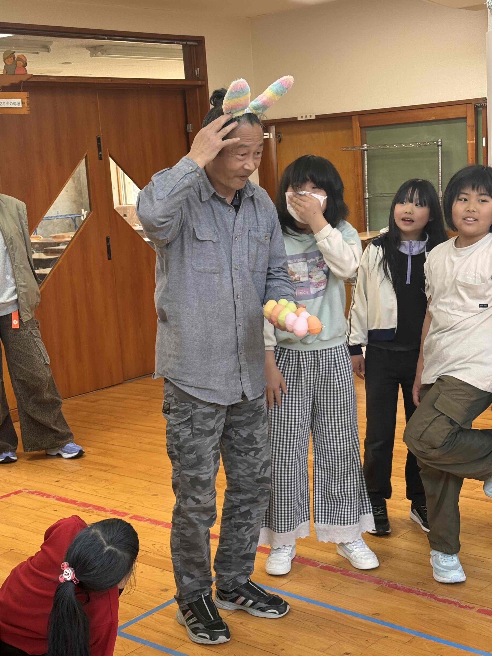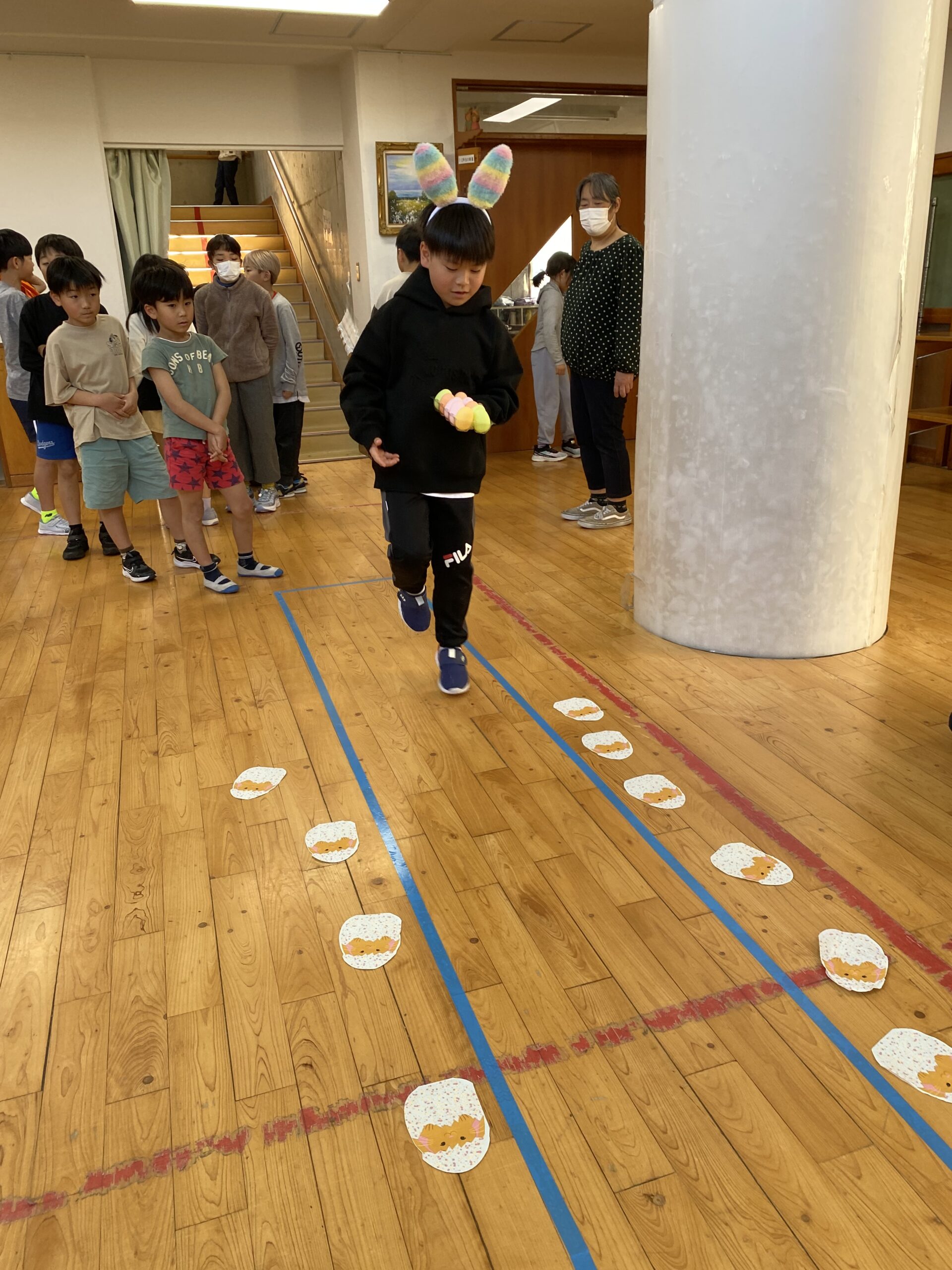 K先生側転しながら卵10個落とさず進みました❣