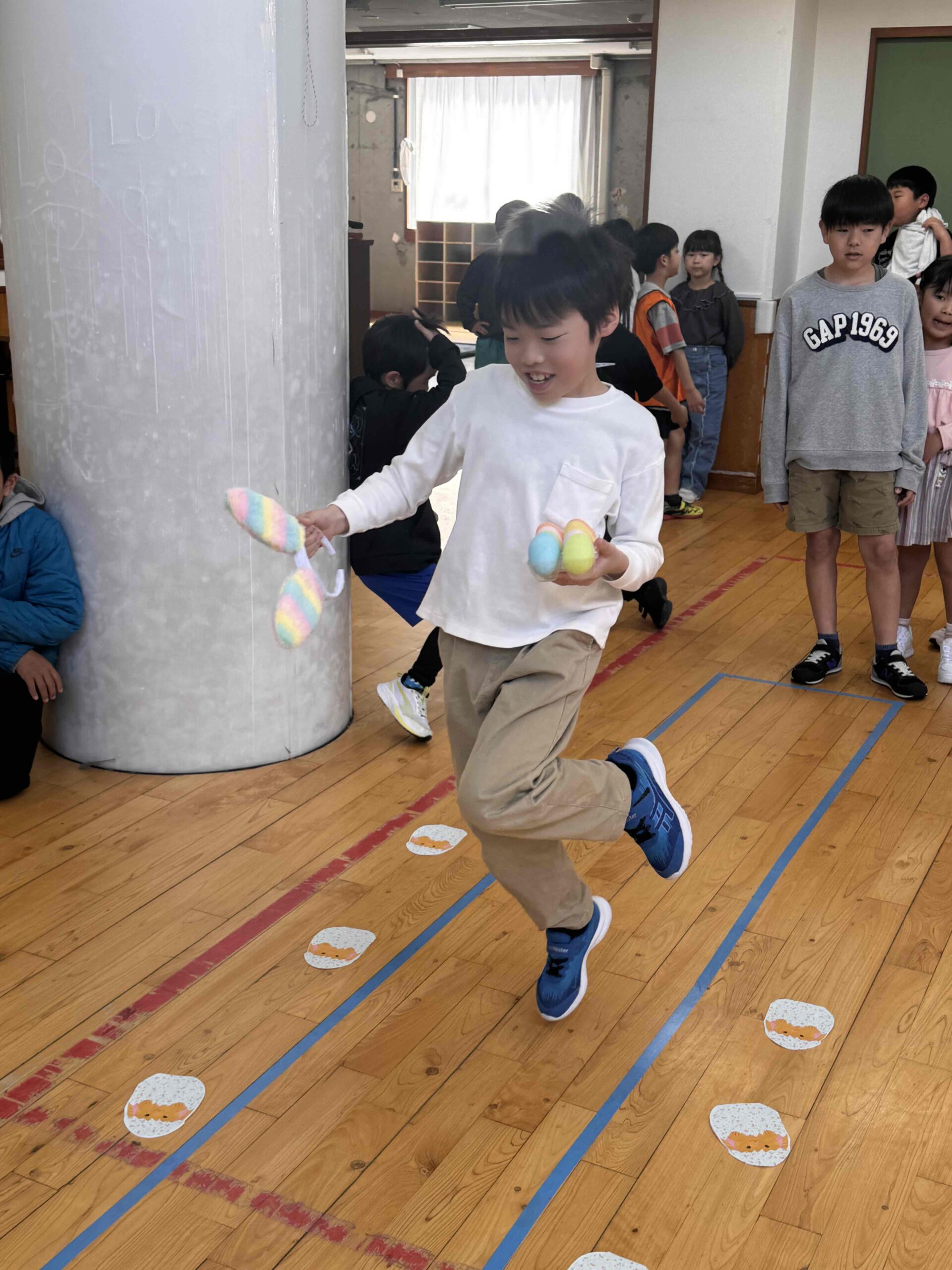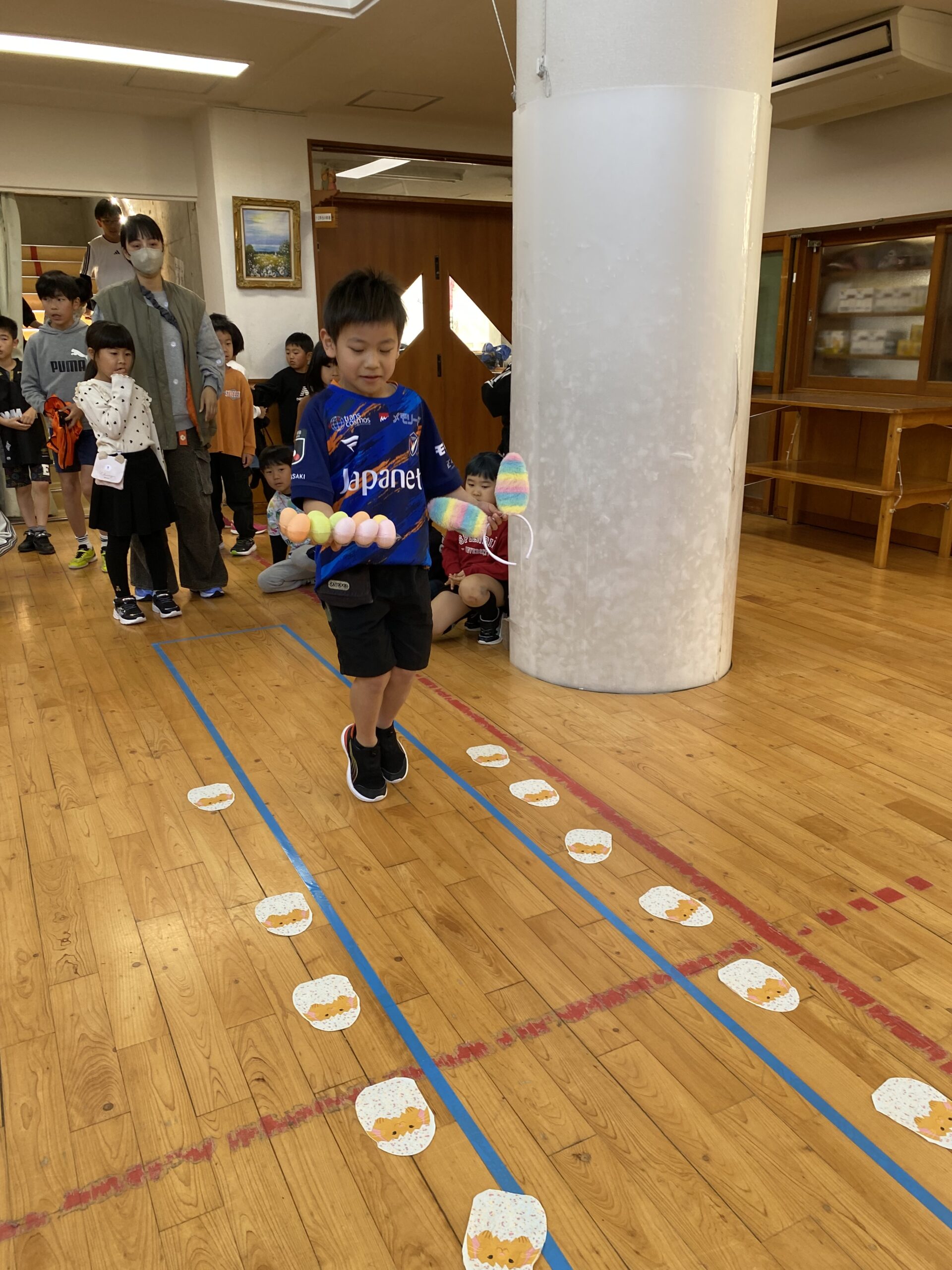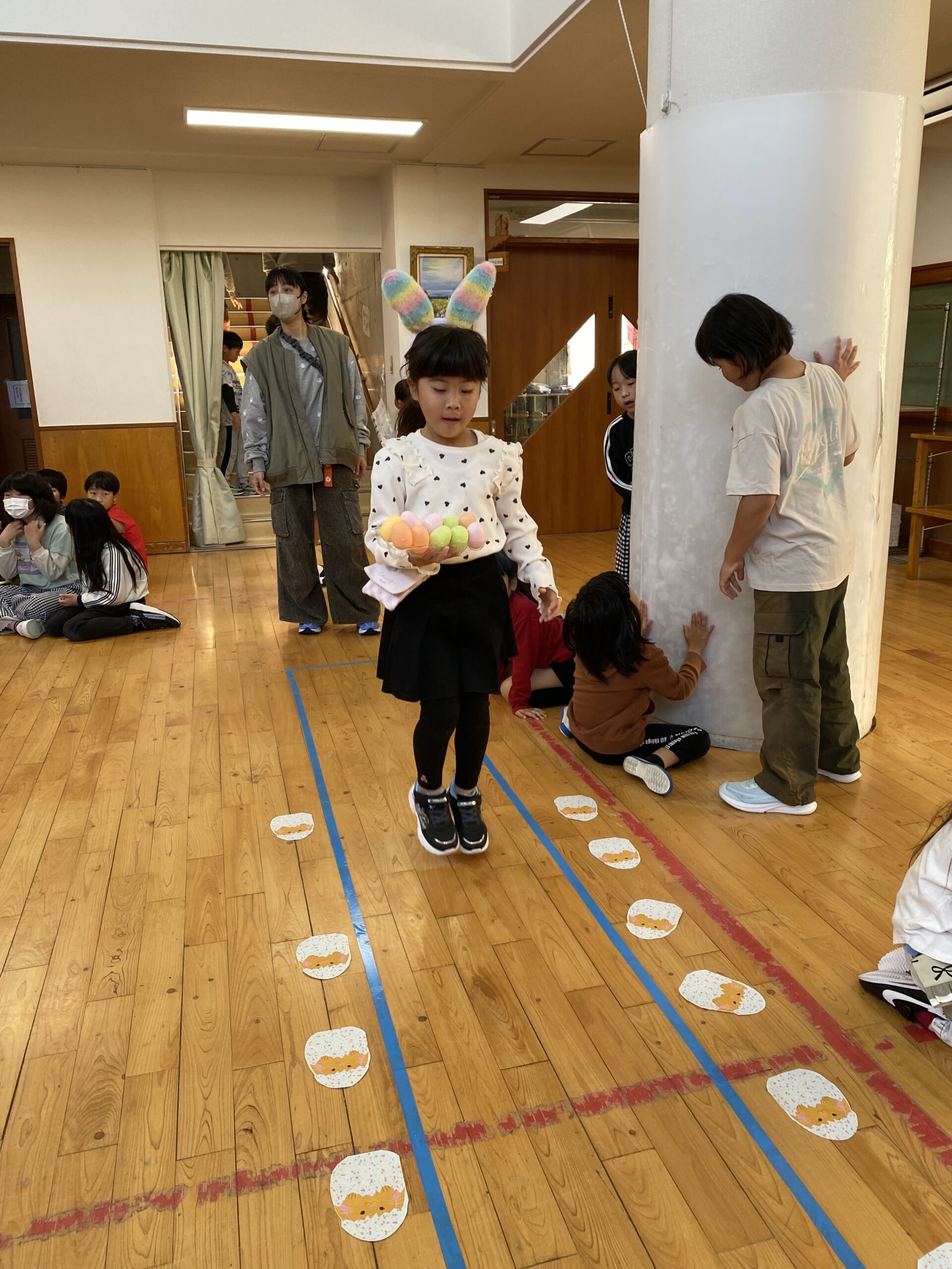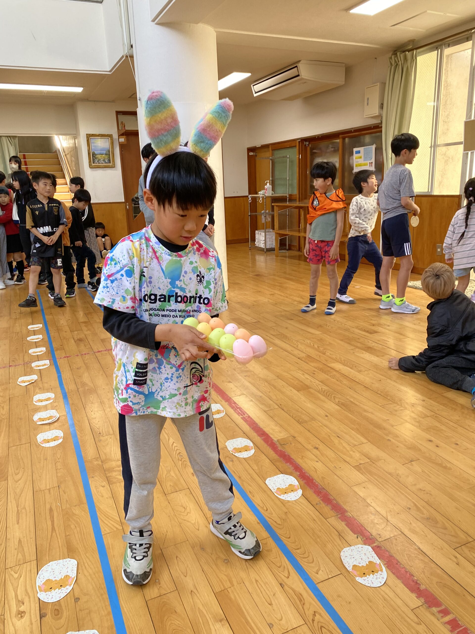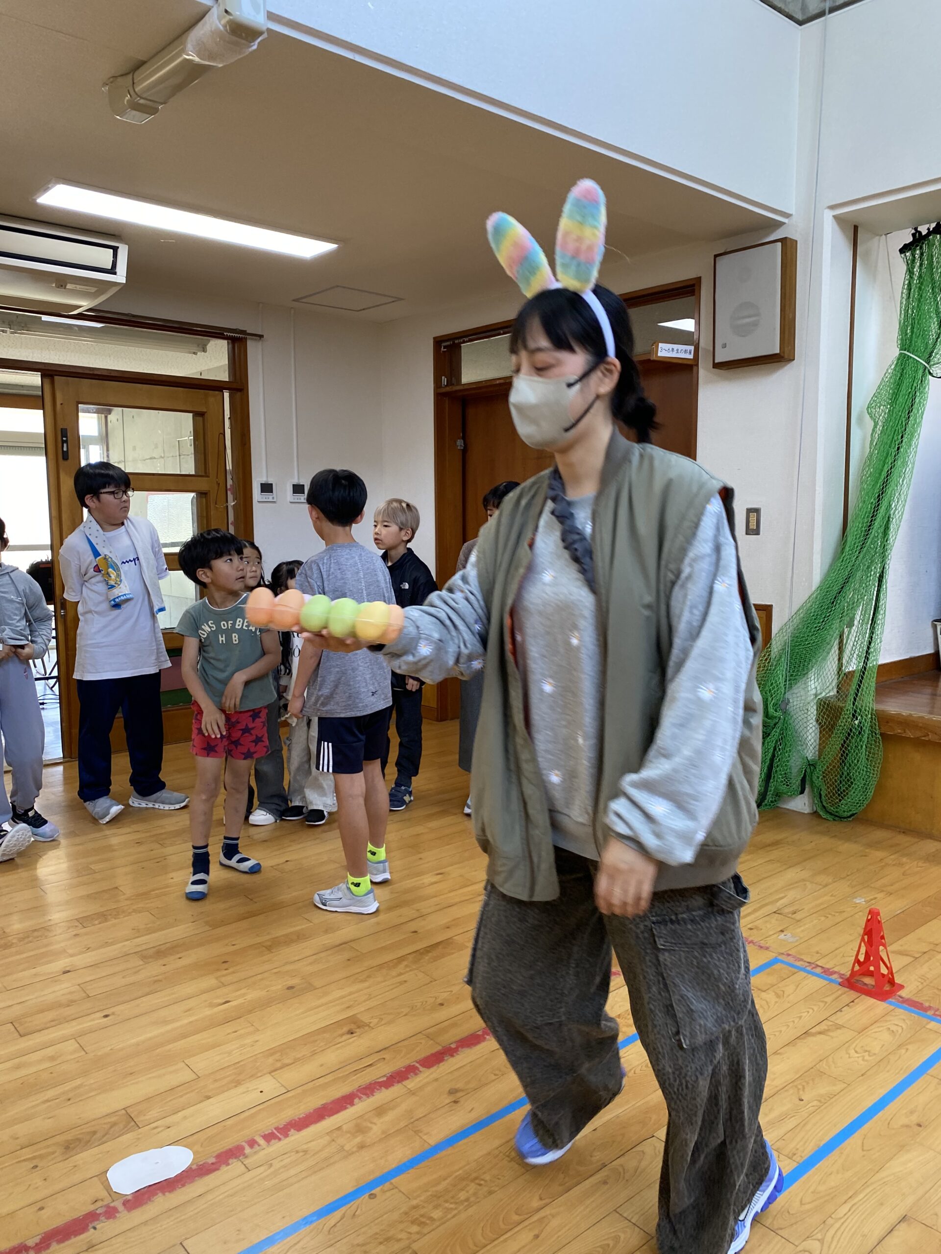 K先生側転しながら卵10個落とさず進みました❣