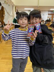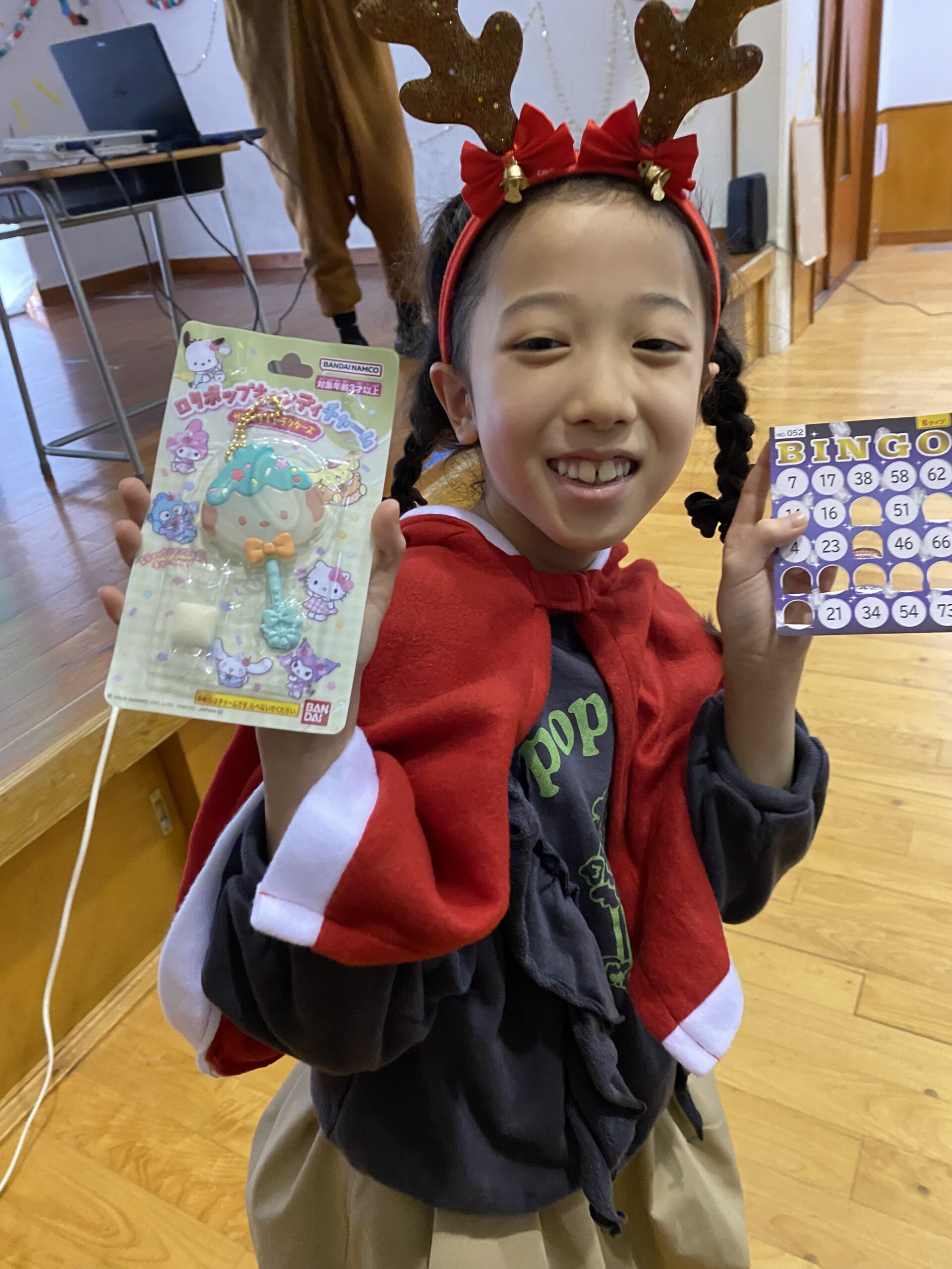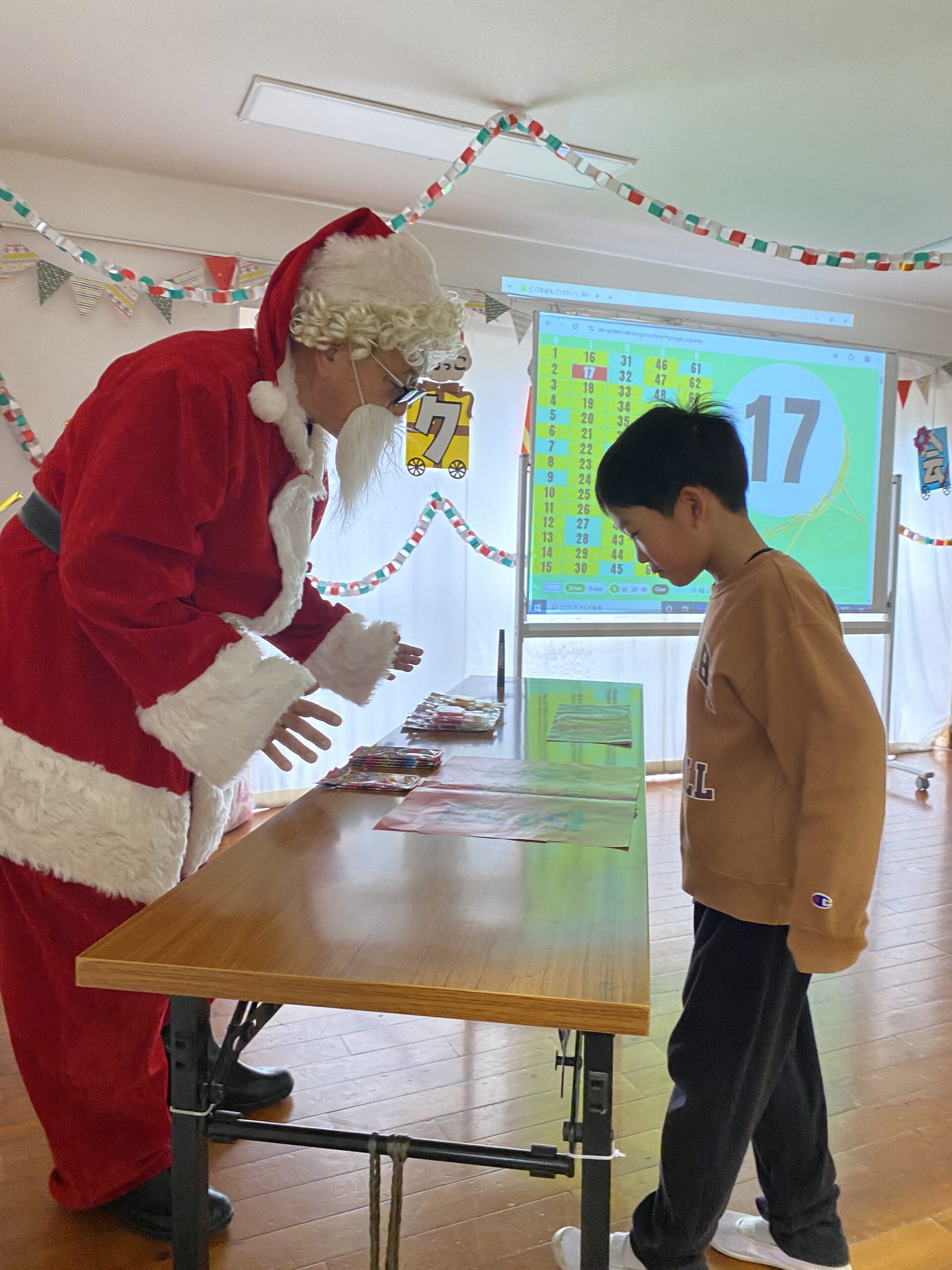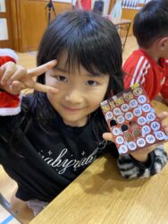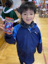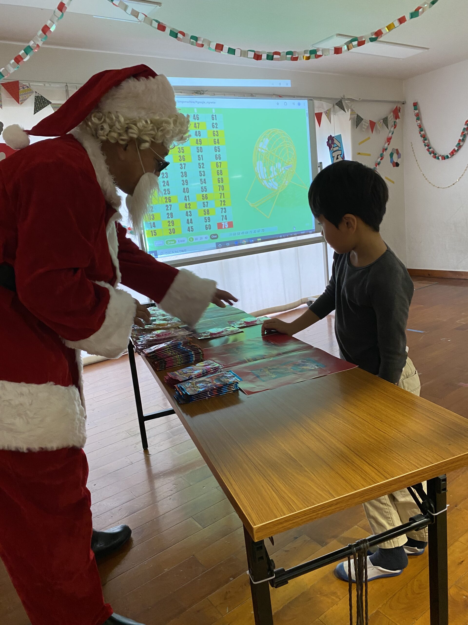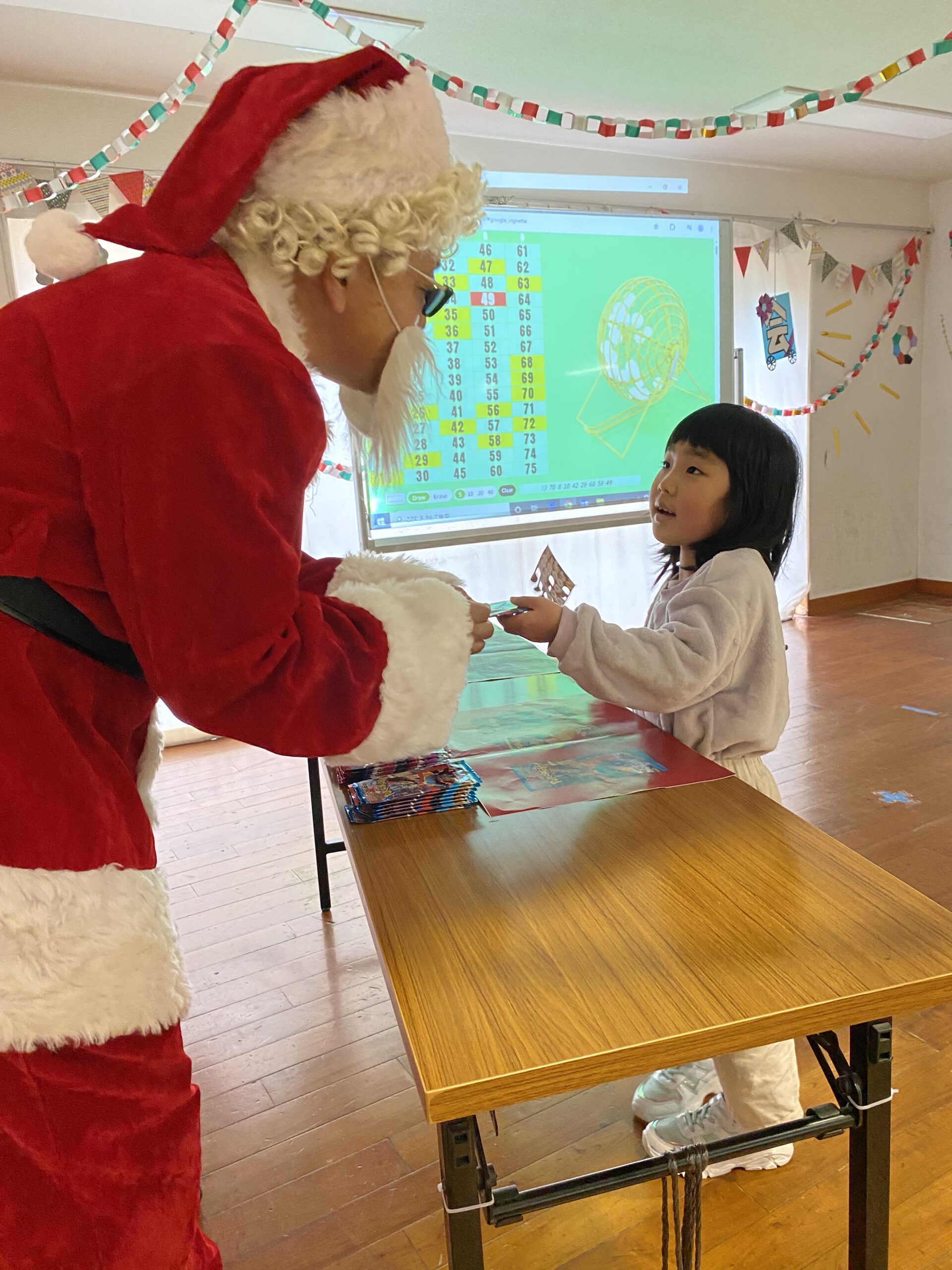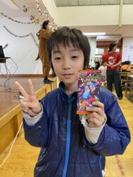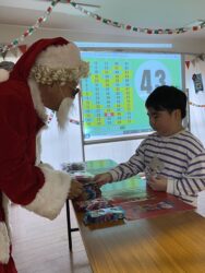 ビンゴした人からサンタさんより景品をもらいました🎅
