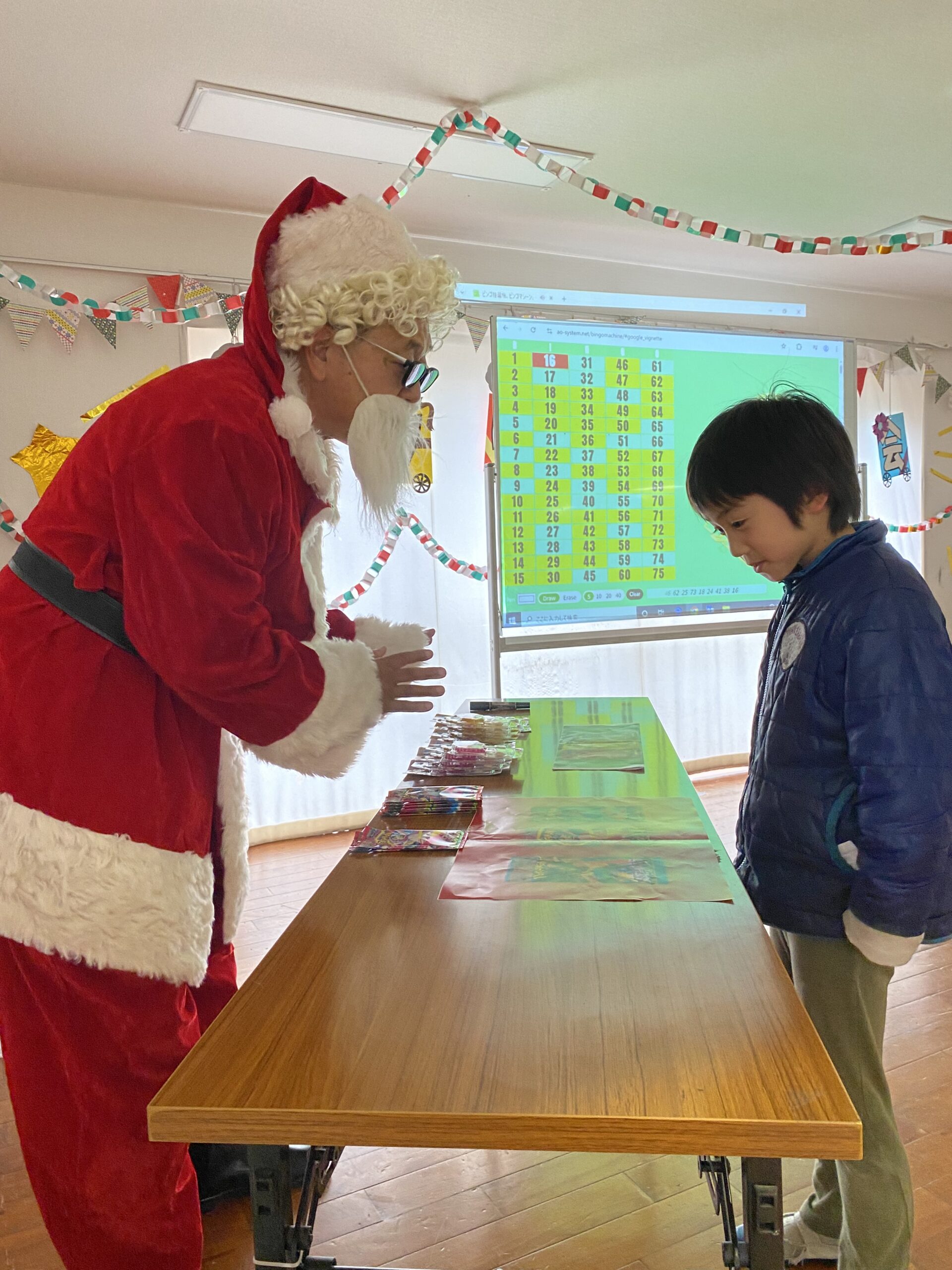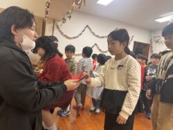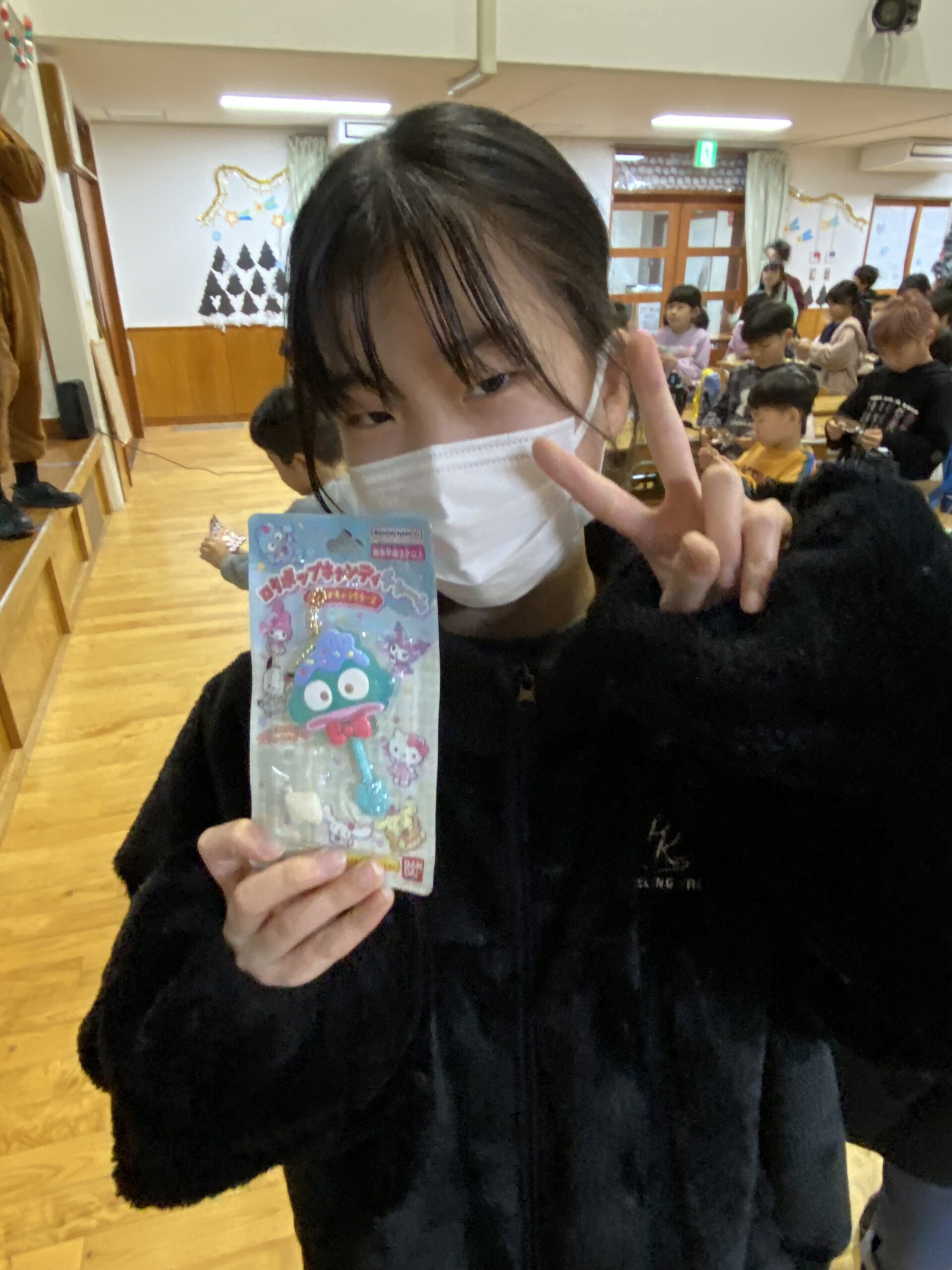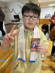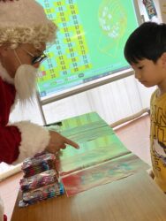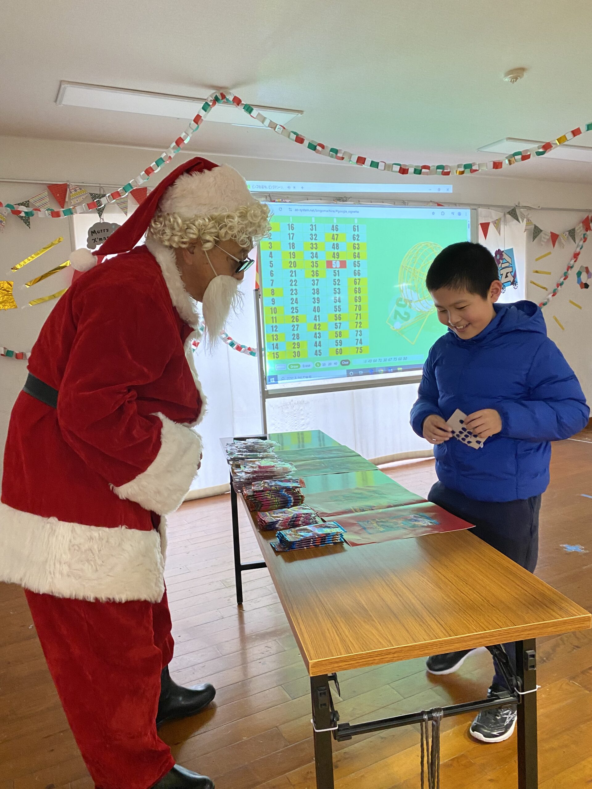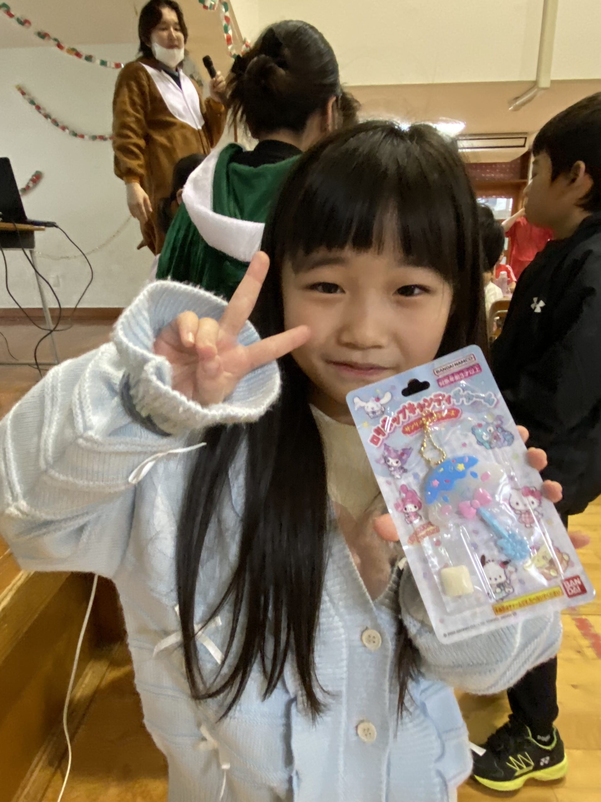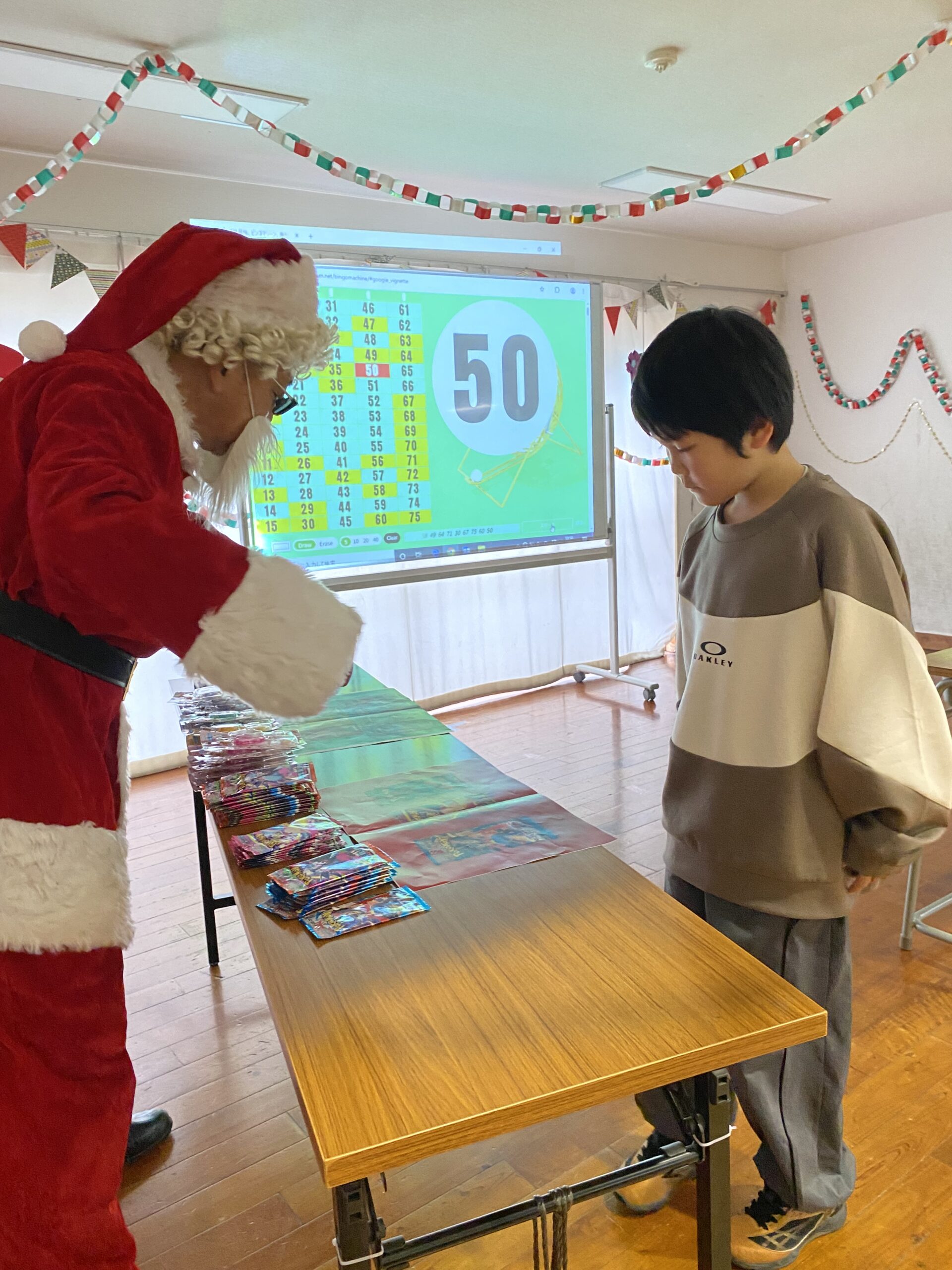 ビンゴした人からサンタさんより景品をもらいました🎅