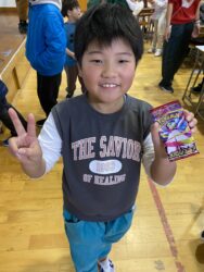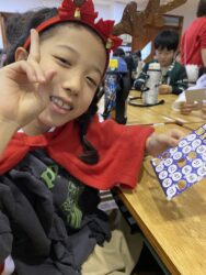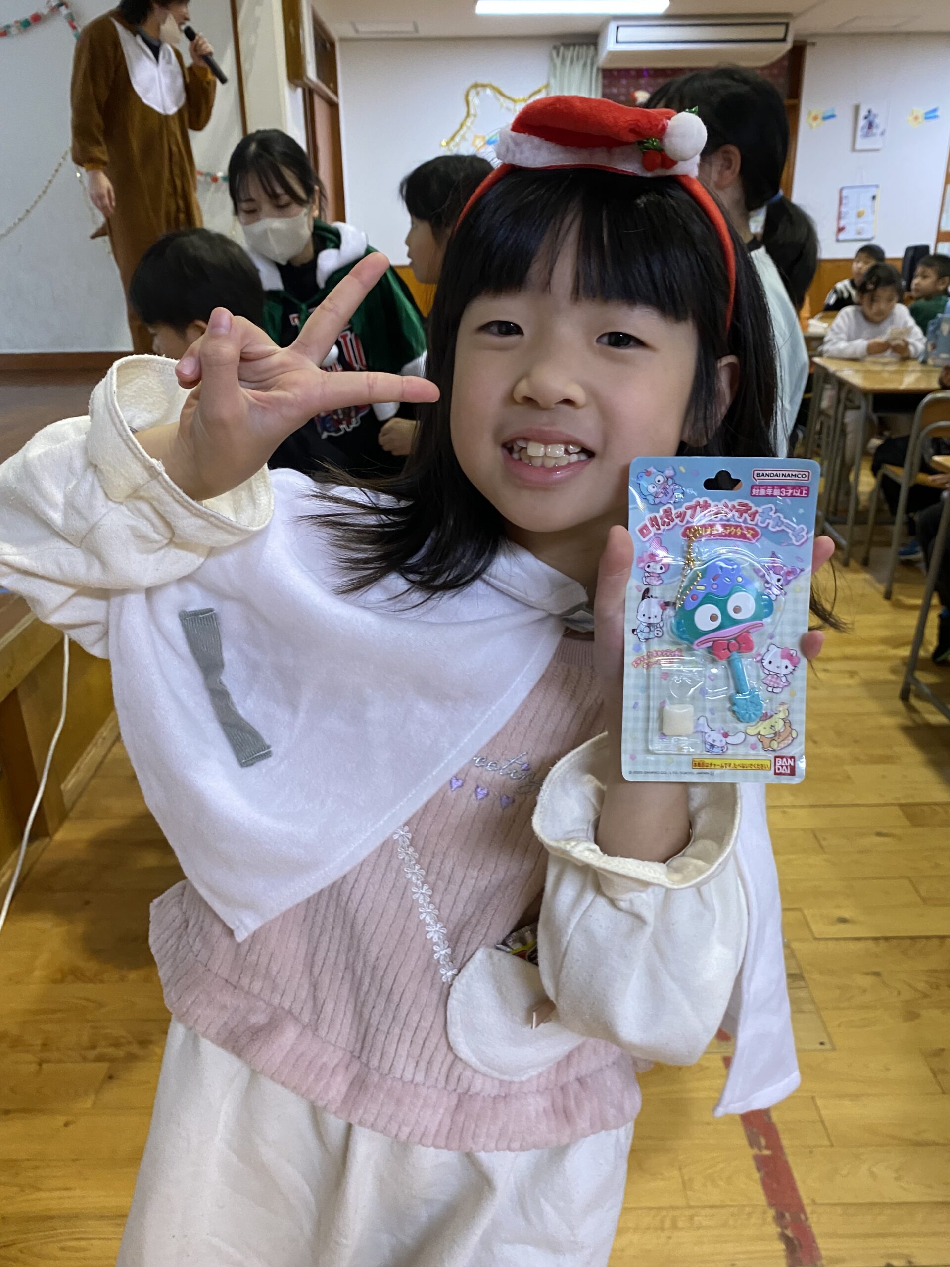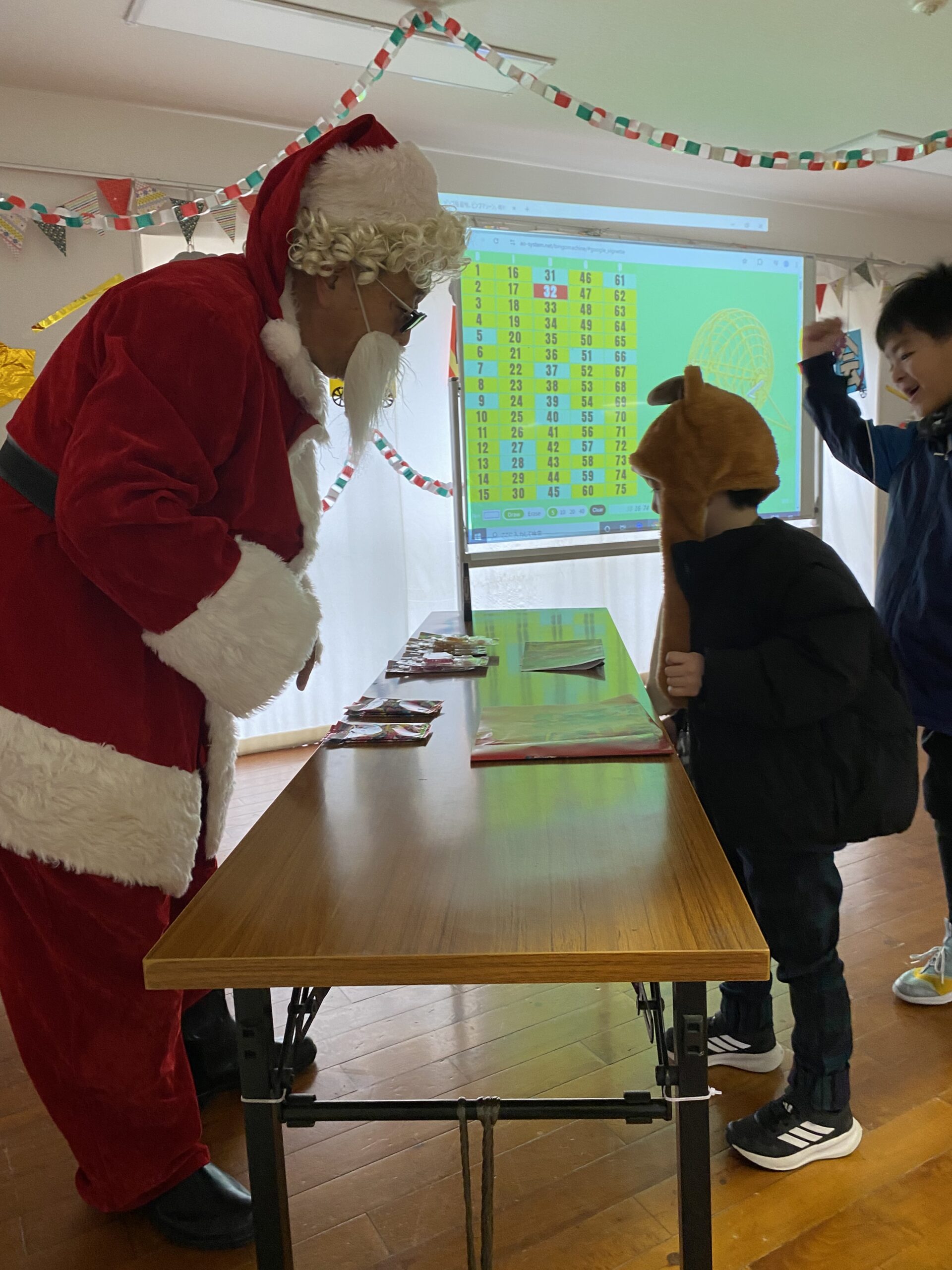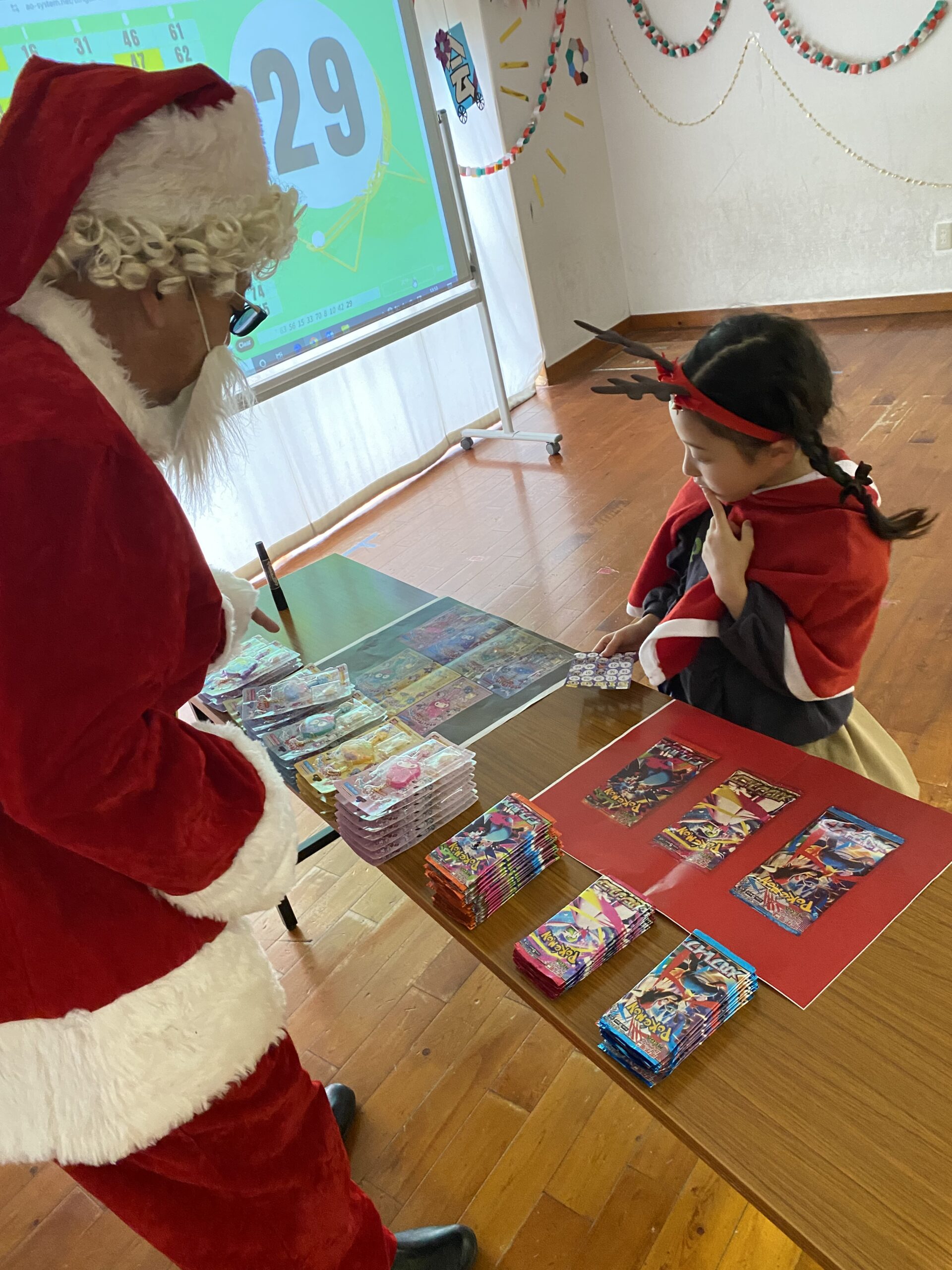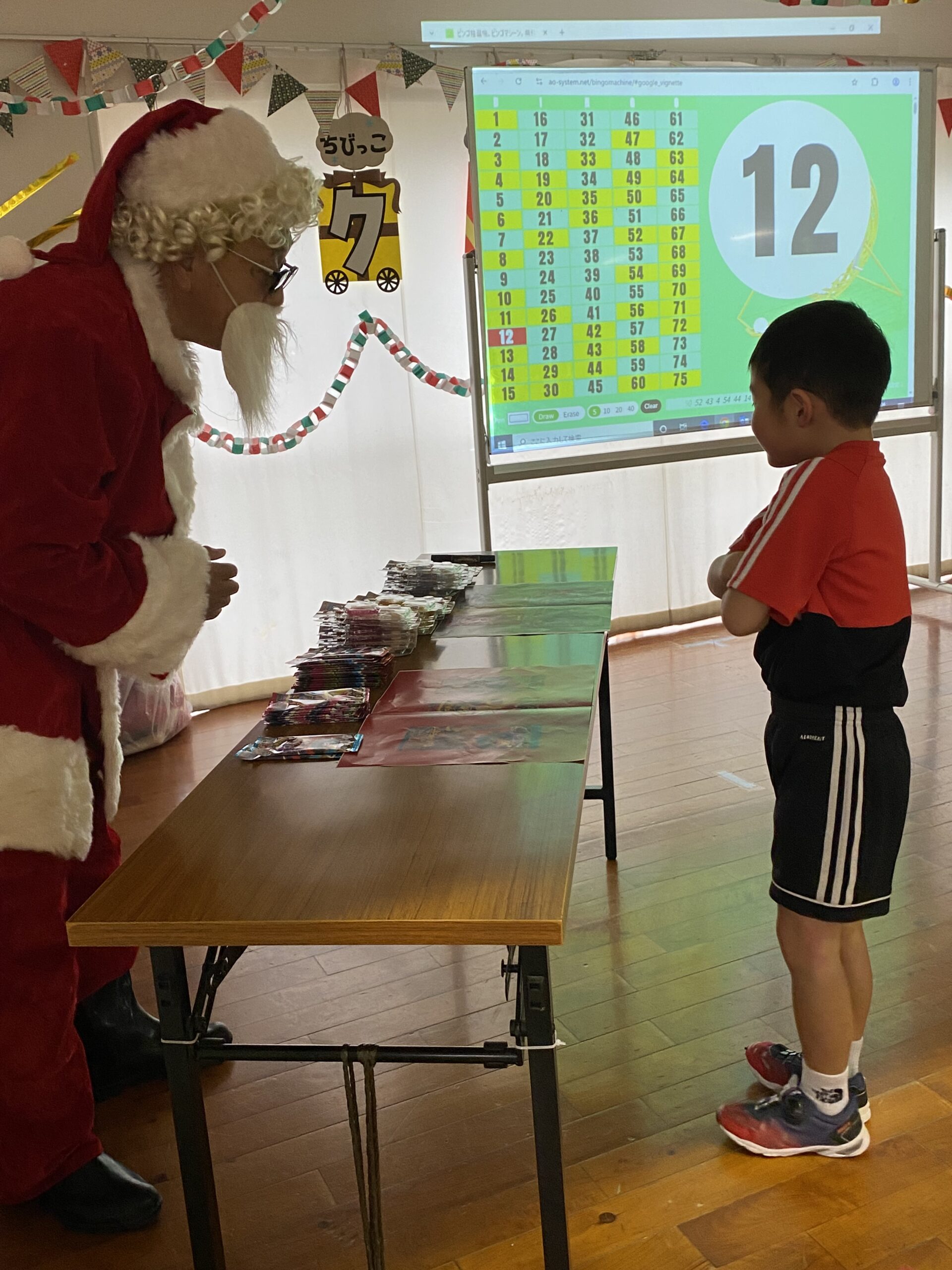 ビンゴした人からサンタさんより景品をもらいました🎅