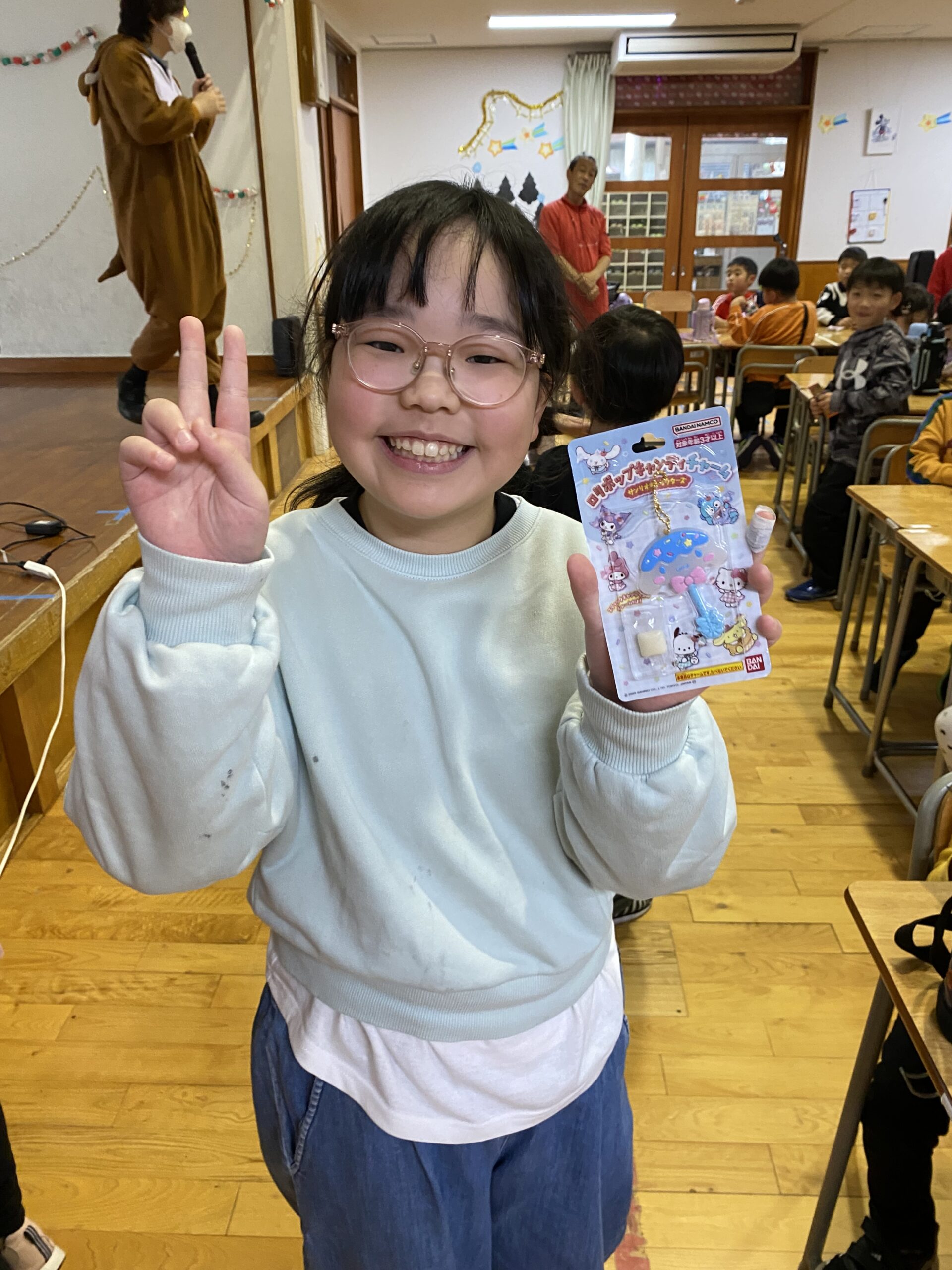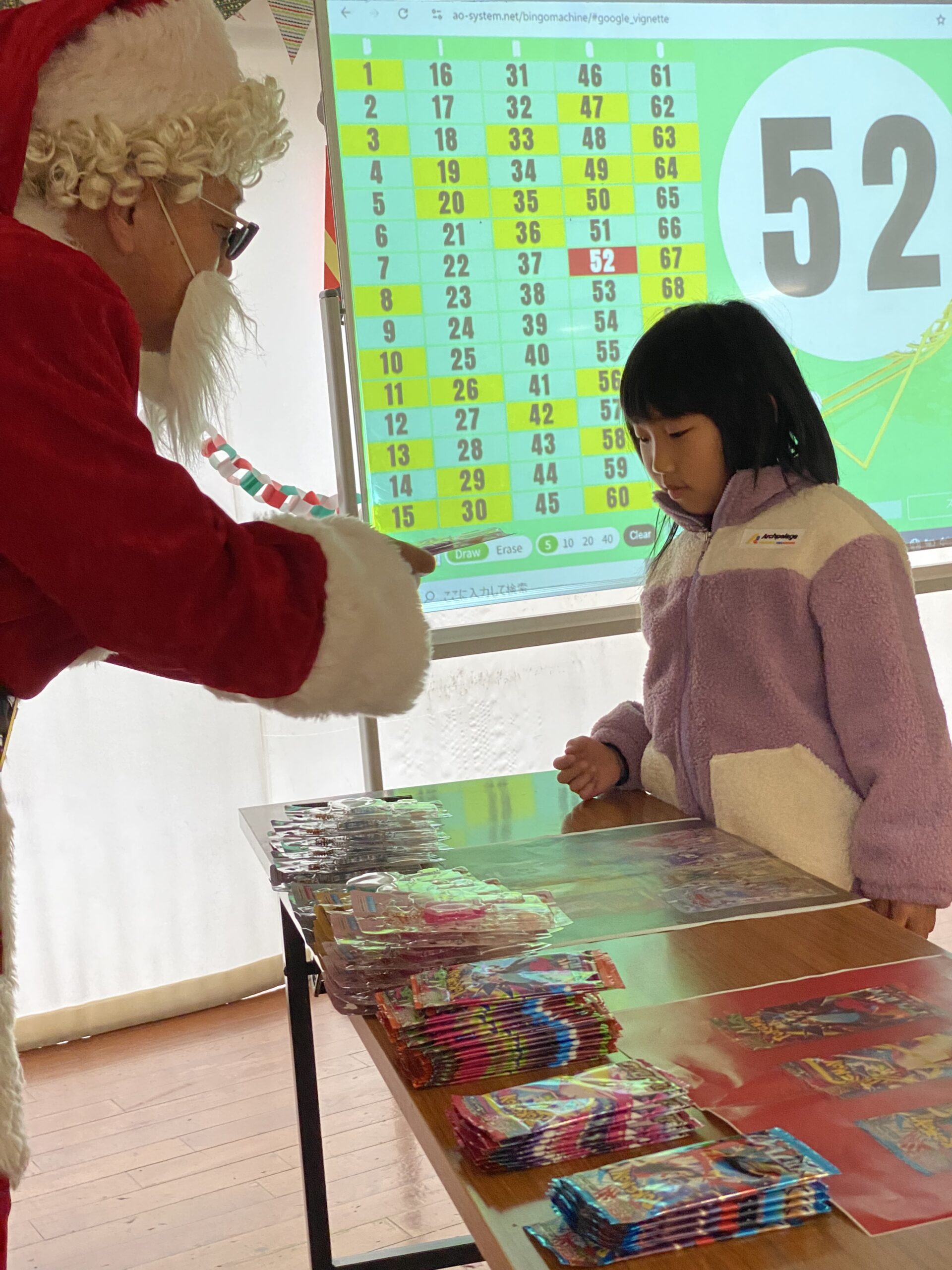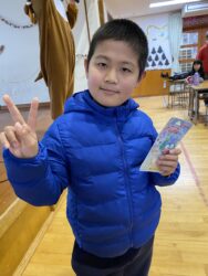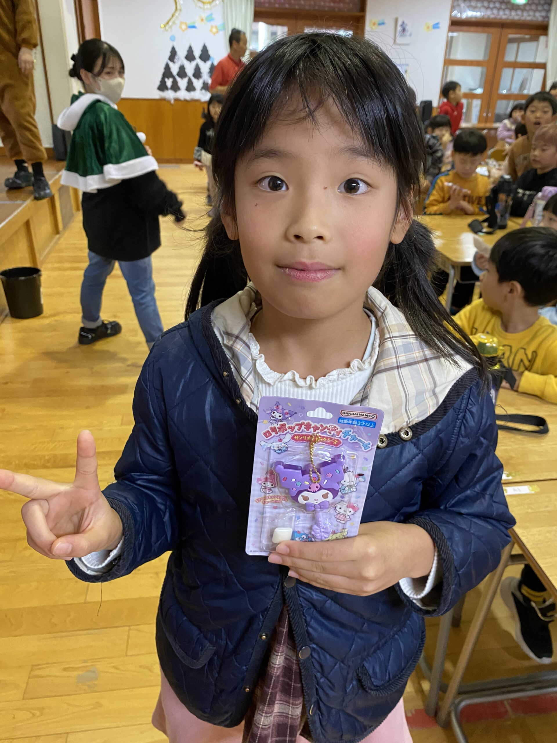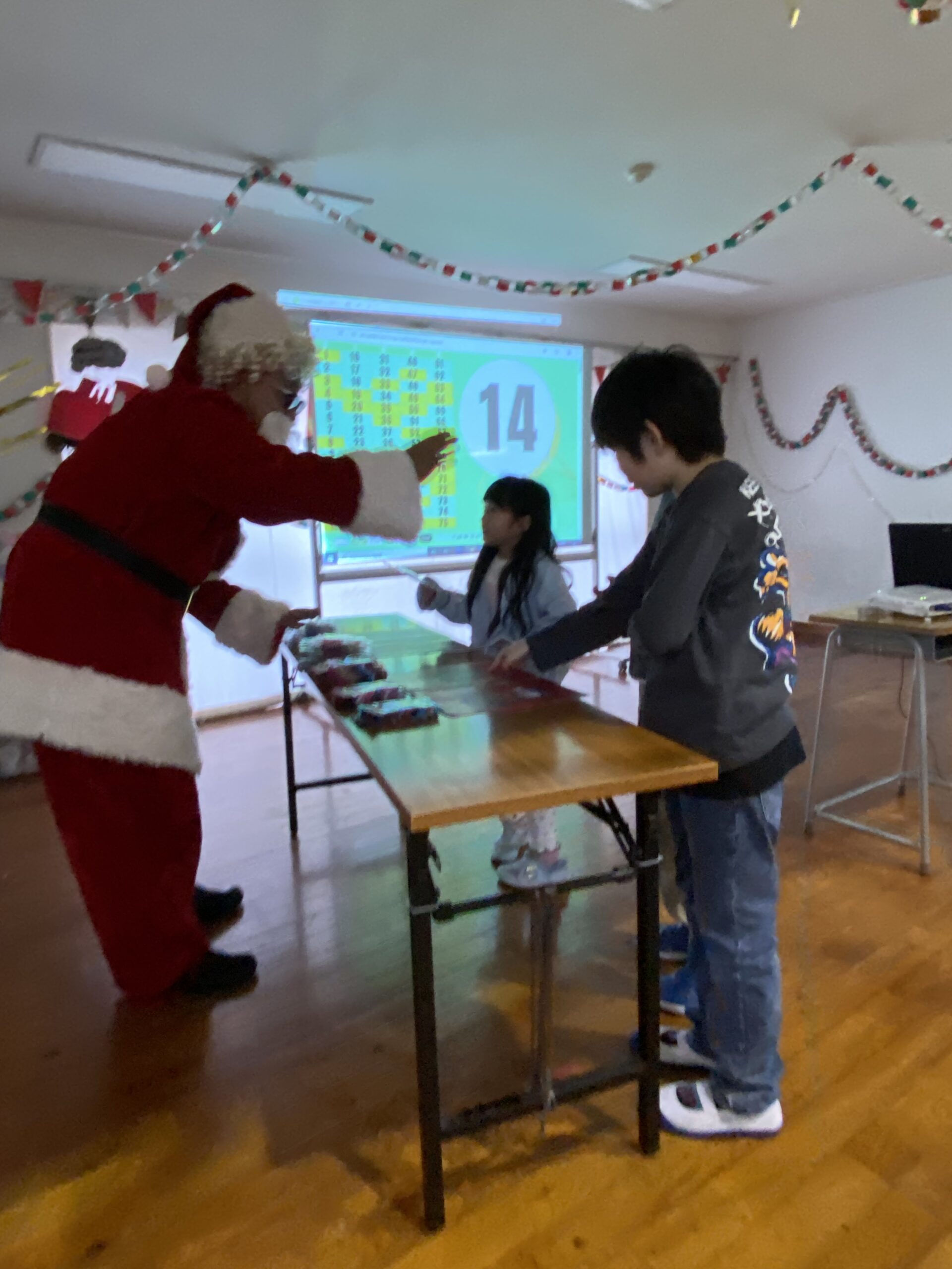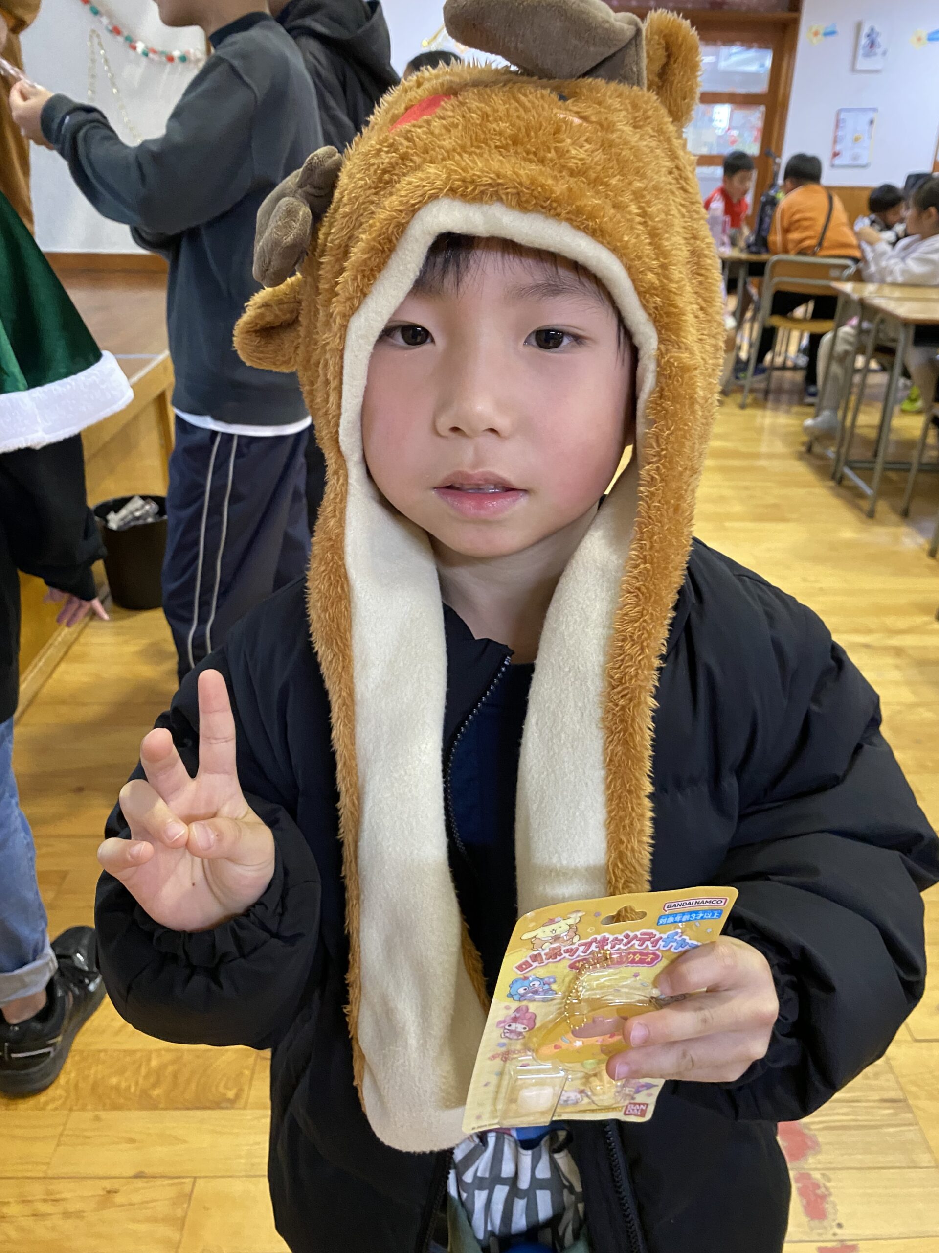 ビンゴした人からサンタさんより景品をもらいました🎅