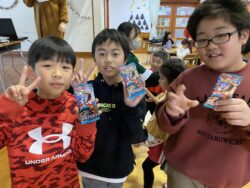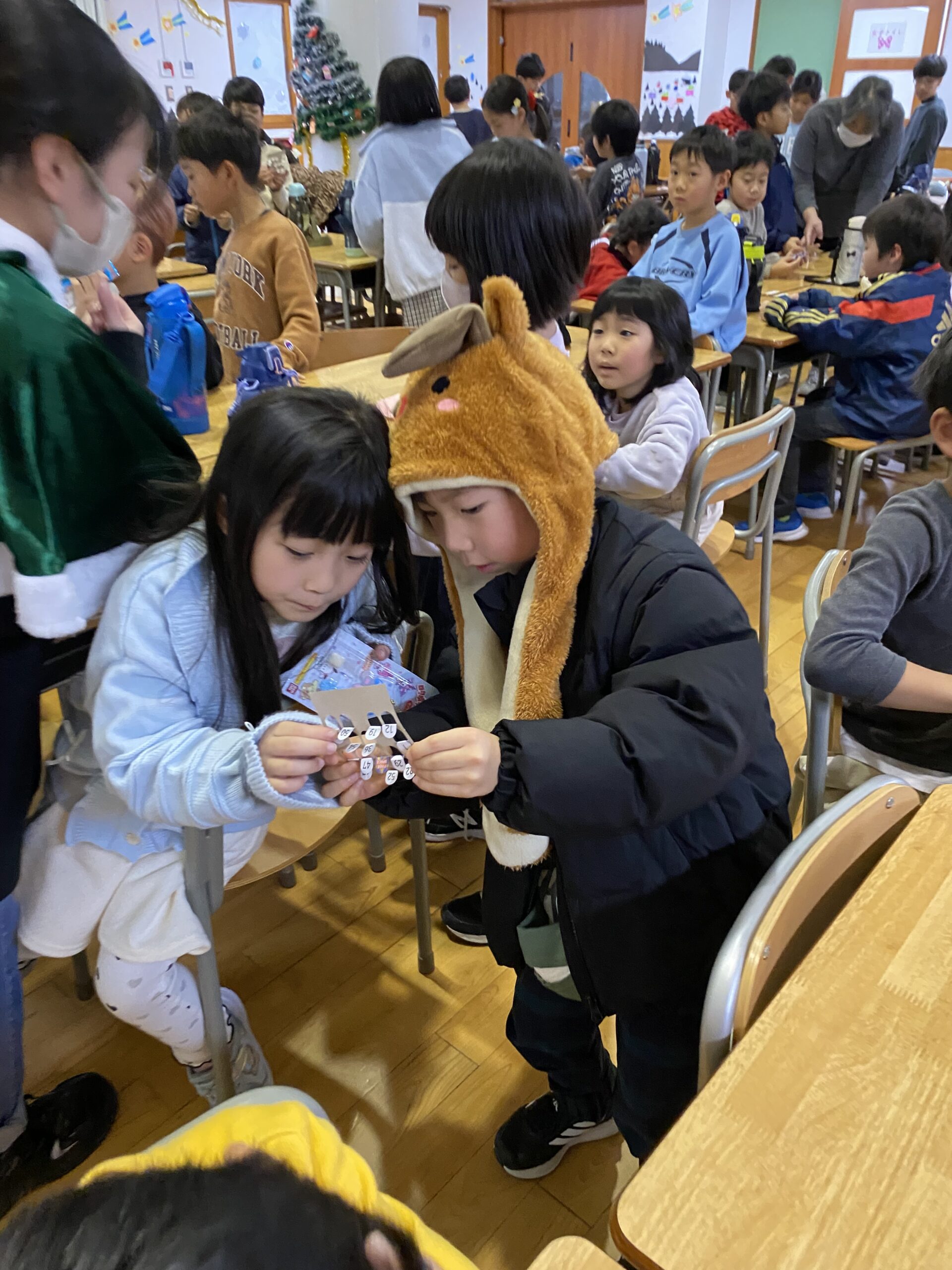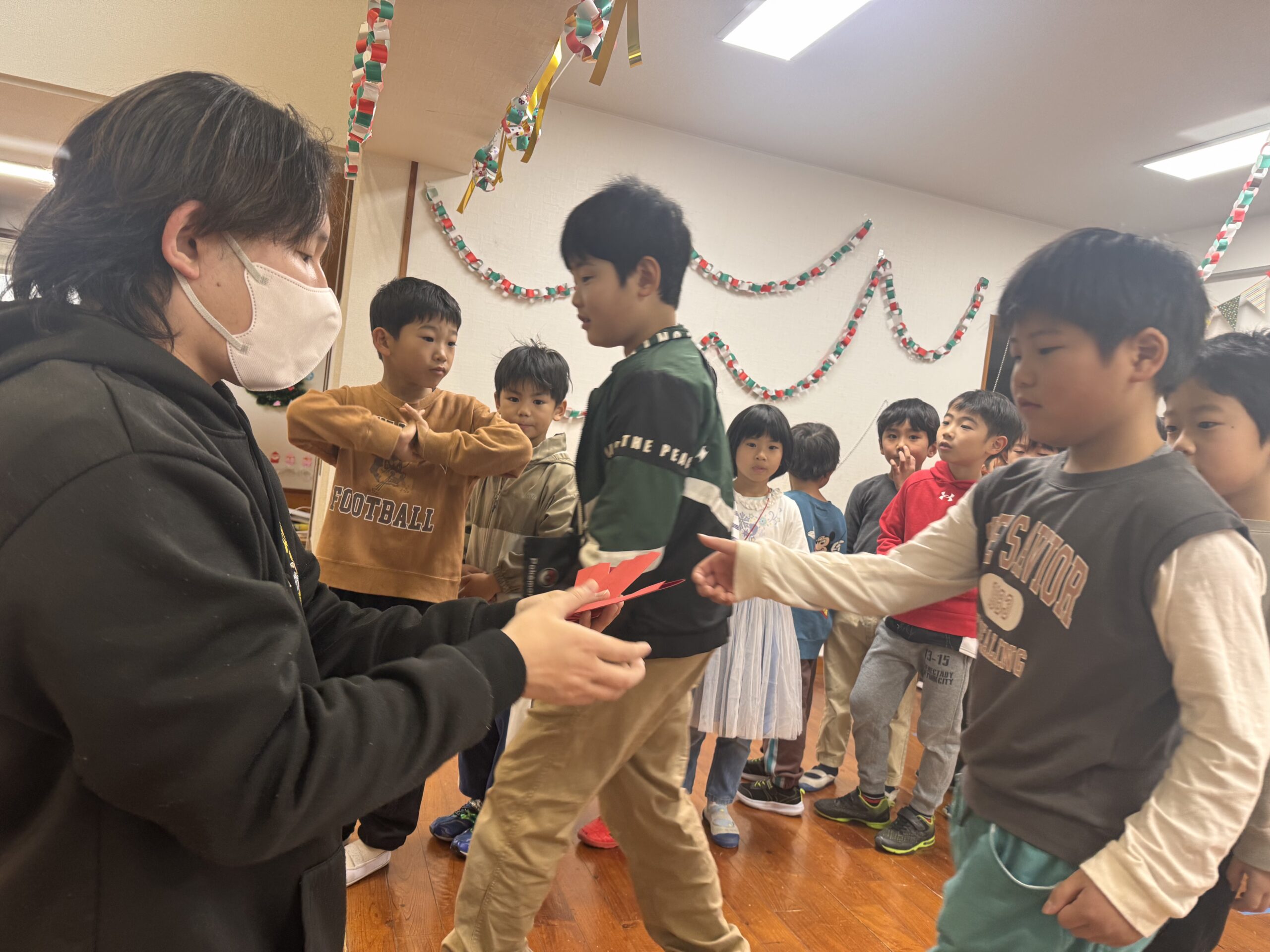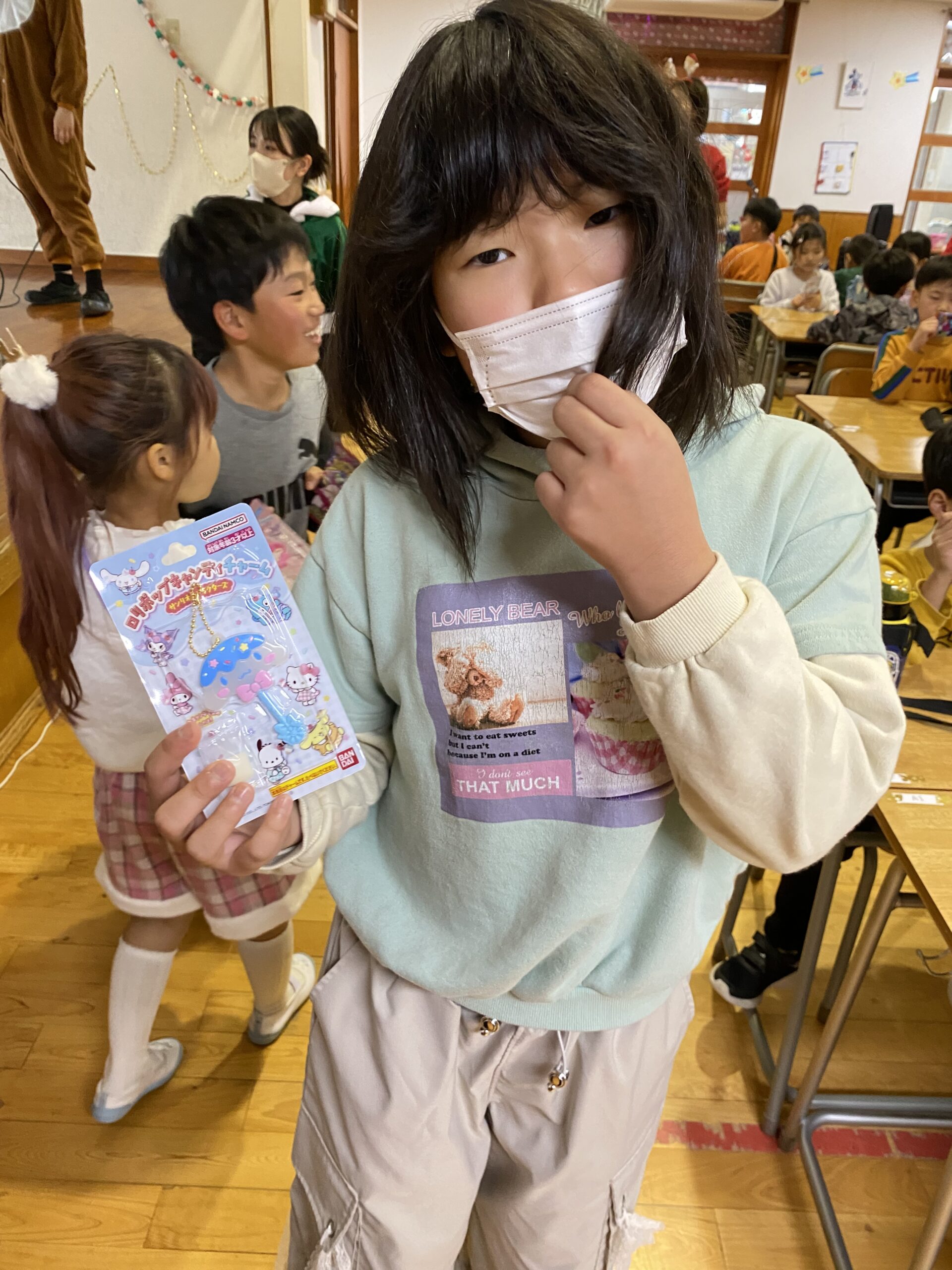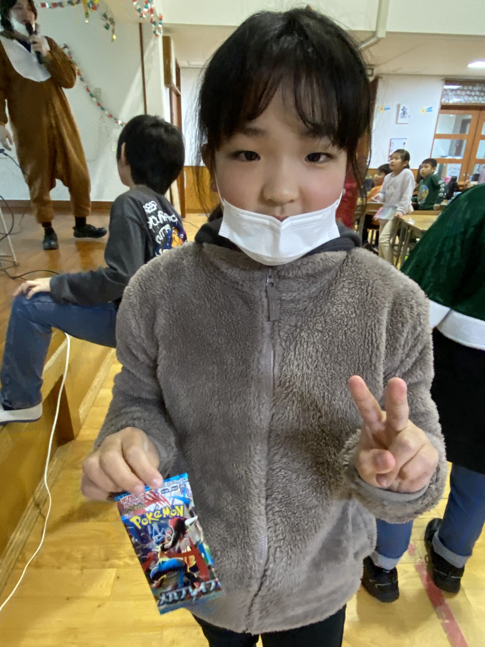 ビンゴした人からサンタさんより景品をもらいました🎅