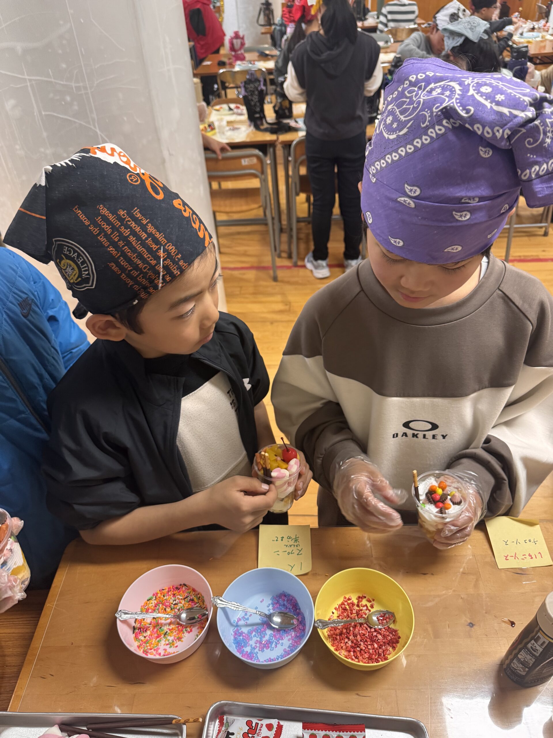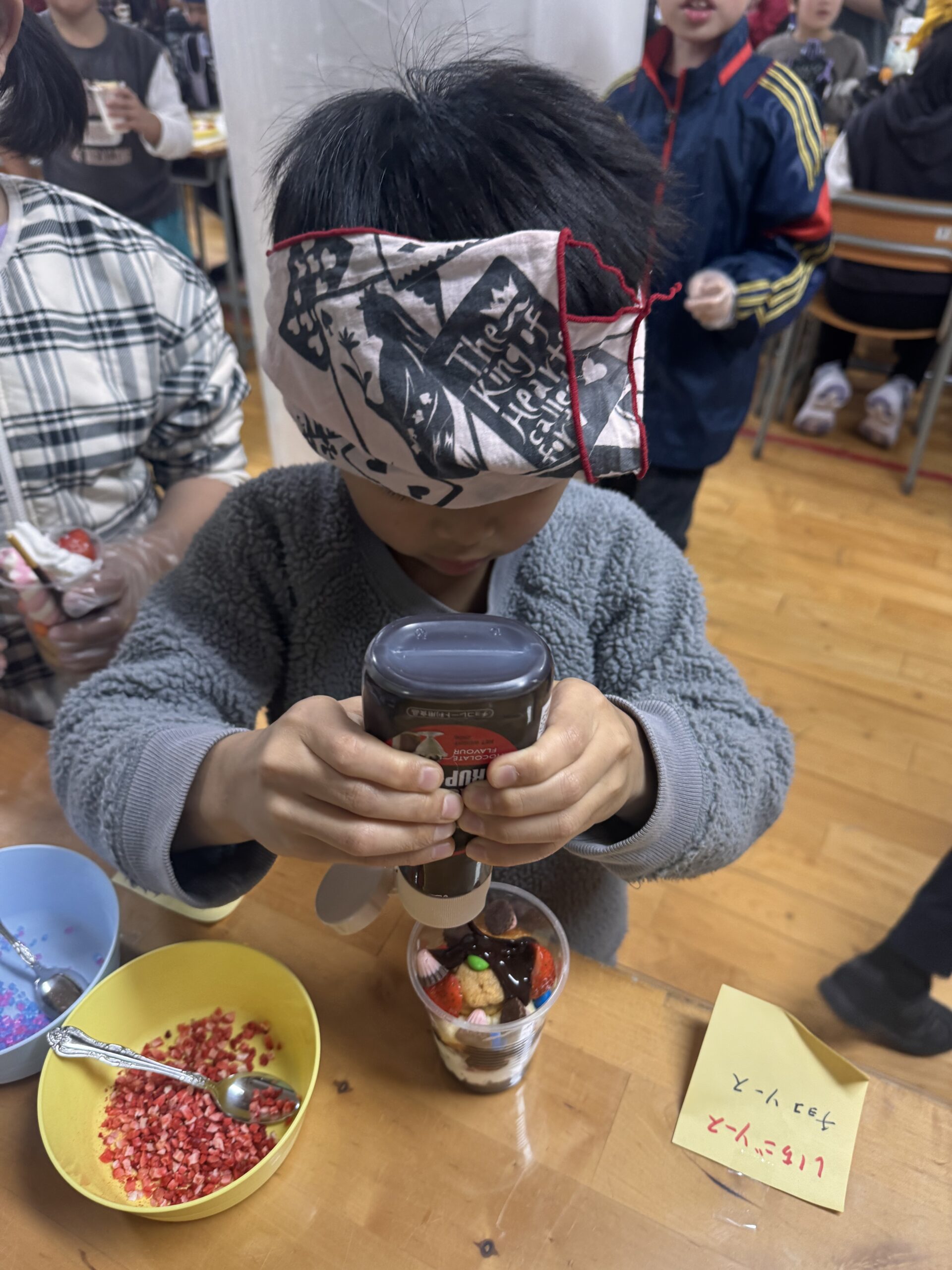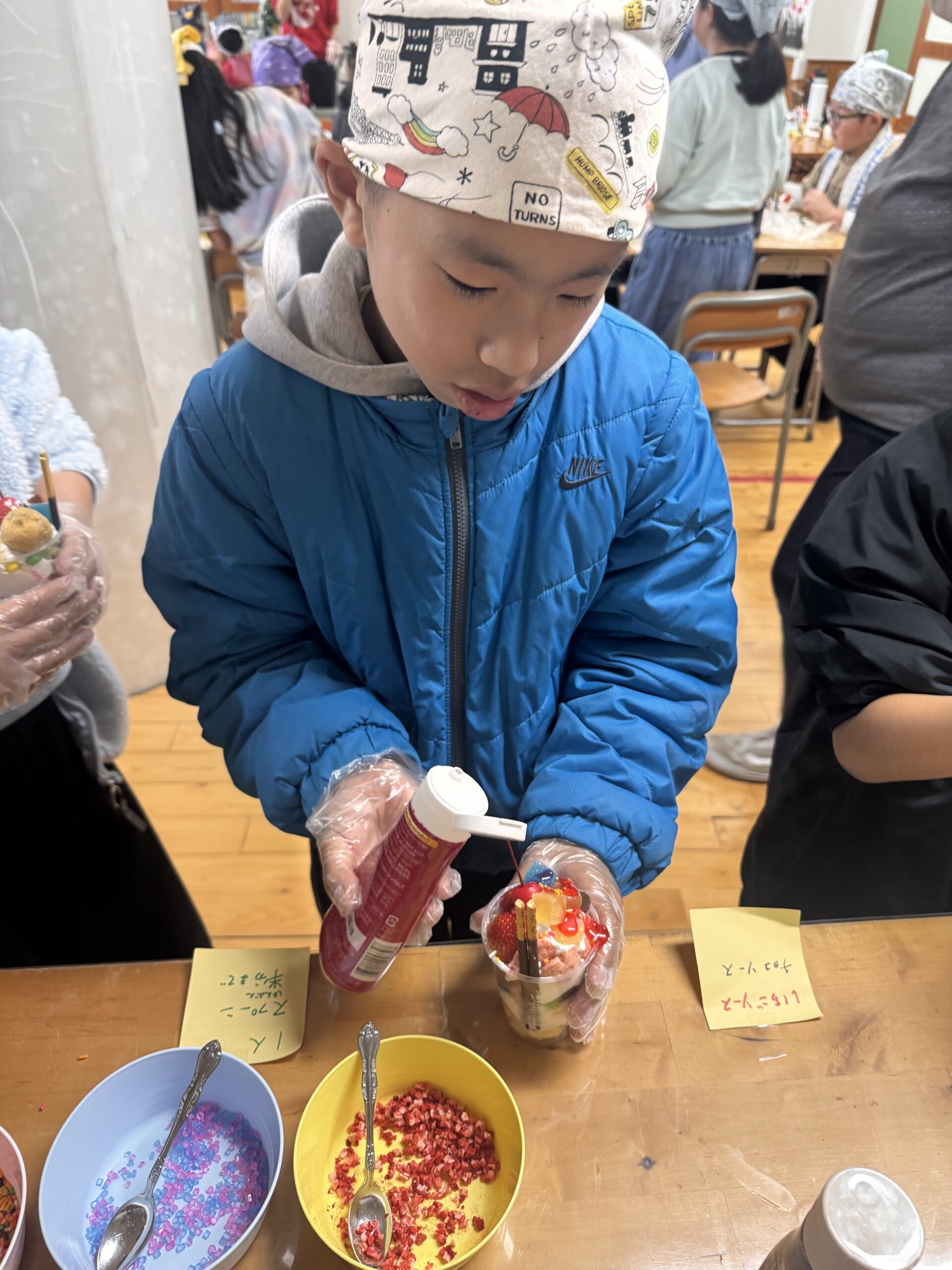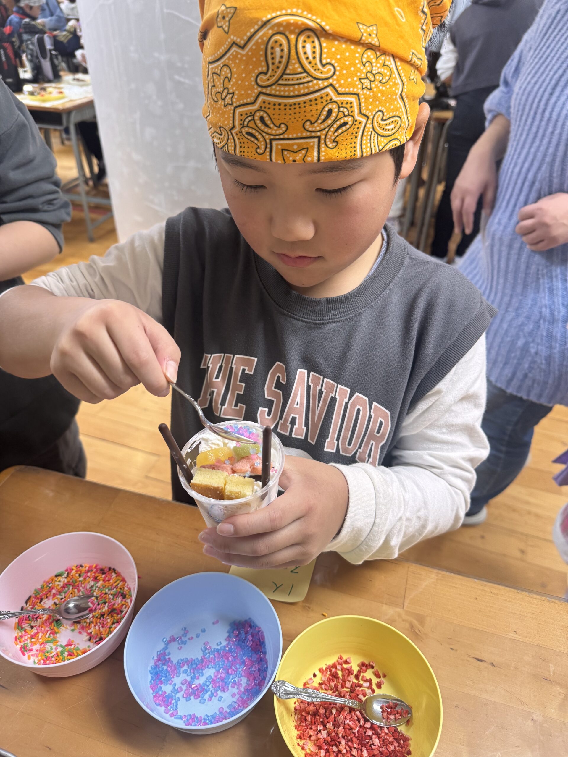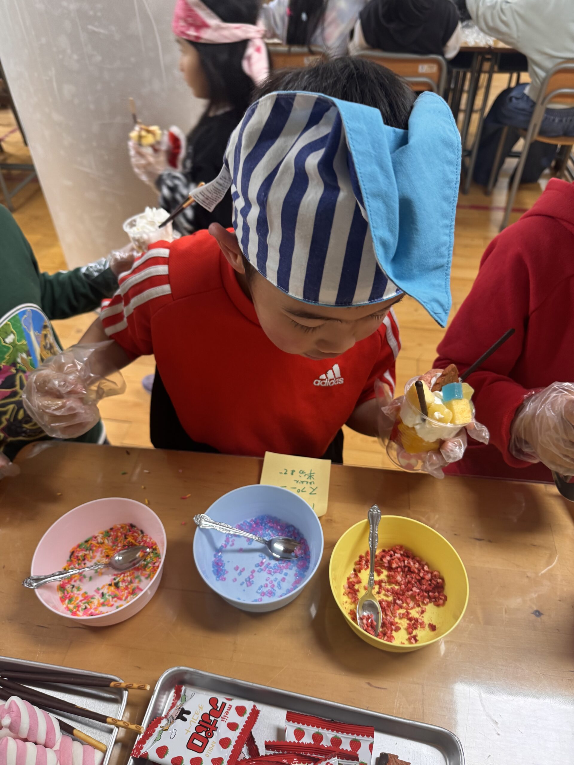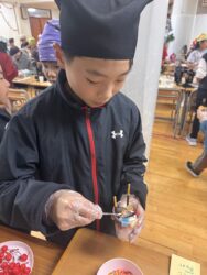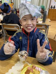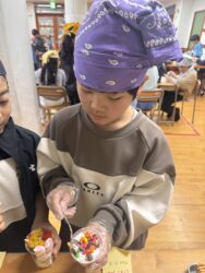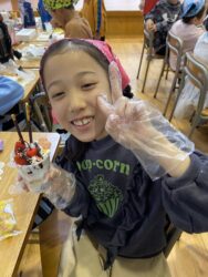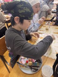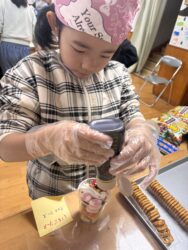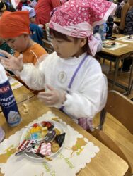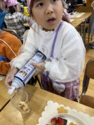 児童が自分でカップに具材を入れて