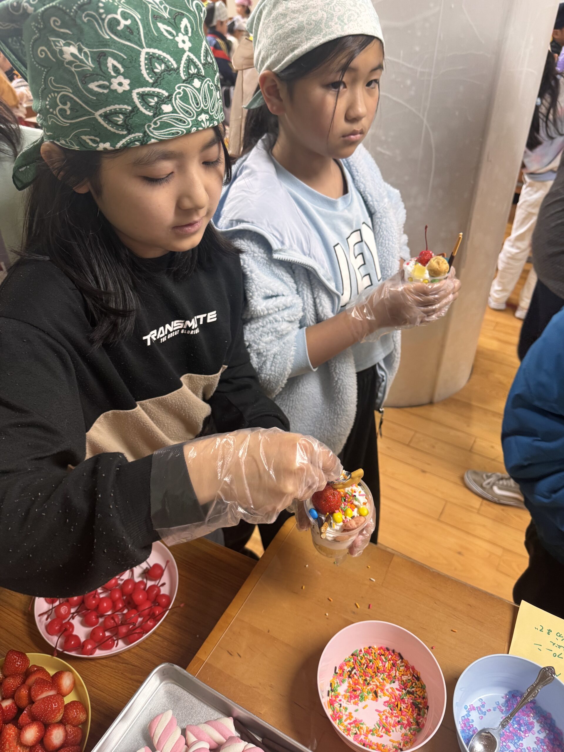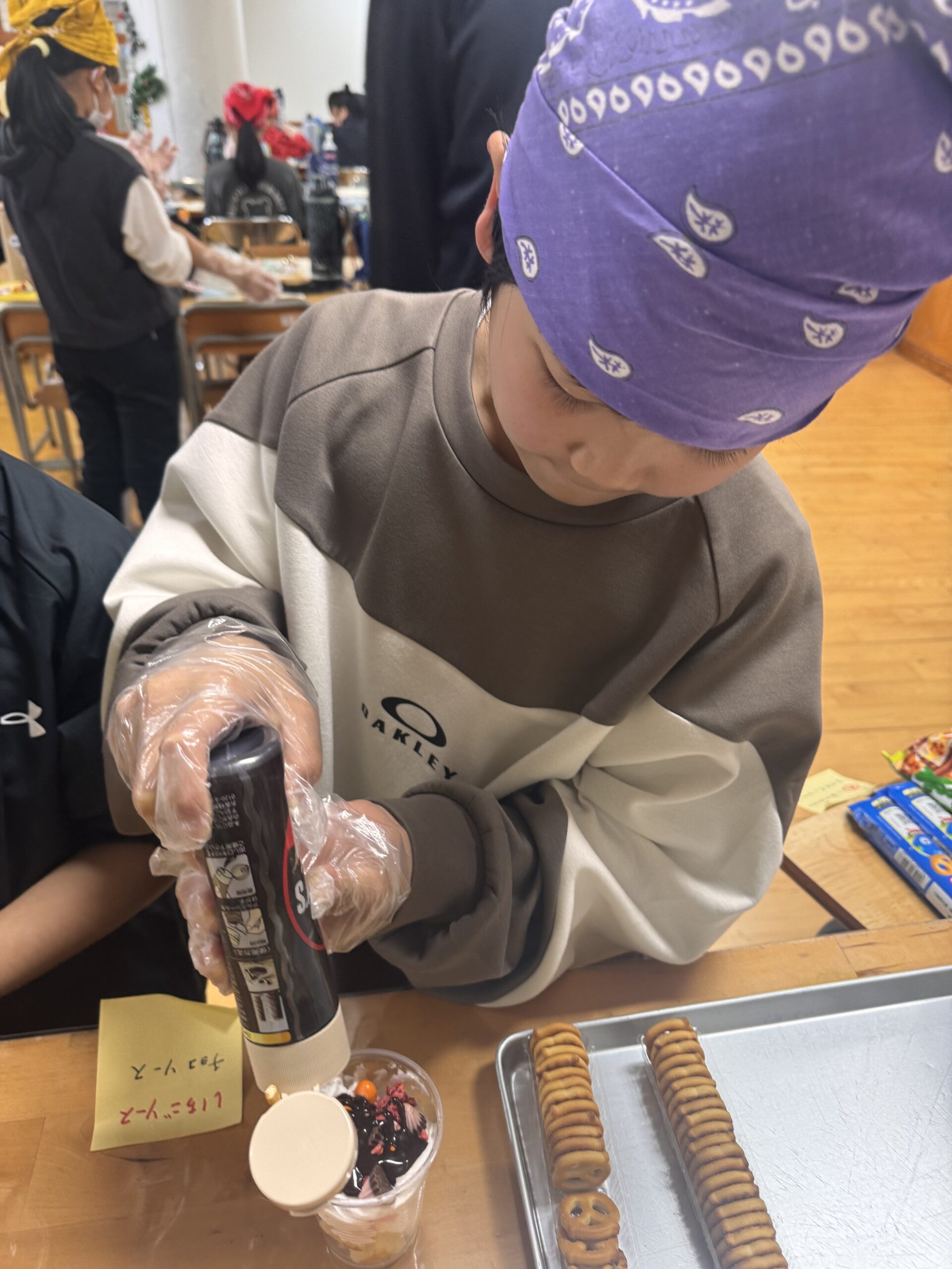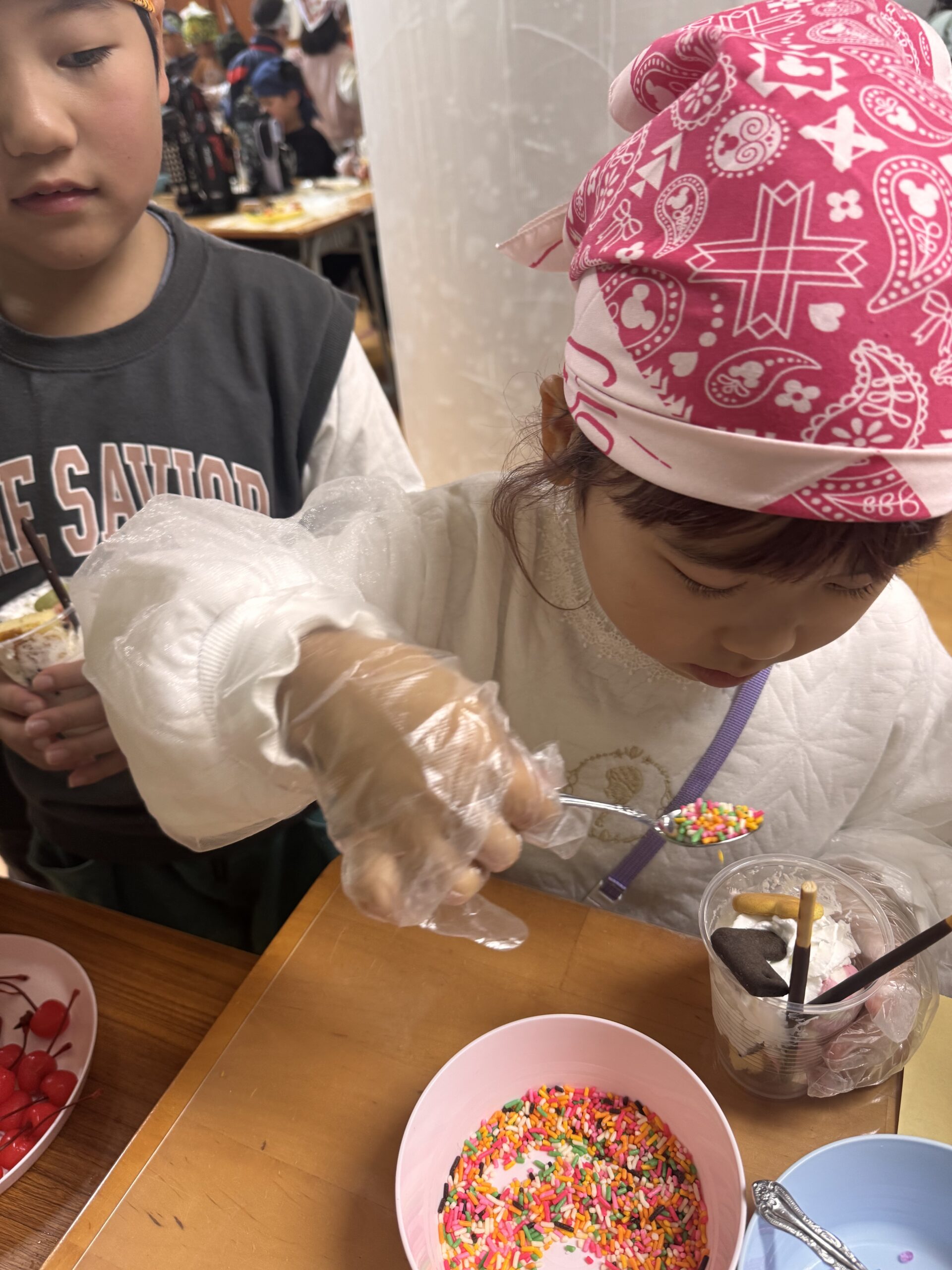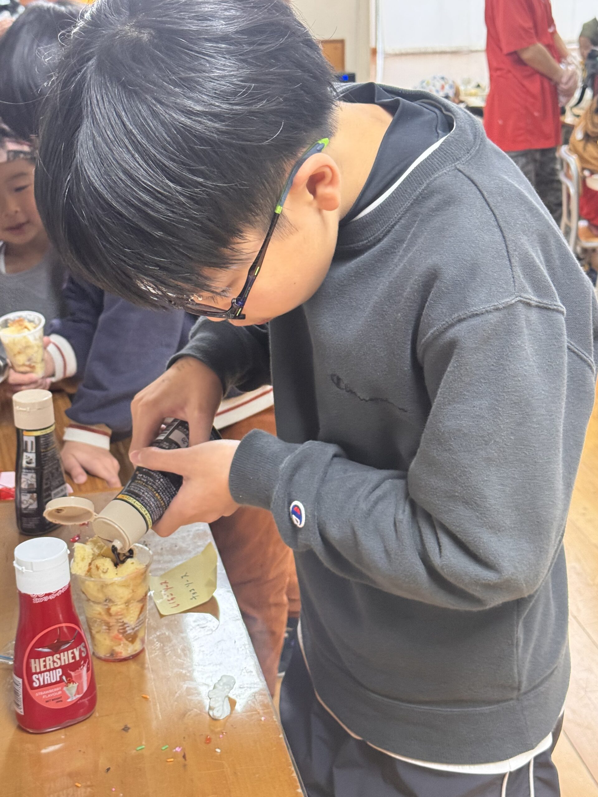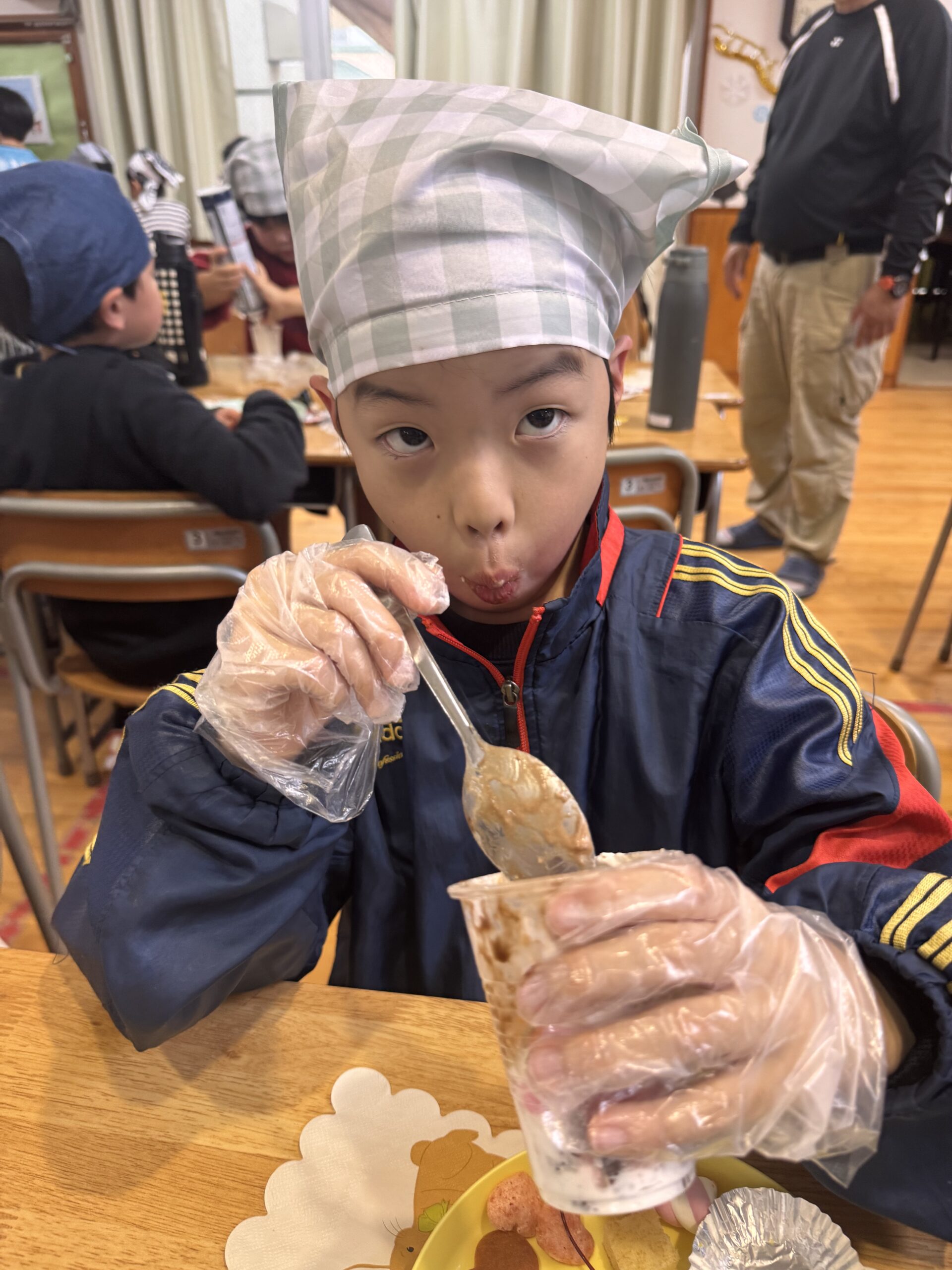 児童が自分でカップに具材を入れて