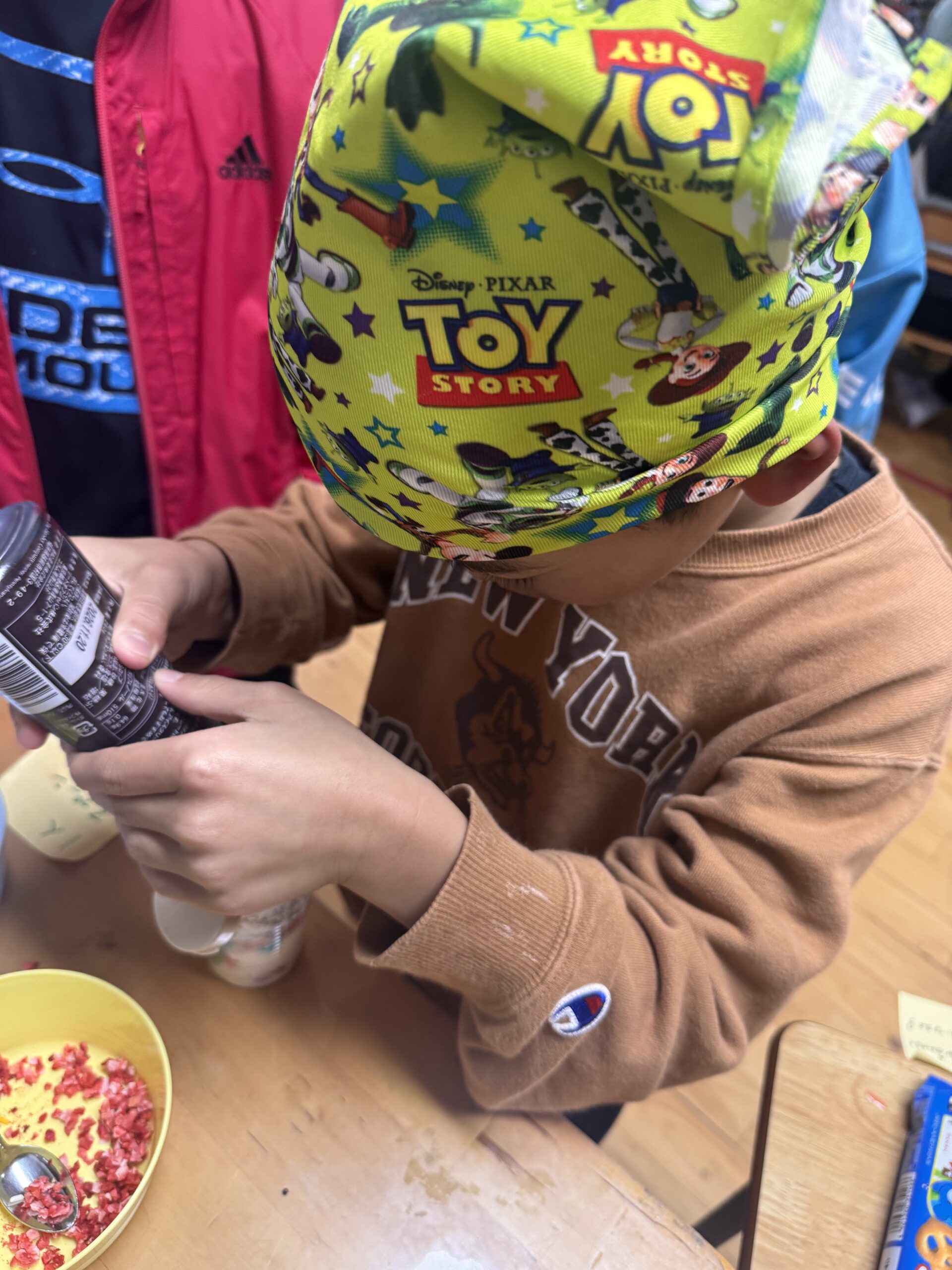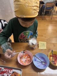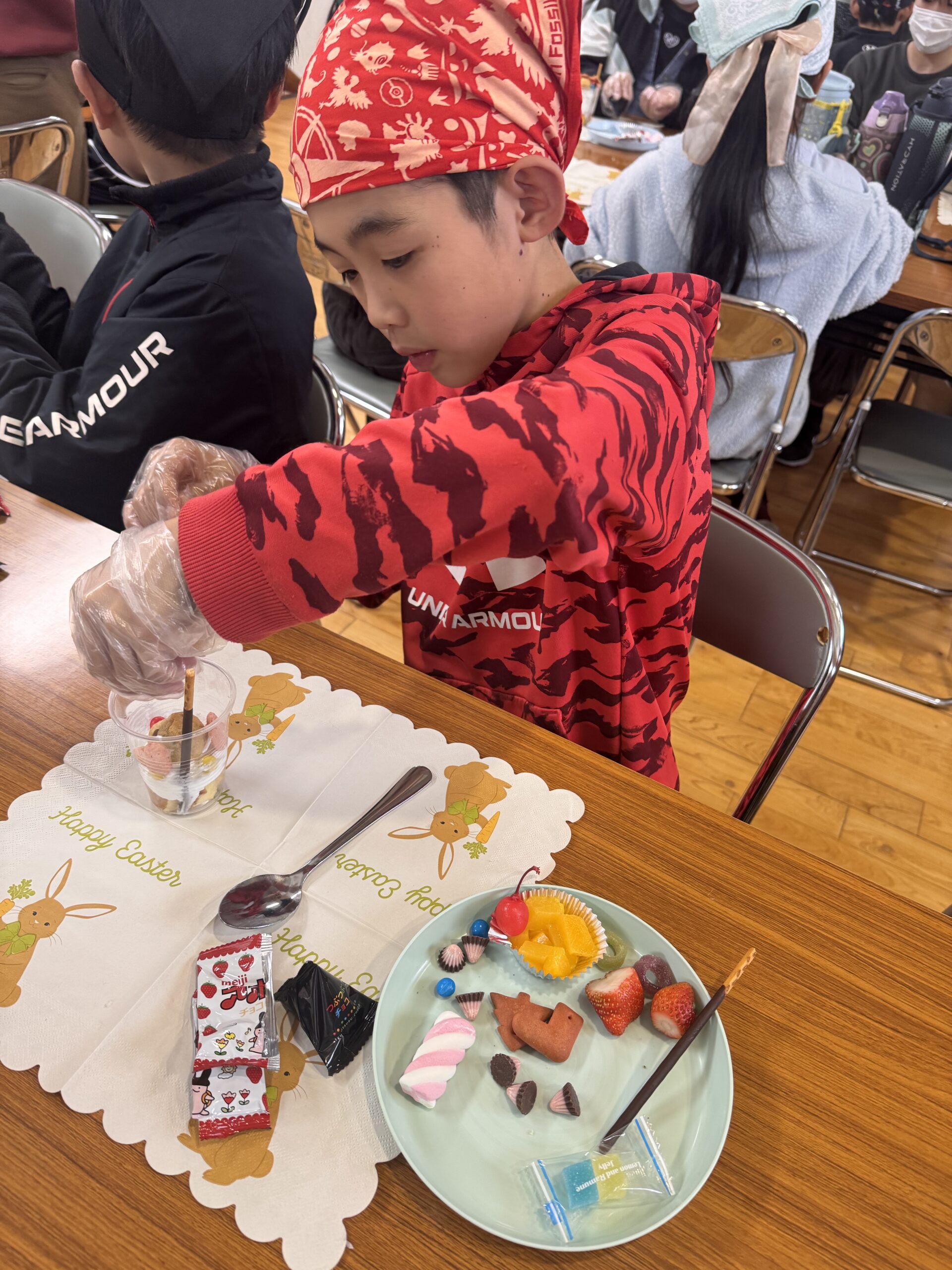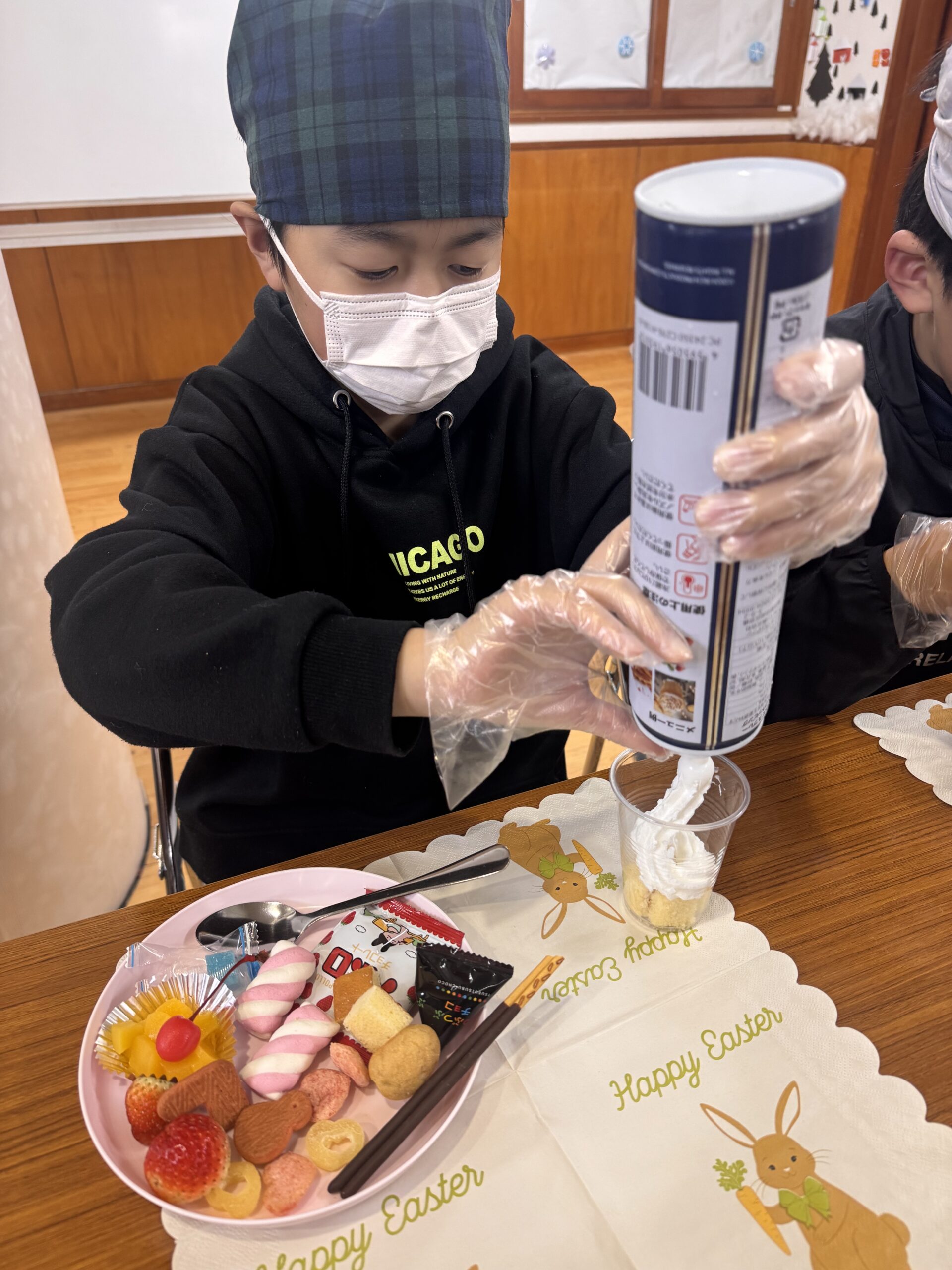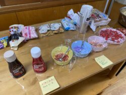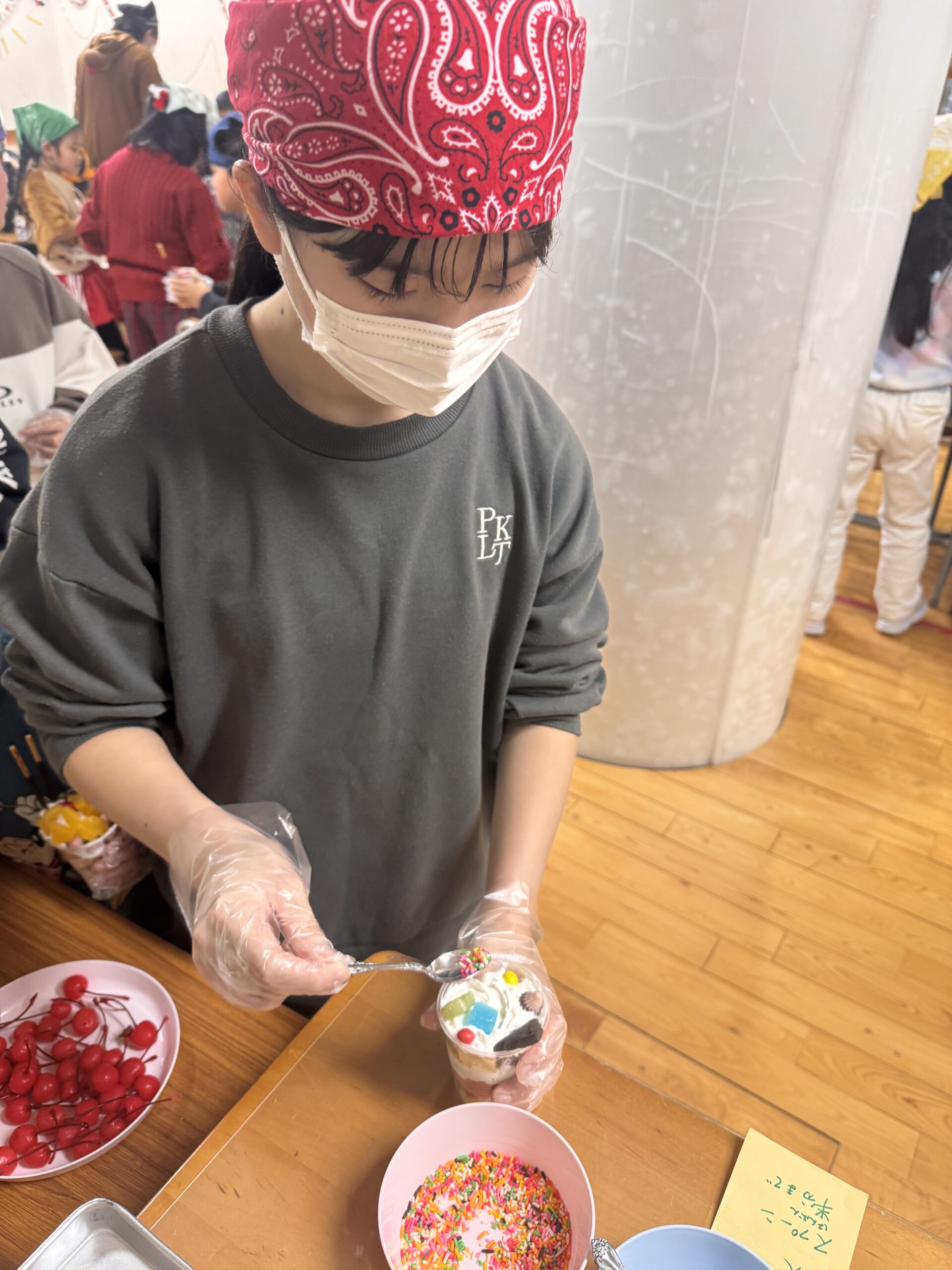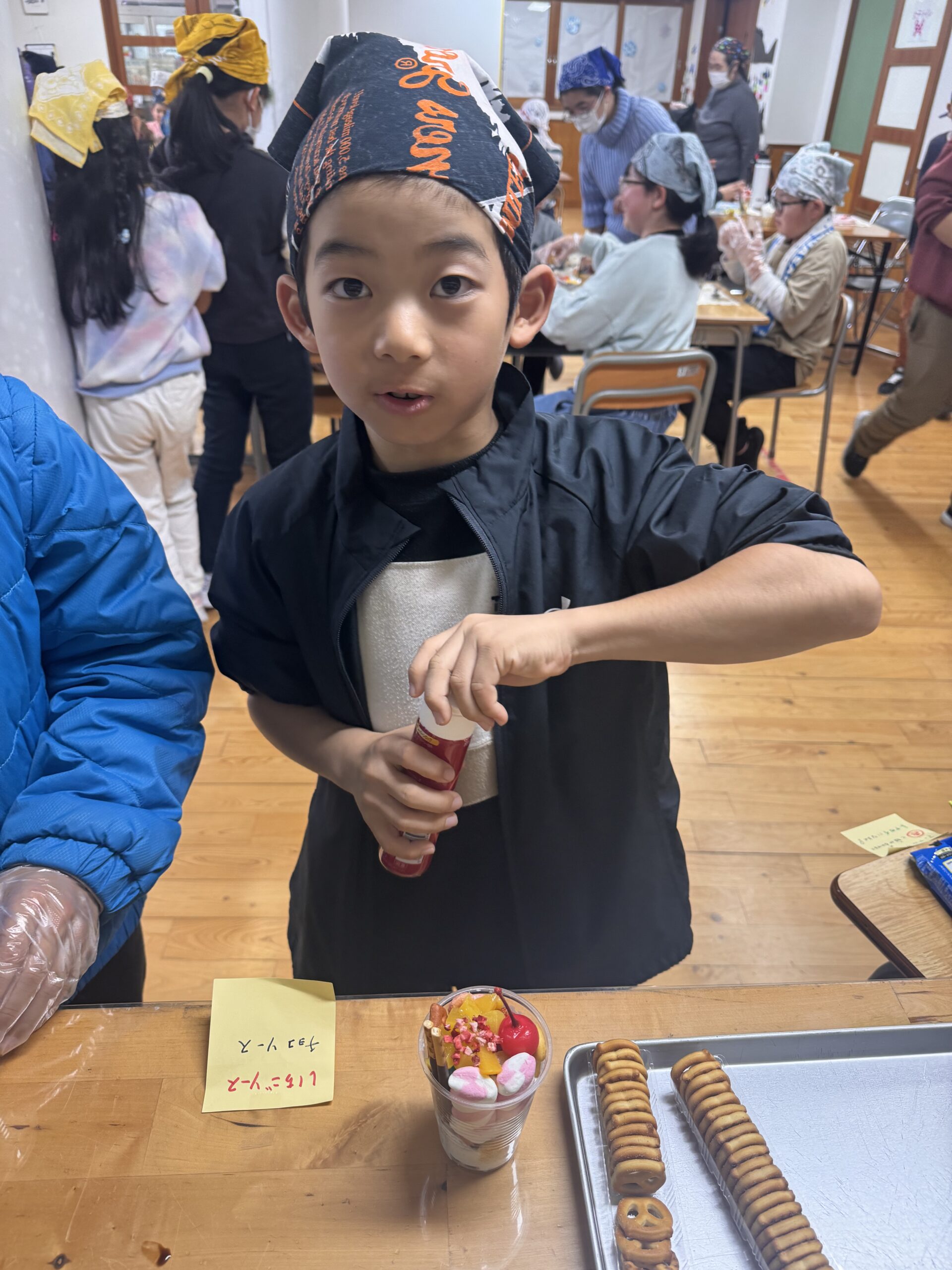 児童が自分でカップに具材を入れて
