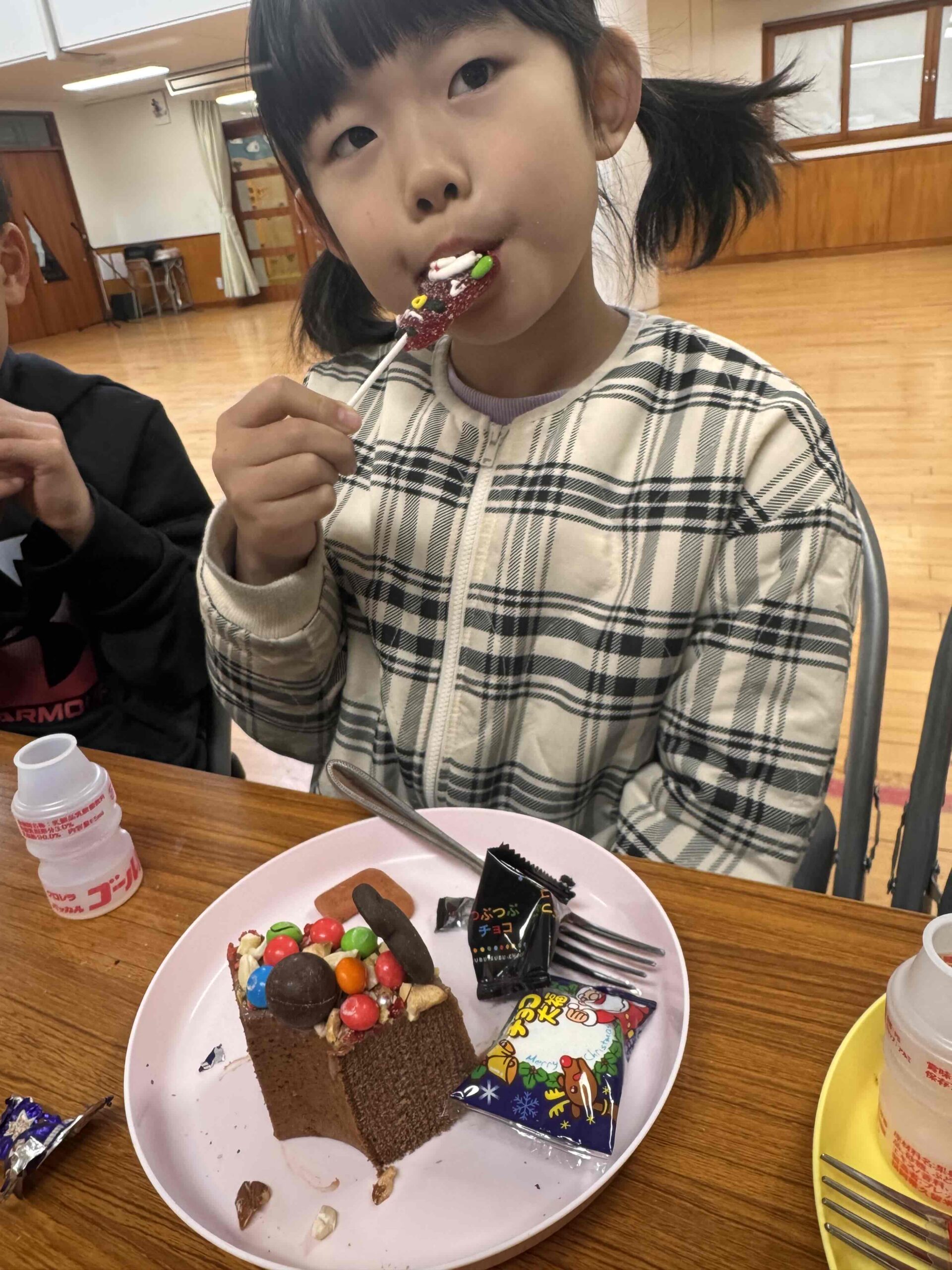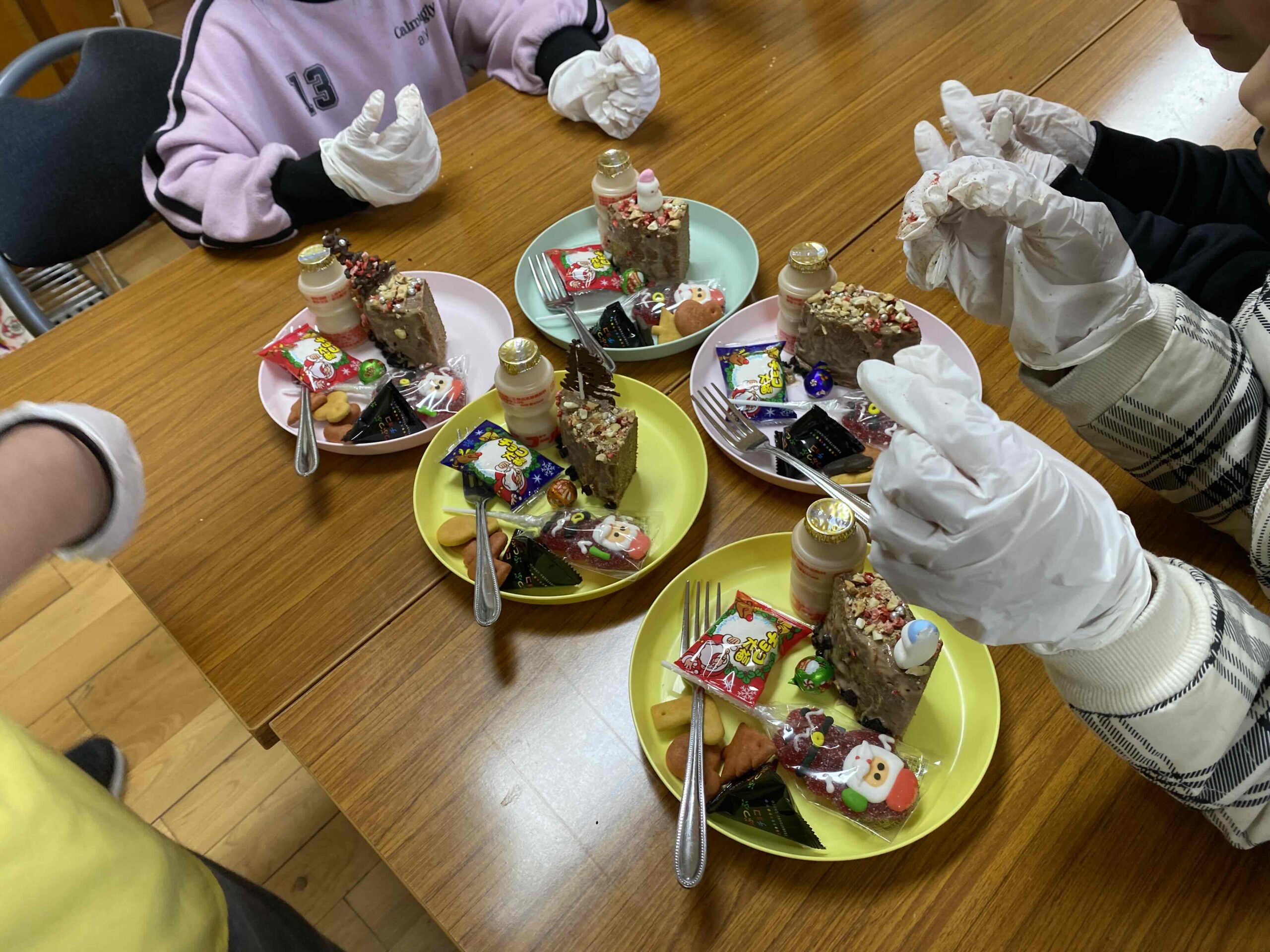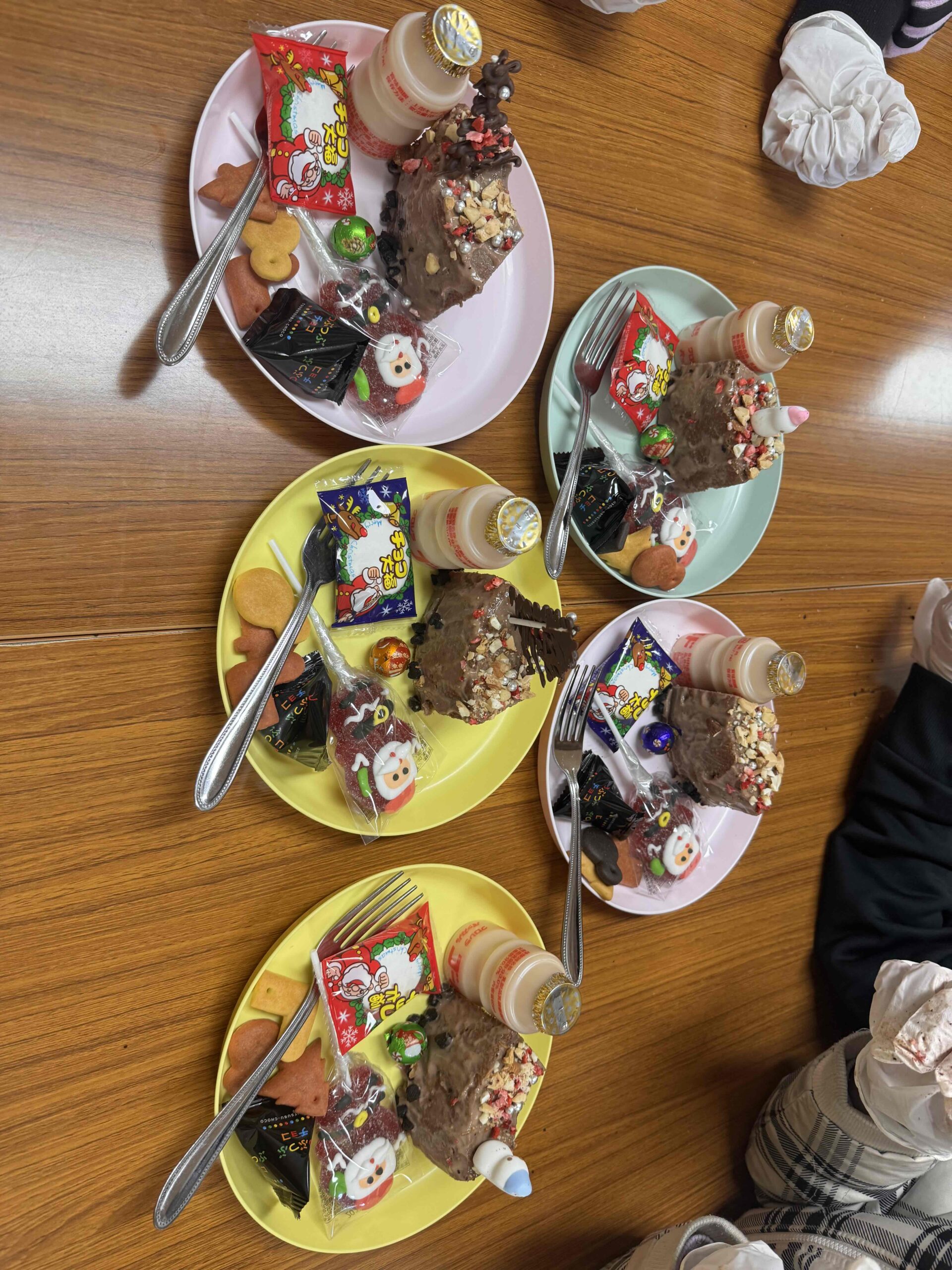 ヤクルトとクリスマスの日のおやつを乗せて豪華なおやつの完成✌